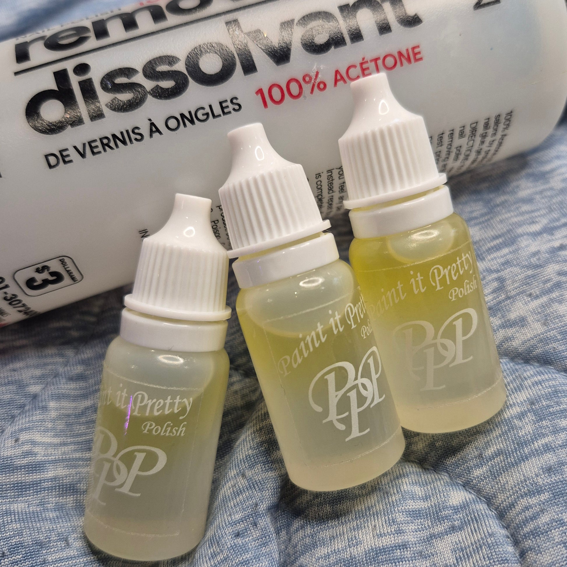 Acetone Additive now available! Add to 250ml of 100% acetone to moisturize and help reduce the dryness around your nails. Your acetone will maintain its effectiveness and you can enjoy softer cuticles that smell amazing!