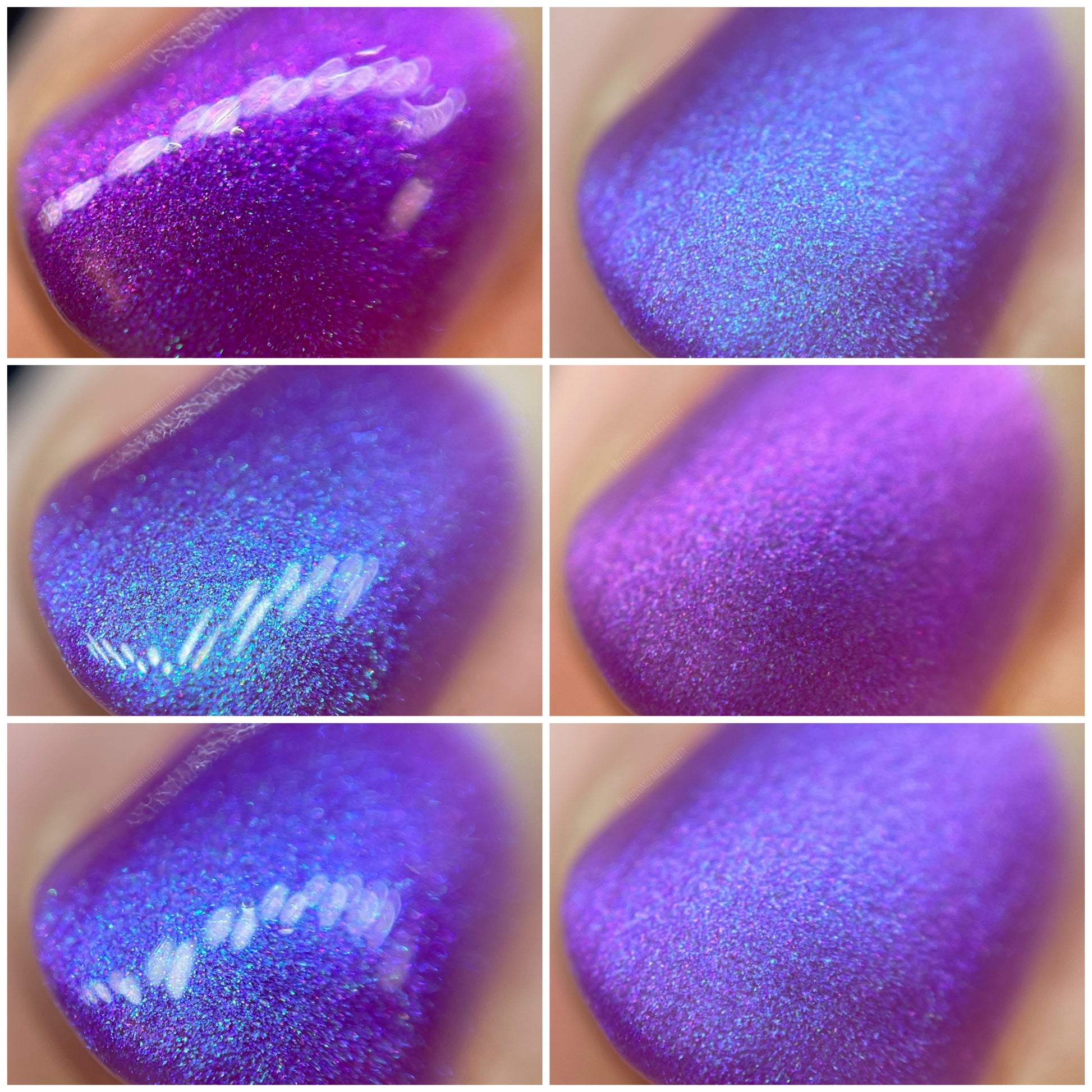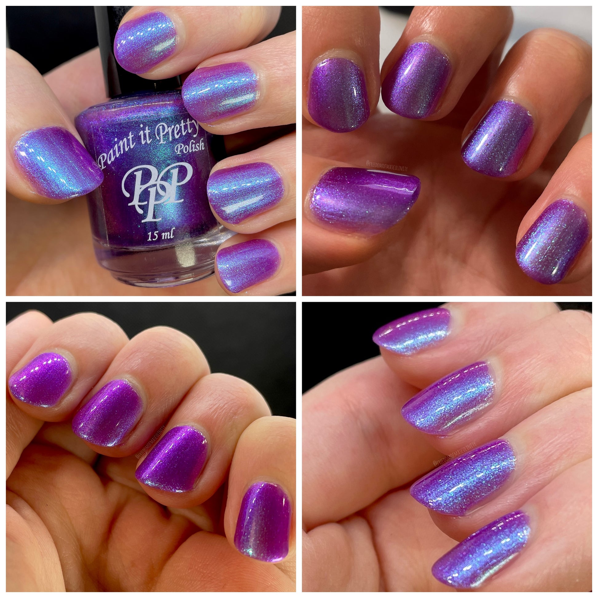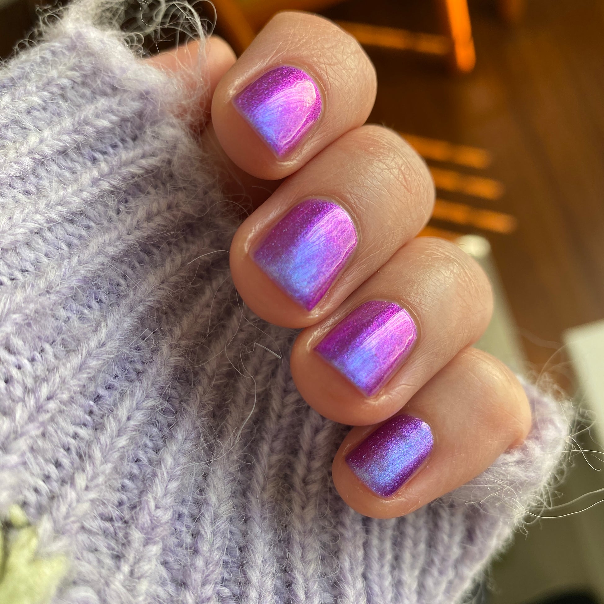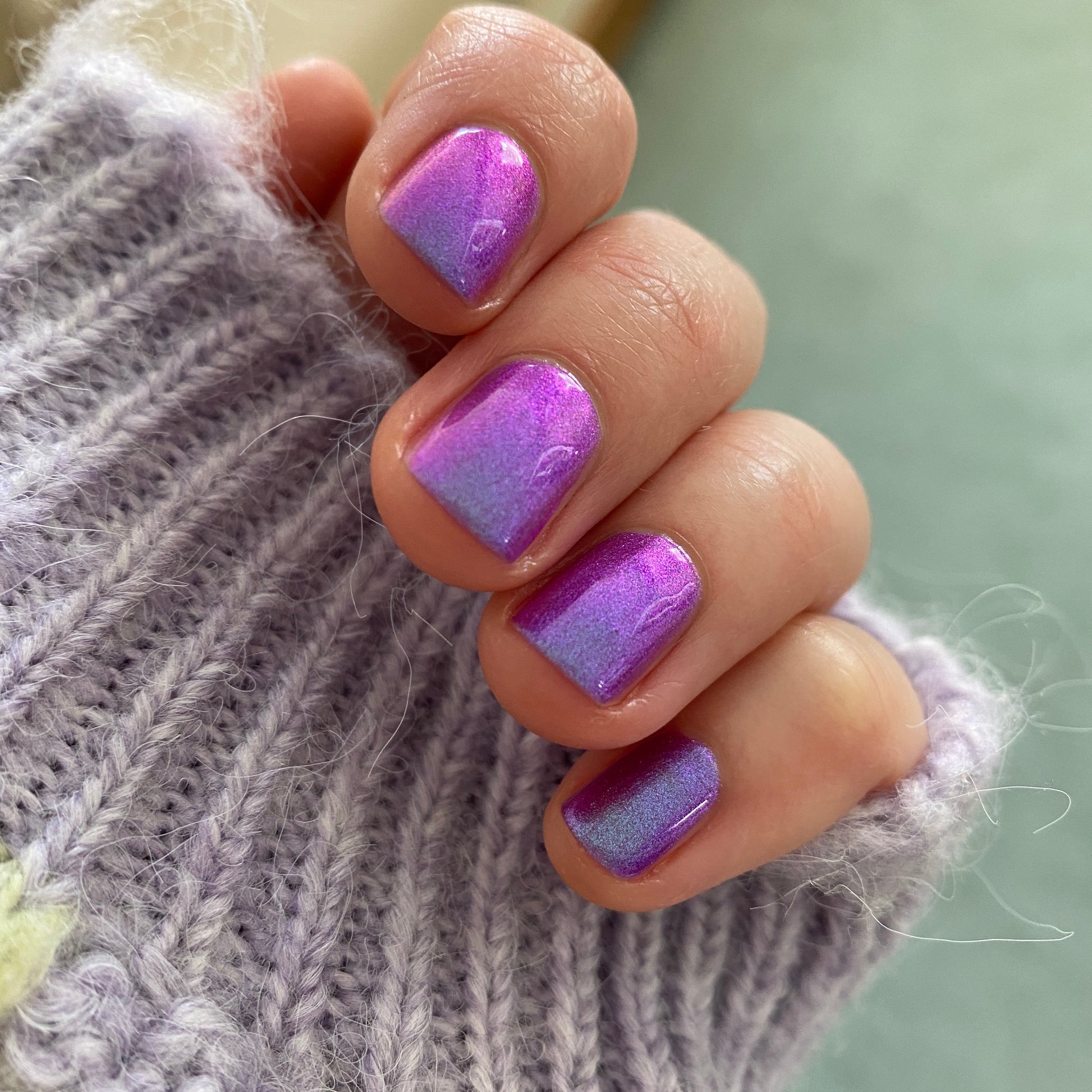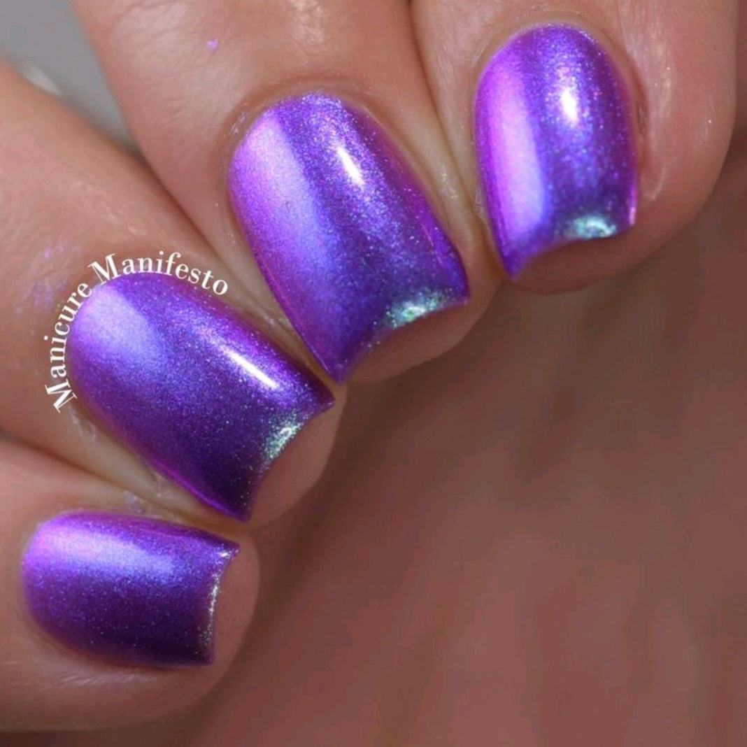 A riot of wildflowers or a dozen manicured roses - nothing beats a bouquet. You’ll feel like you have flowers on your fingers with this pansy purple polish that shifts from green through to fuschia.