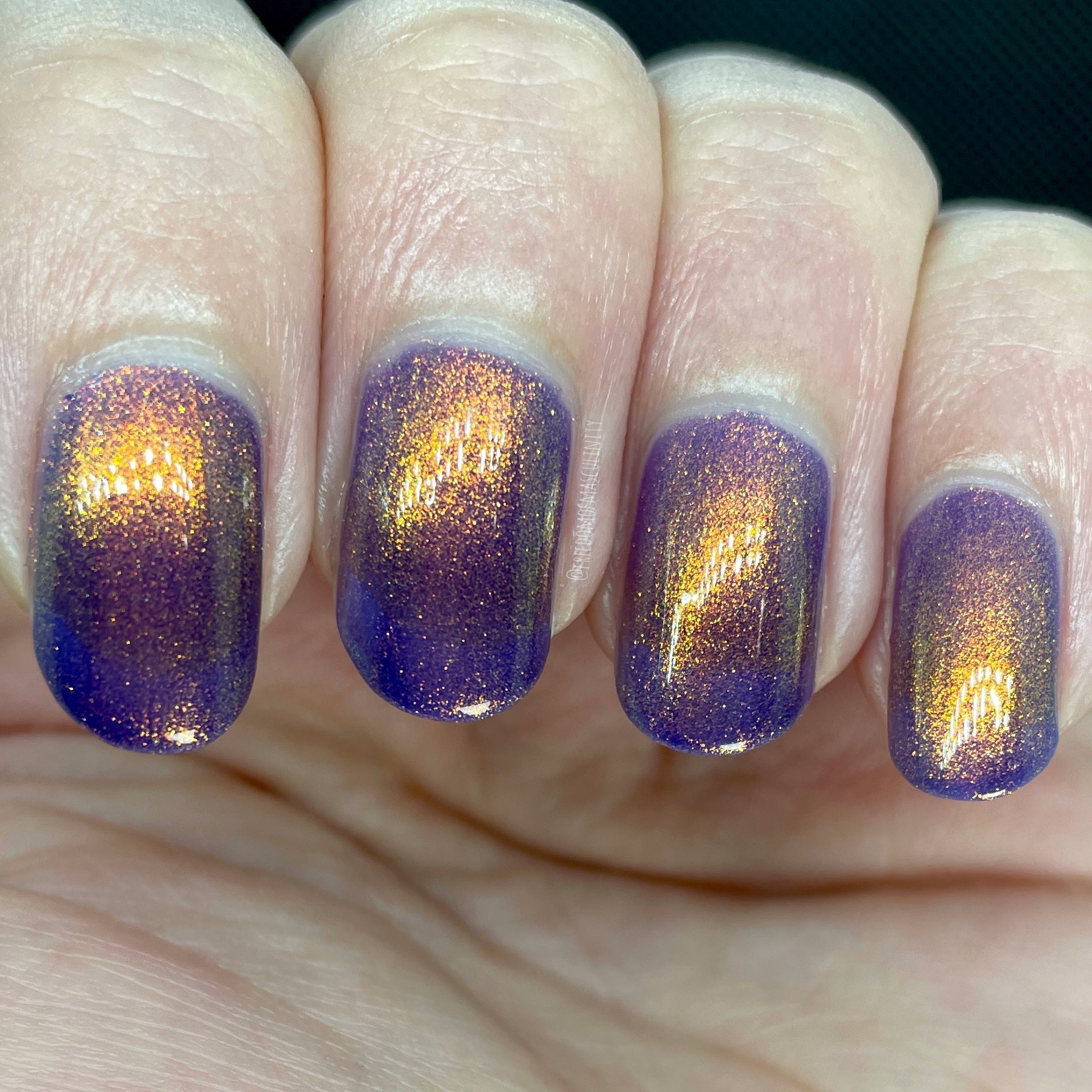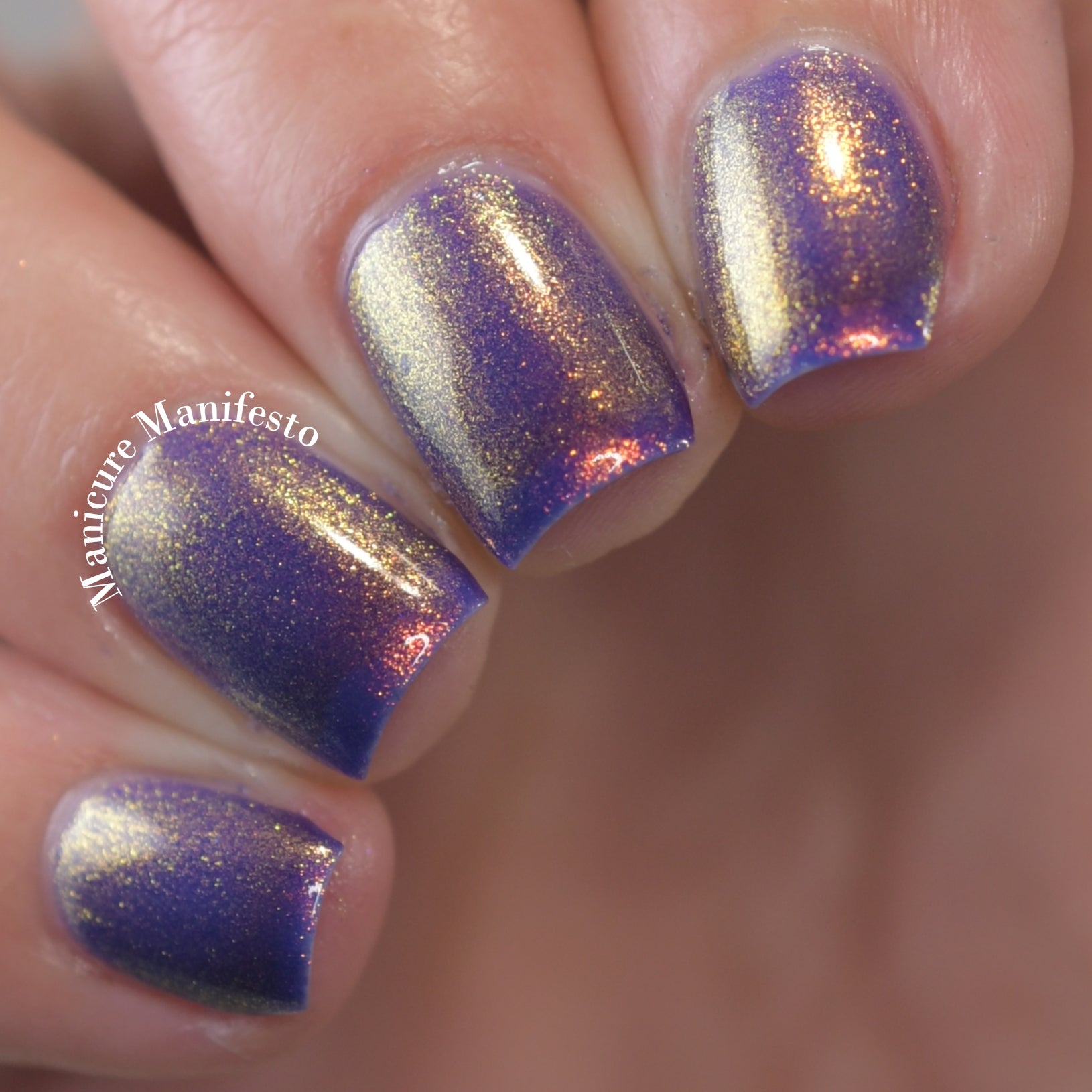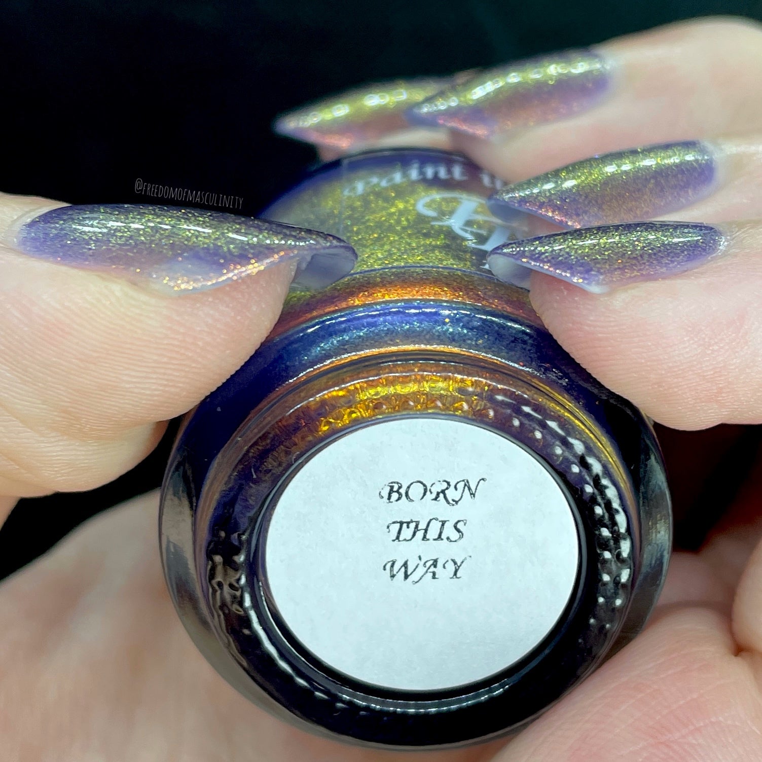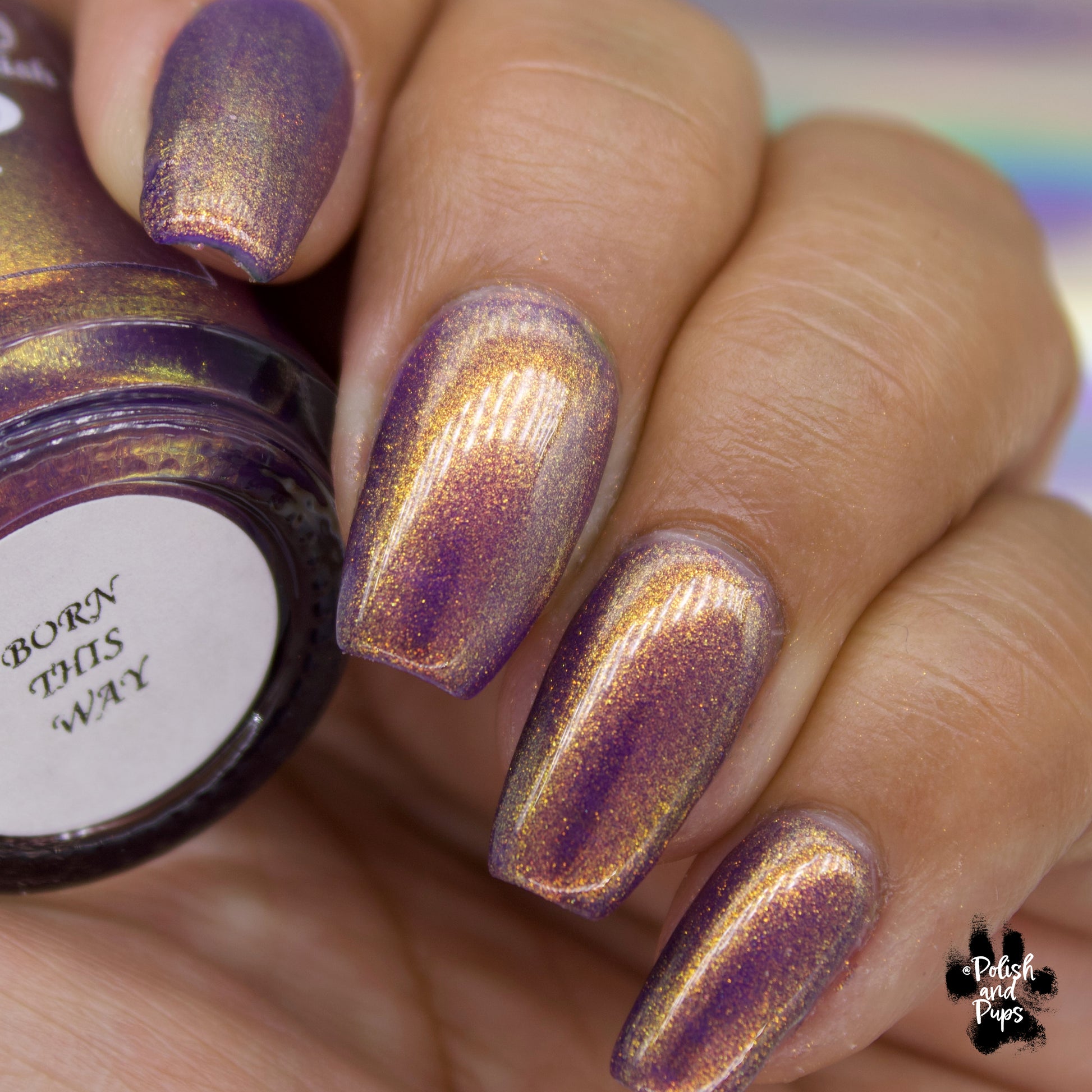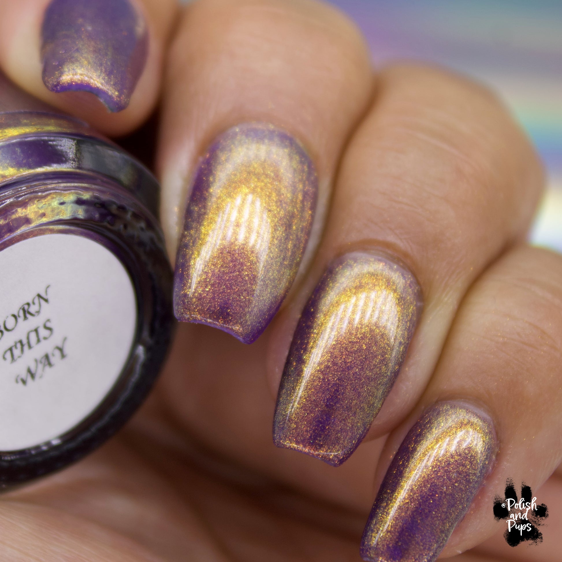 Born This way is a purple base nail polish with a golden aurora shimmer