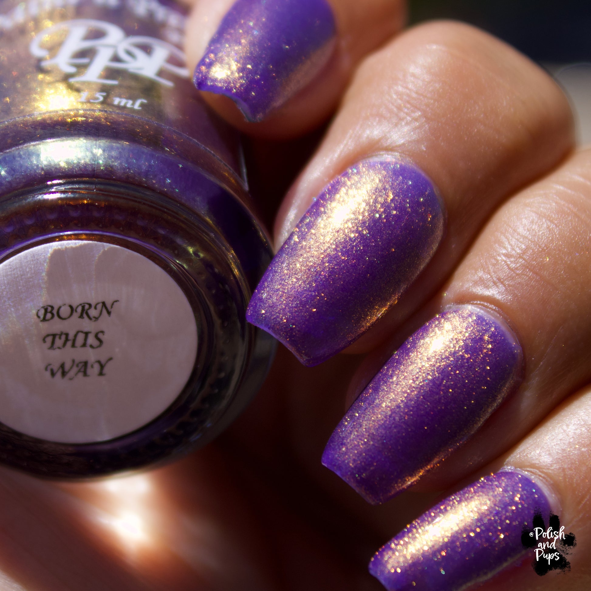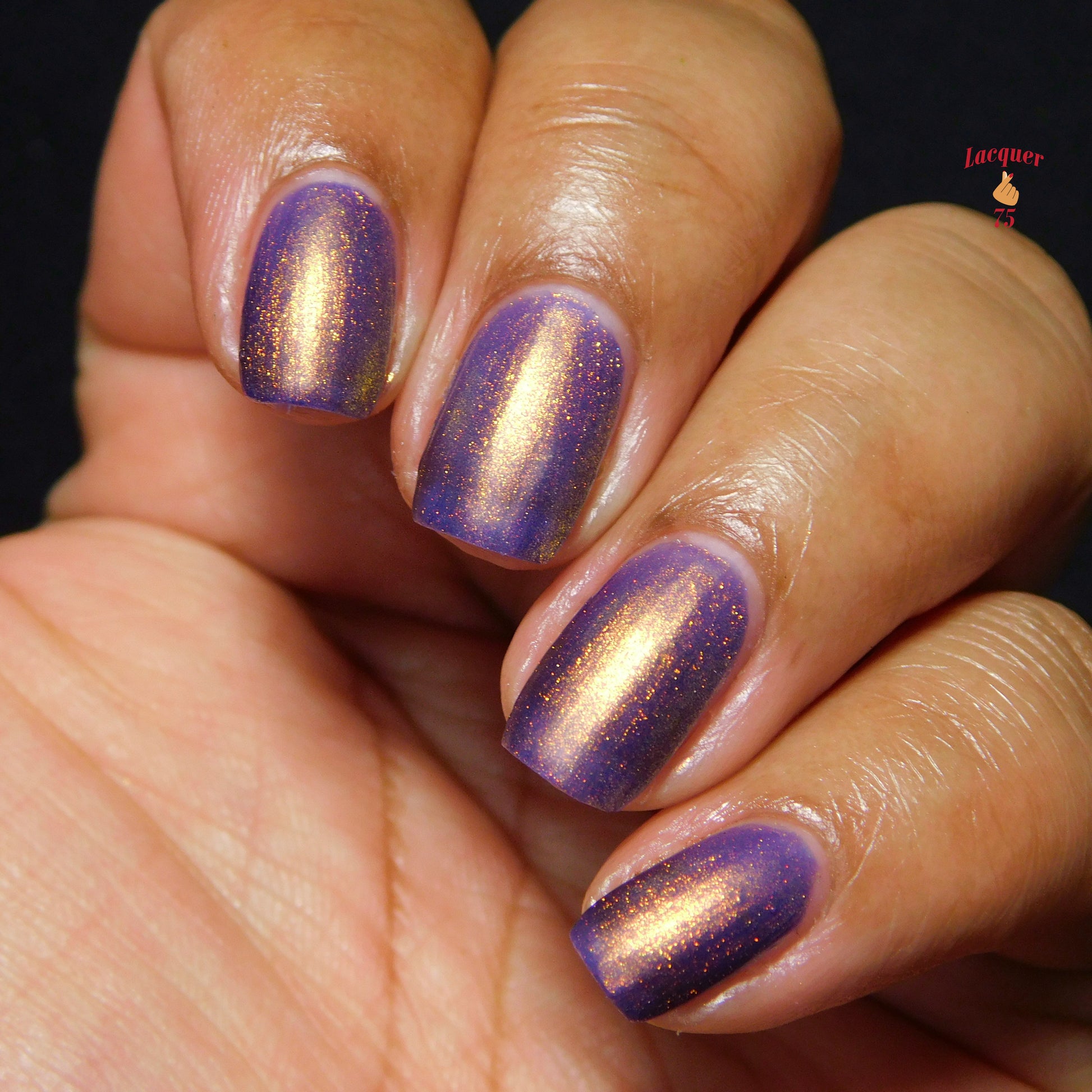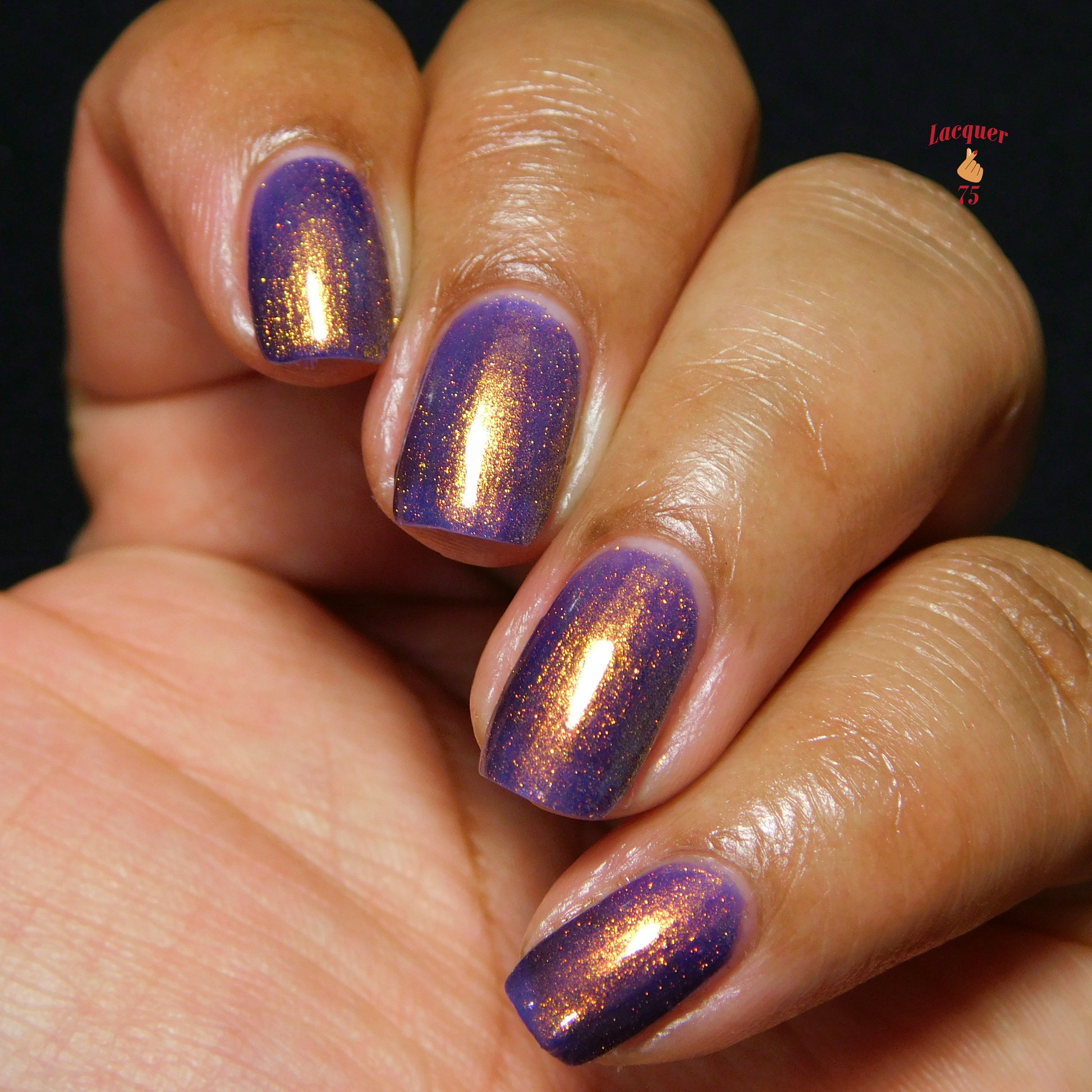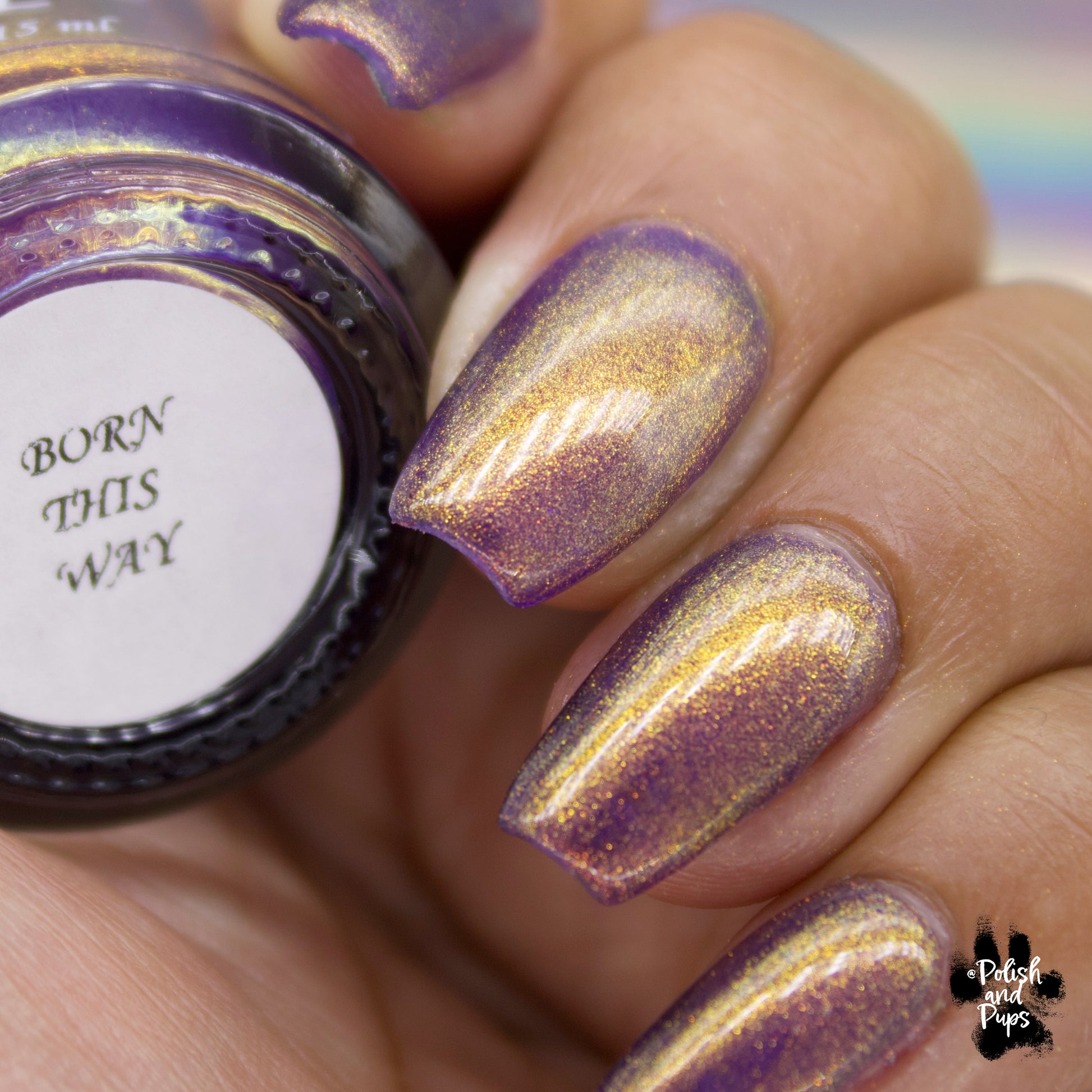 Born This way is a purple base nail polish with a golden aurora shimmer