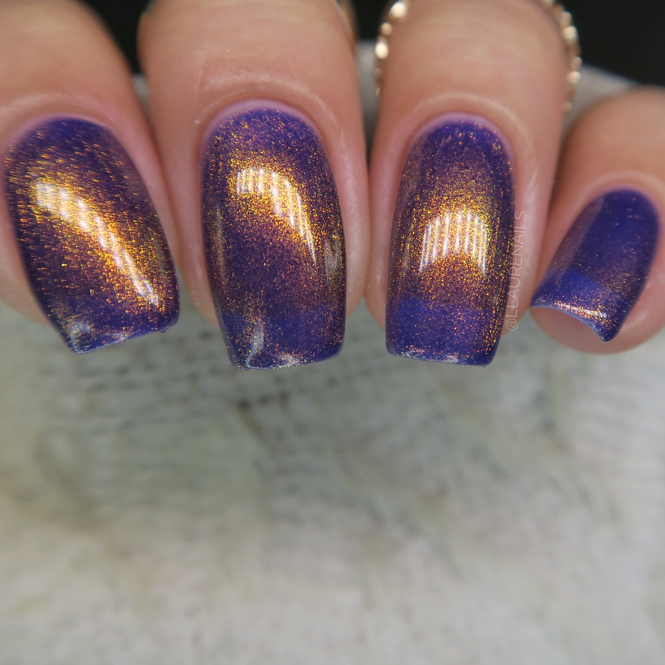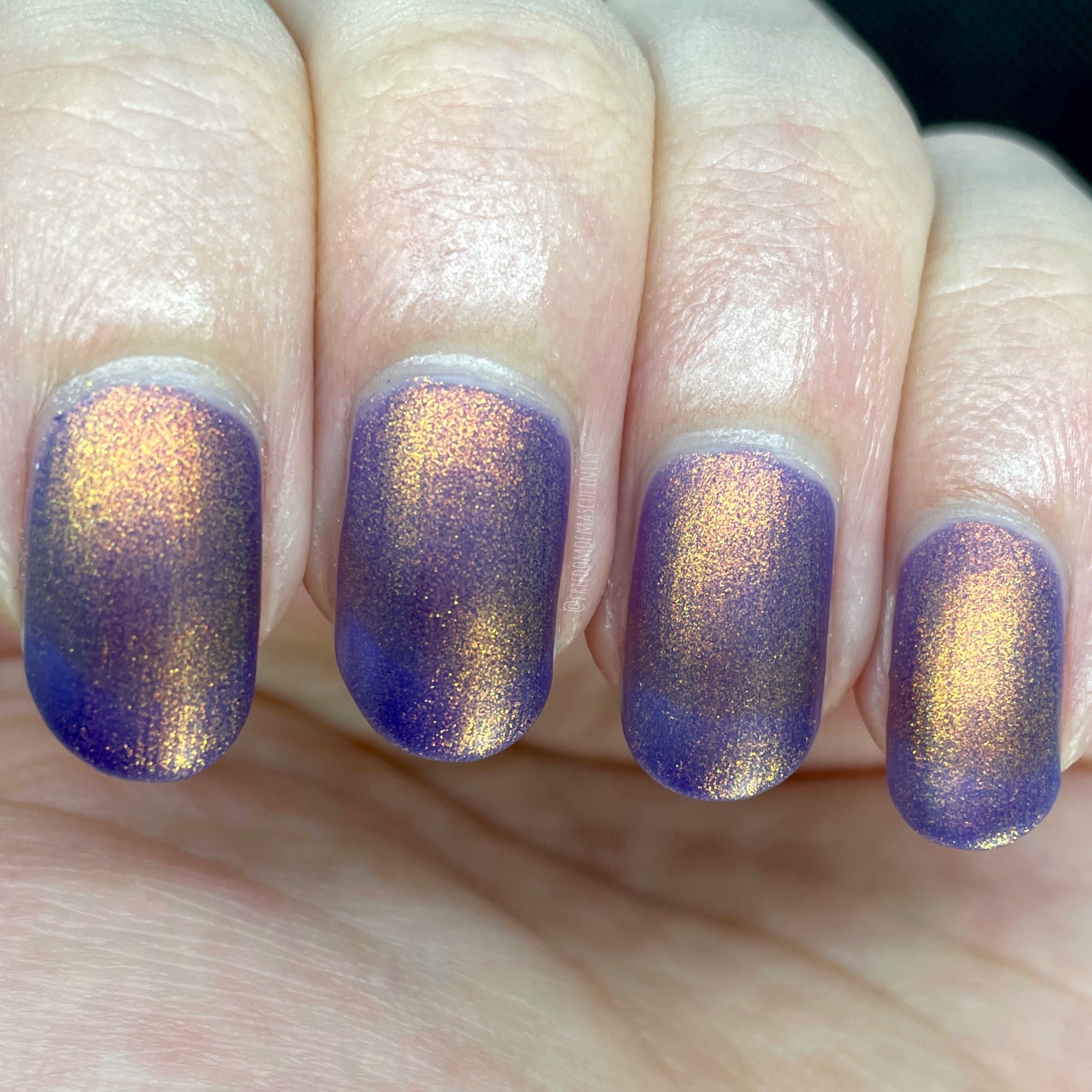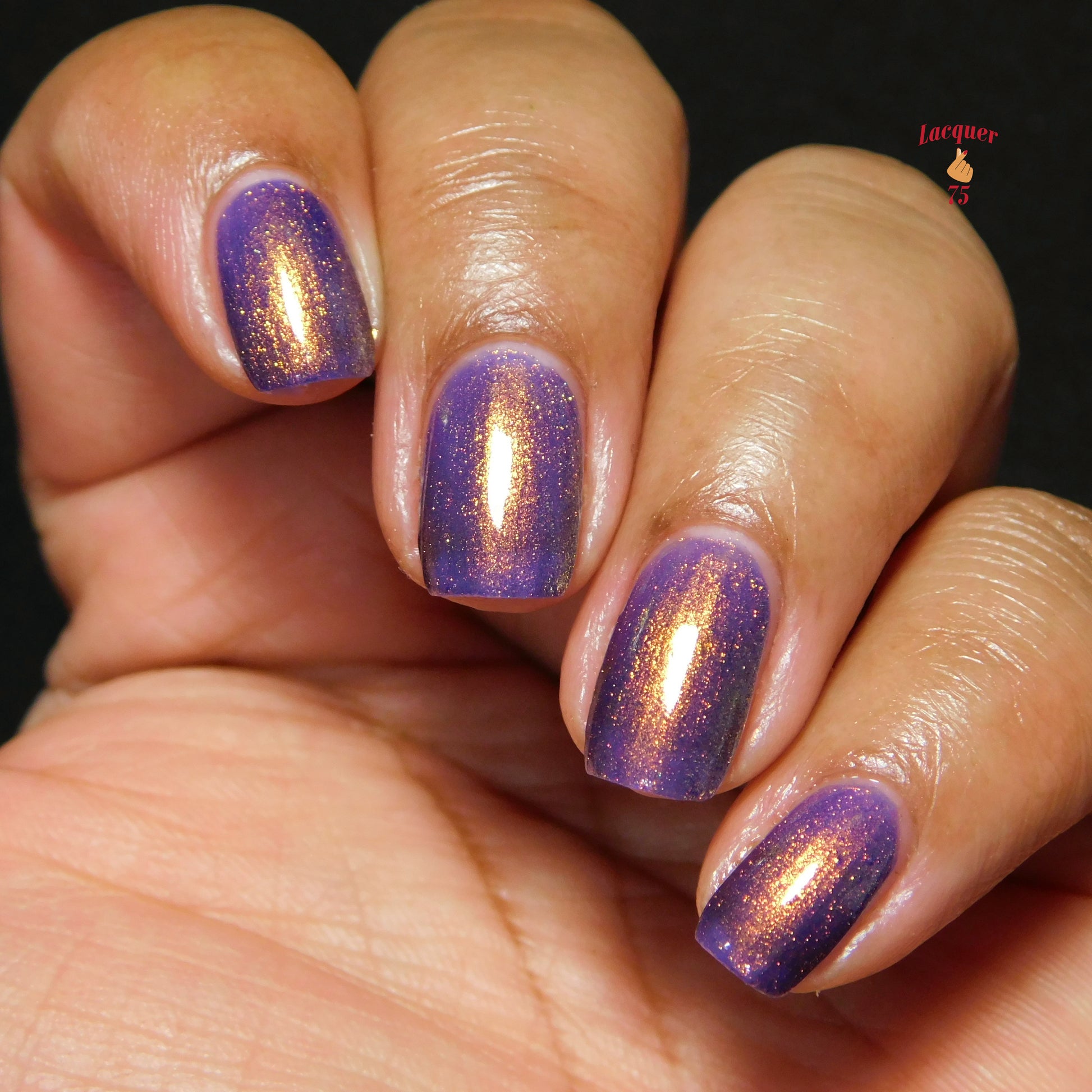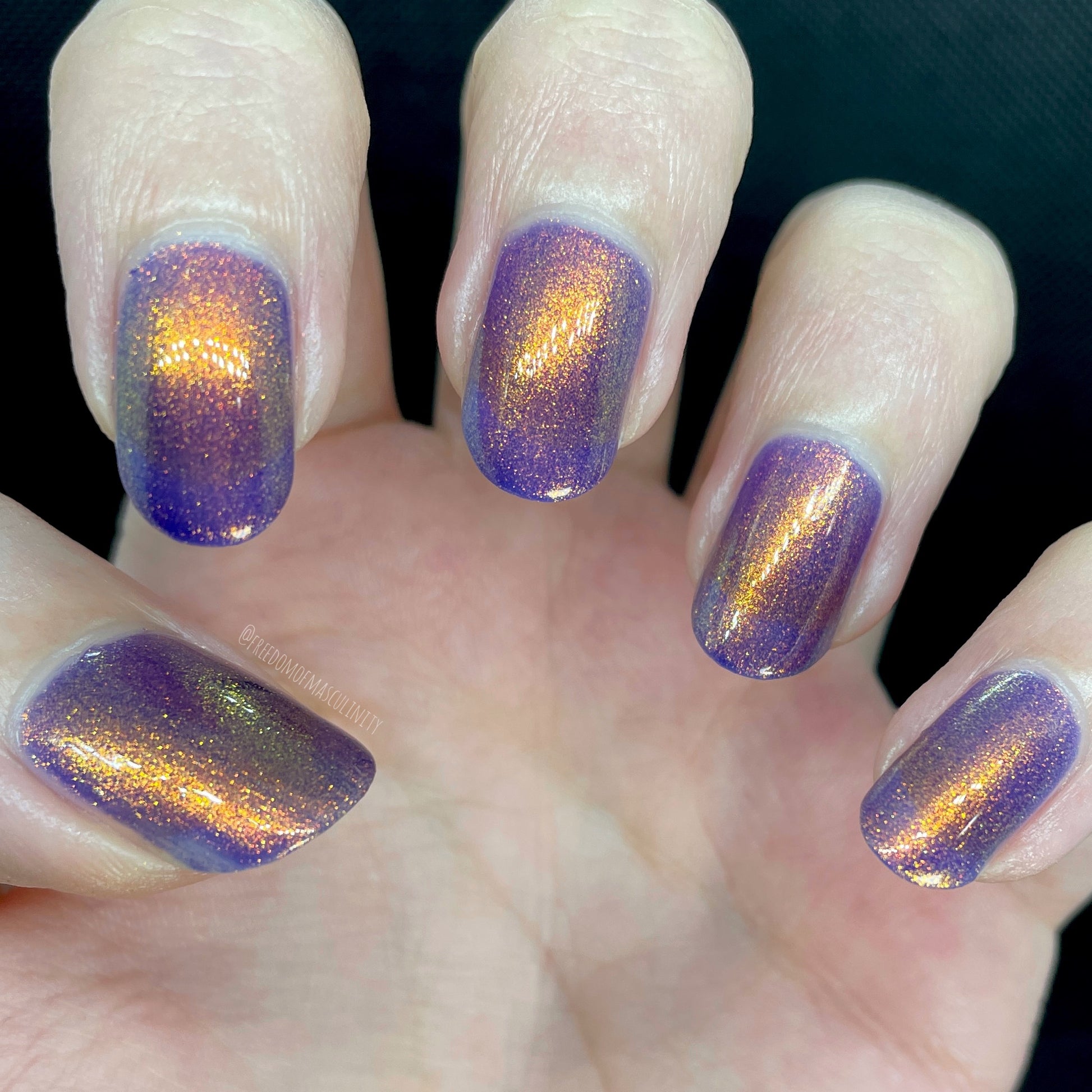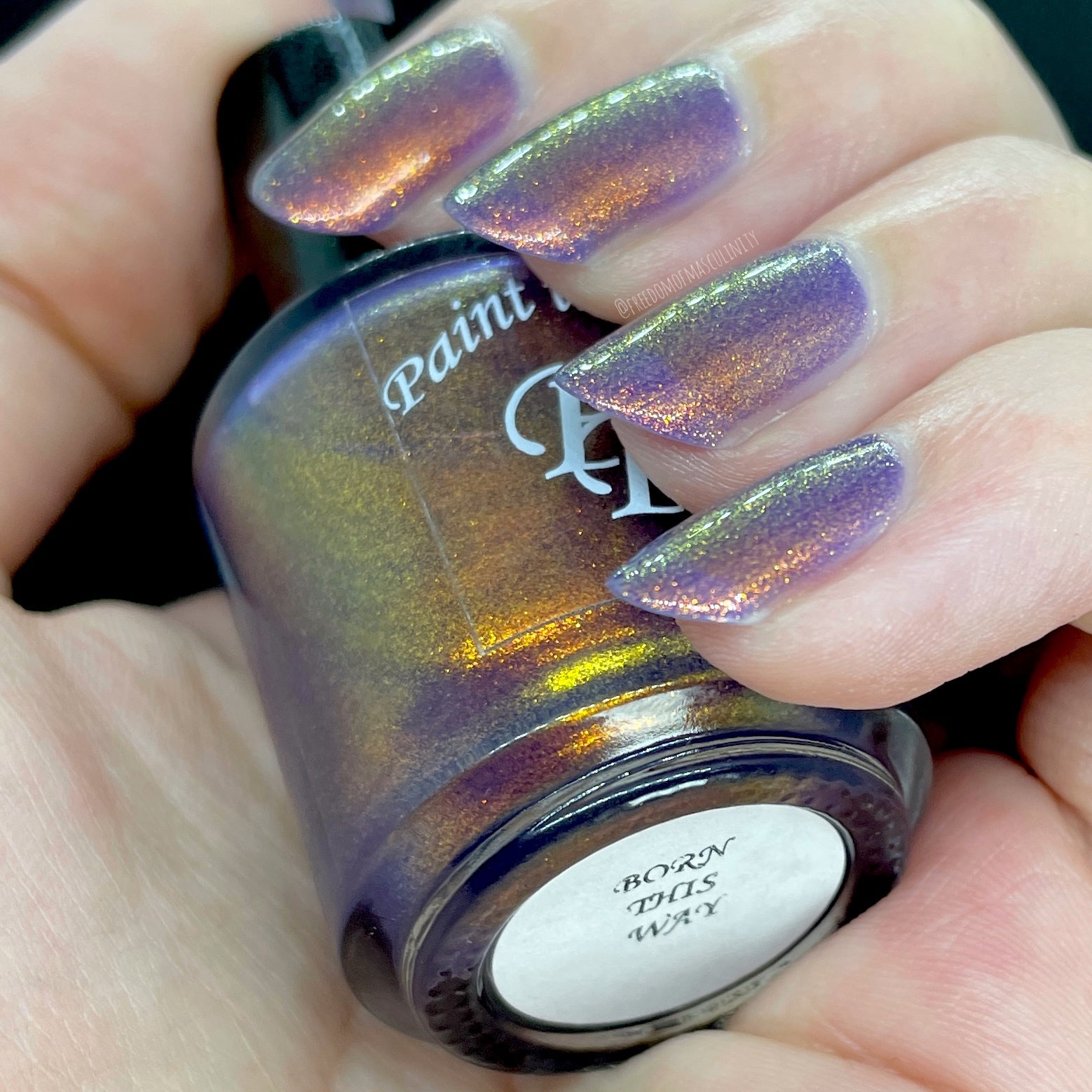 Born This way is a purple base nail polish with a golden aurora shimmer