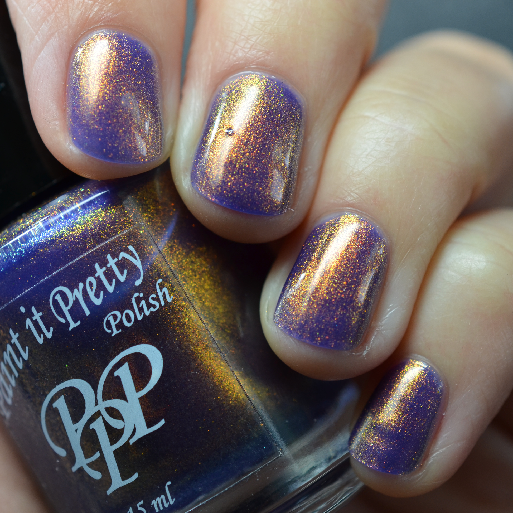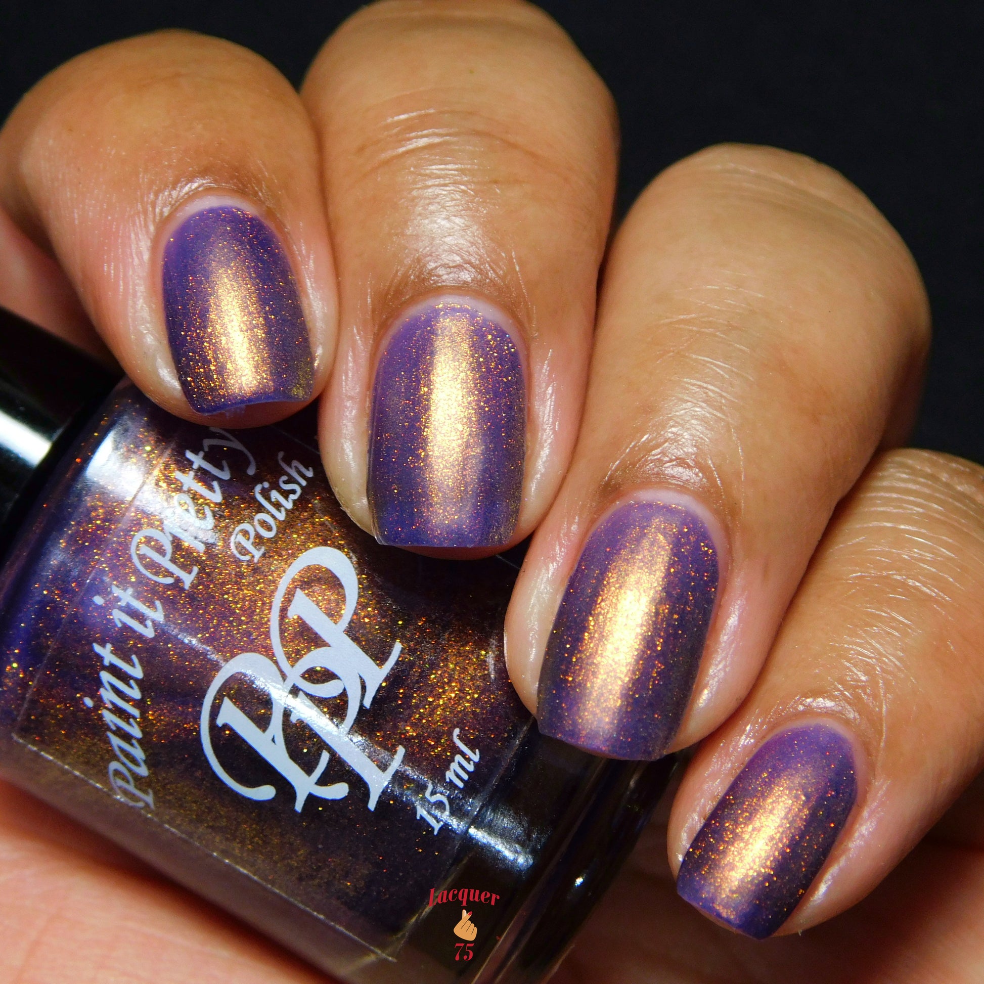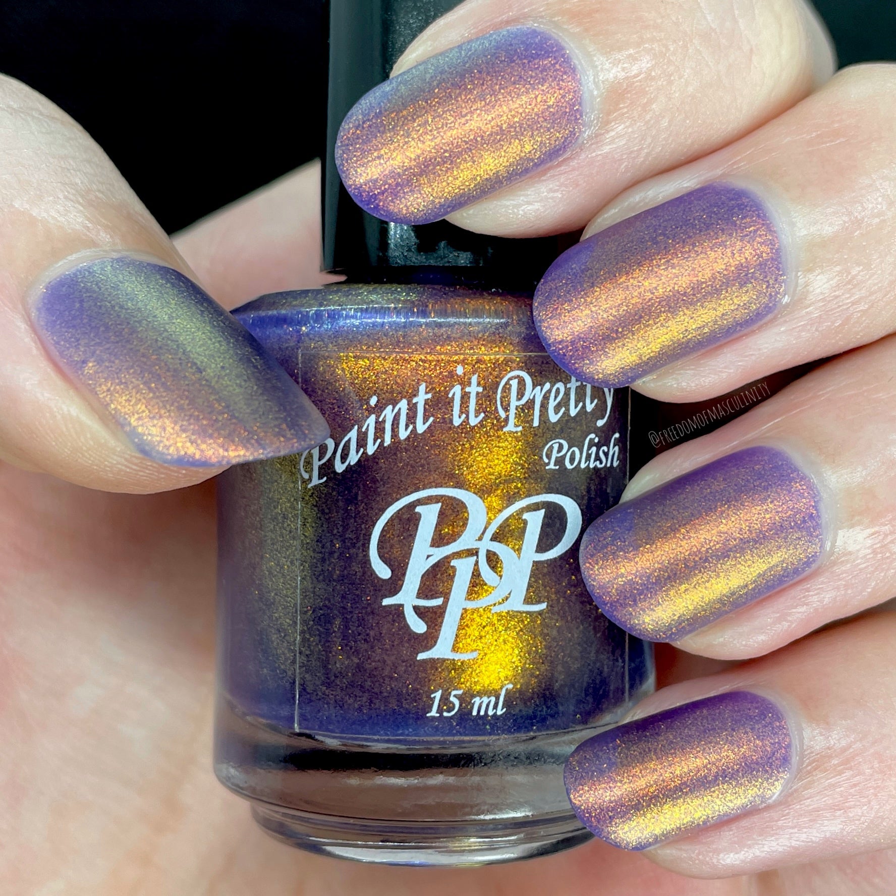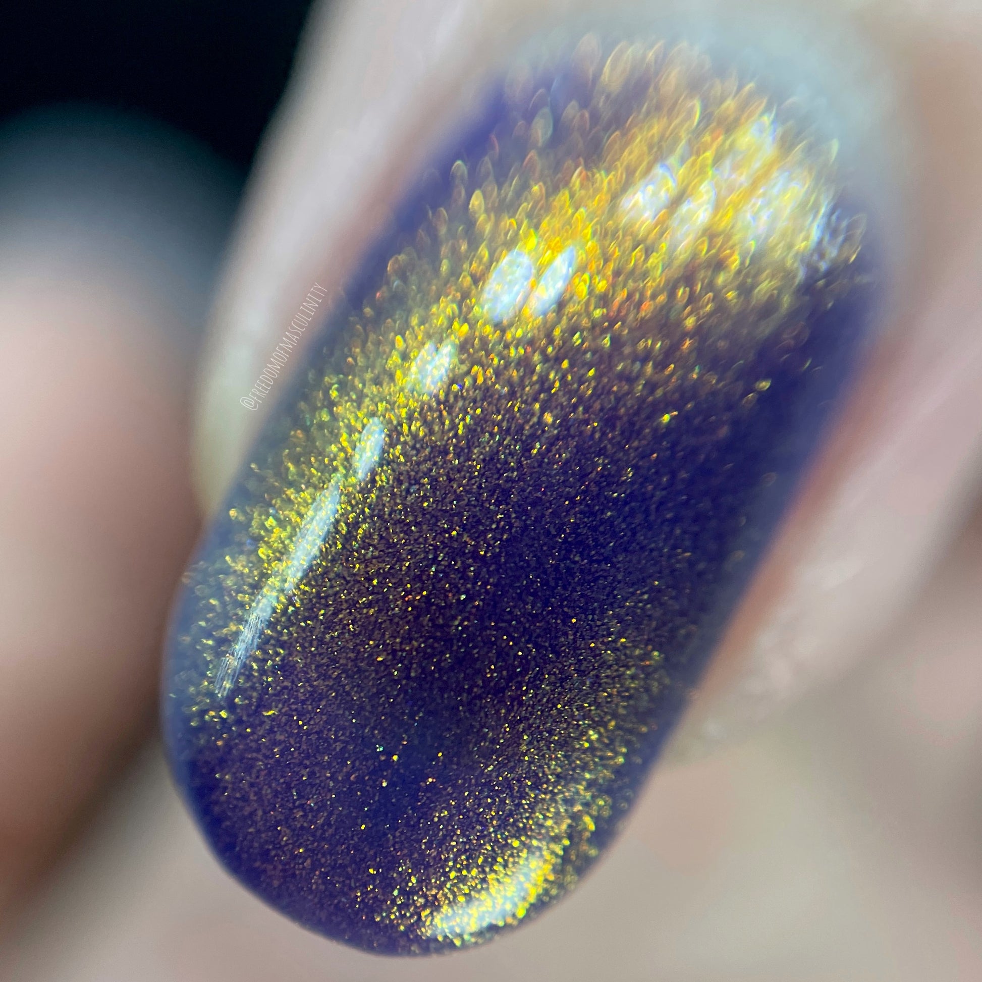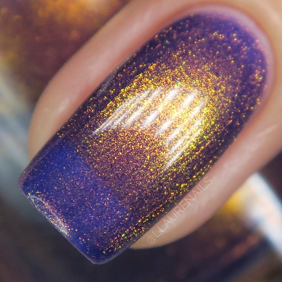 Born This way is a purple base nail polish with a golden aurora shimmer