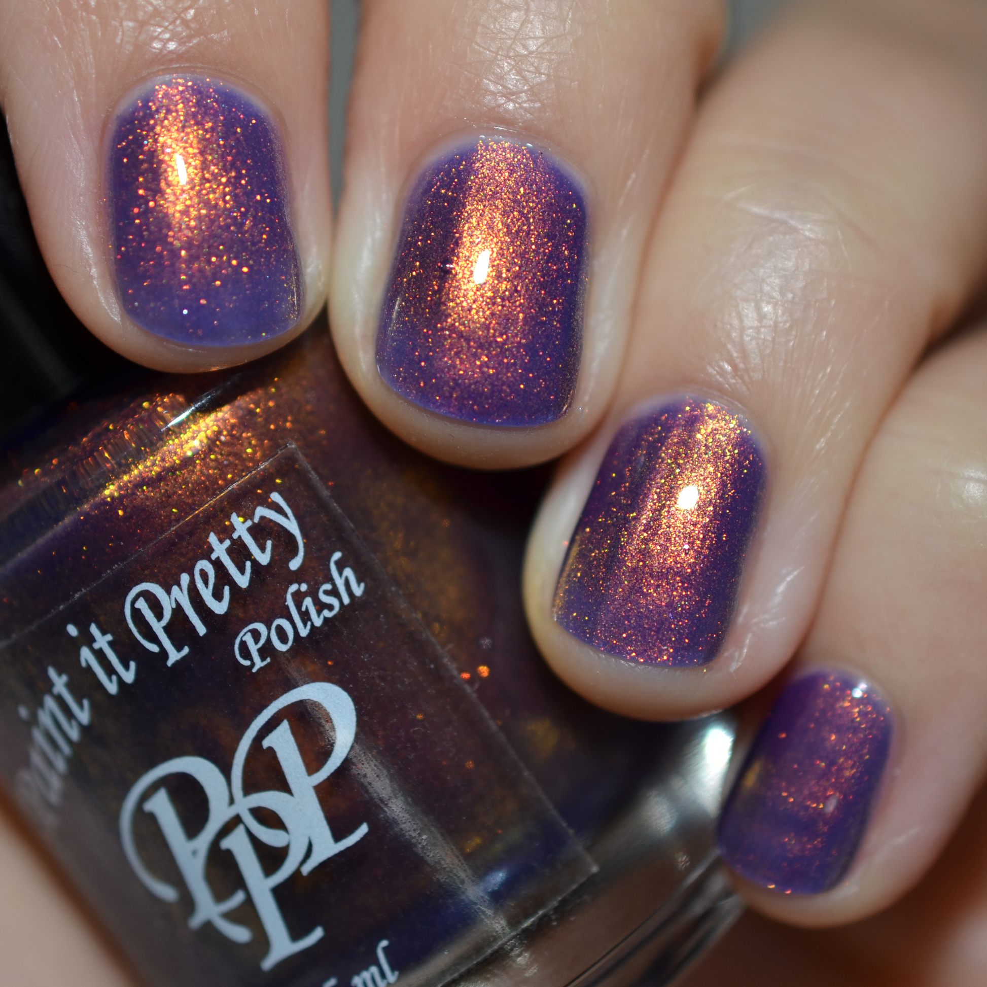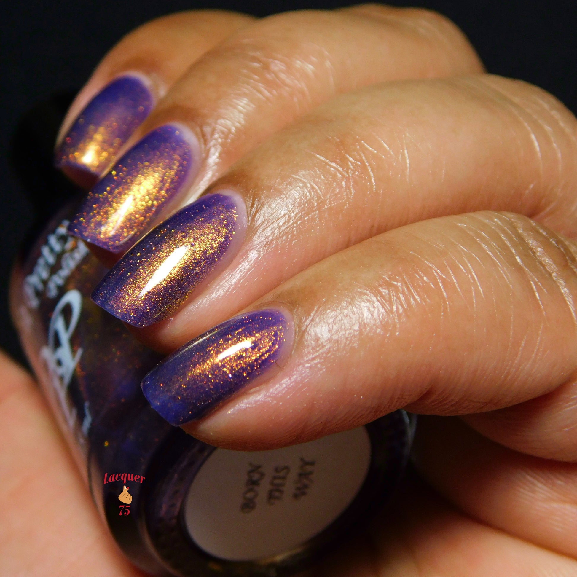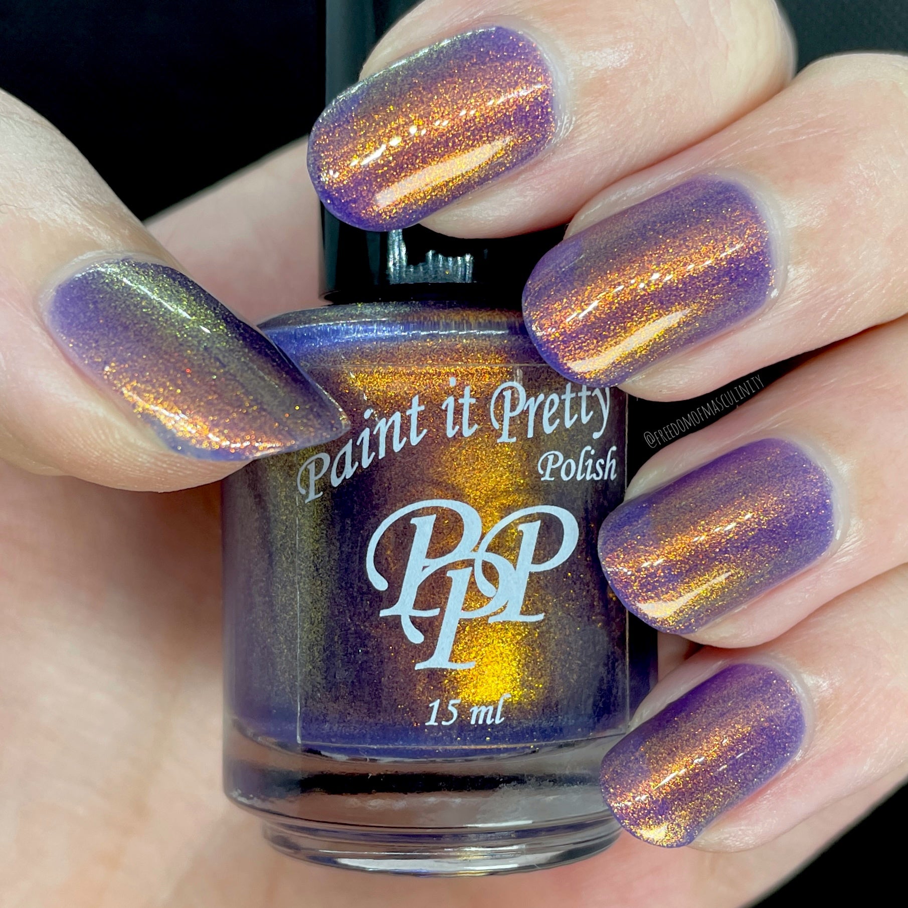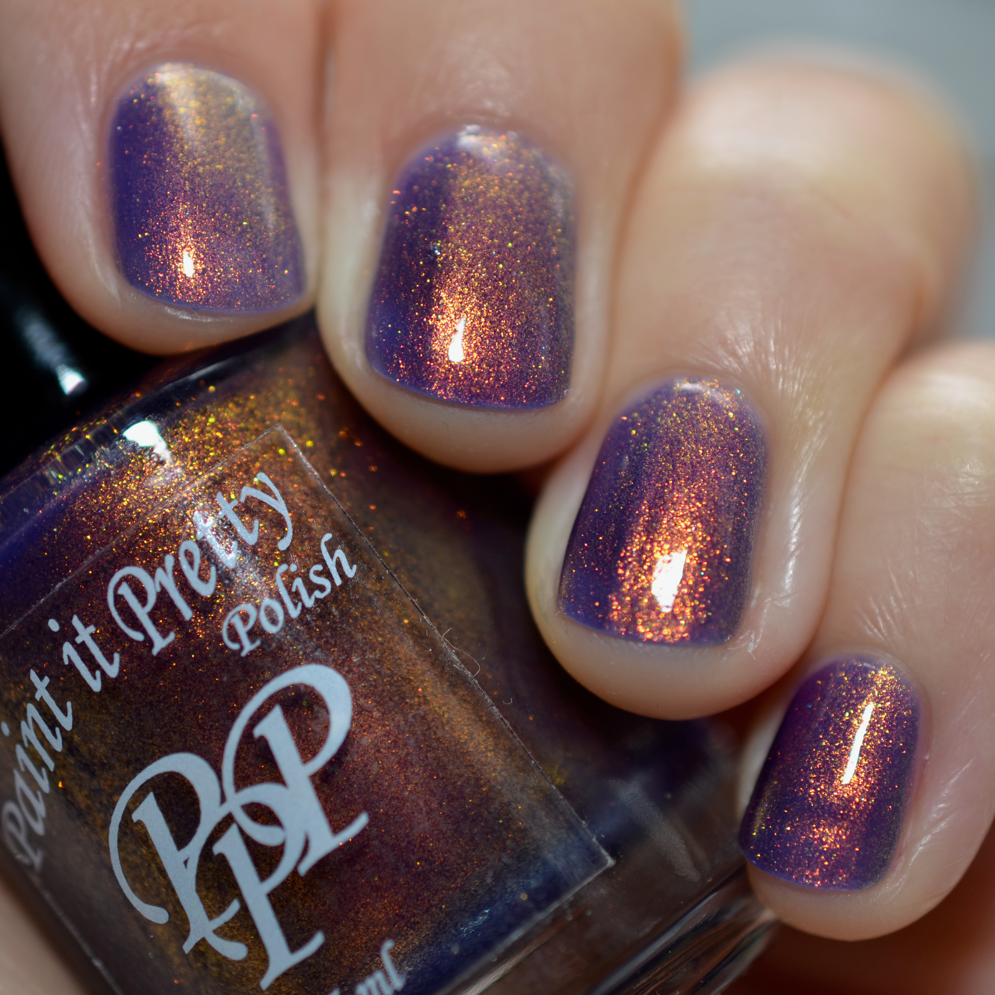 Born This way is a purple base nail polish with a golden aurora shimmer