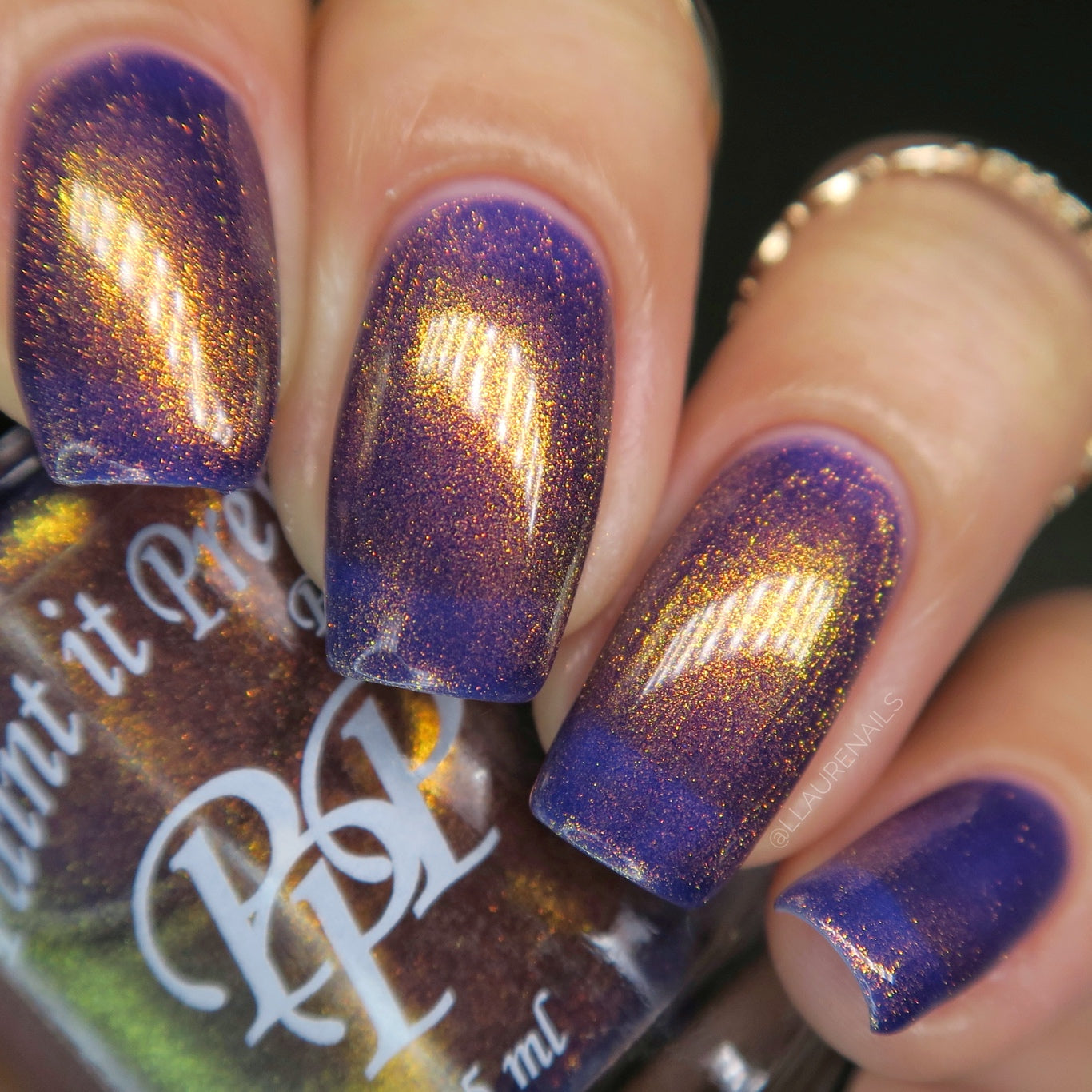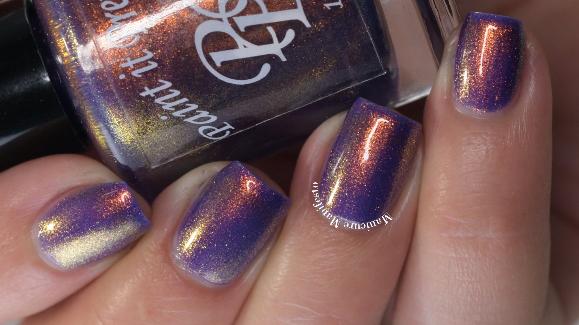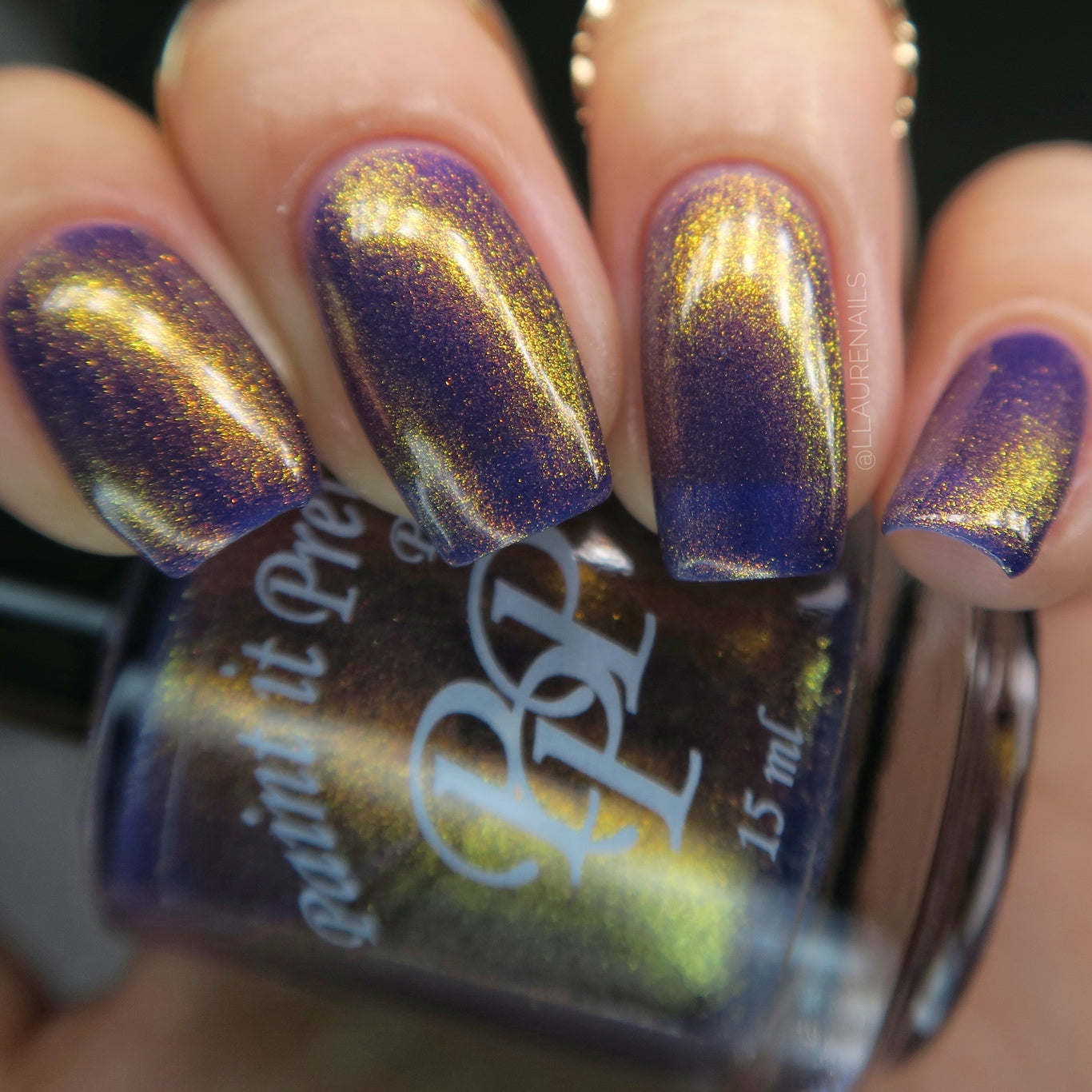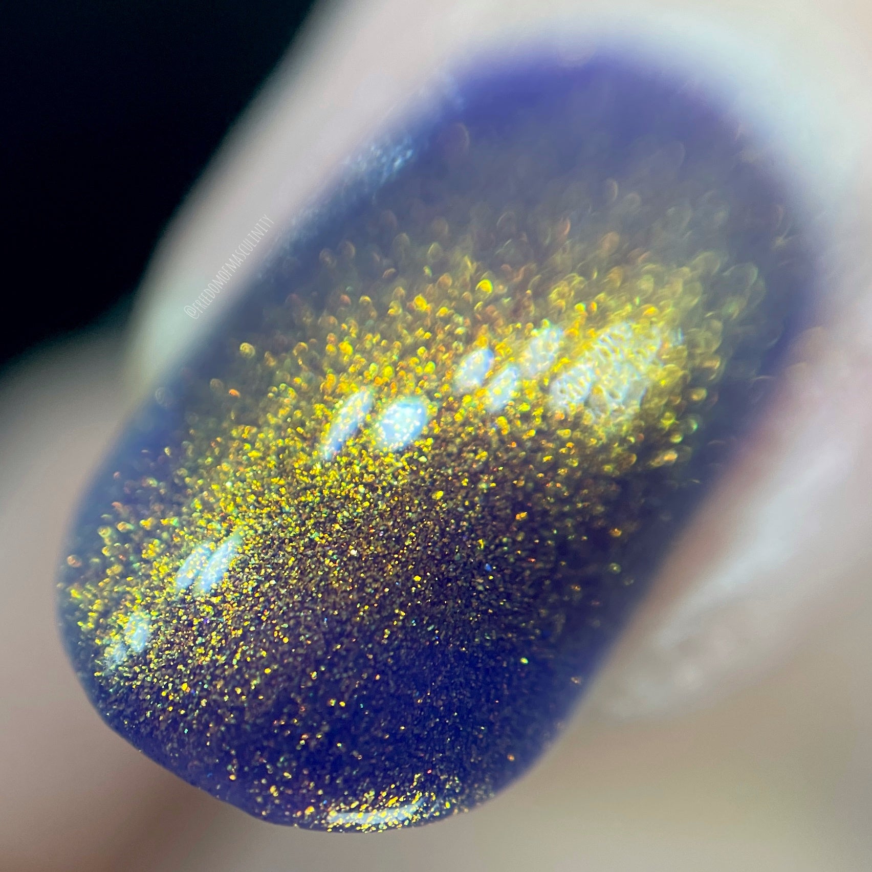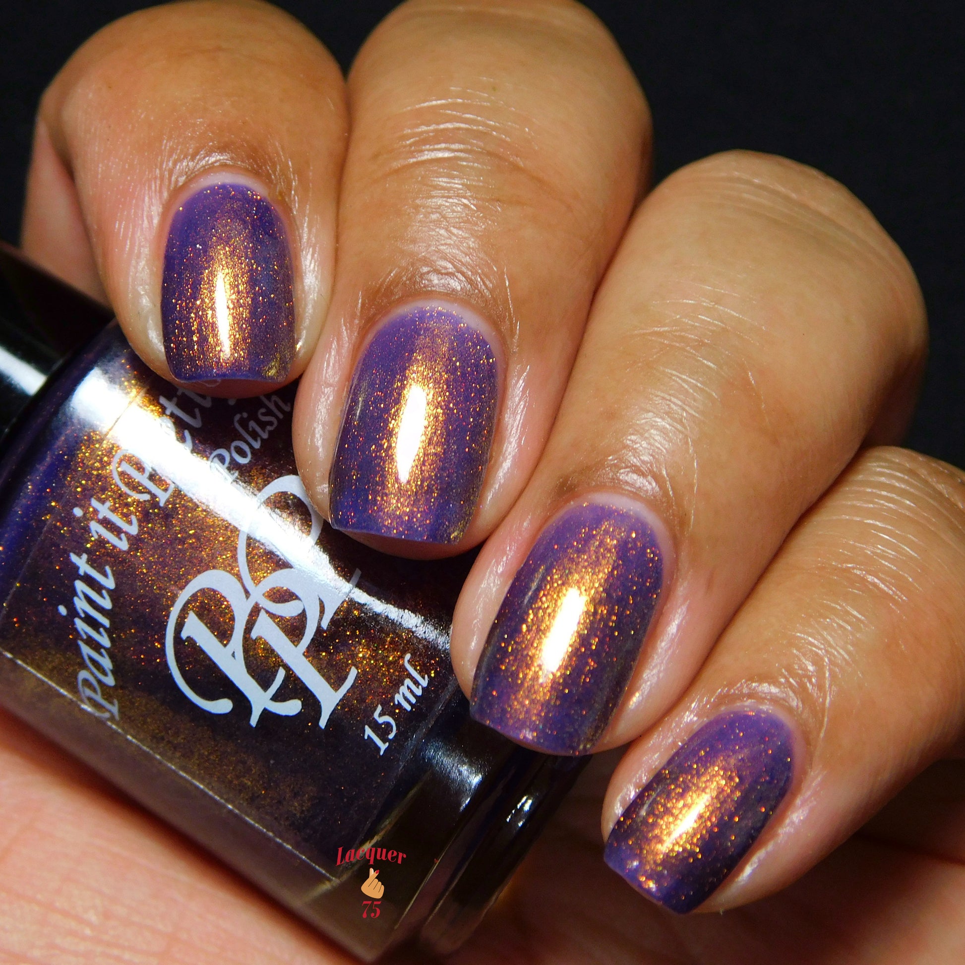 Born This way is a purple base nail polish with a golden aurora shimmer