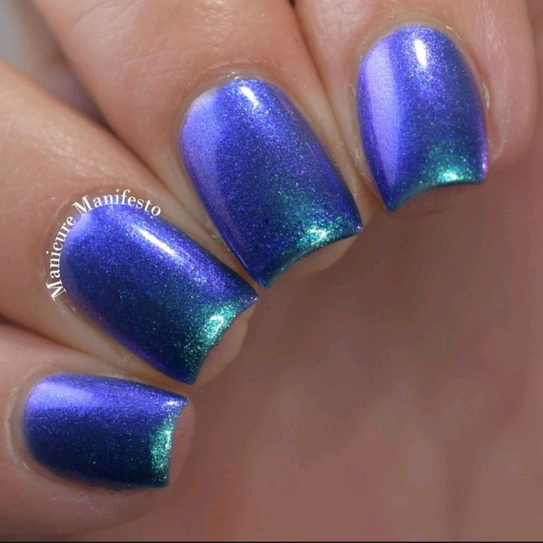 Gentle rain, soft breezes, warm sunbeams. Spring is here and this cornflower blue polish with a shimmer that shifts from green to blue to purple is the perfect way to celebrate the change in seasons.