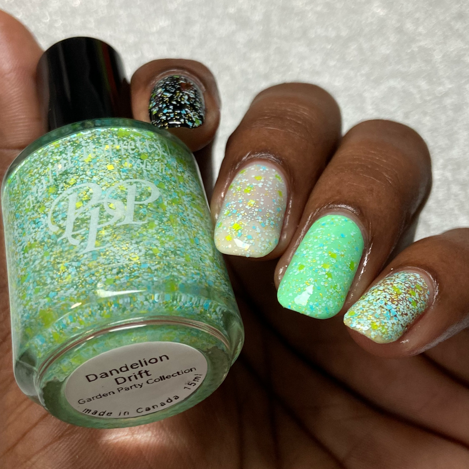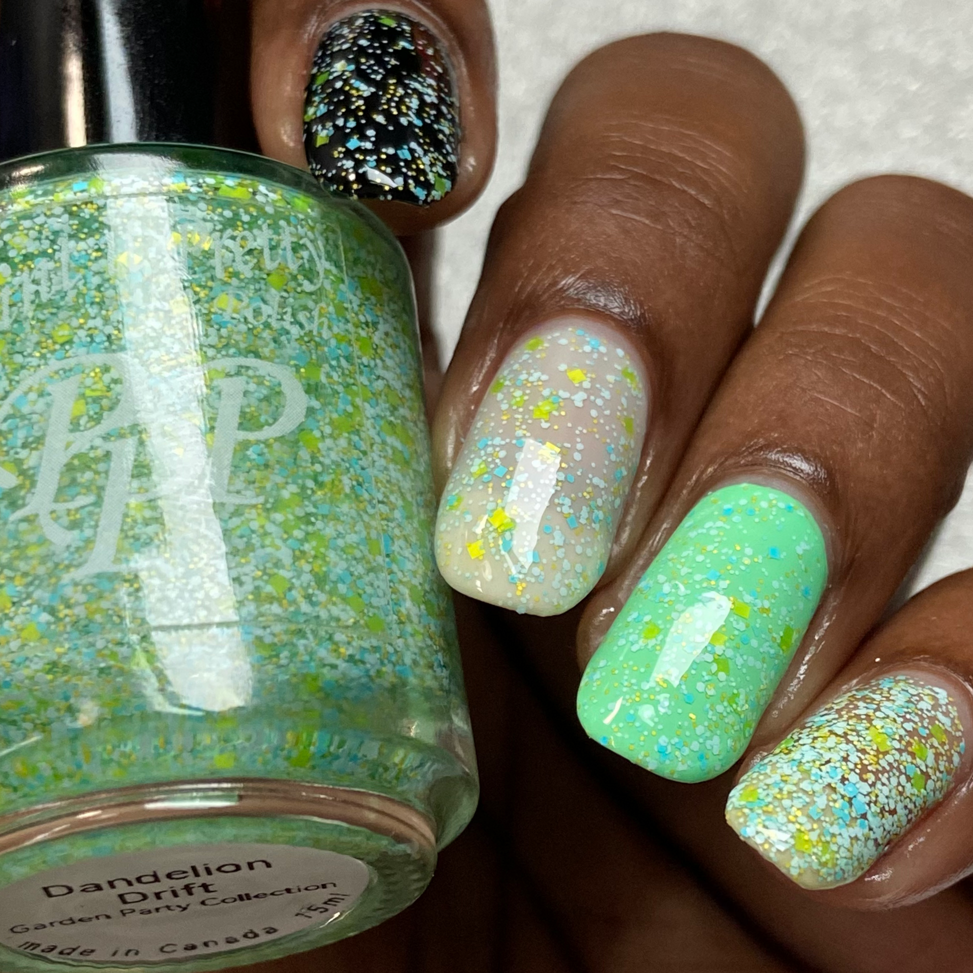 Dandelion Drift,💨 a soft, meadow-inspired blend of sunny matte yellow glitters and sky-blue flecks. It’s like a spring breeze captured in a bottle. One coat for a delicate sprinkle, two for a full garden on your fingertips.🌼