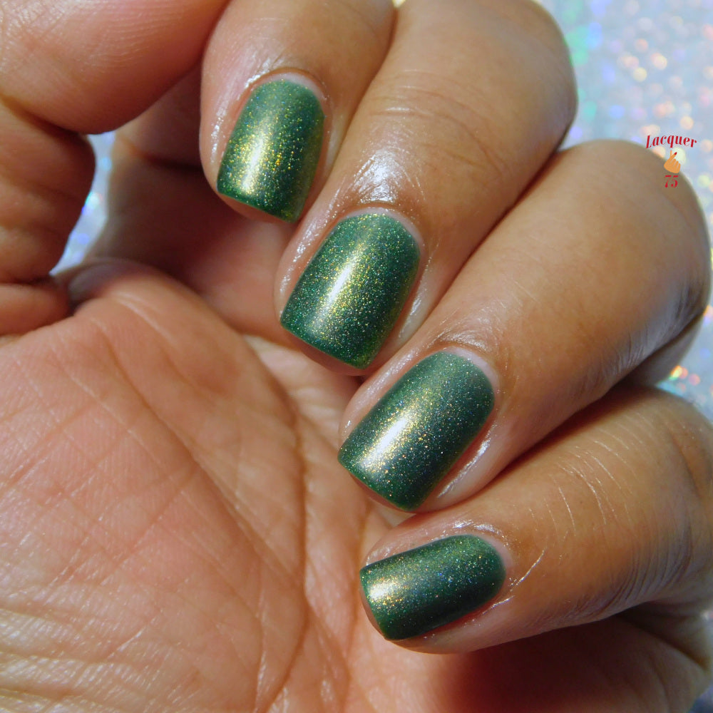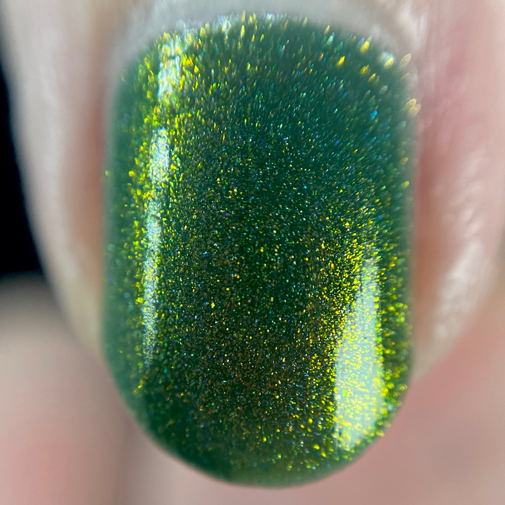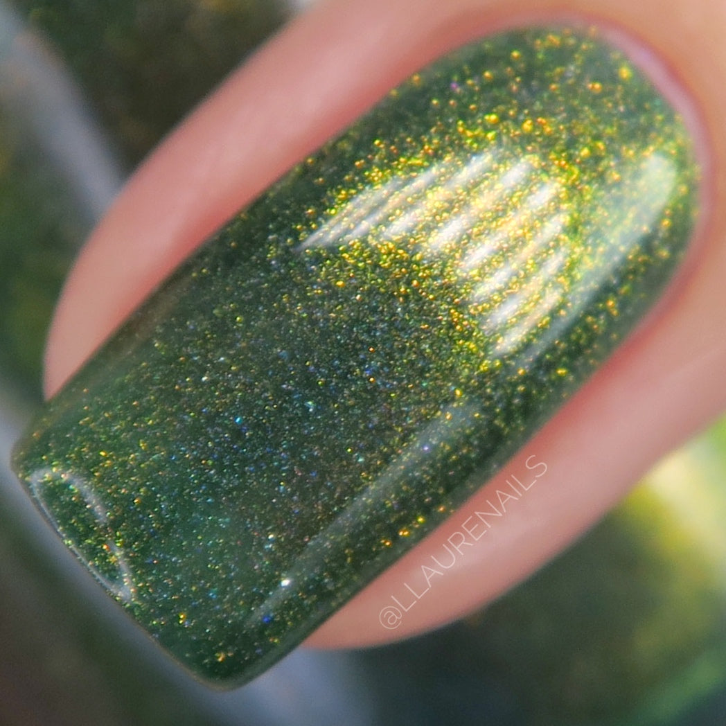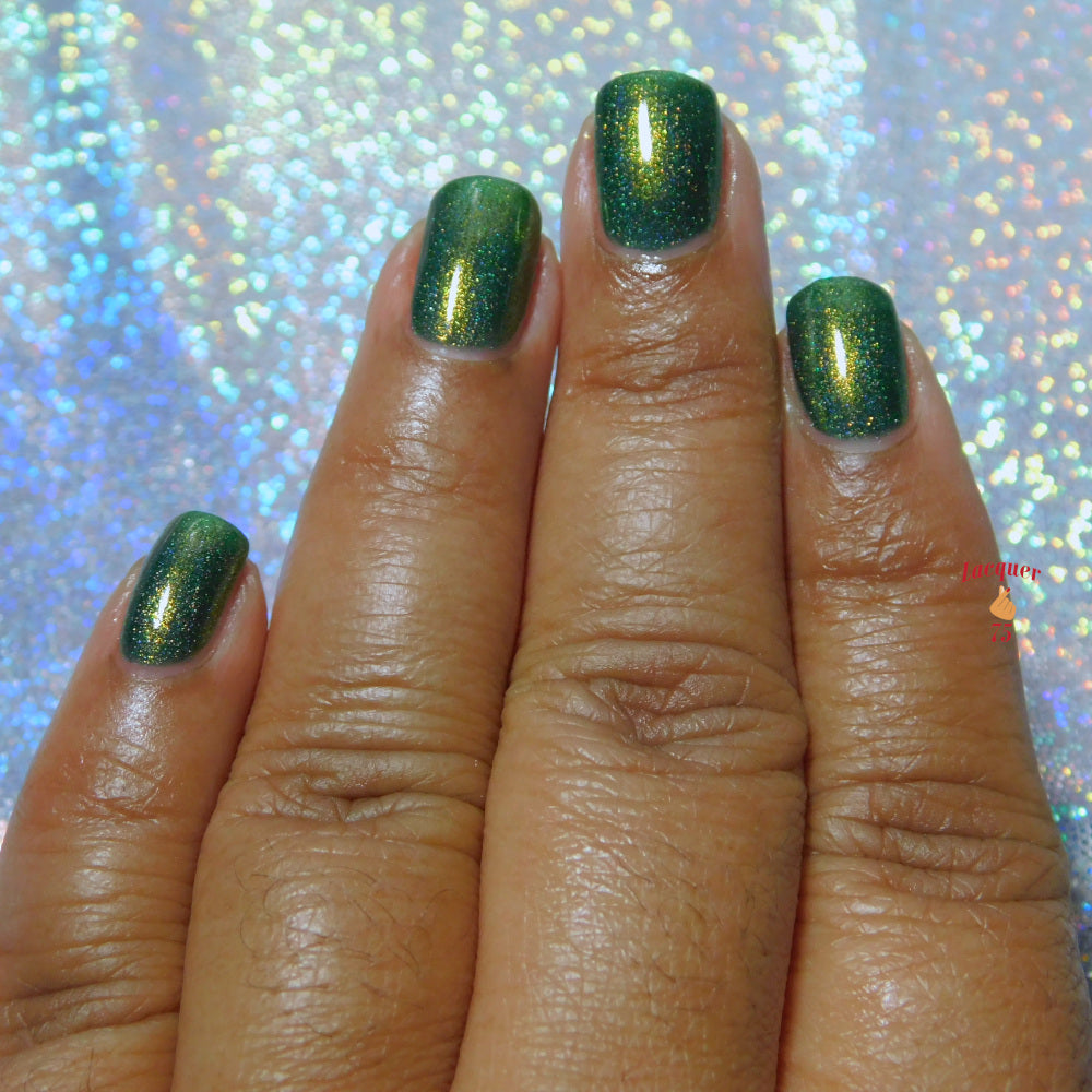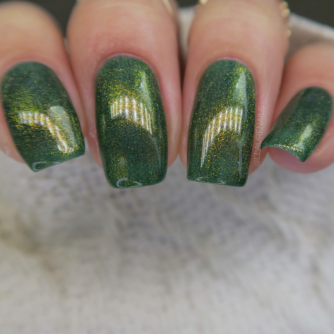 Your a Mean One is a green holographic polish with a gold/green shimmer.