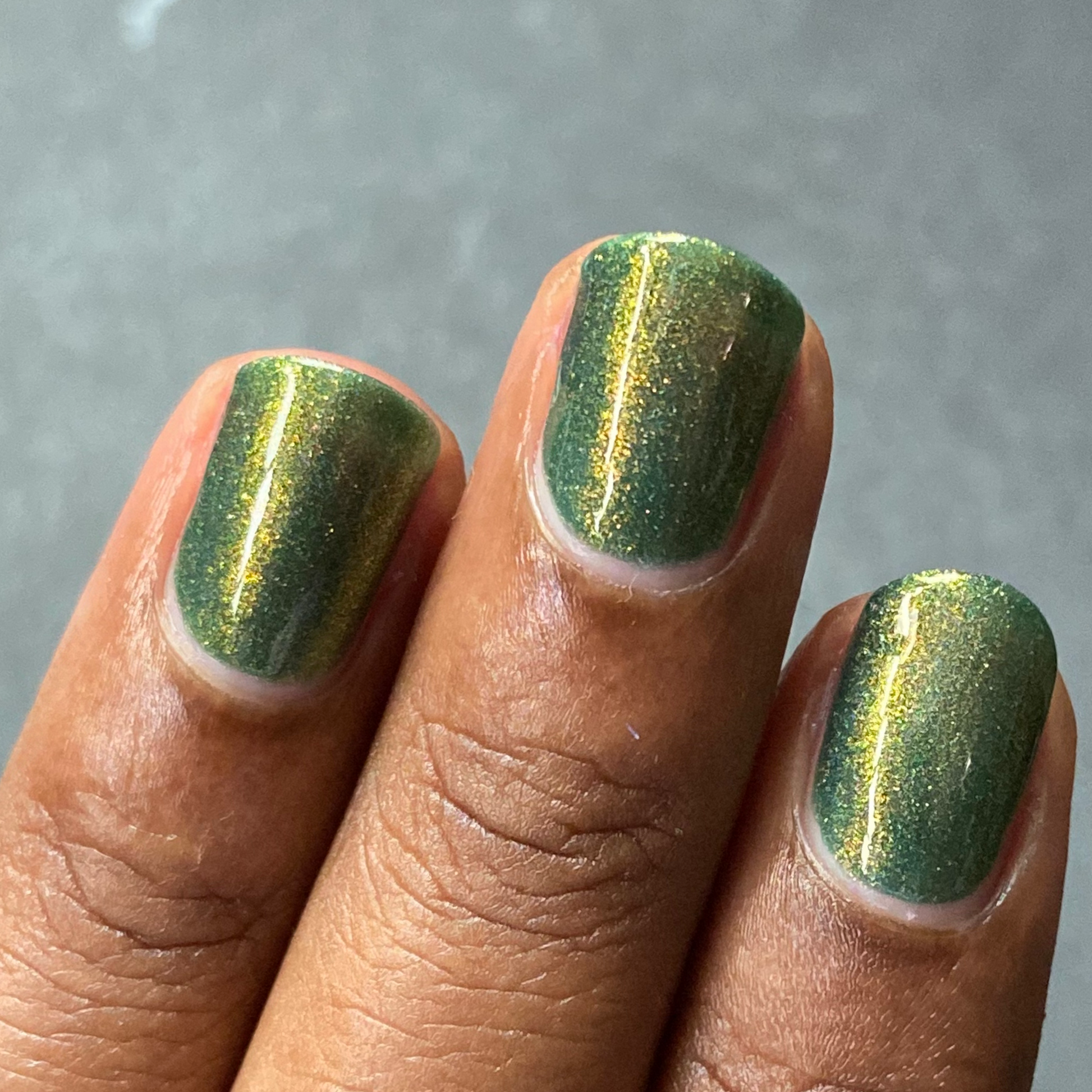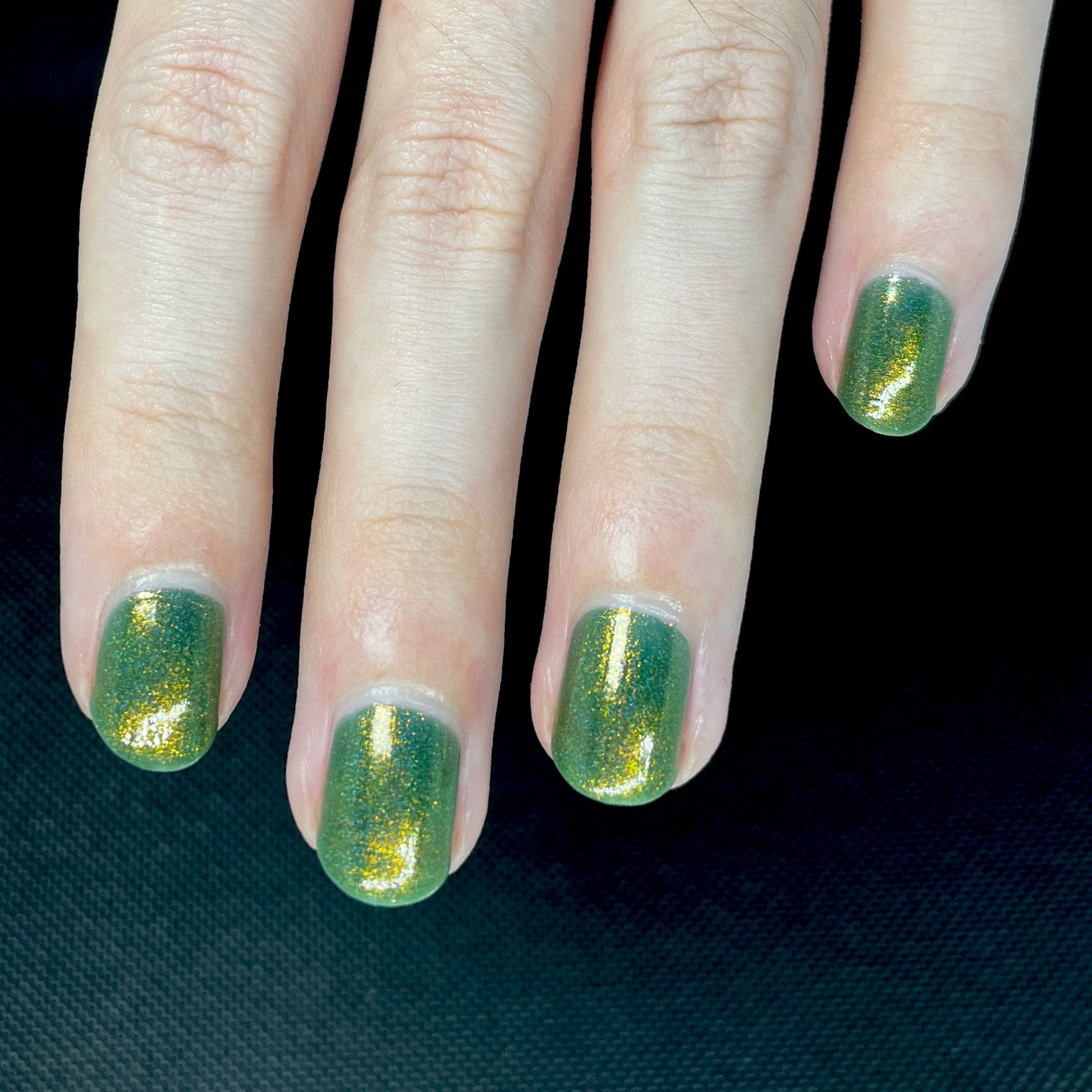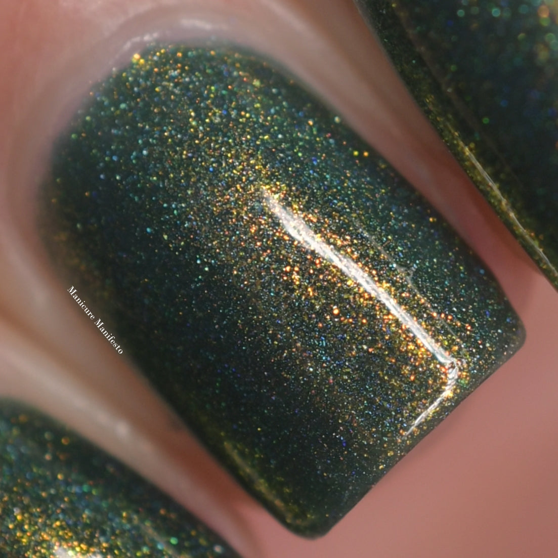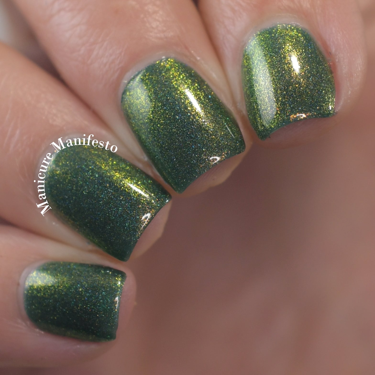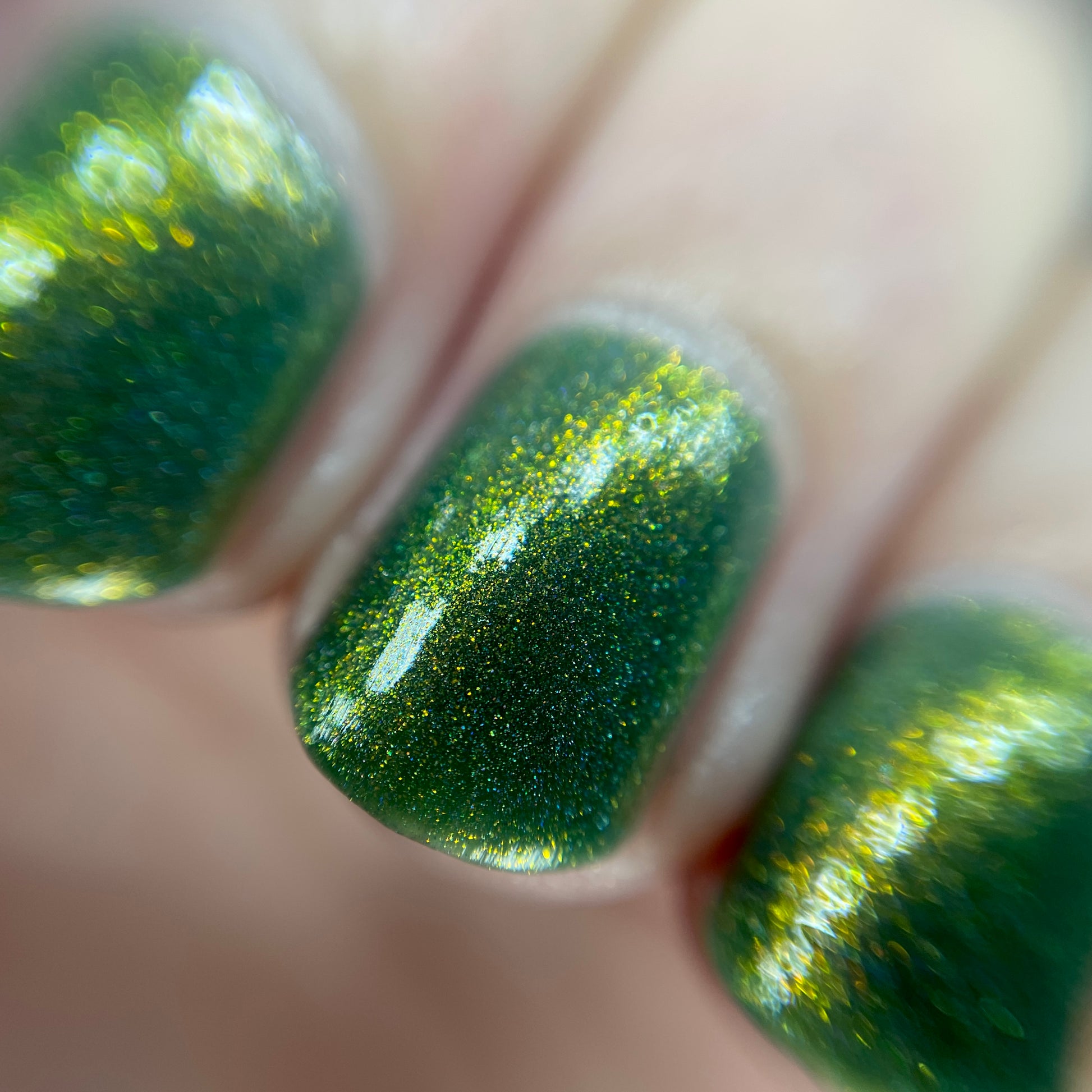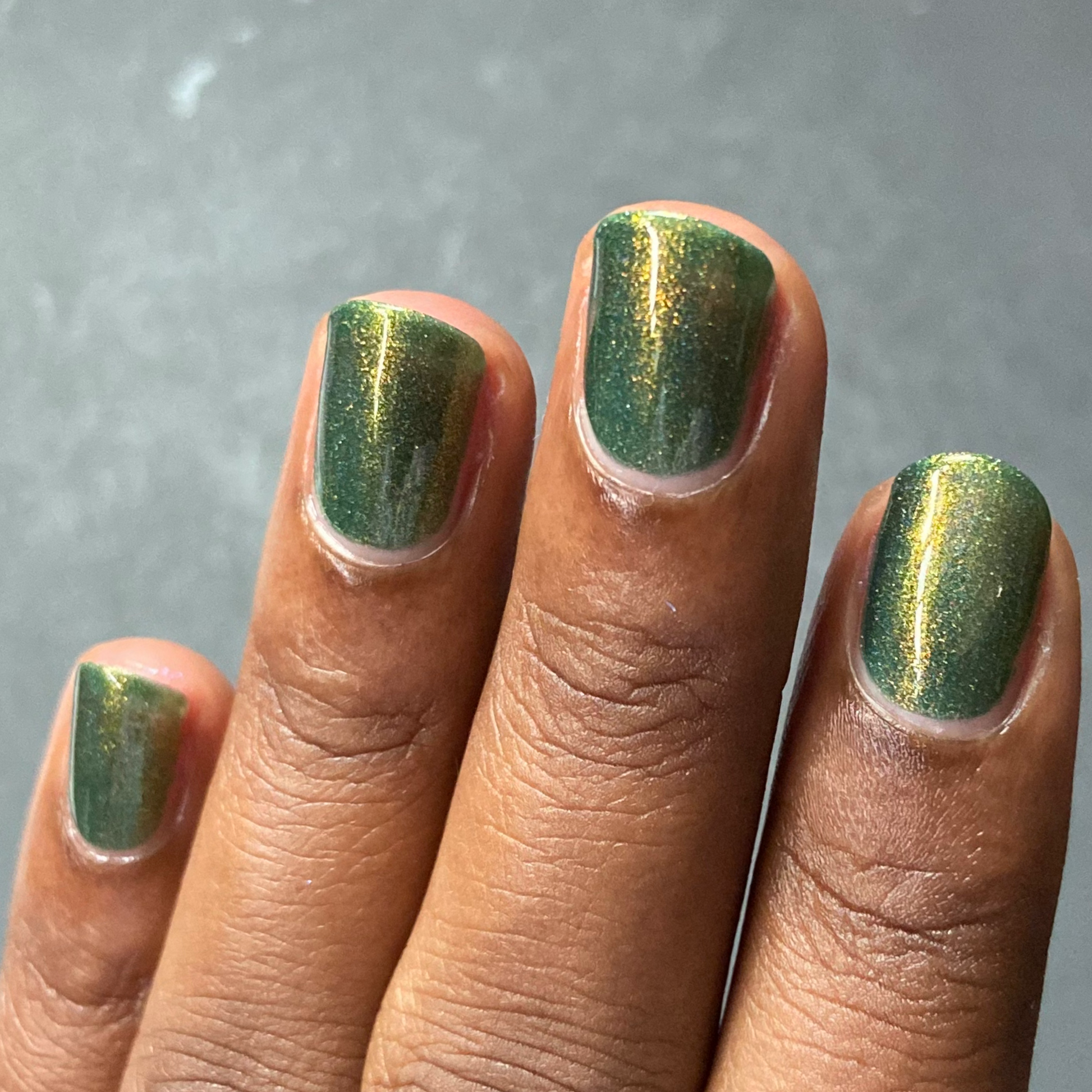 Your a Mean One is a green holographic polish with a gold/green shimmer.