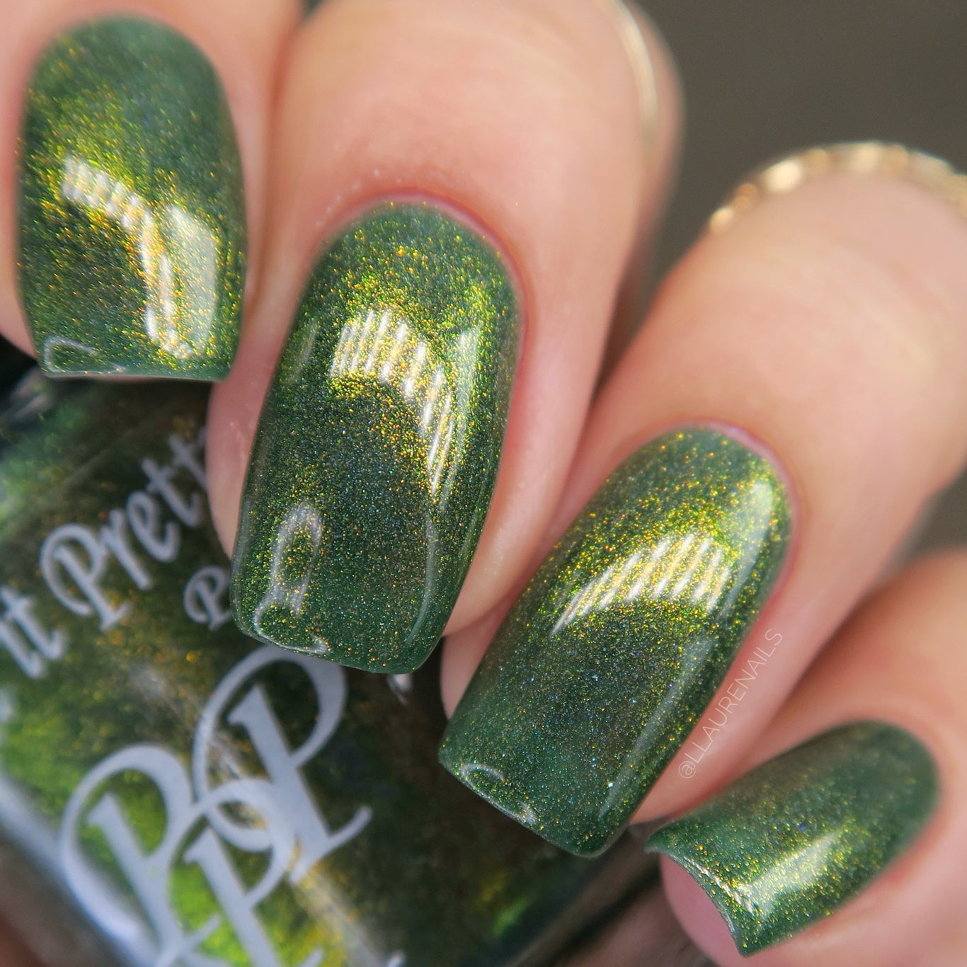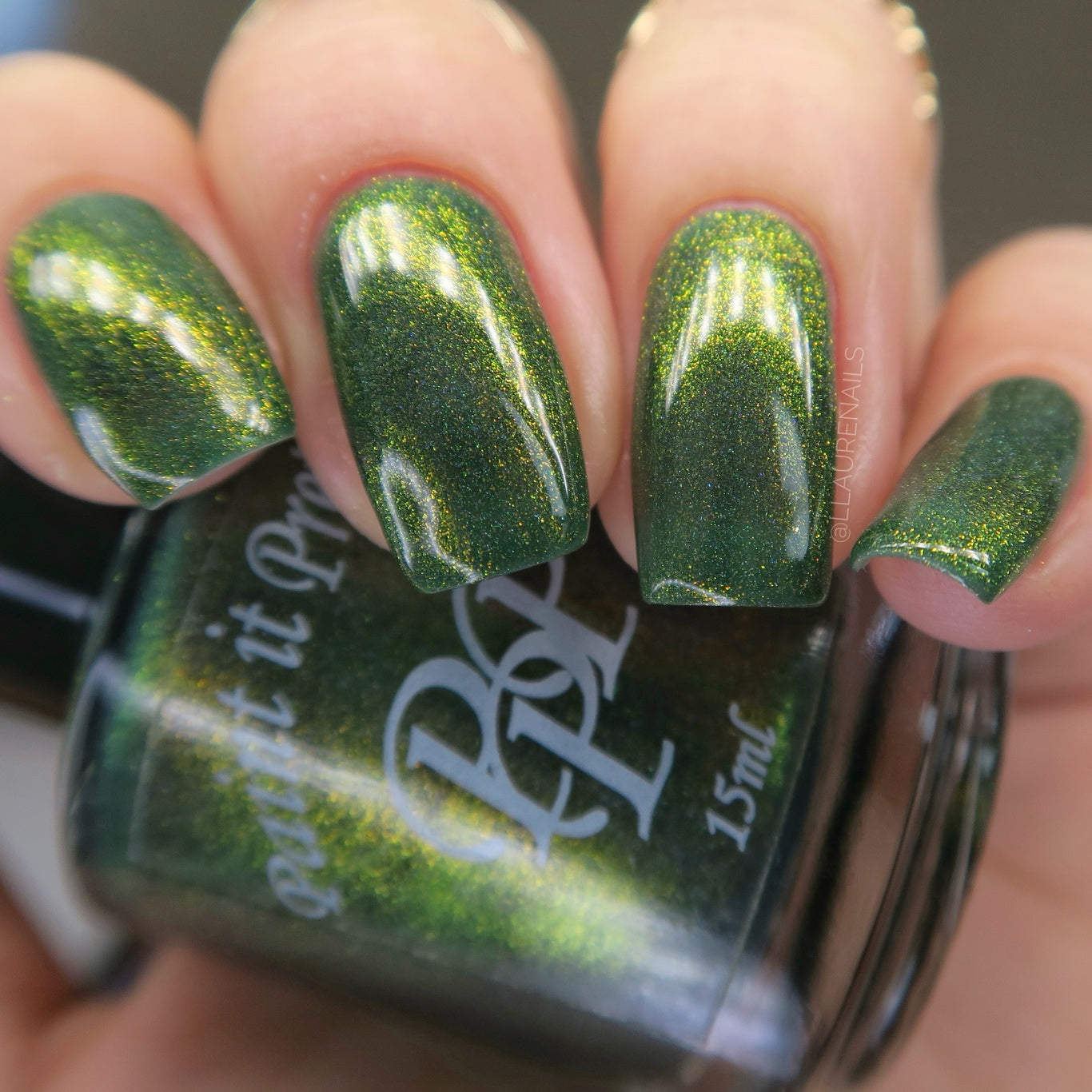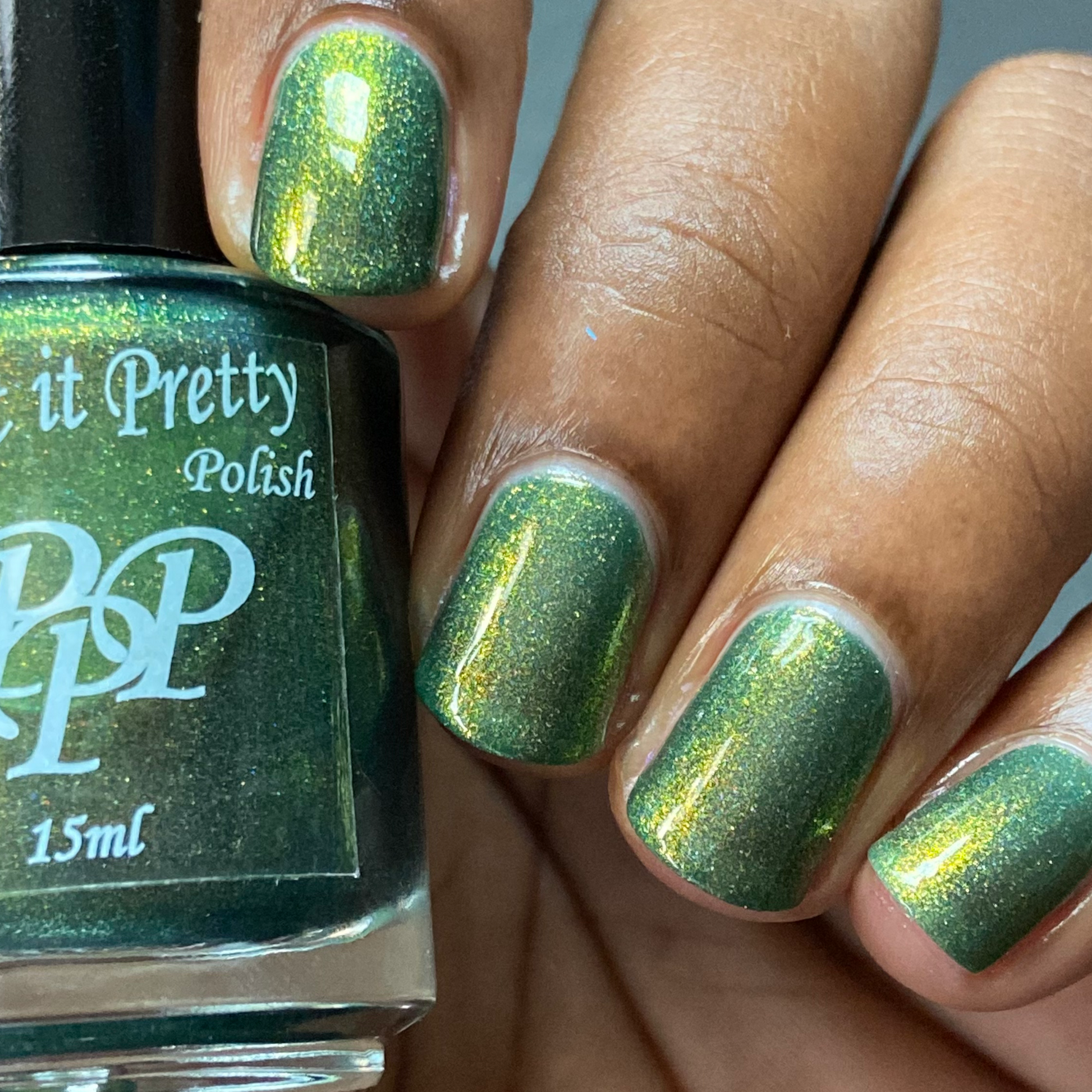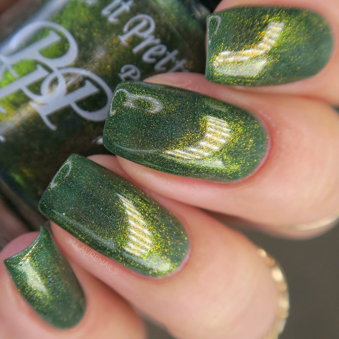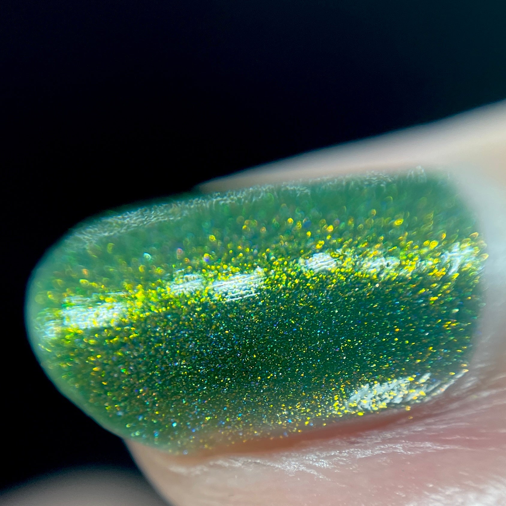 Your a Mean One is a green holographic polish with a gold/green shimmer.