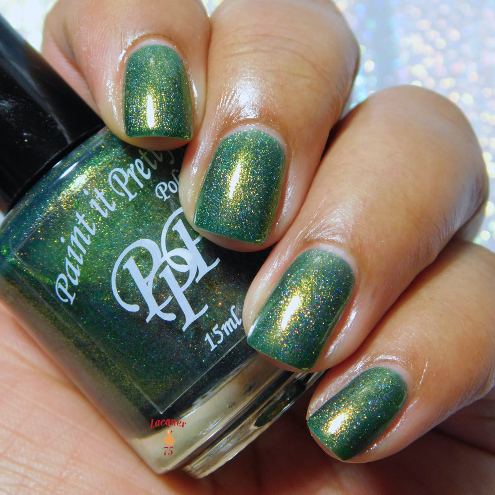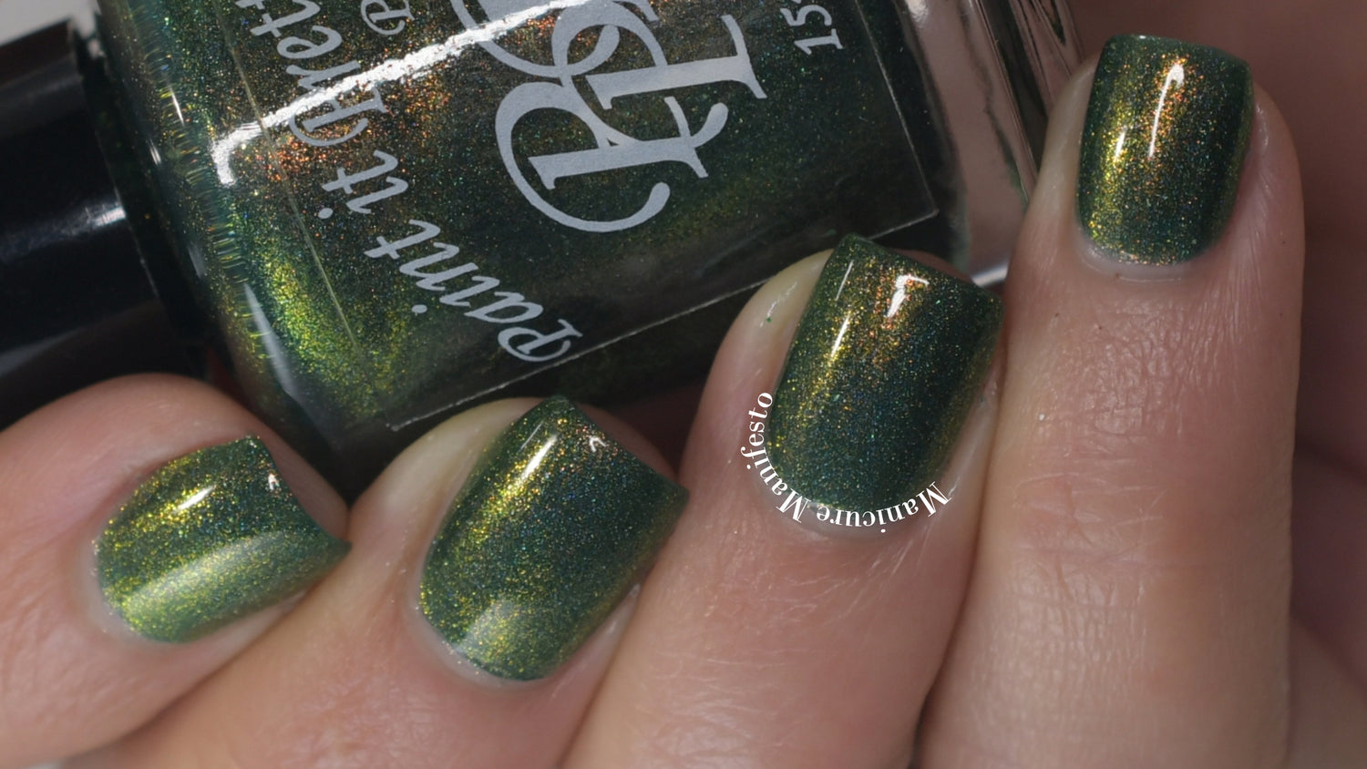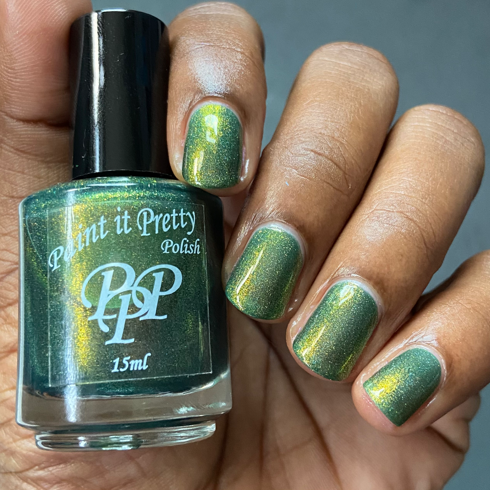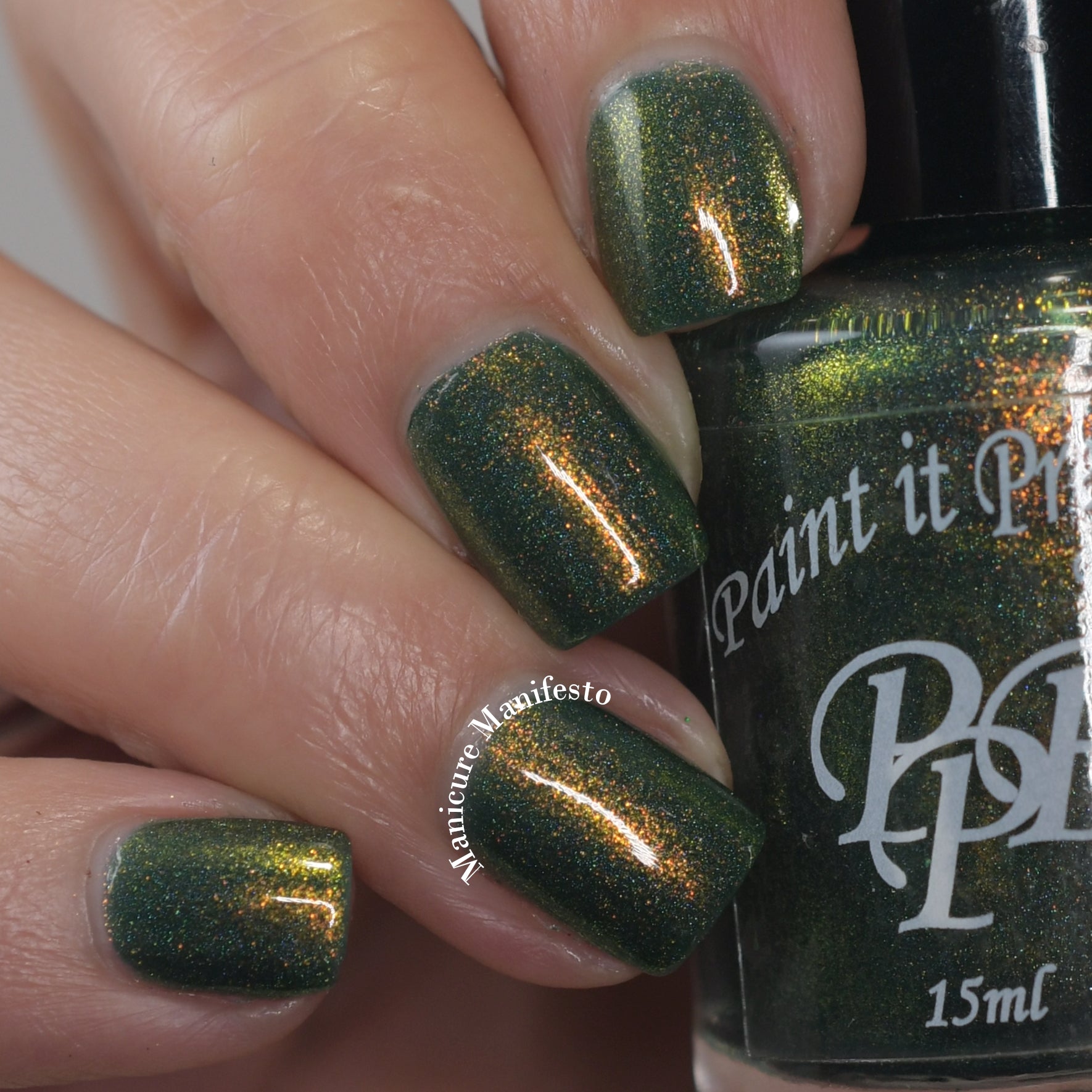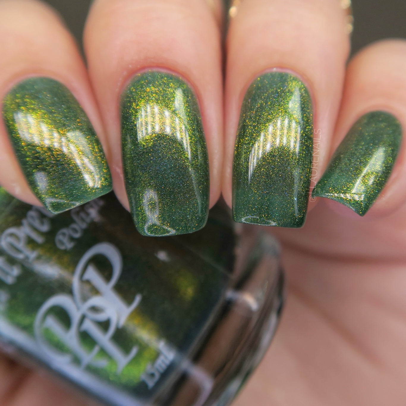 Your a Mean One is a green holographic polish with a gold/green shimmer.