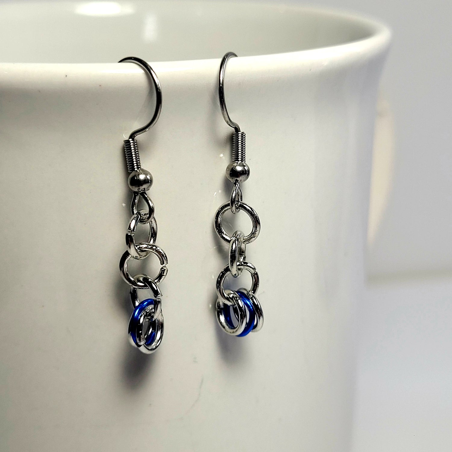 Handmade chainmail dark blue earrings. Hand woven one ring at a time, this jewelry is sure to turn heads!
