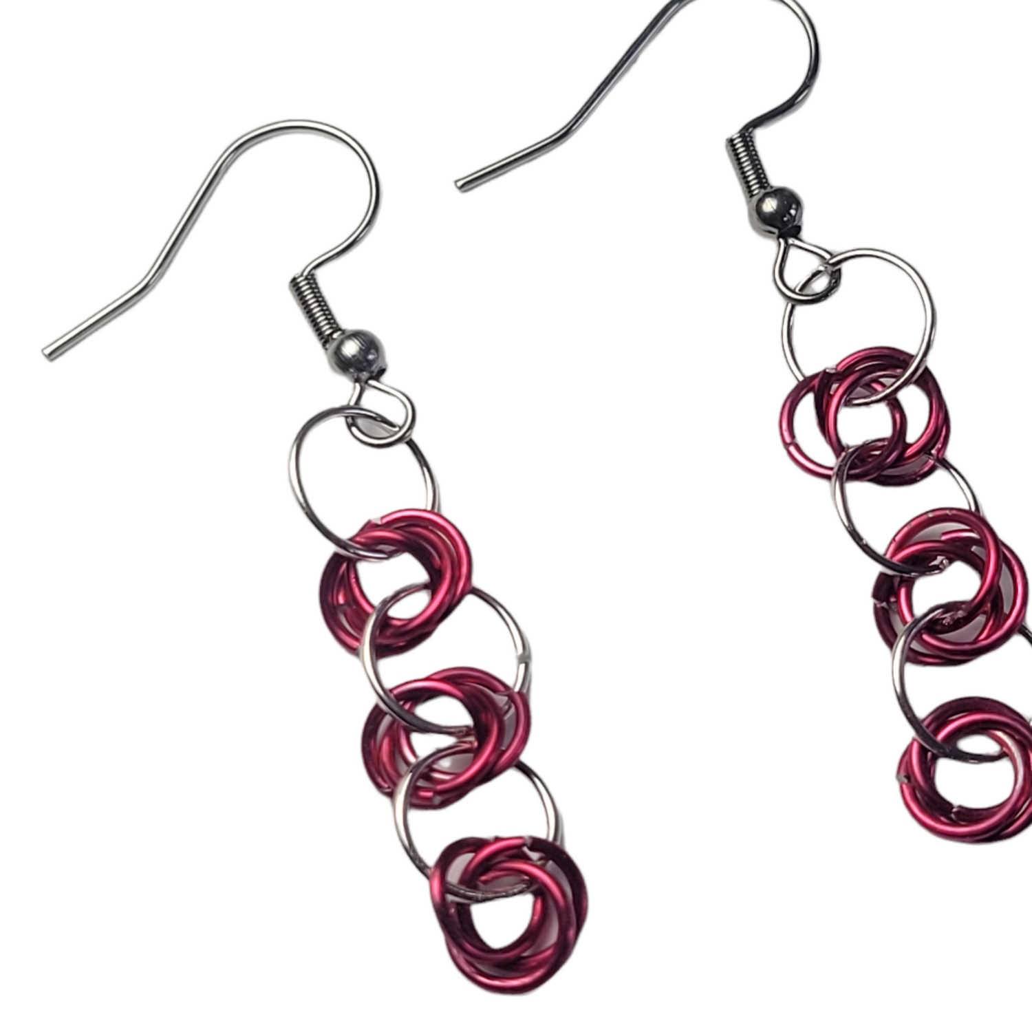 Handmade chainmail earrings. Hand woven one ring at a time, this jewelry is sure to turn heads!