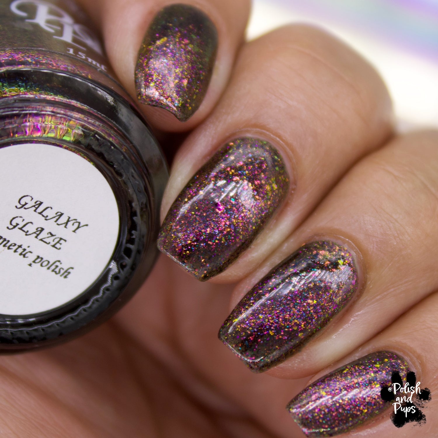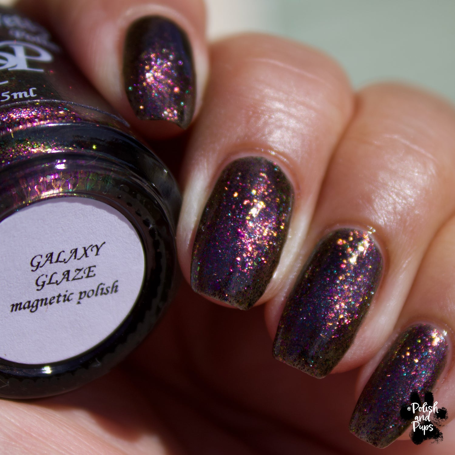 Galaxy Glaze has a black base with magnetic flakes in blue/green and purple/gold.