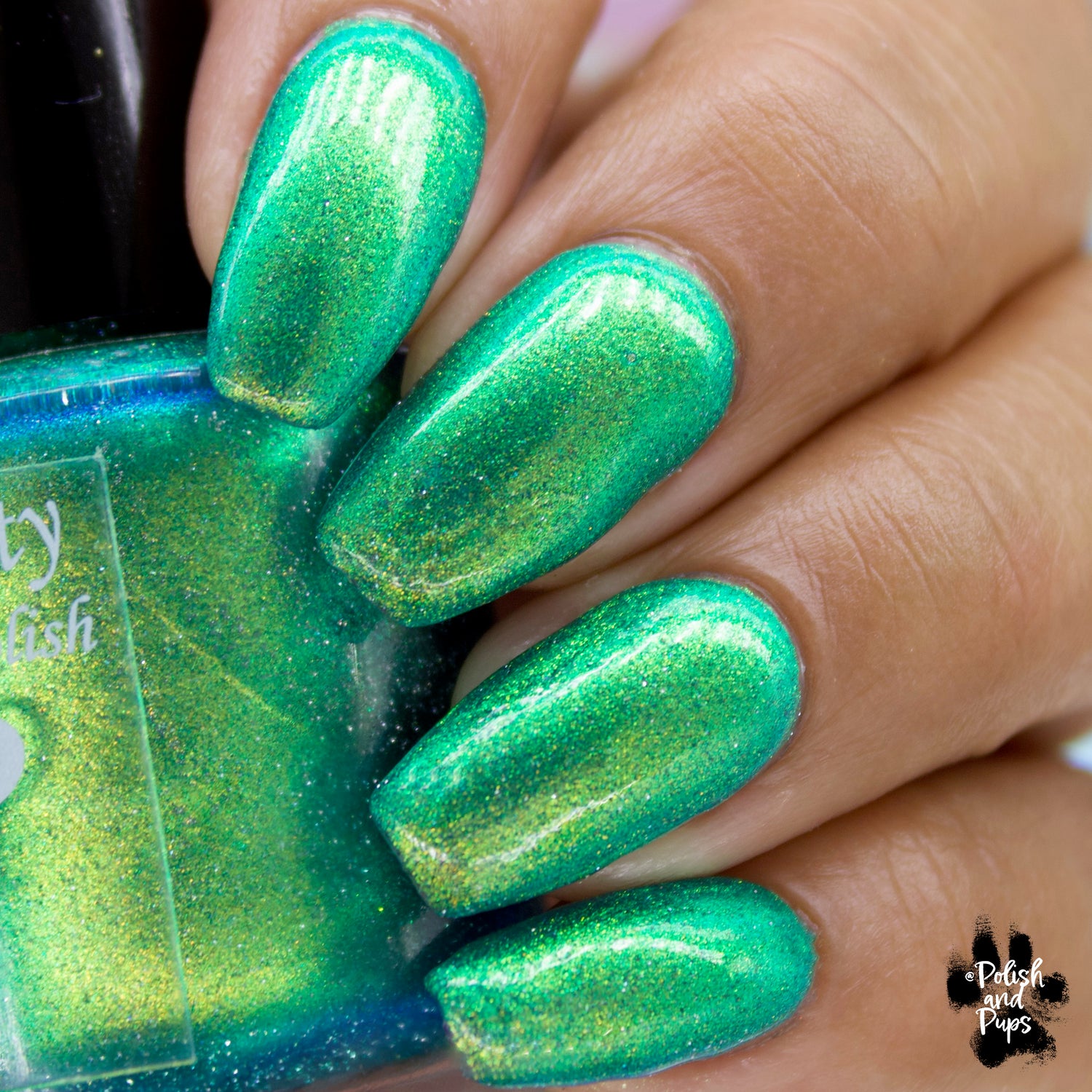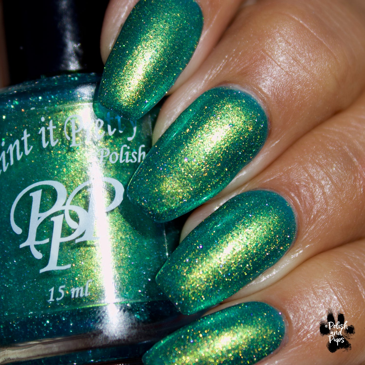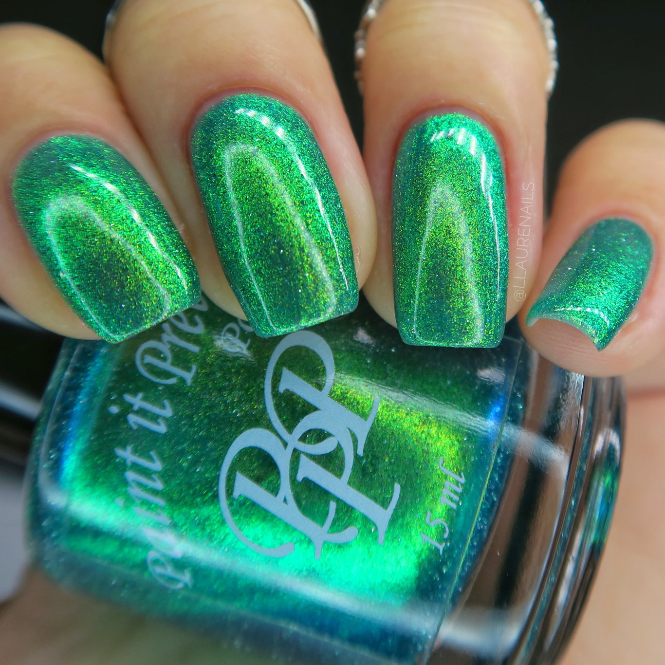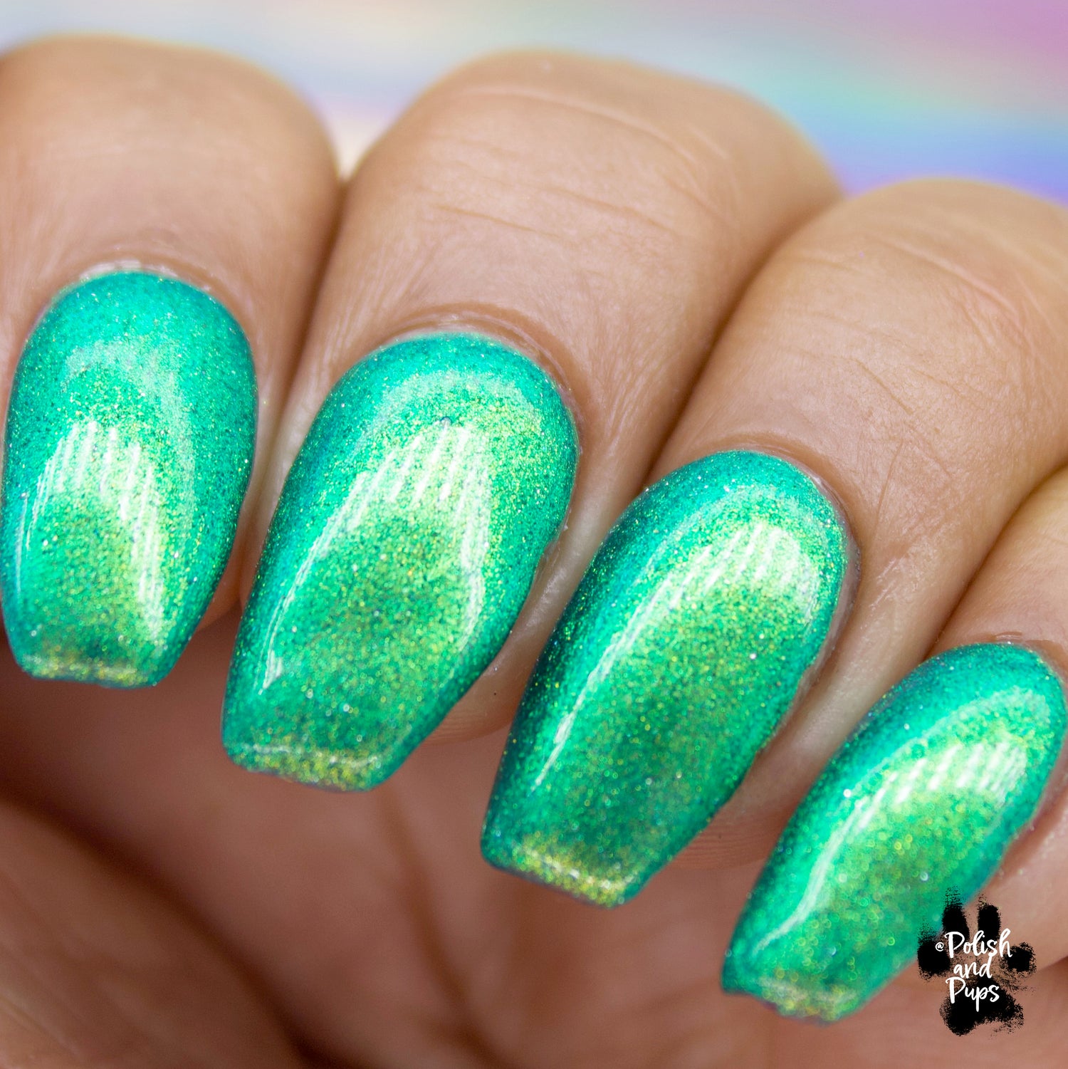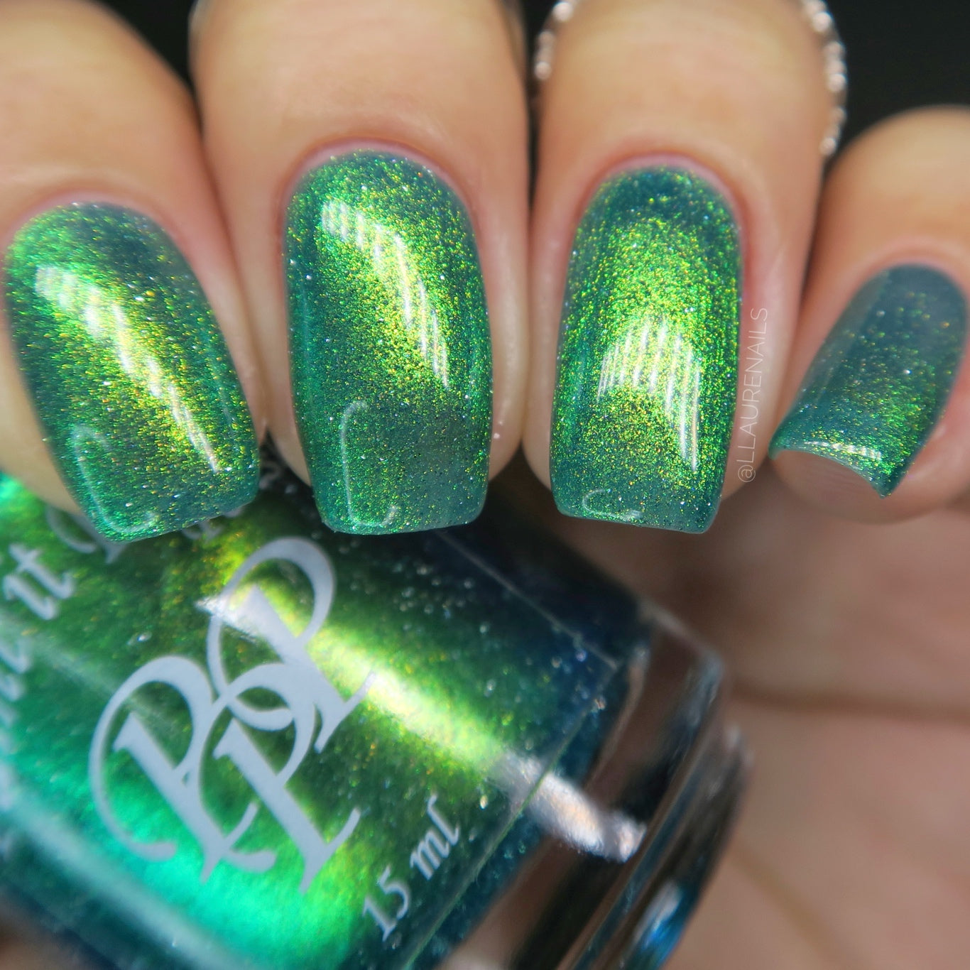Channel the grinch (with his heart that’s grown) with this green and festive polish. A blue-green base with a green-gold shifting shimmer and reflective glitter captures the joy of the season perfectly!