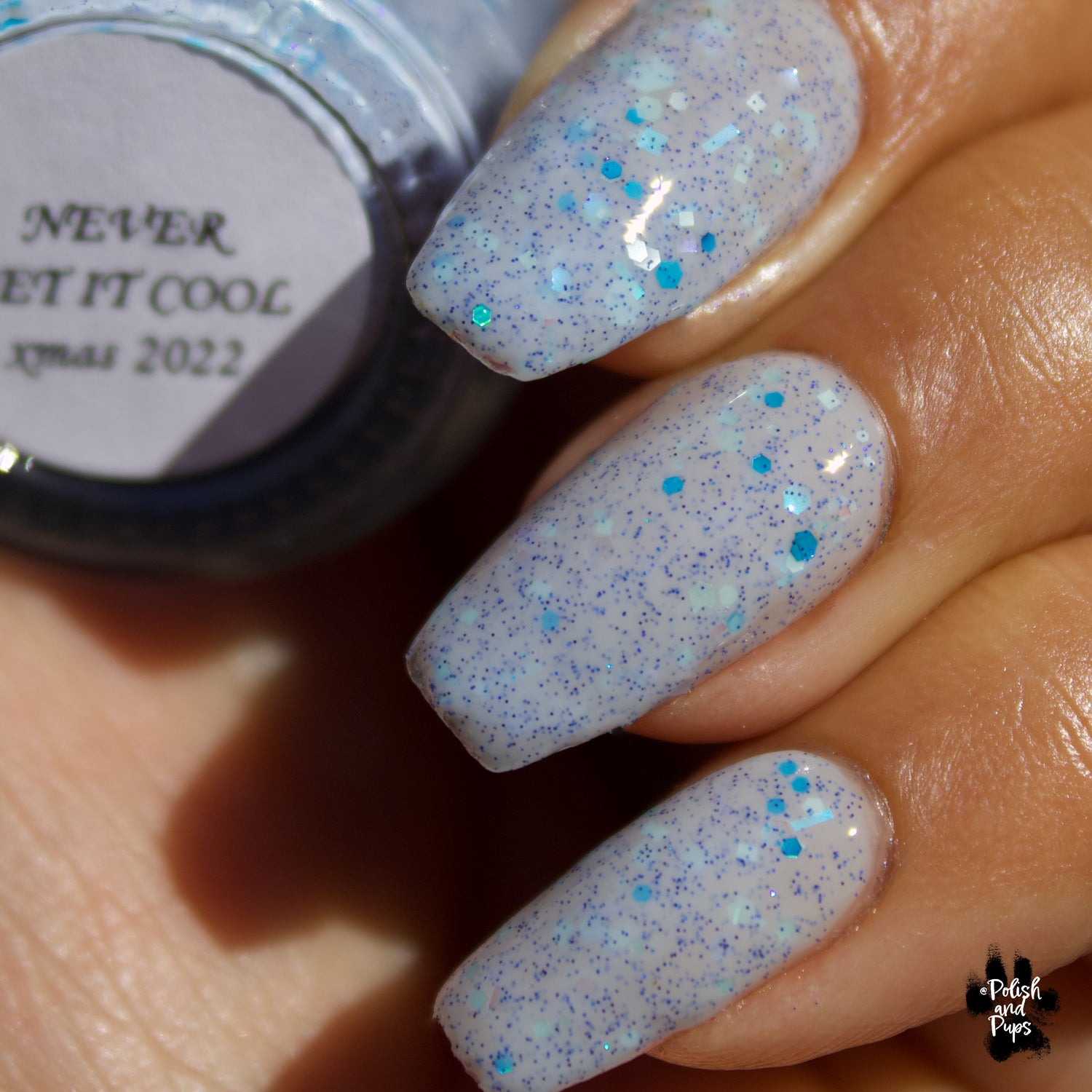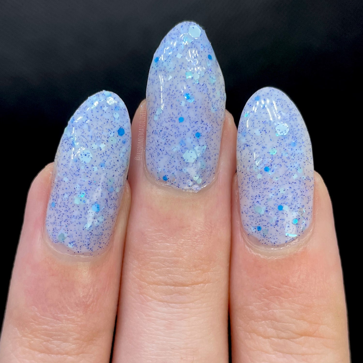 Keep your chocolate hot, and your nails ready for the winter with this snowy polish. A light-blue crelly base packed with blue, aqua, and iridescent glitters means your nails will look great when you wrap your hands around a mug of hot chocolate (or anywhere else too!).