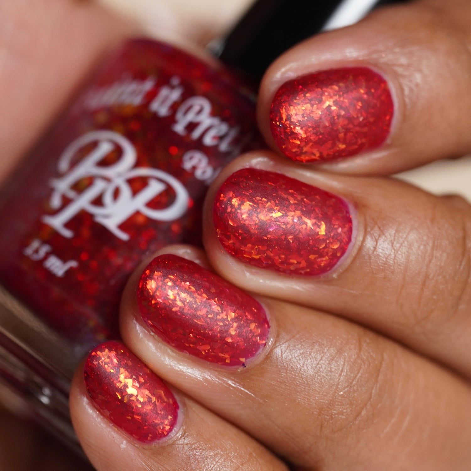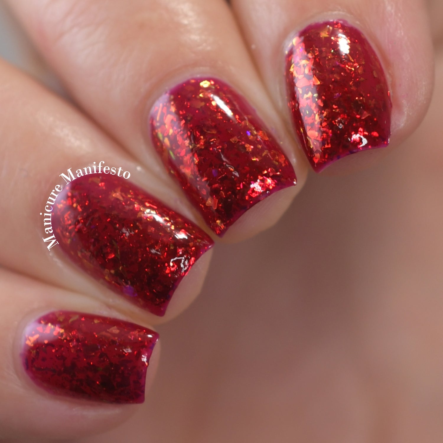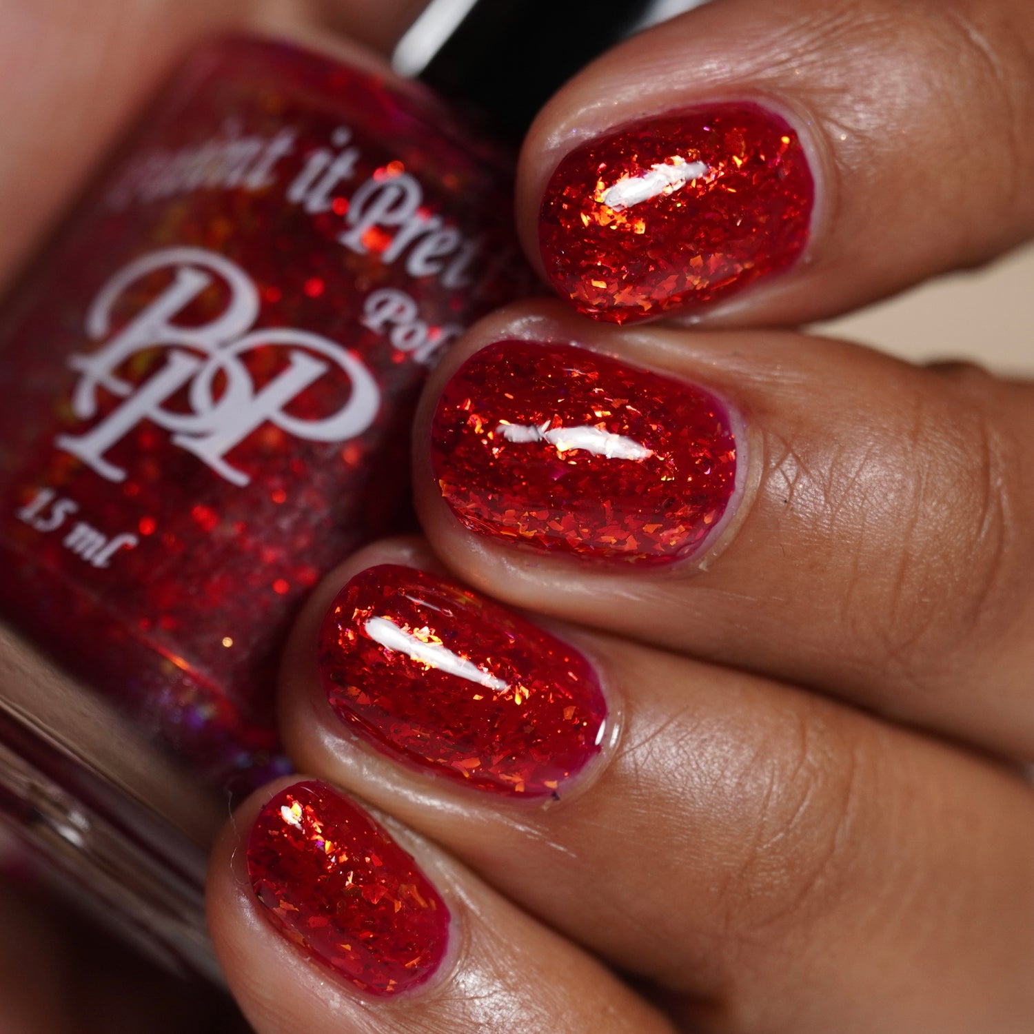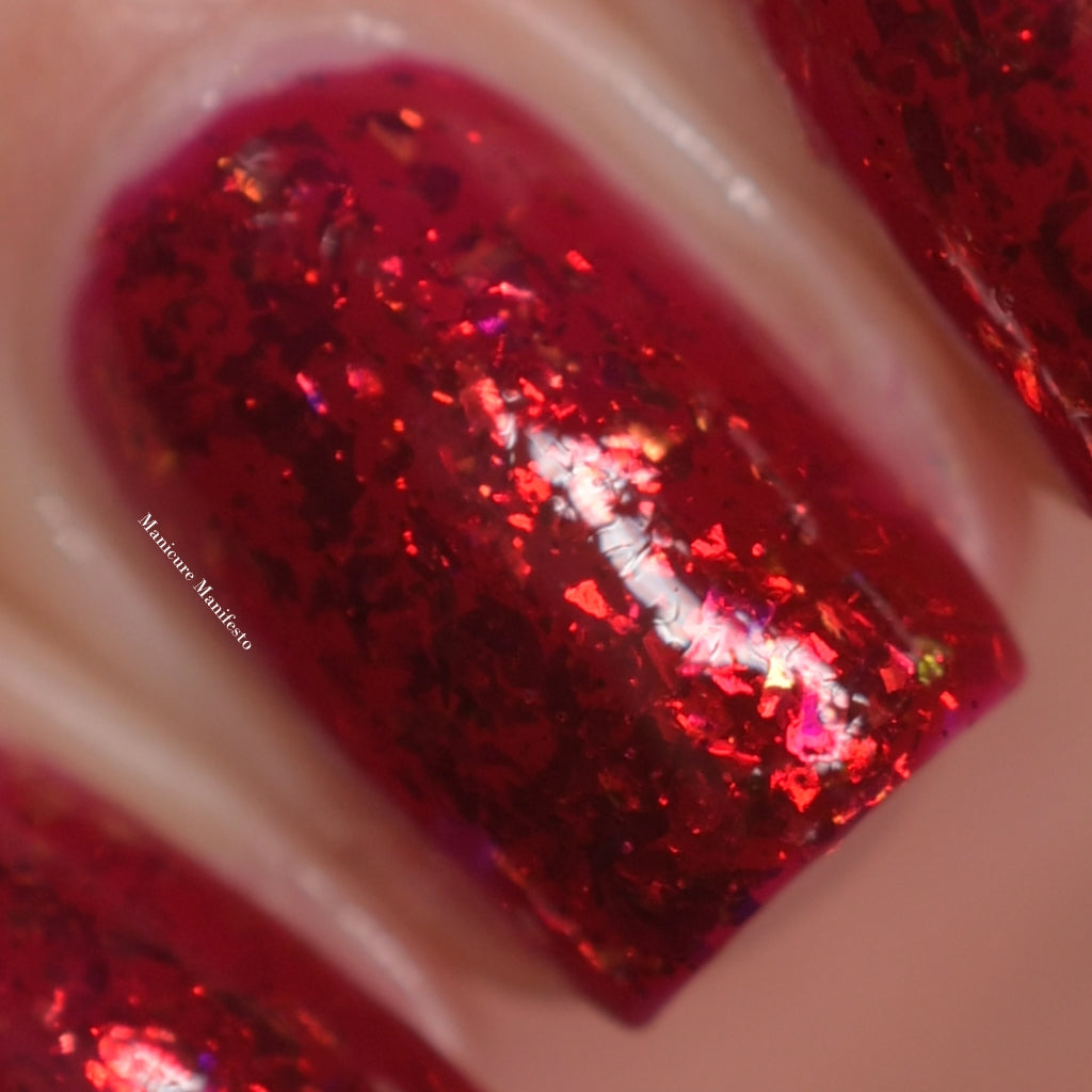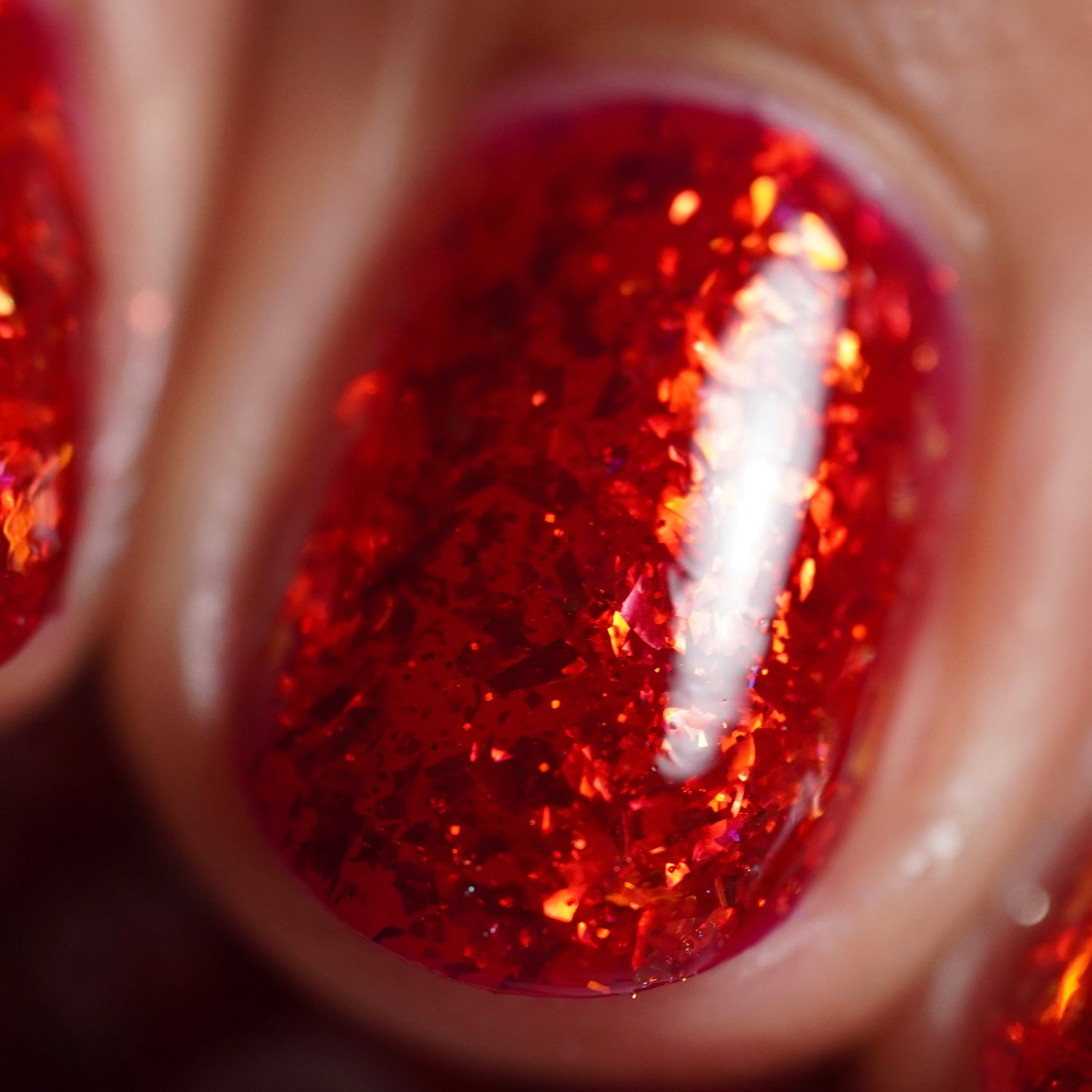 Guide a sleigh or go to a fancy party: wherever you go you’re sure to be noticed! This crimson jelly glows so bright with chameleon and iridescent flakies you’re sure to be seen, no matter how foggy the night!