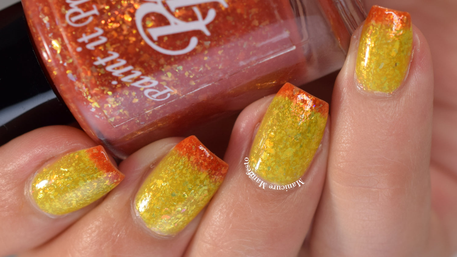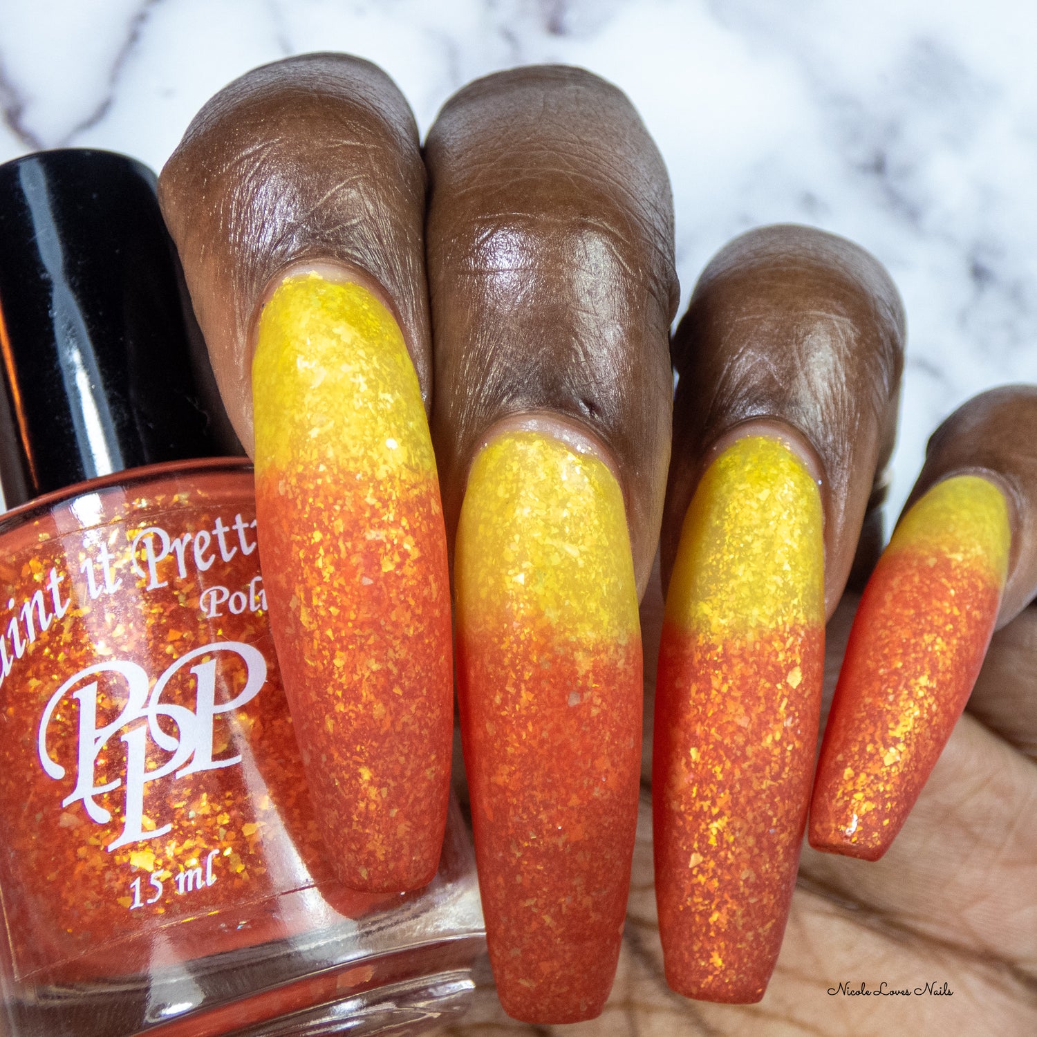 Scream is a yellow to orange to red tri thermal with iridescent shifting flakes.