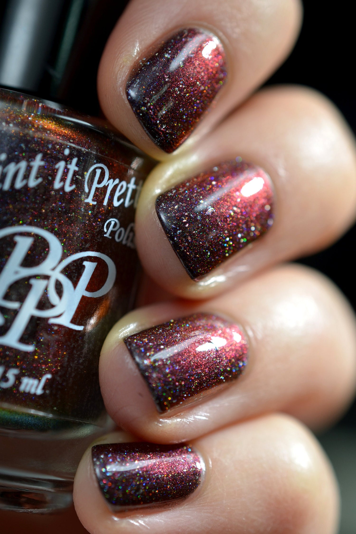 Silver River is a shifting black to red holo multichrome nail polish.