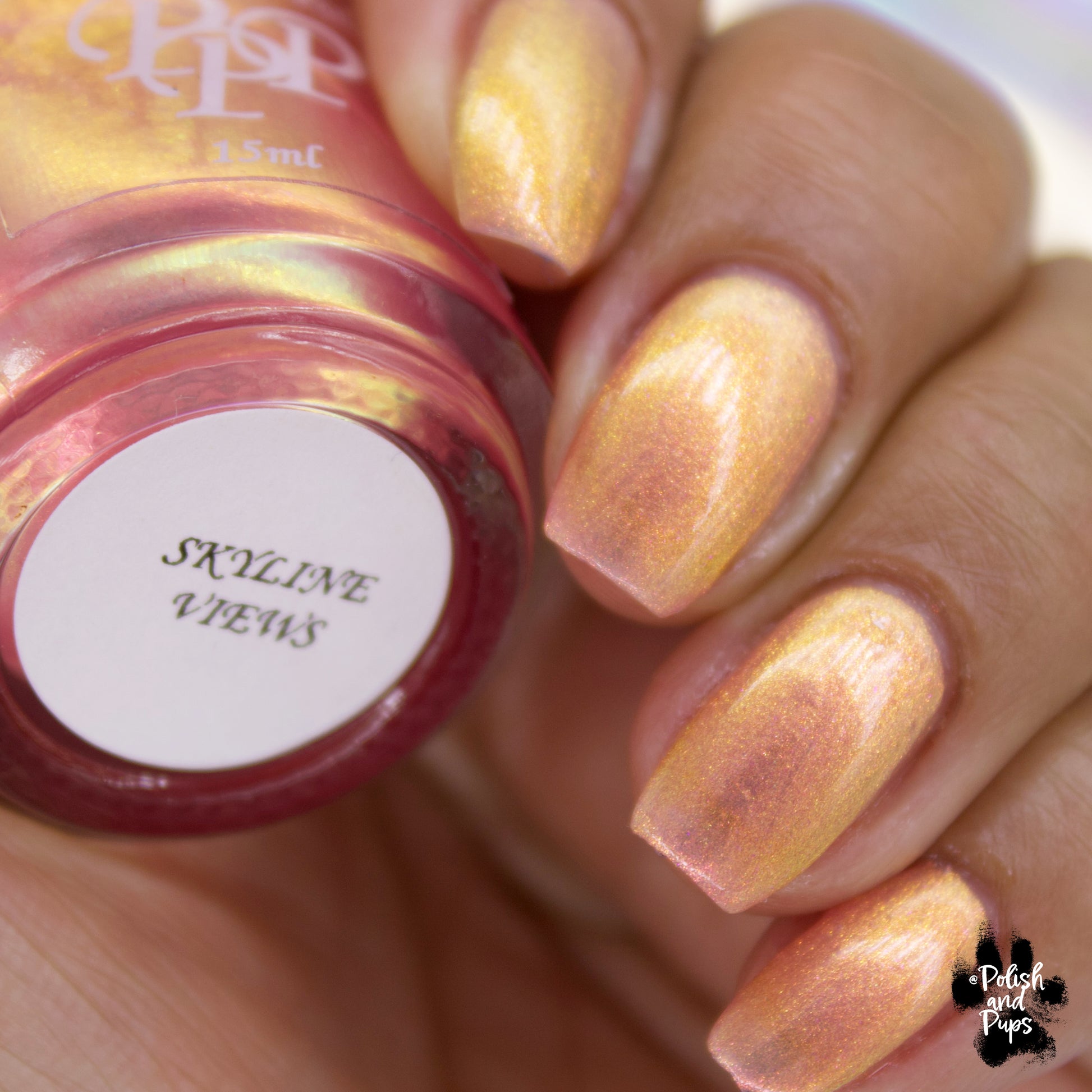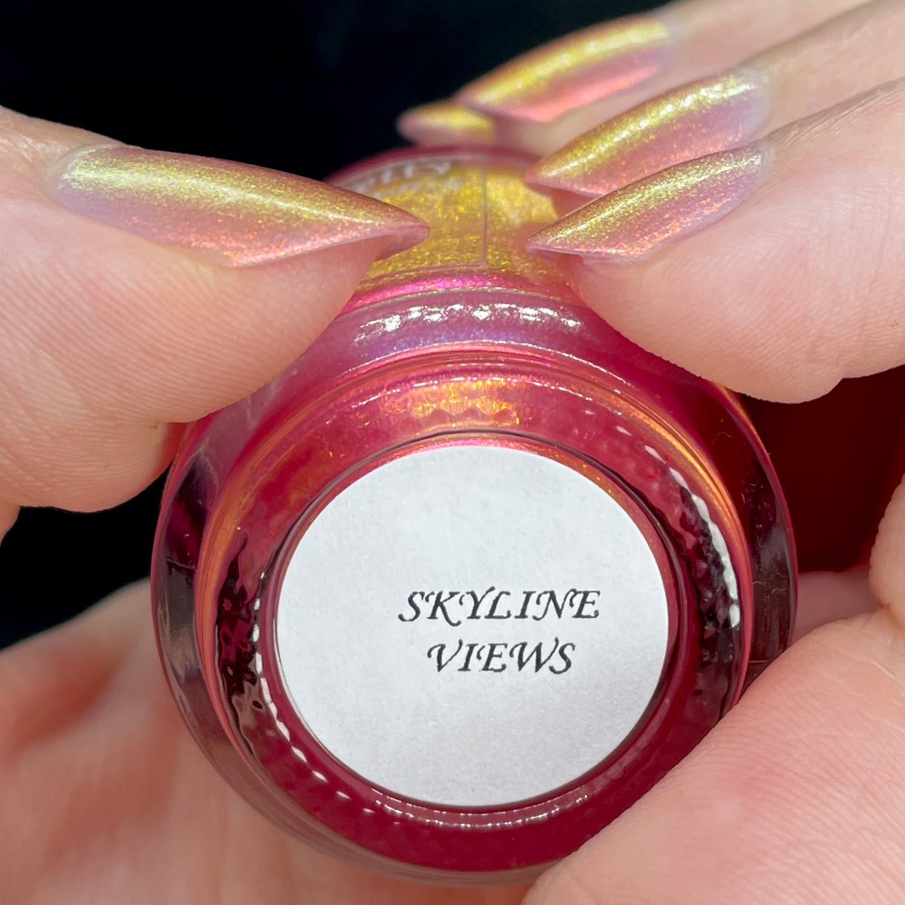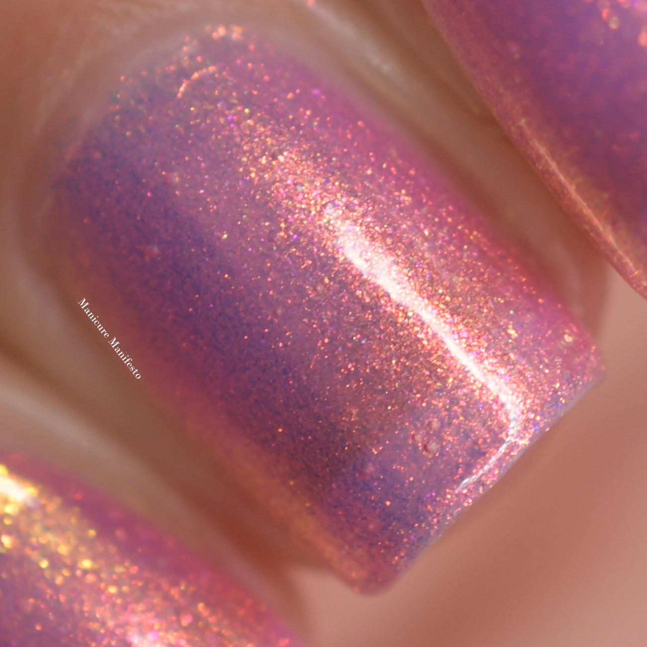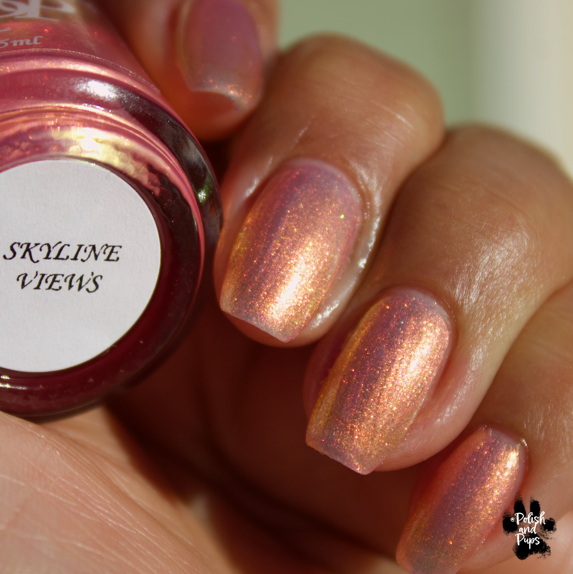 Skyline Views is a sheer light pink with a pink to orange to yellow shimmer