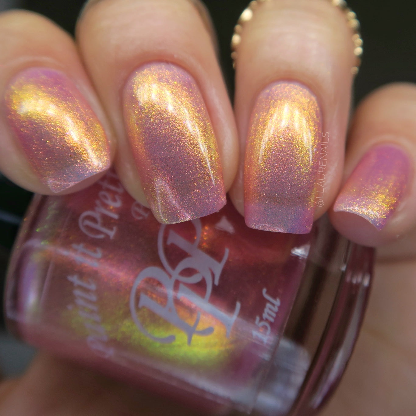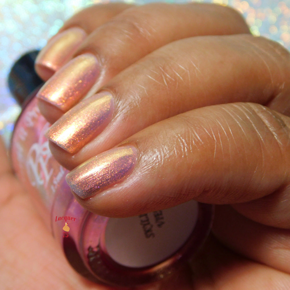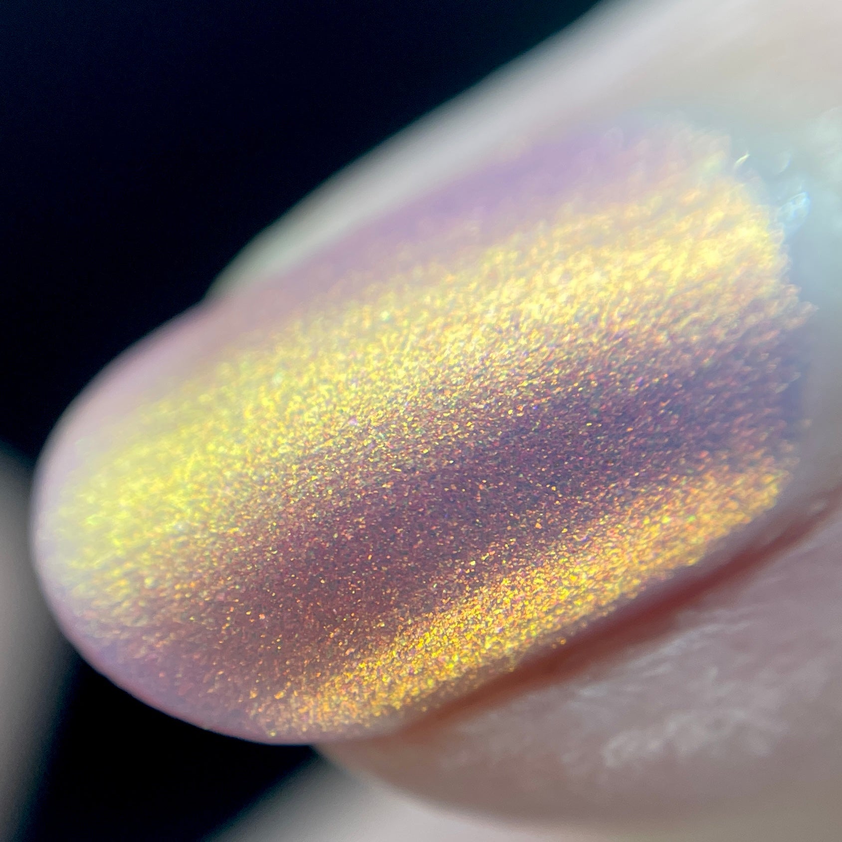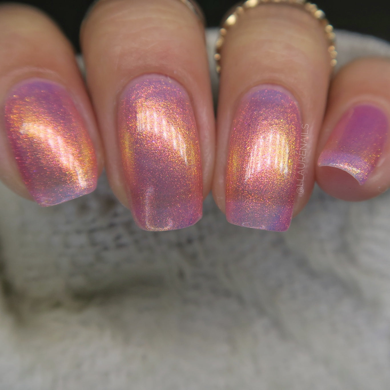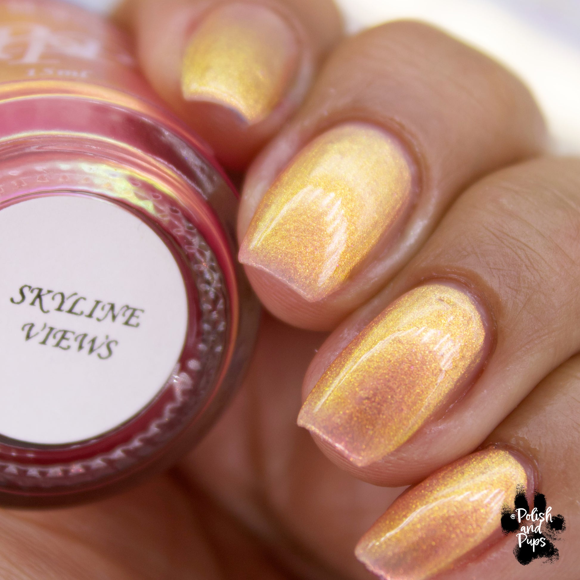Skyline Views is a sheer light pink with a pink to orange to yellow shimmer