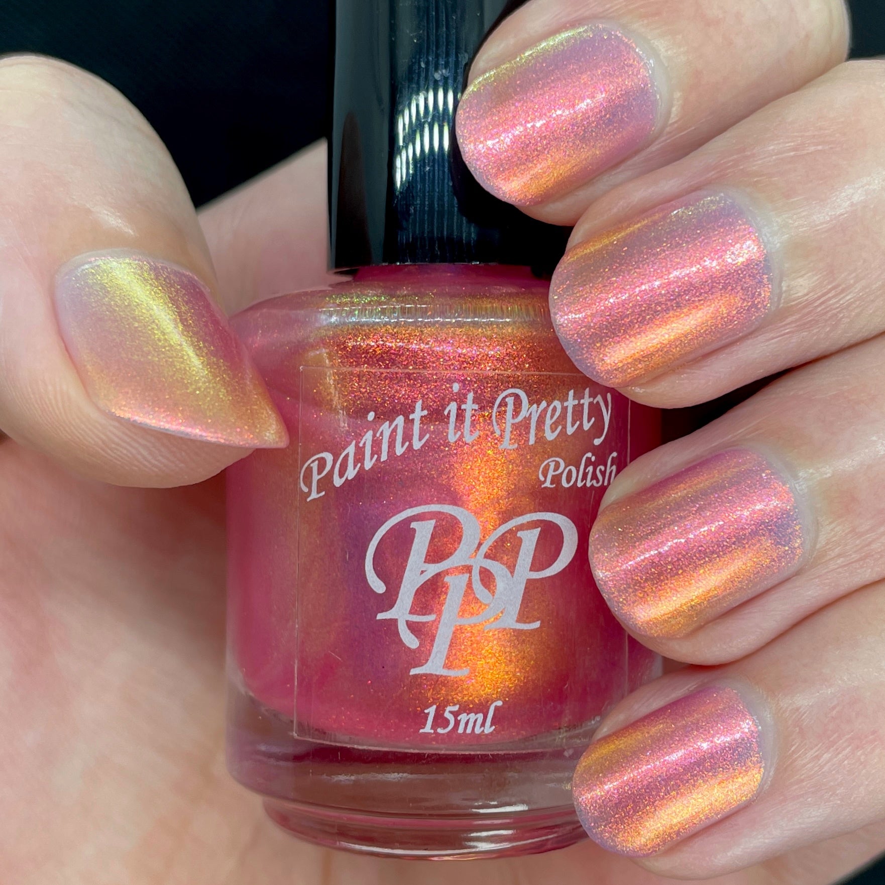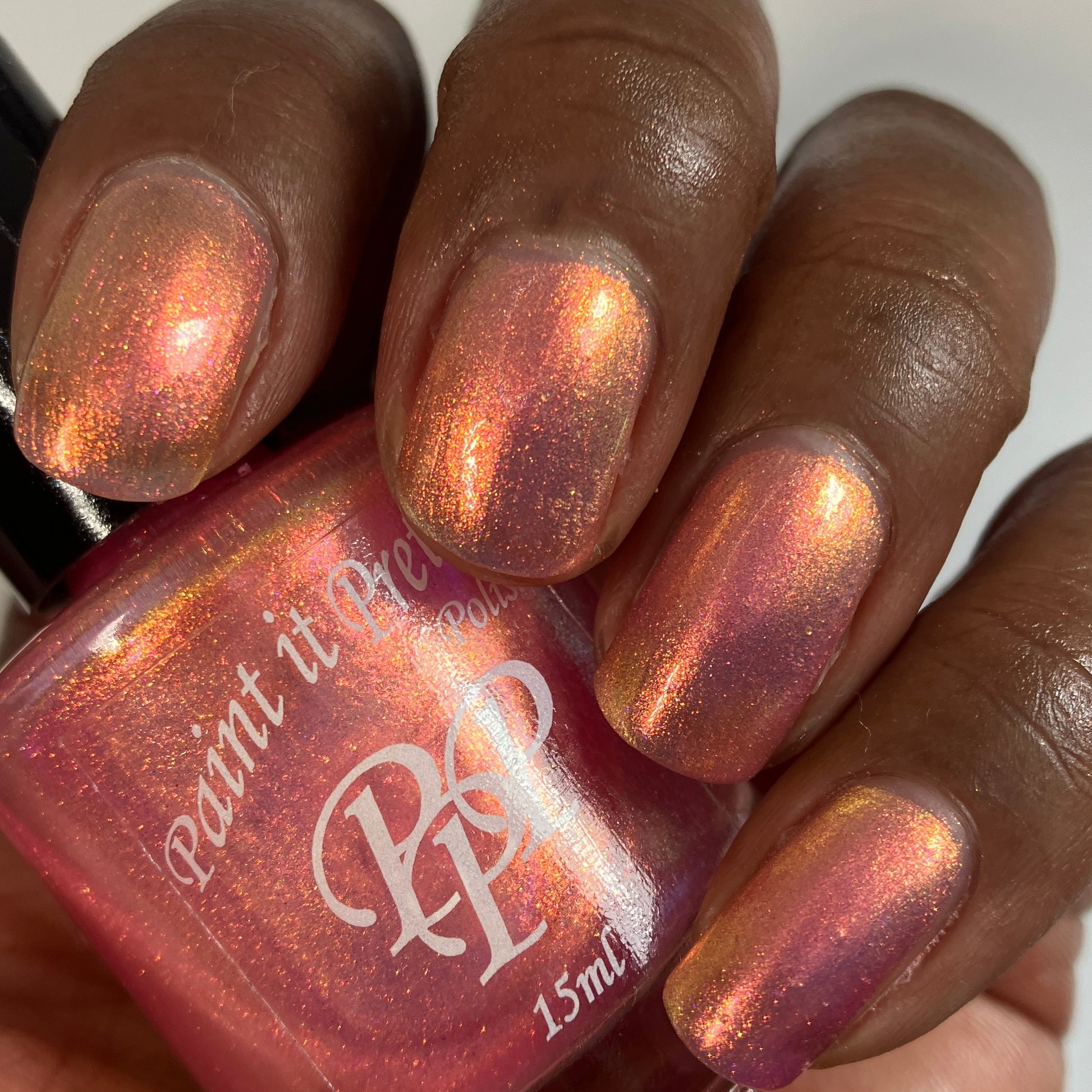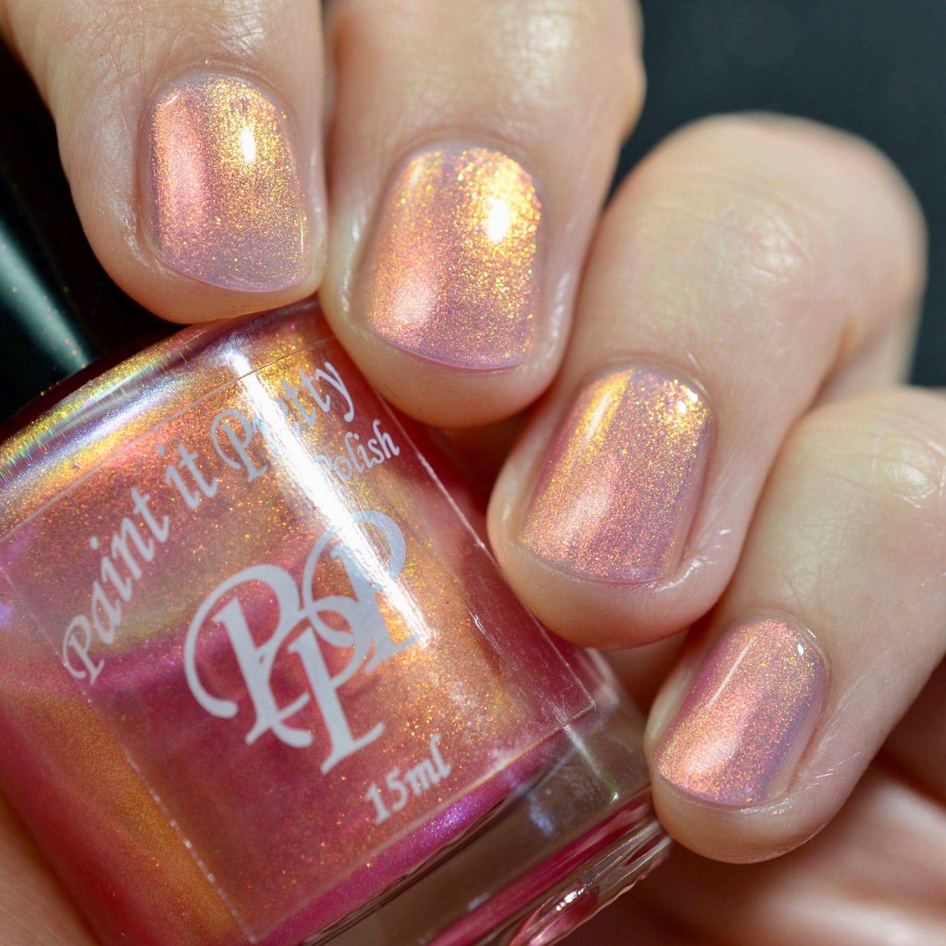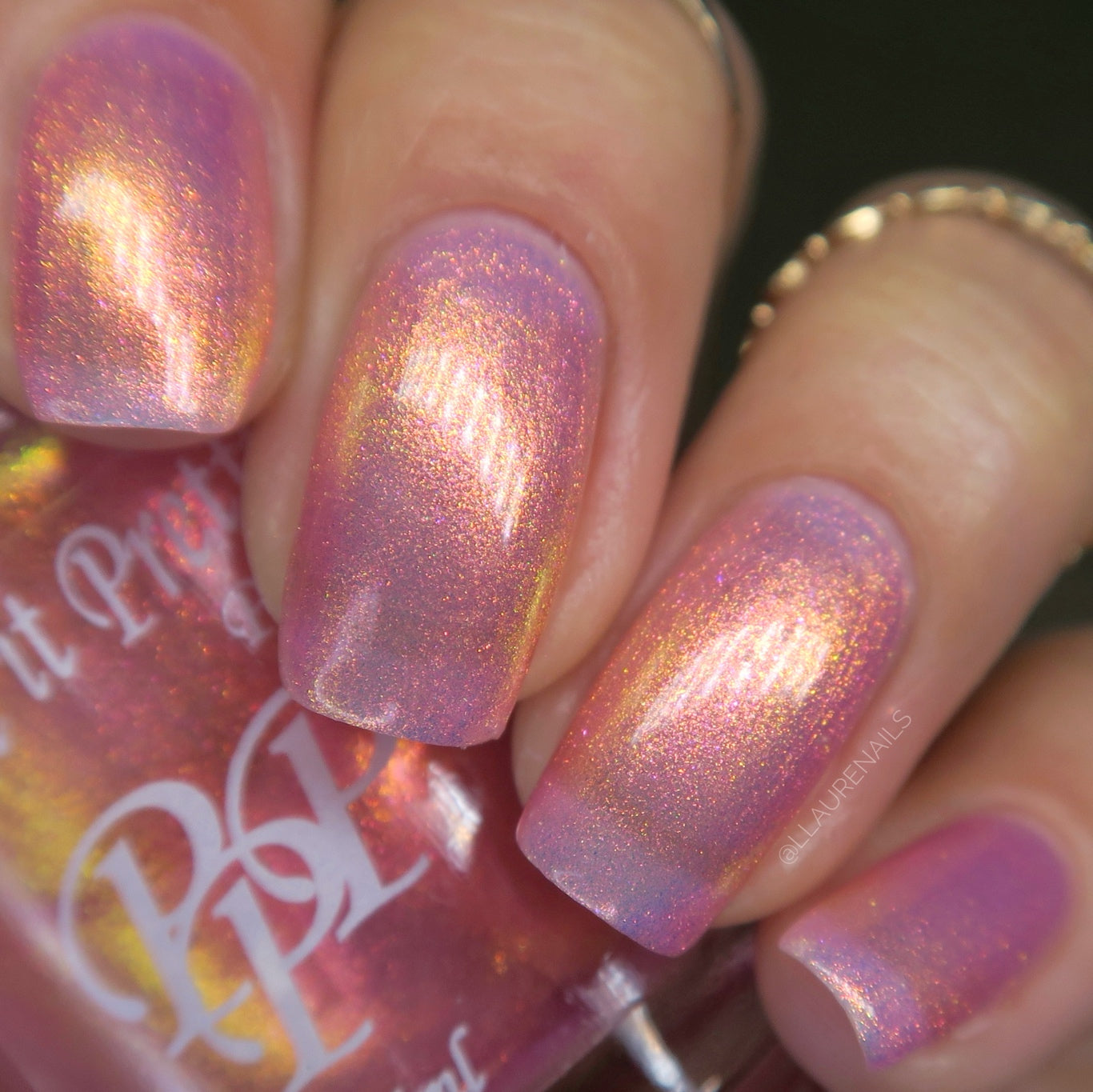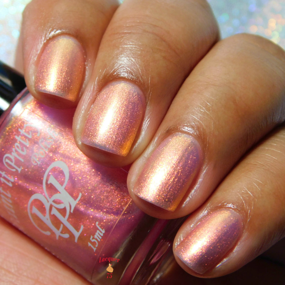 Skyline Views is a sheer light pink with a pink to orange to yellow shimmer