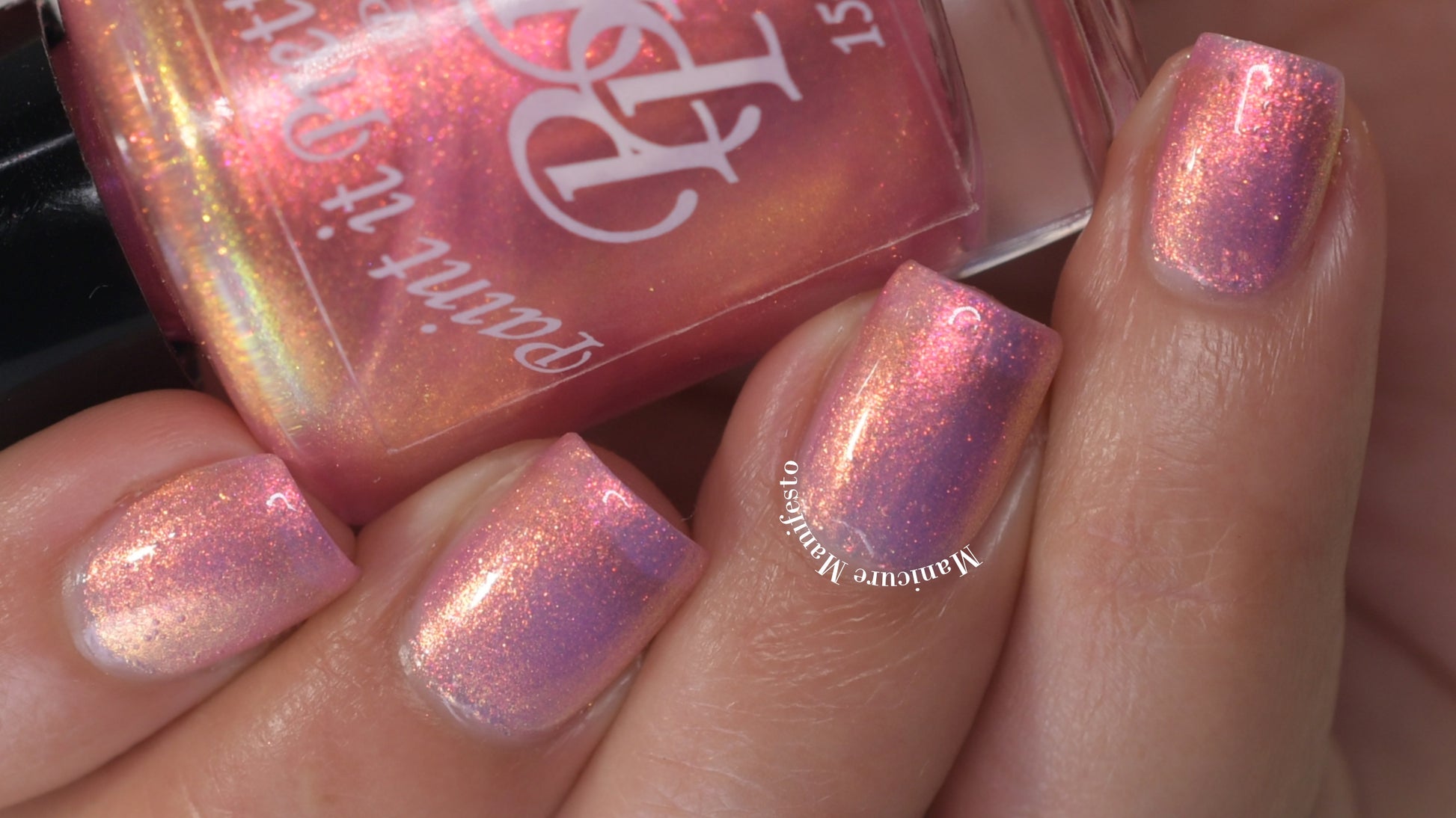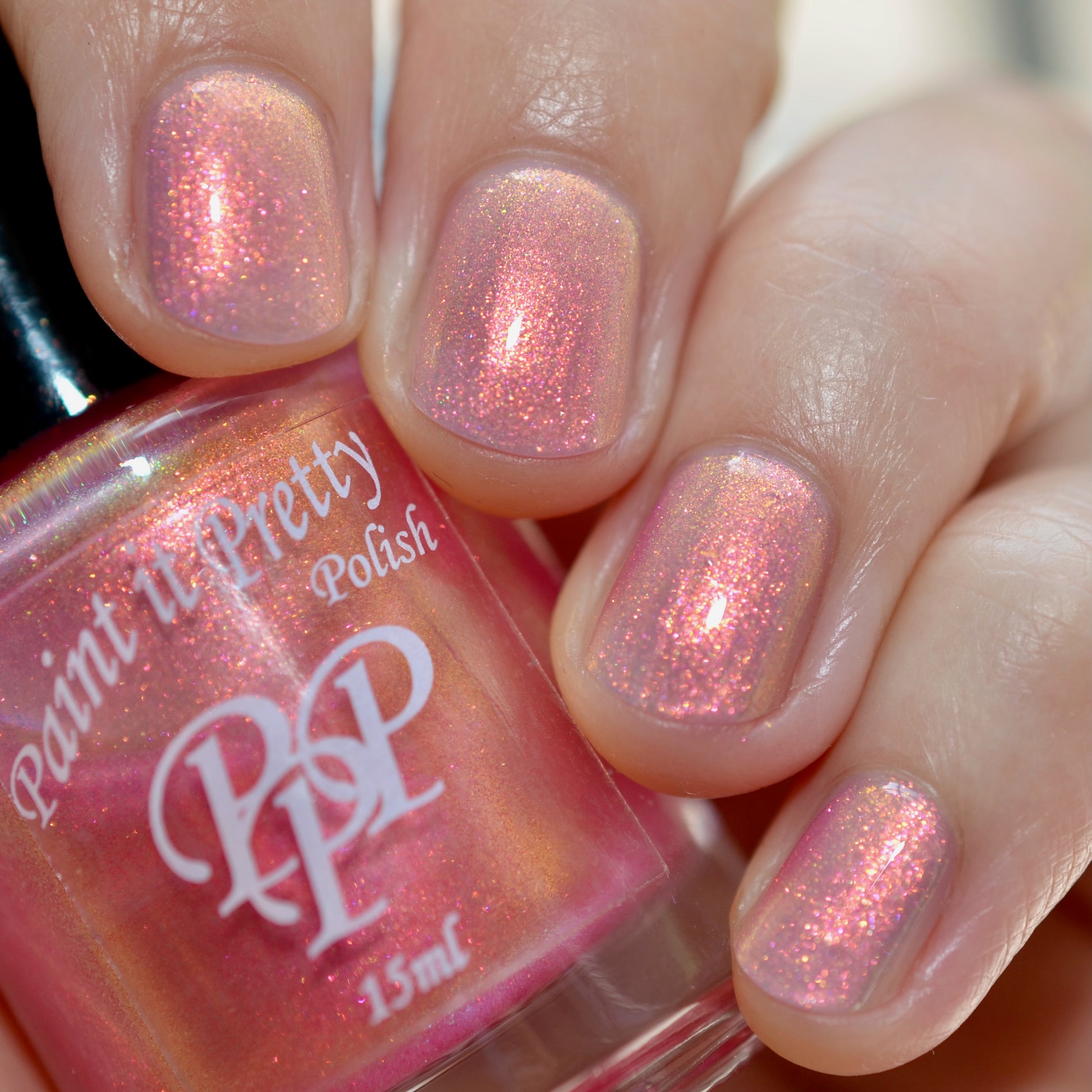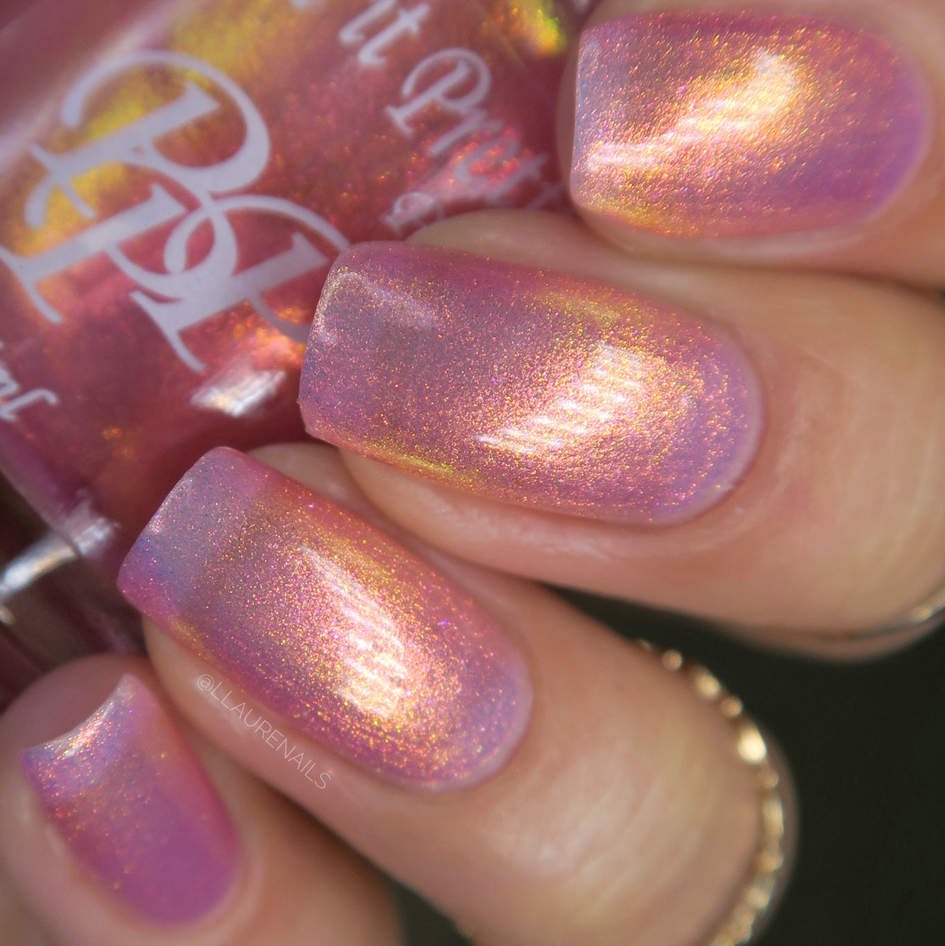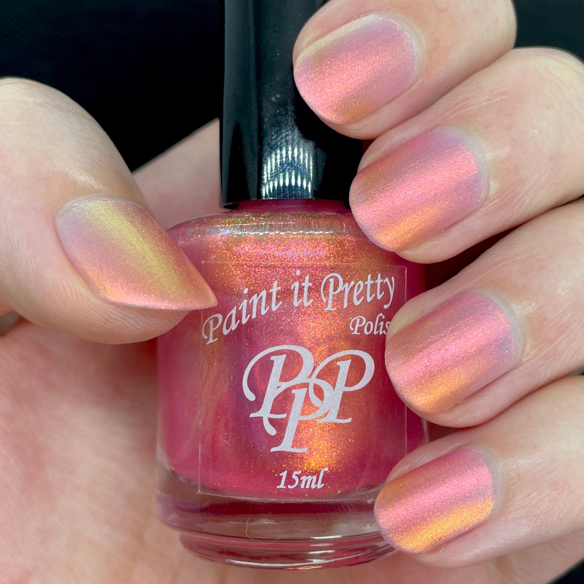 Skyline Views is a sheer light pink with a pink to orange to yellow shimmer