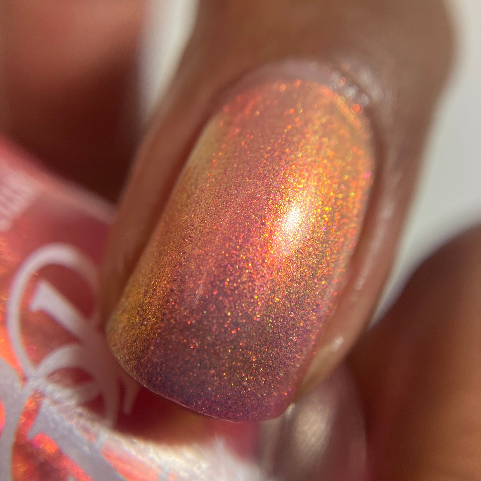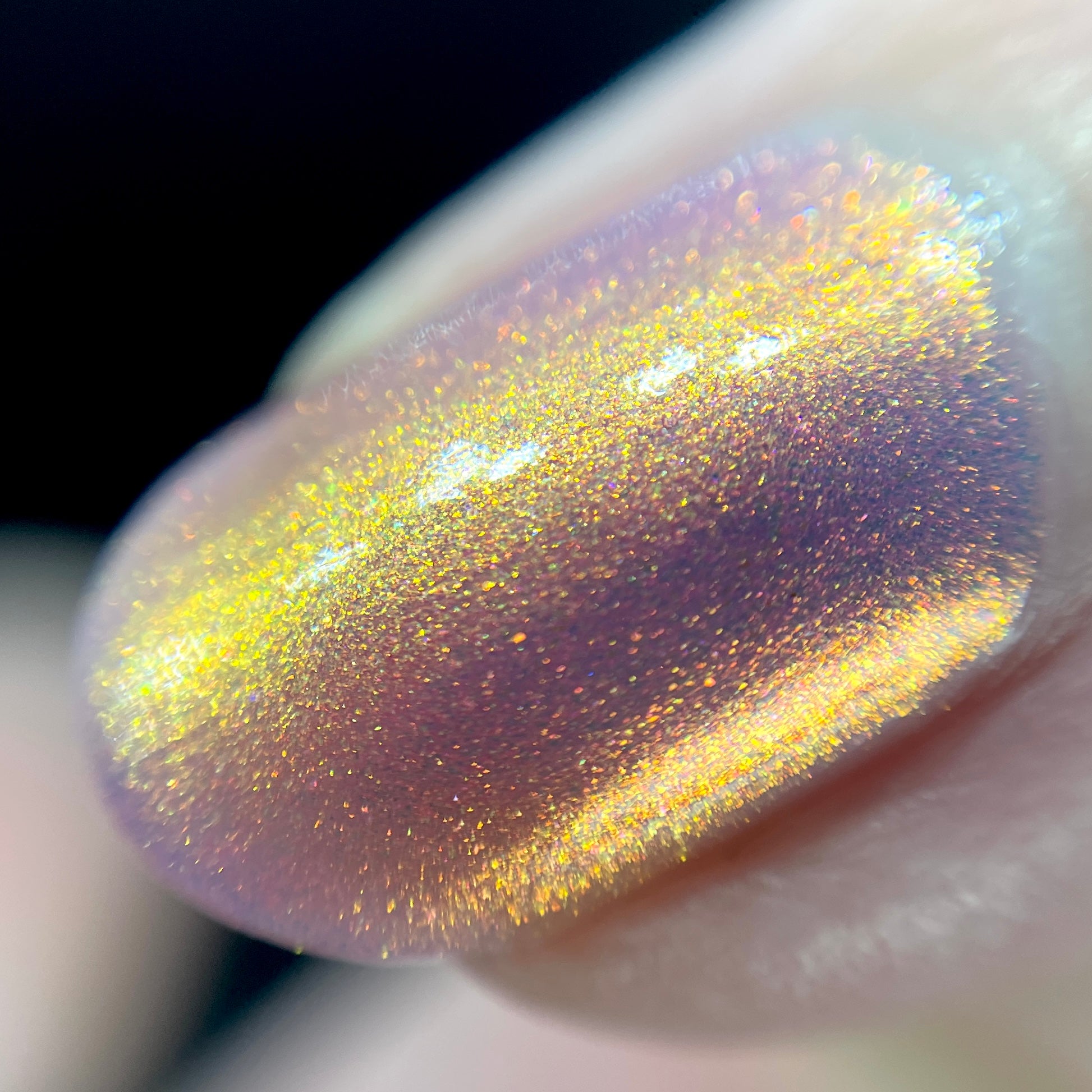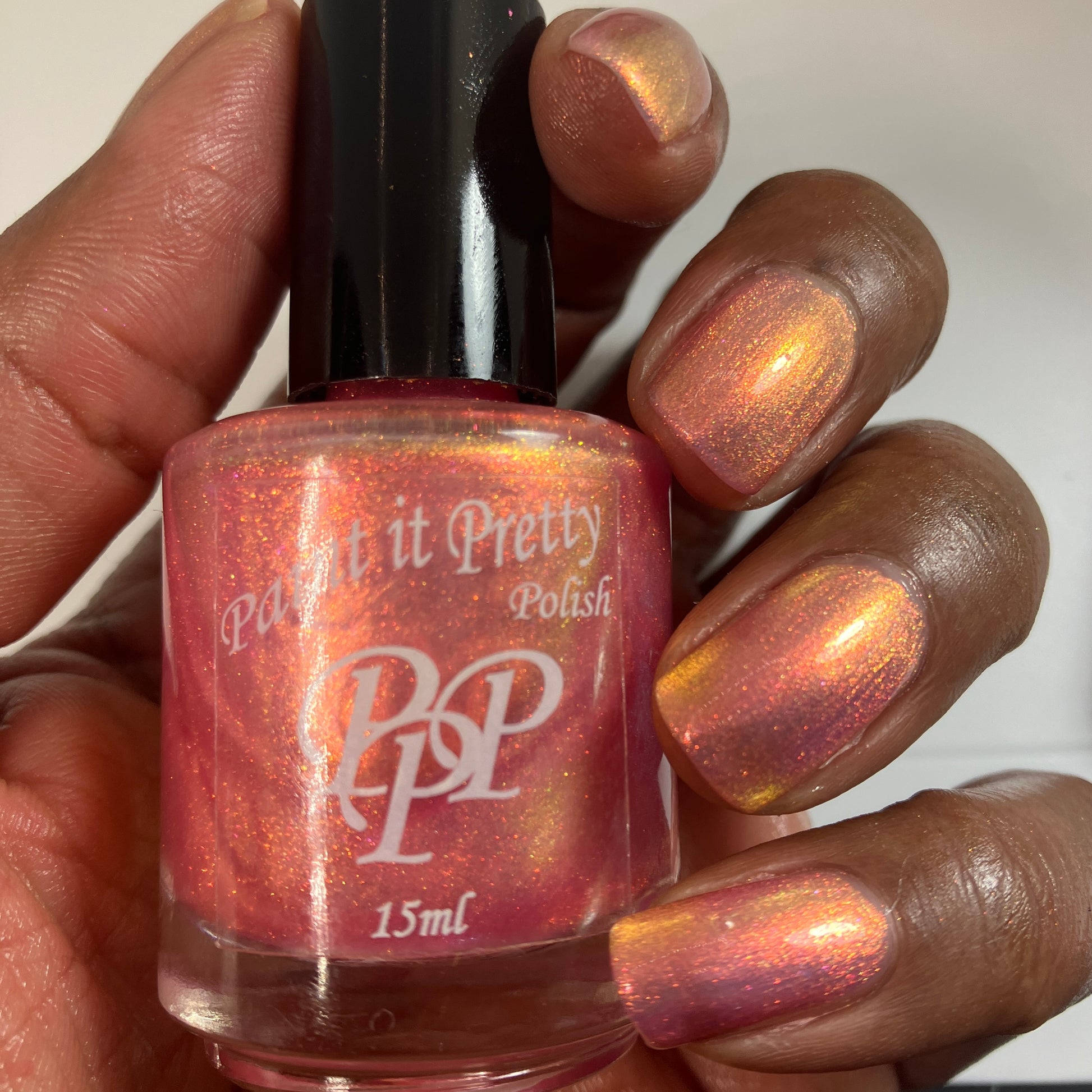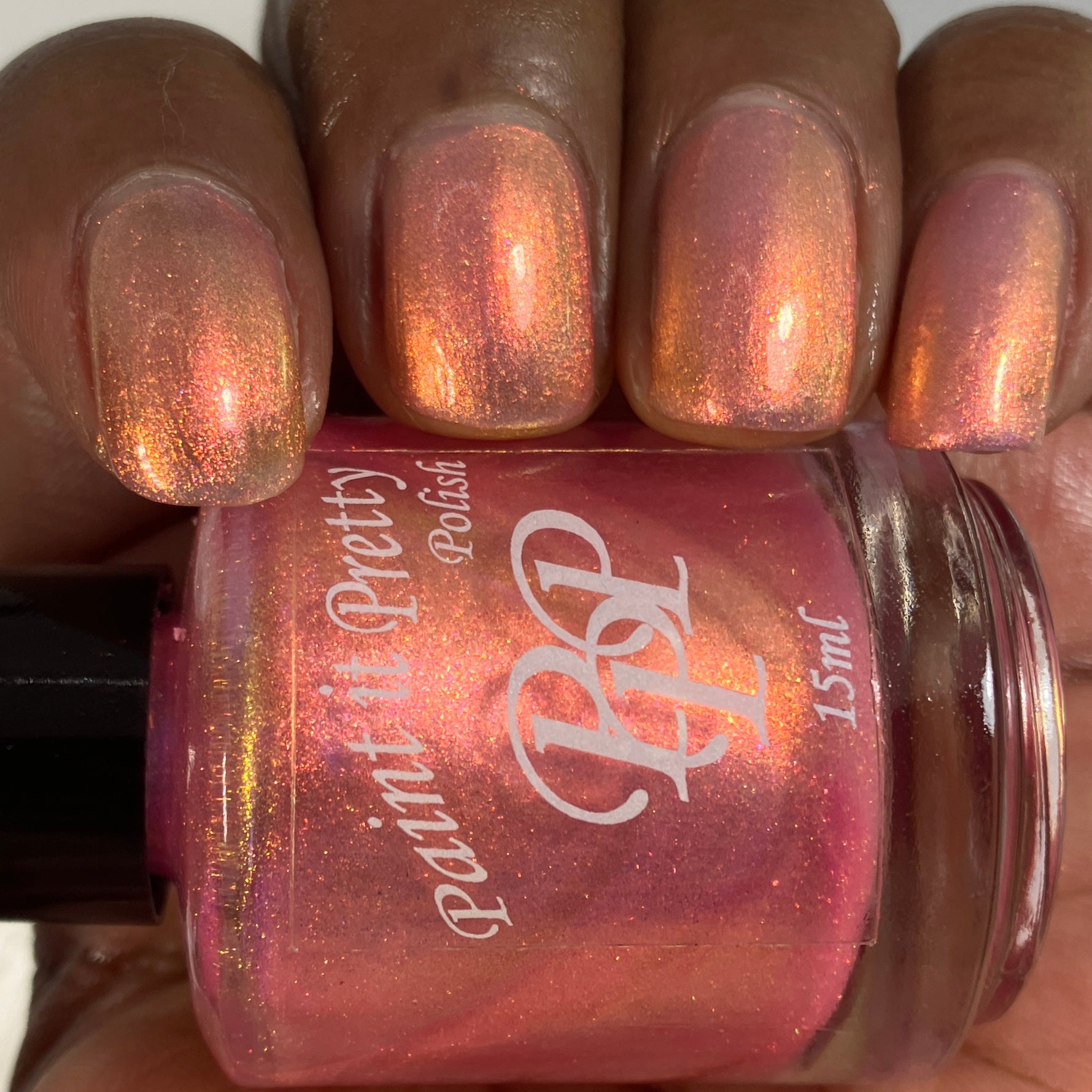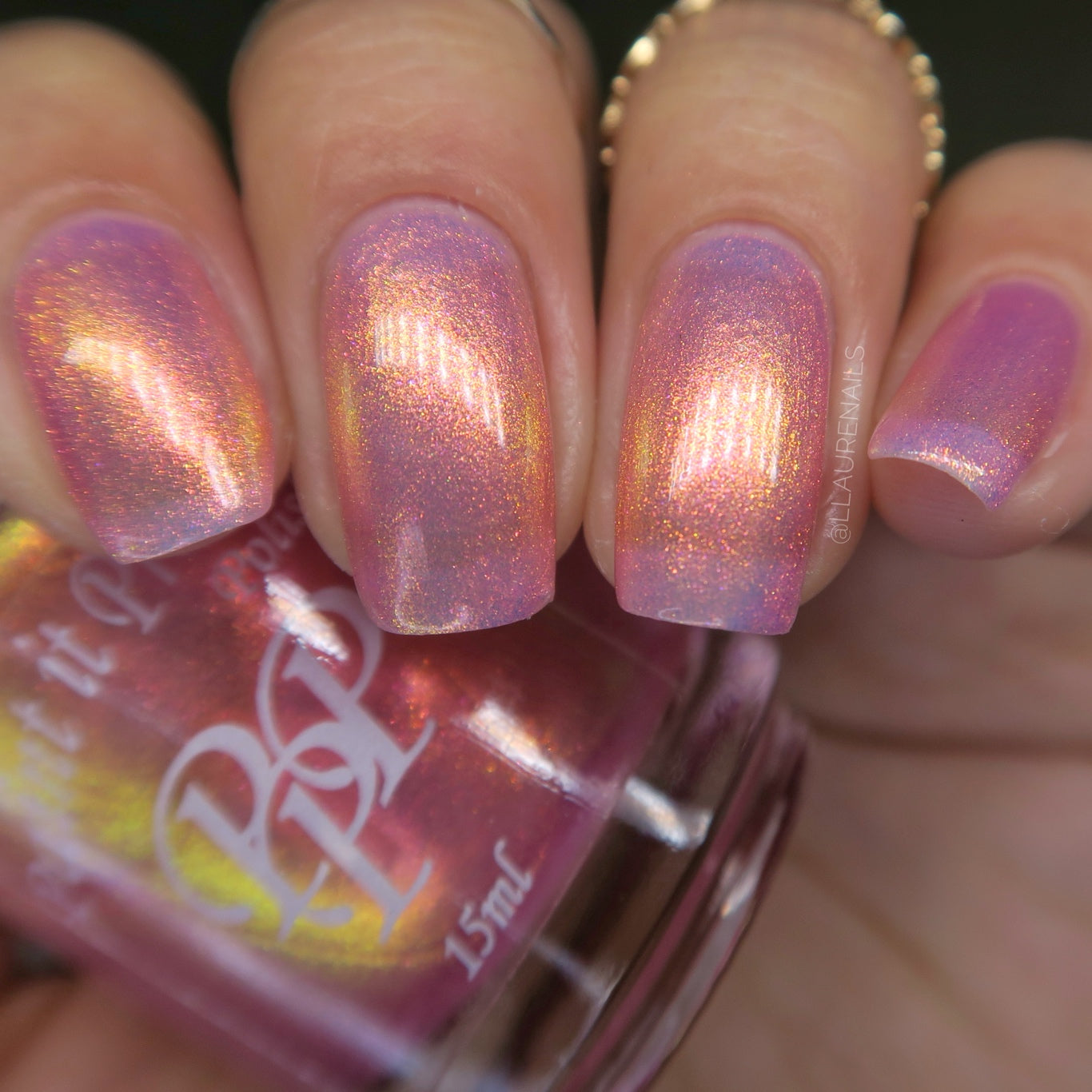 Skyline Views is a sheer light pink with a pink to orange to yellow shimmer