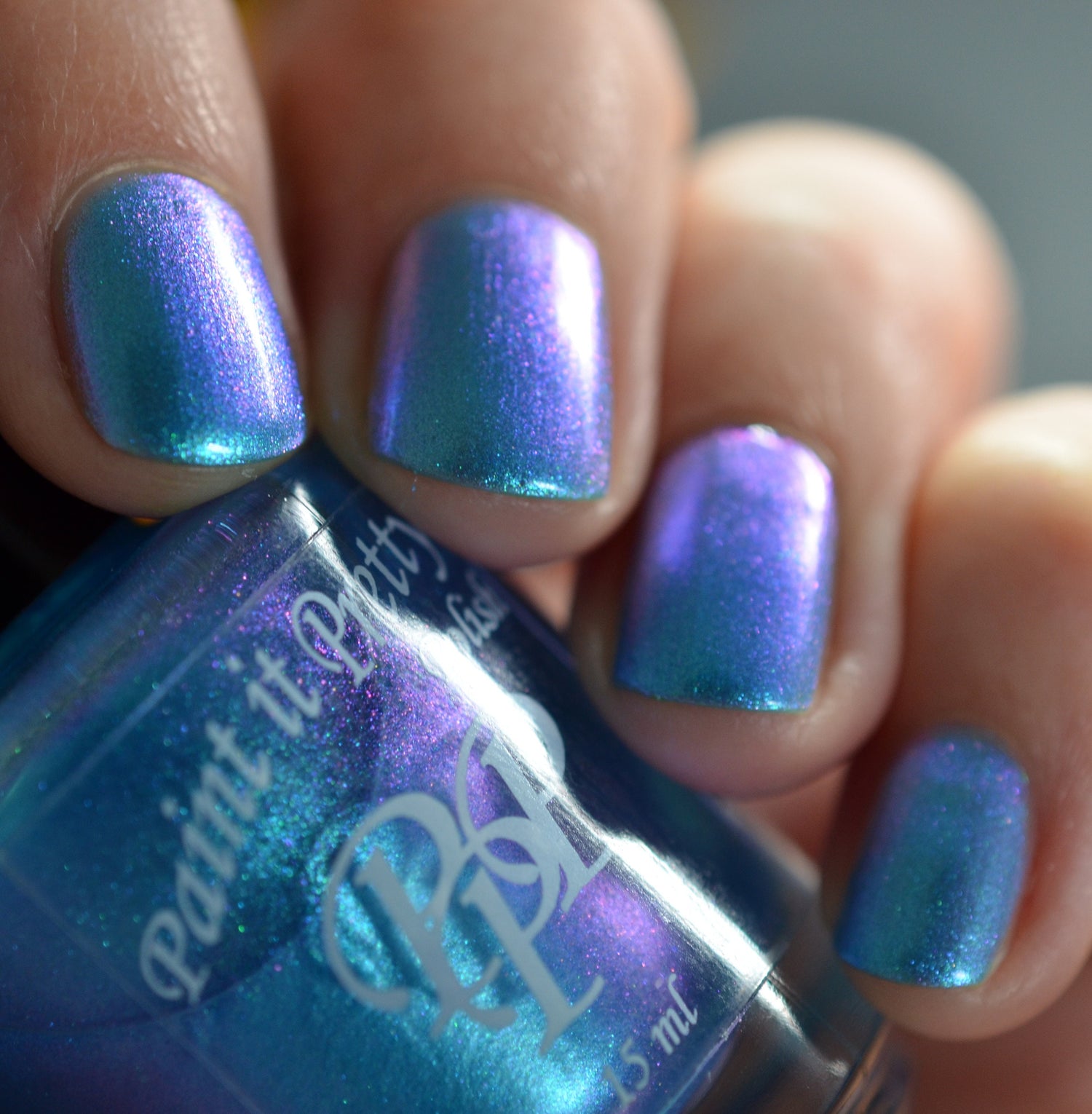 Rocking a pair of Spooky Shoes? Don't be afraid! No matter what’s going on with your footwear your nails are sure to entice with this incredibly shifty multichrome. With shifts of blue, pink, purple, turquoise (and even a little green at extreme angles) your nails will have all the attention on them.