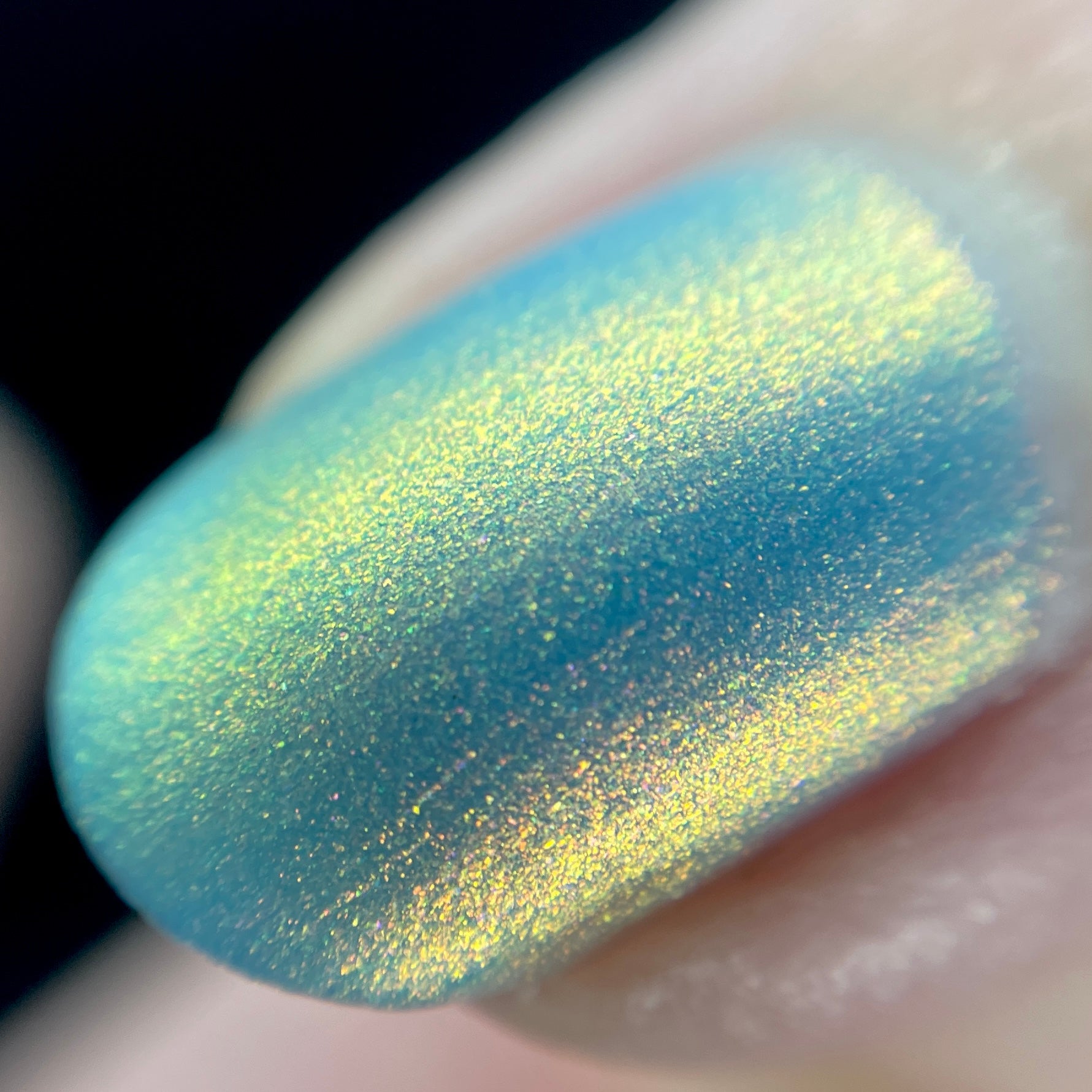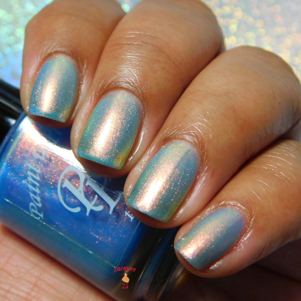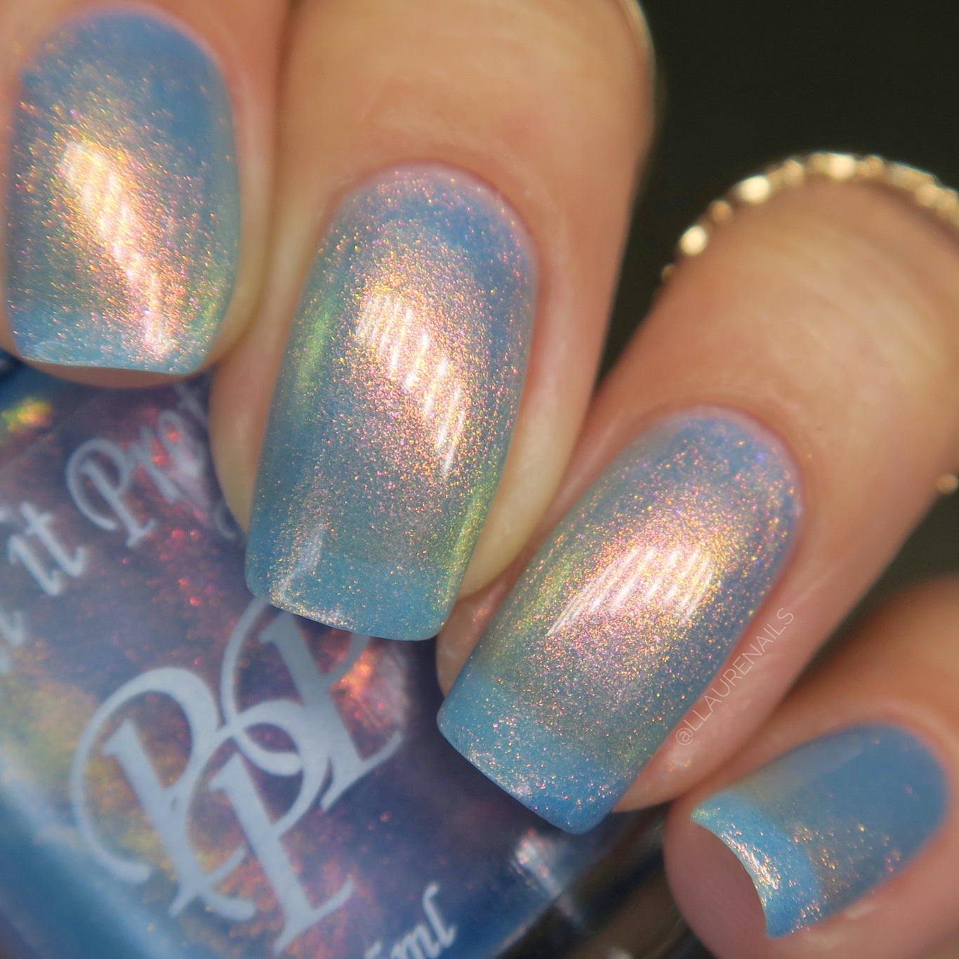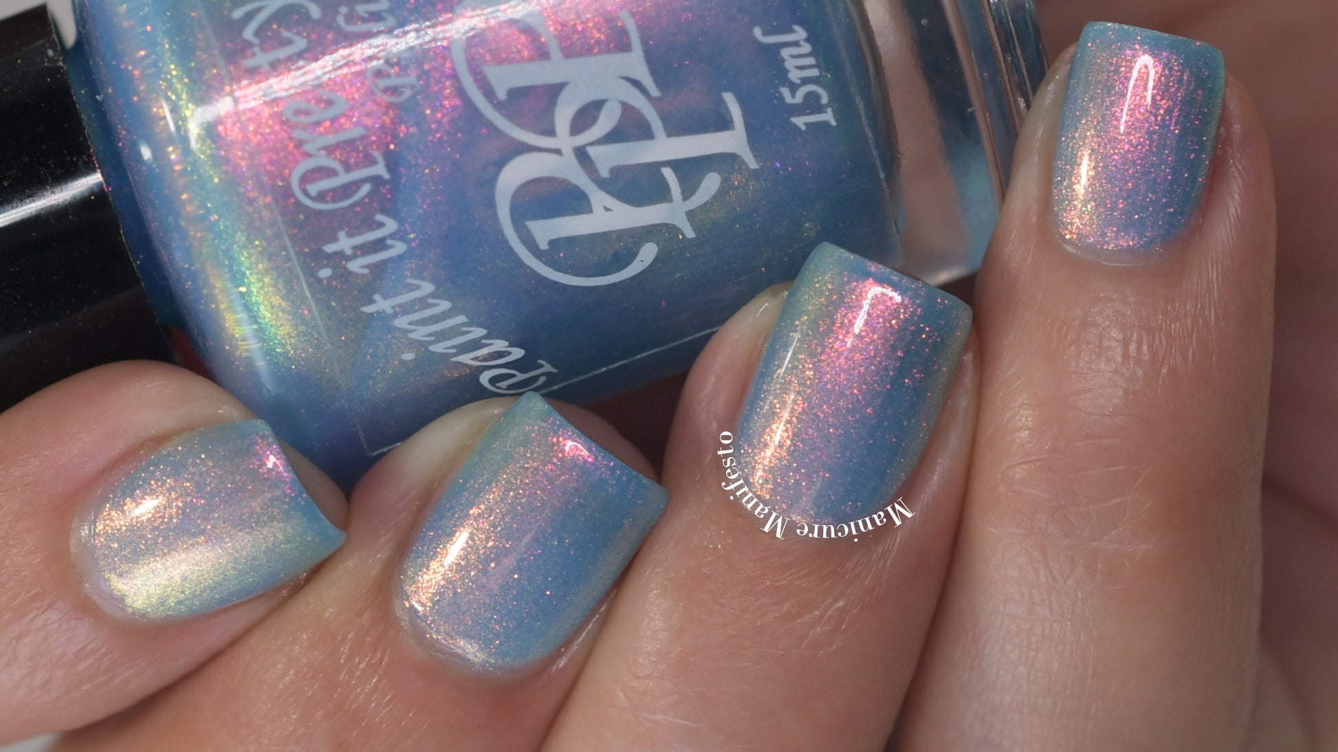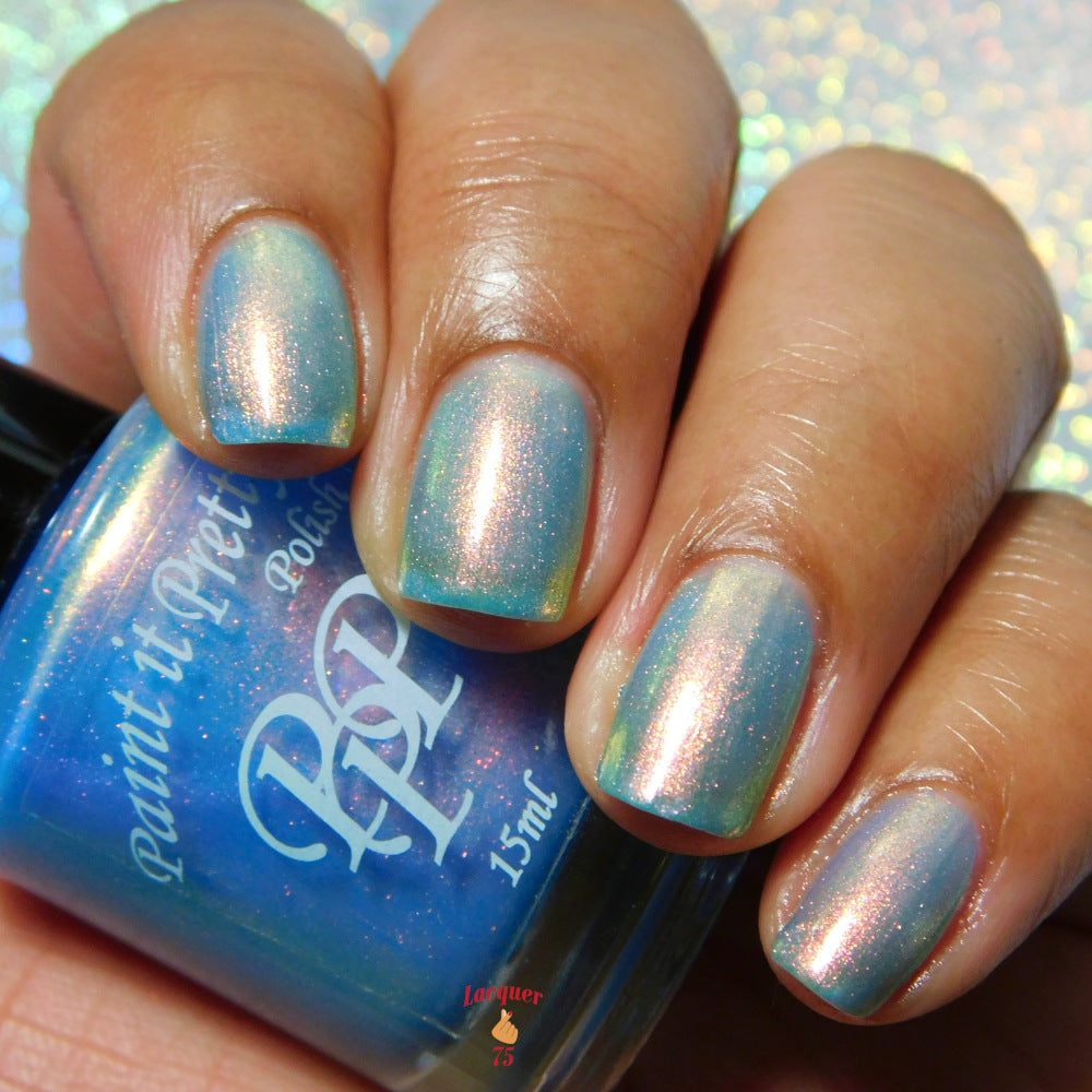 The Windy City is a light blue with pink to orange to yellow to green shimmer