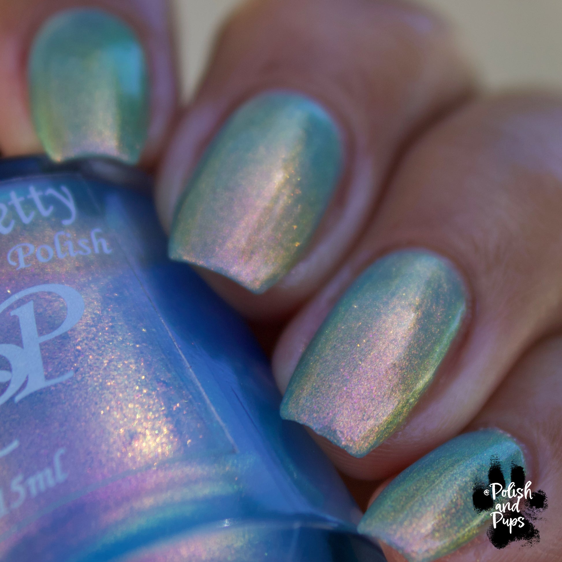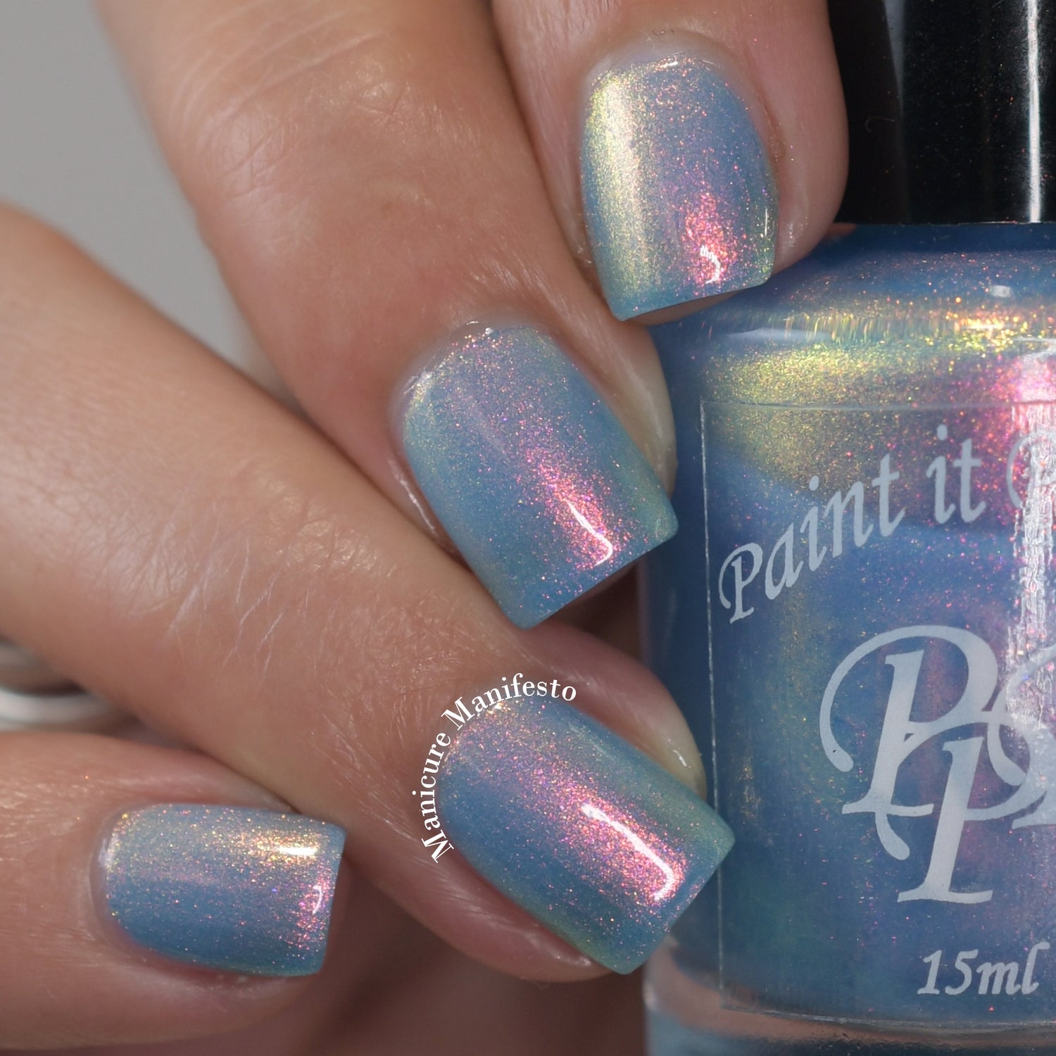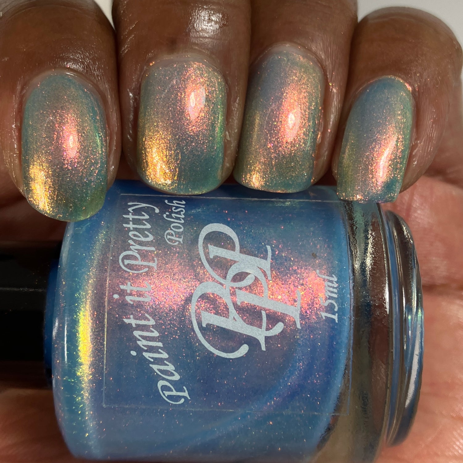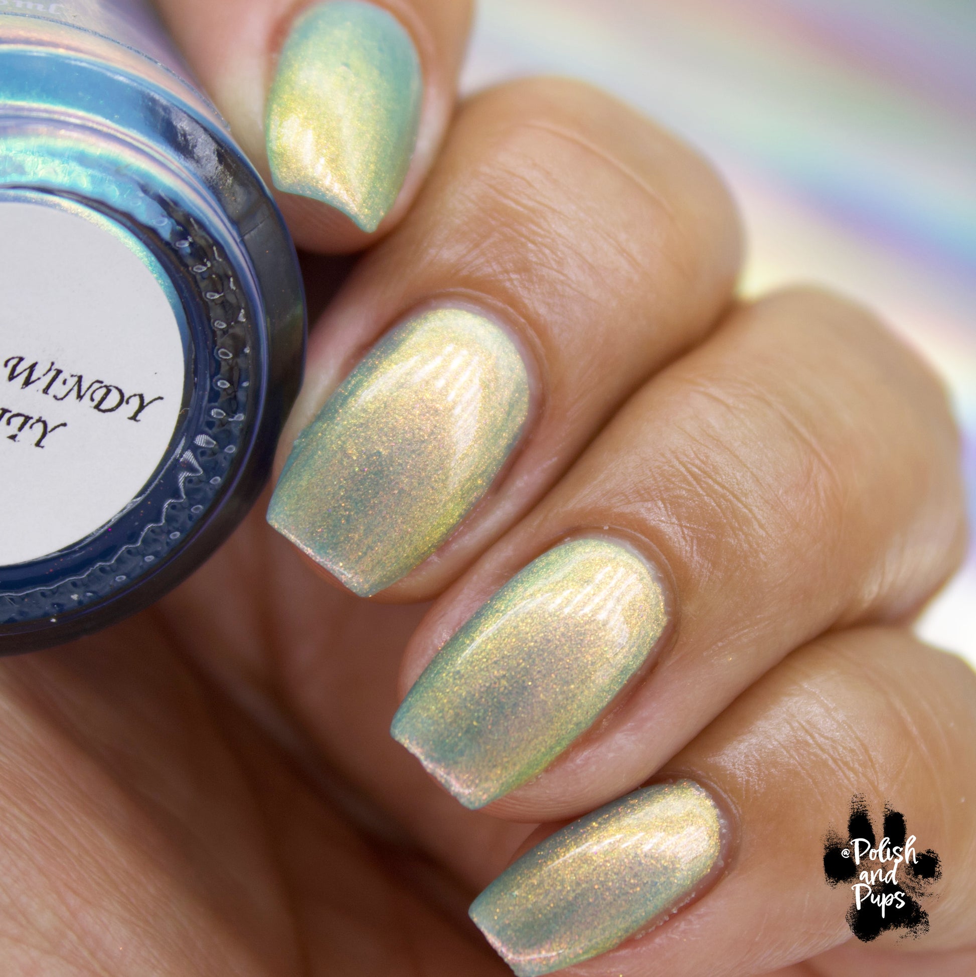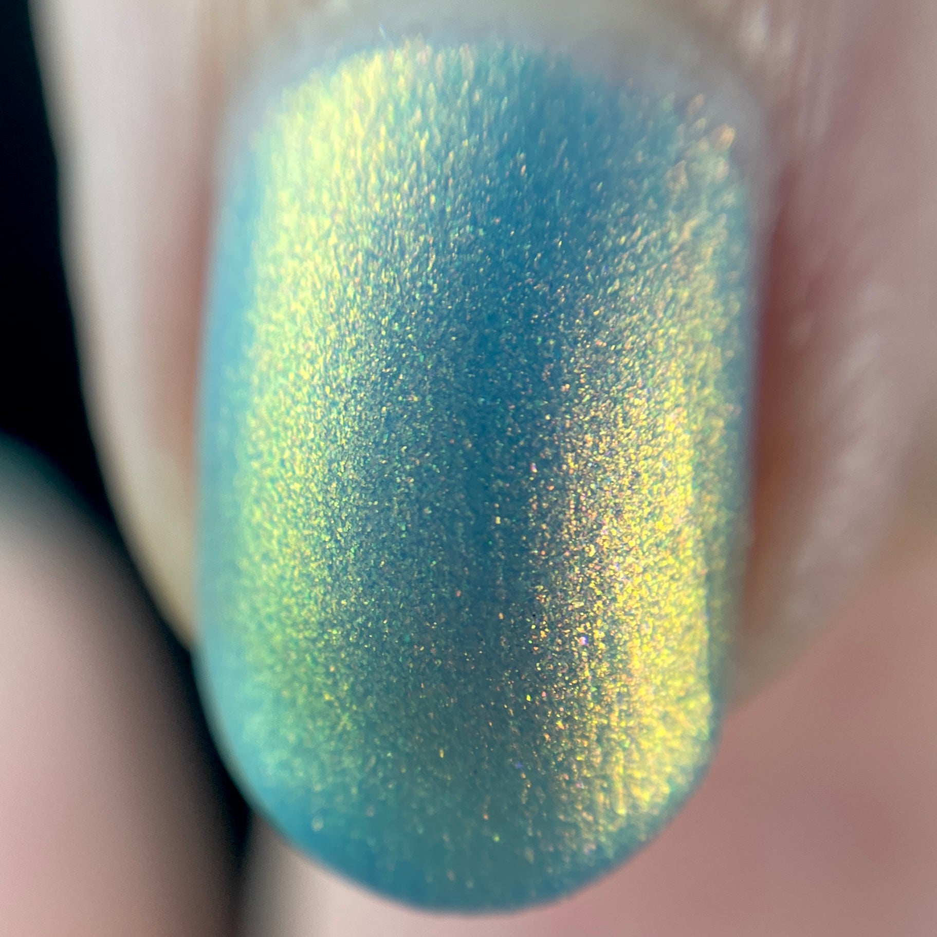 The Windy City is a light blue with pink to orange to yellow to green shimmer