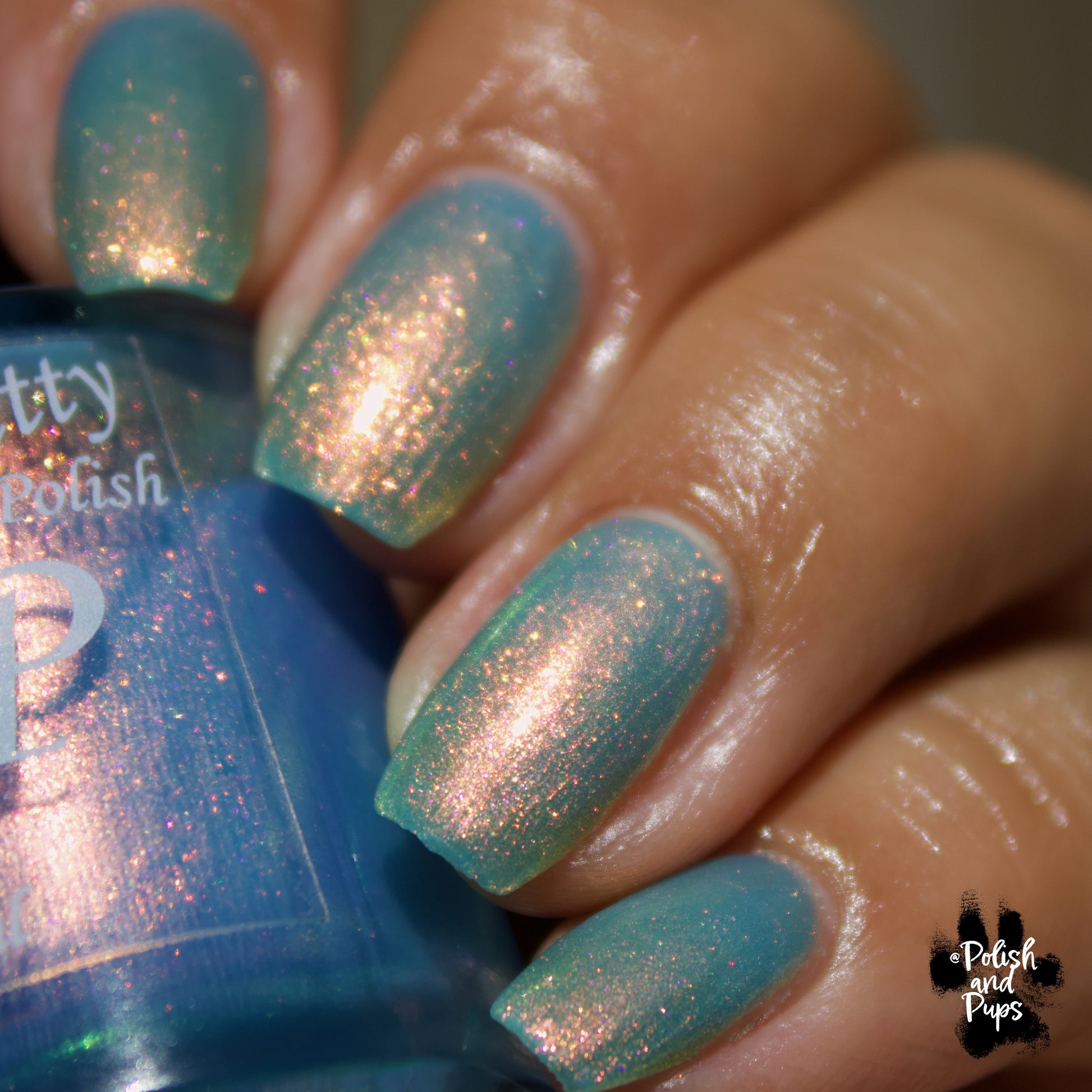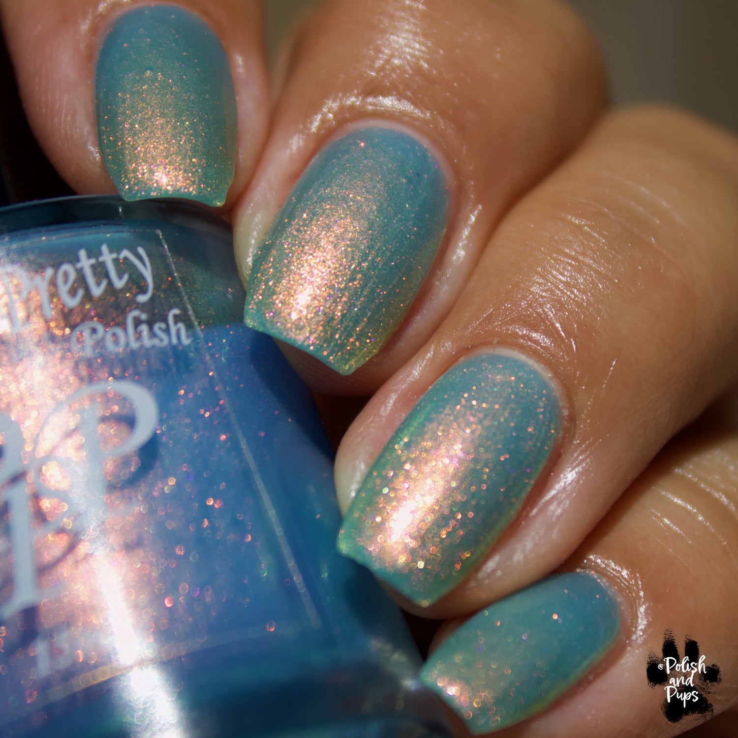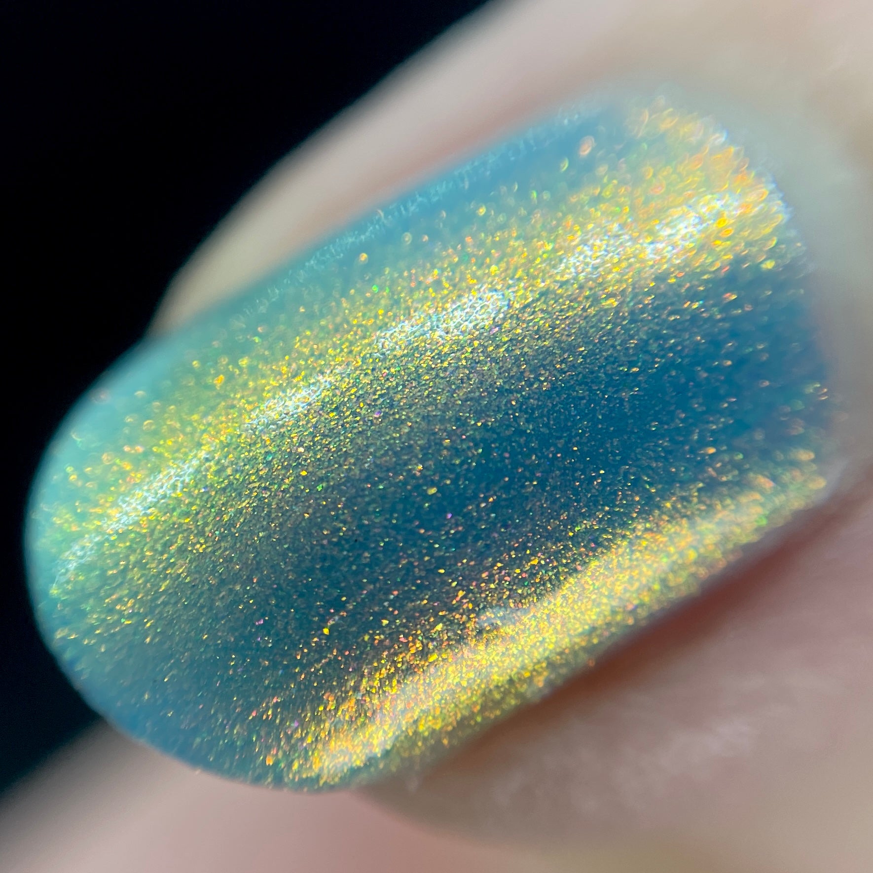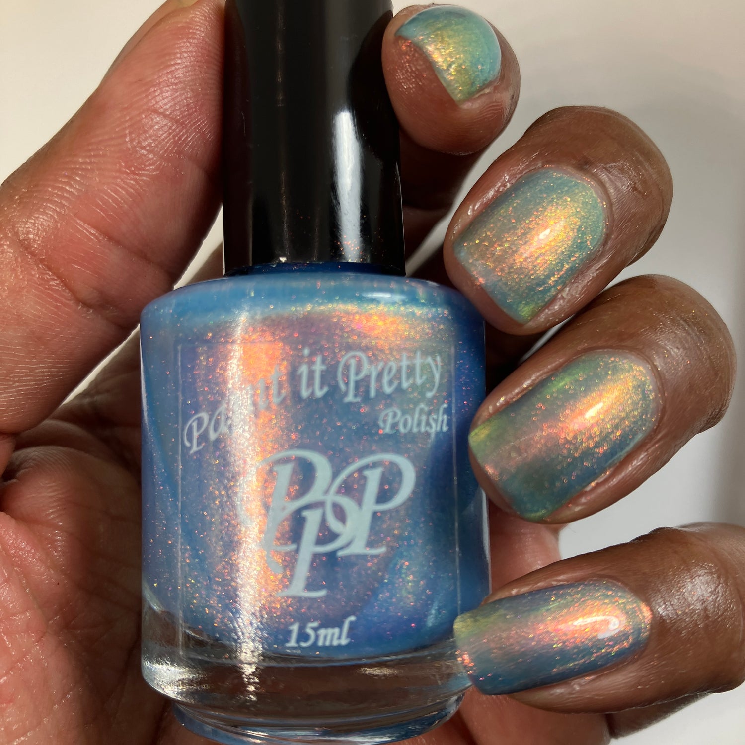 The Windy City is a light blue with pink to orange to yellow to green shimmer