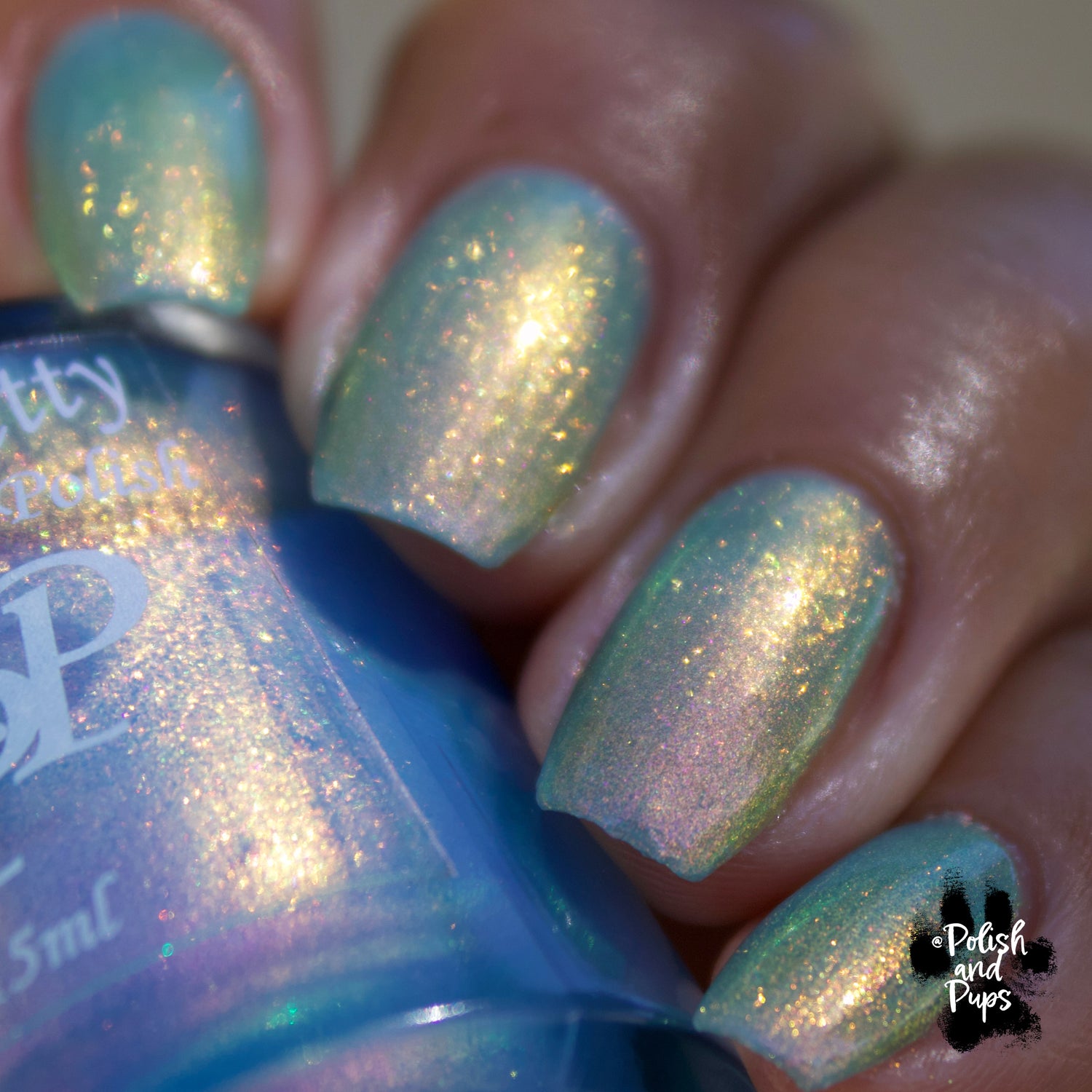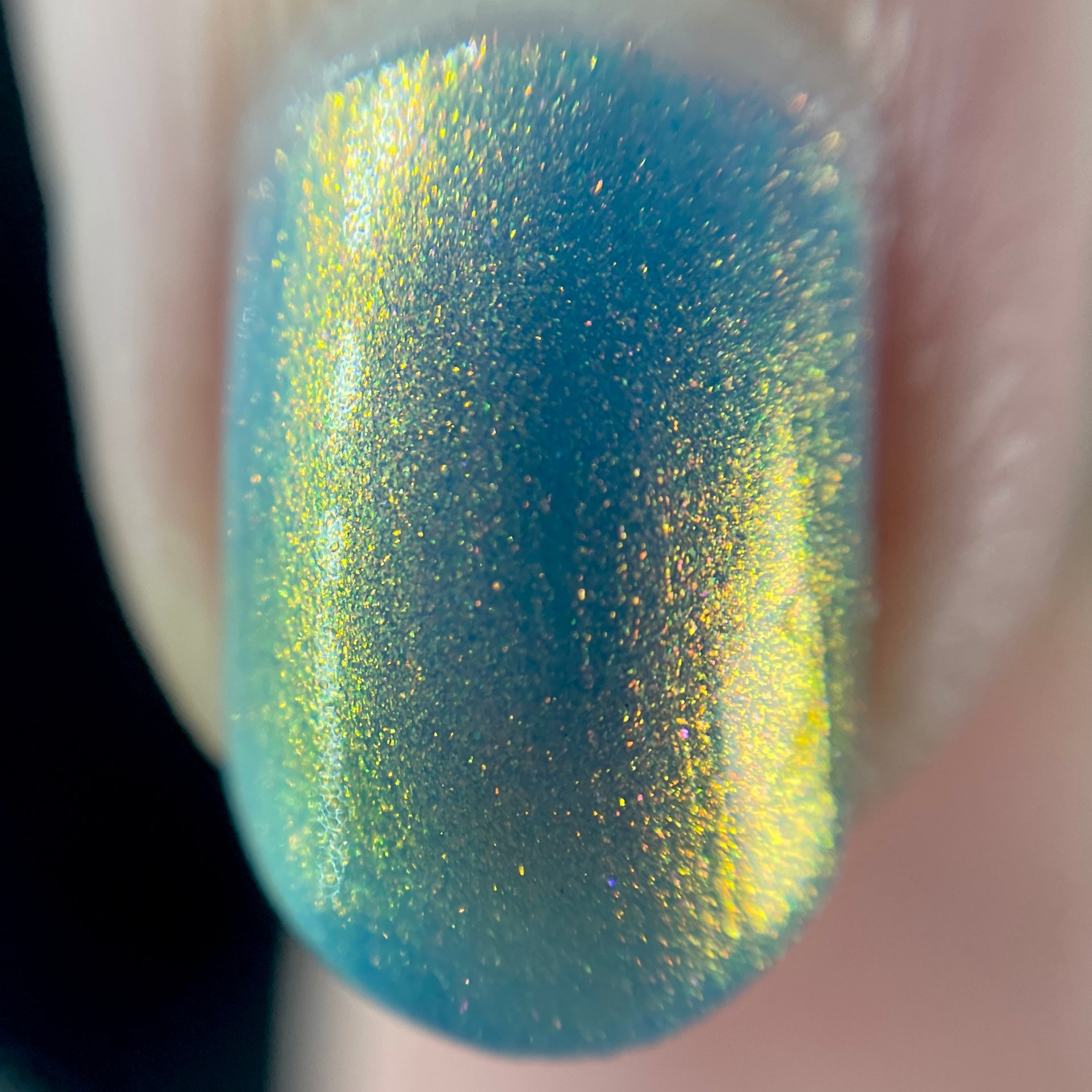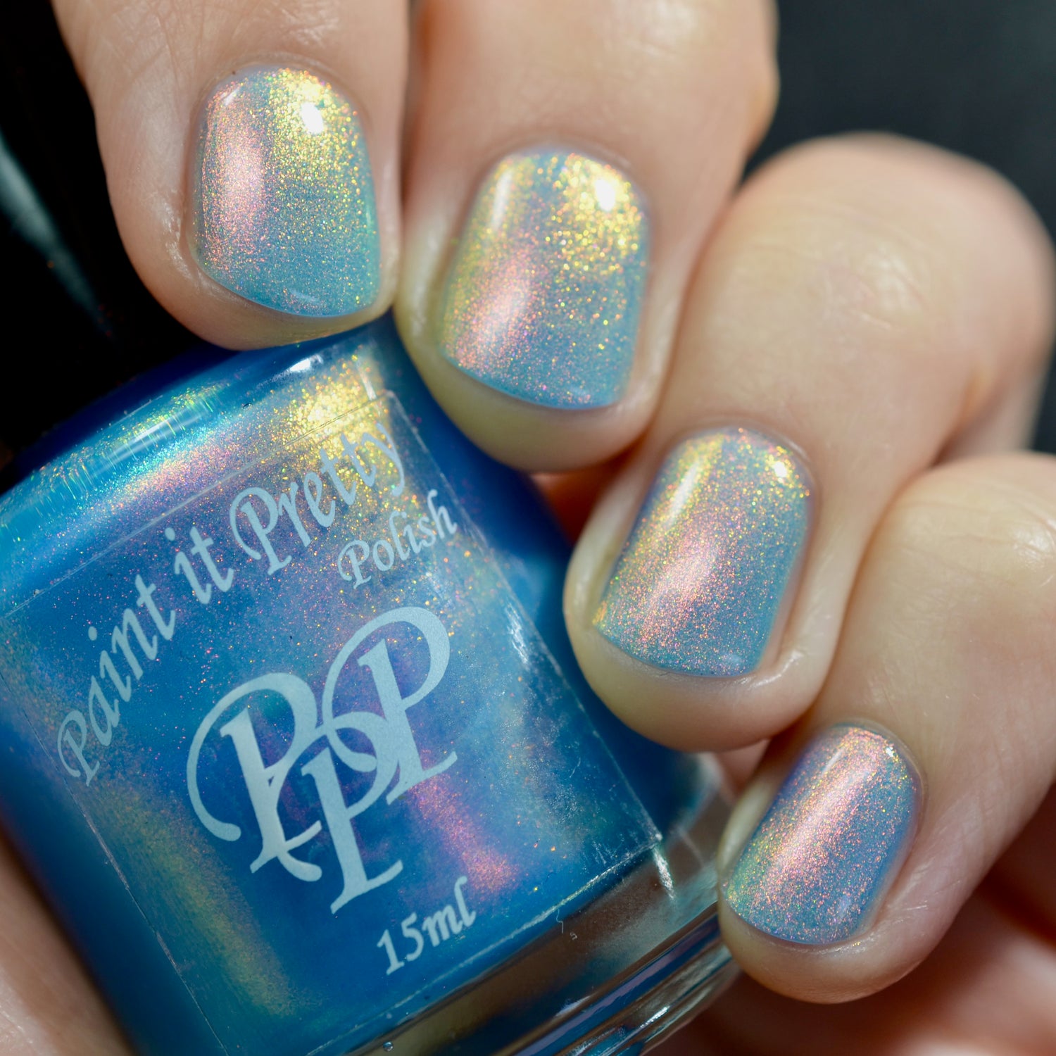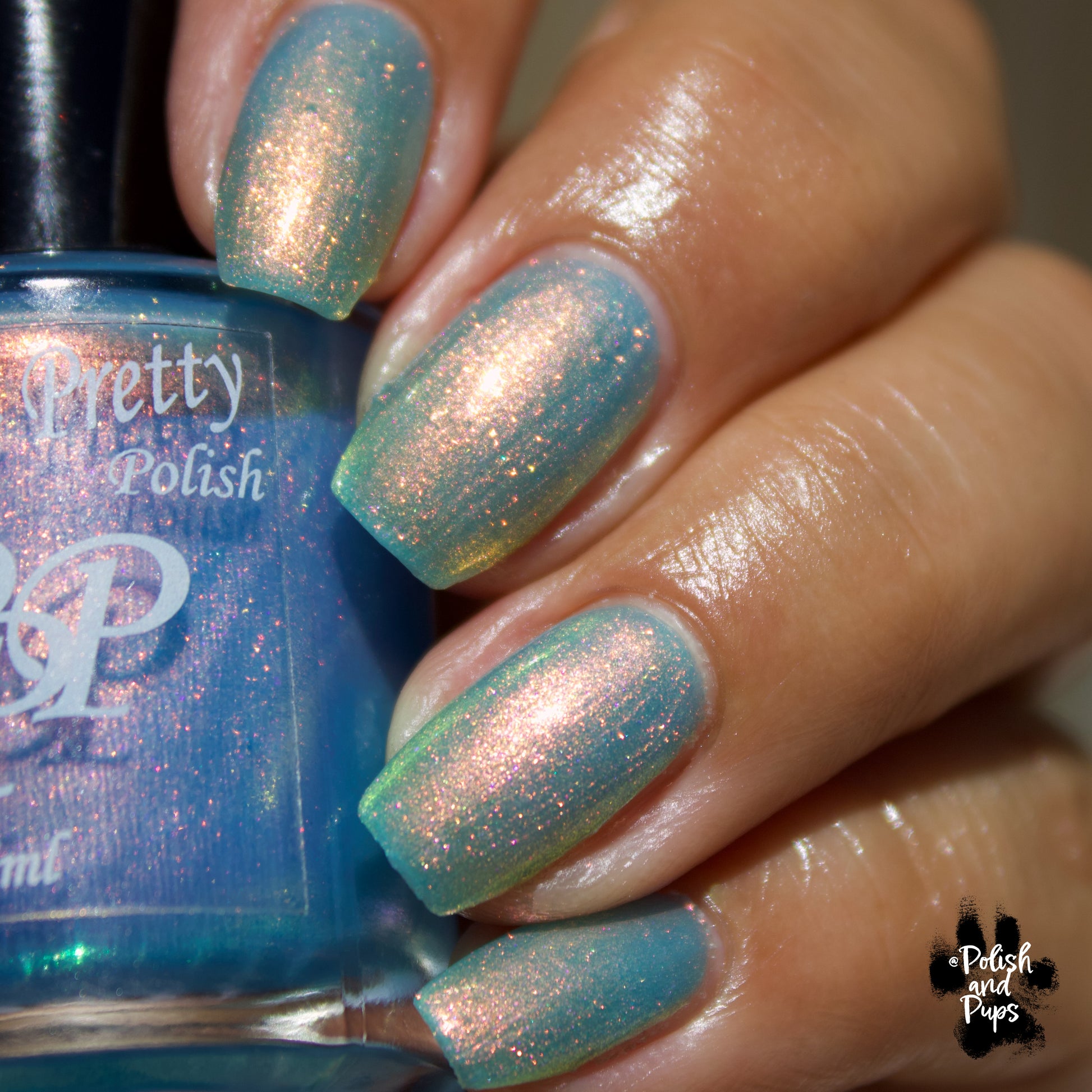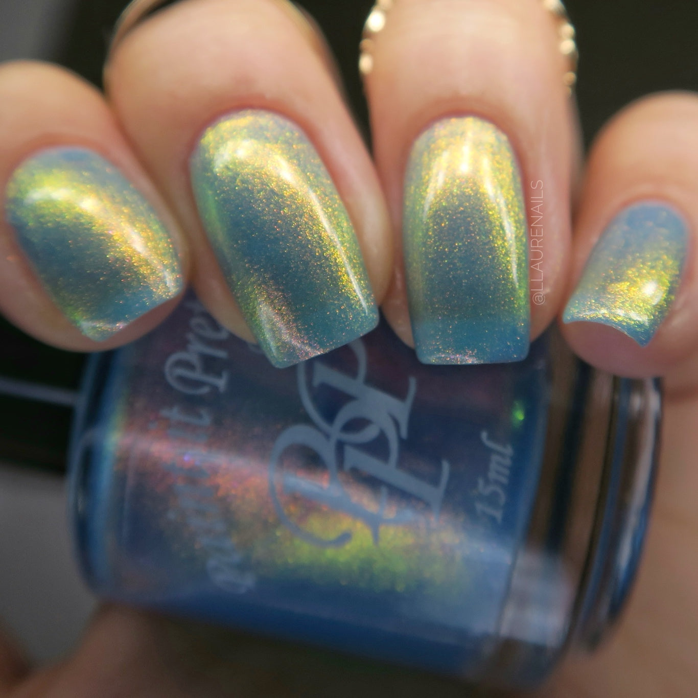 The Windy City is a light blue with pink to orange to yellow to green shimmer