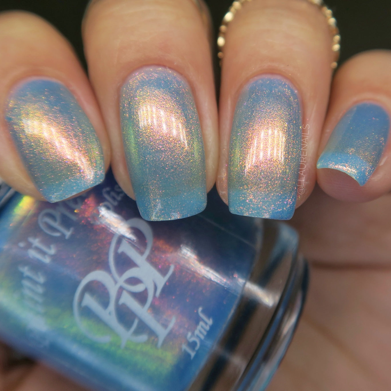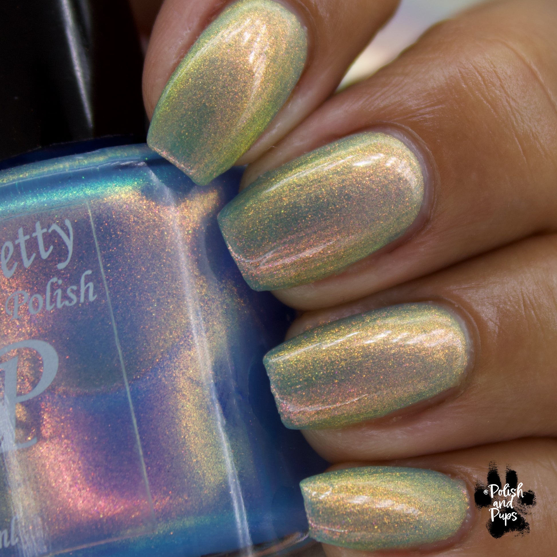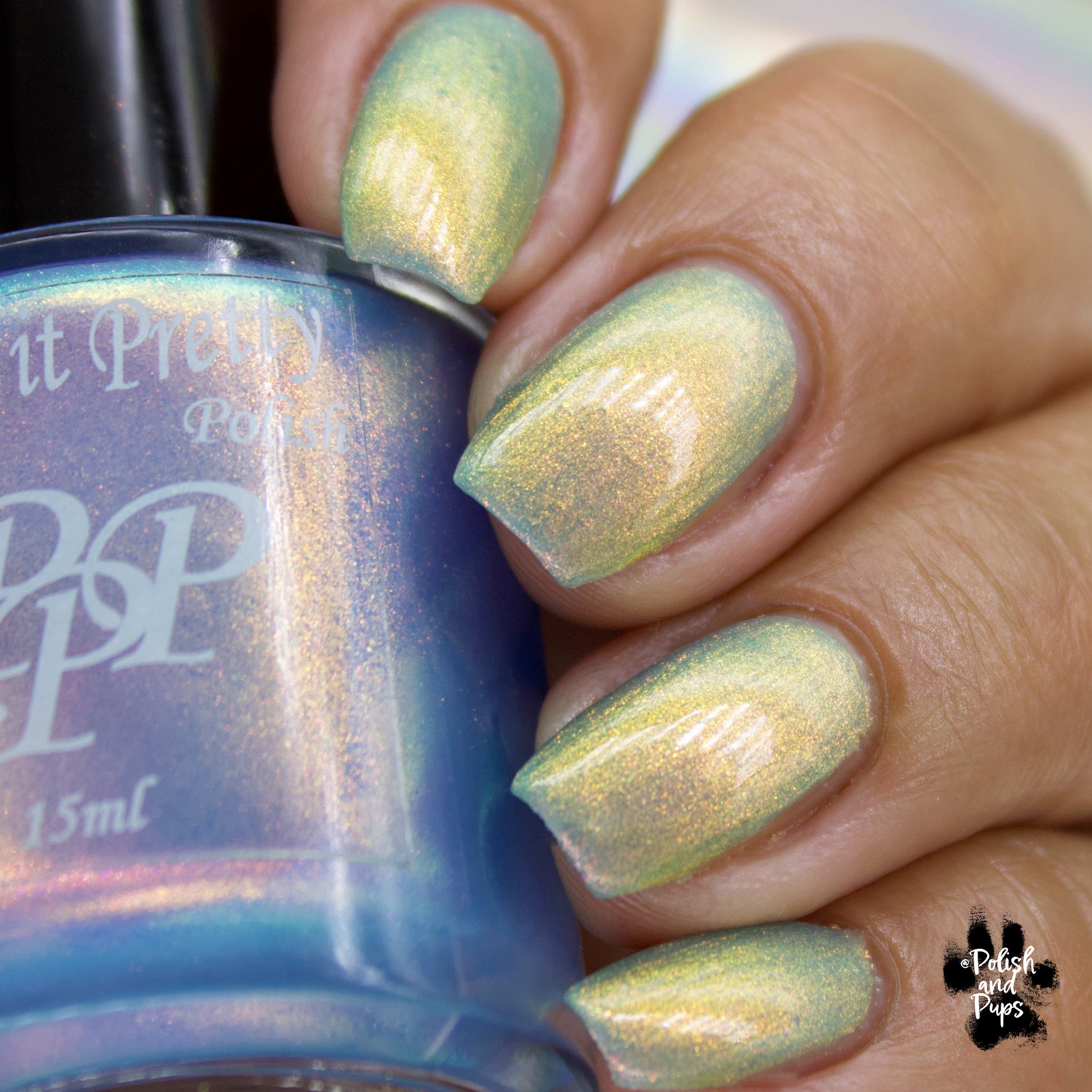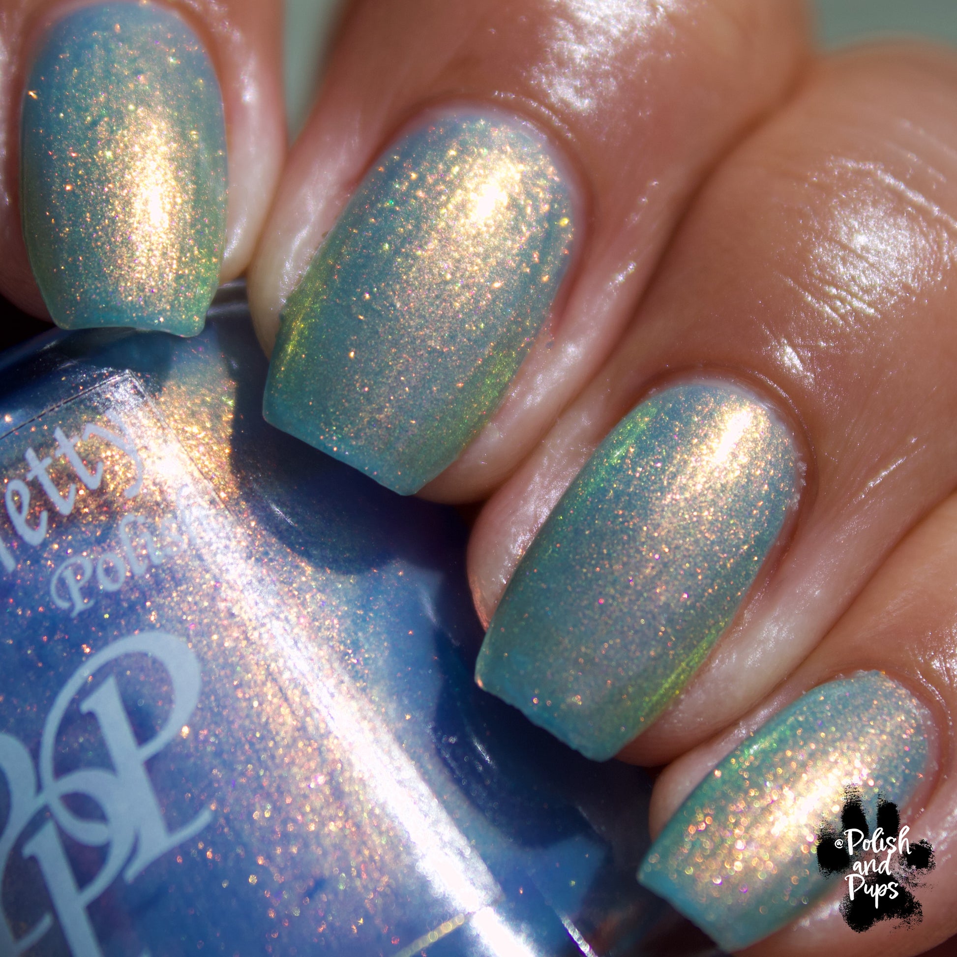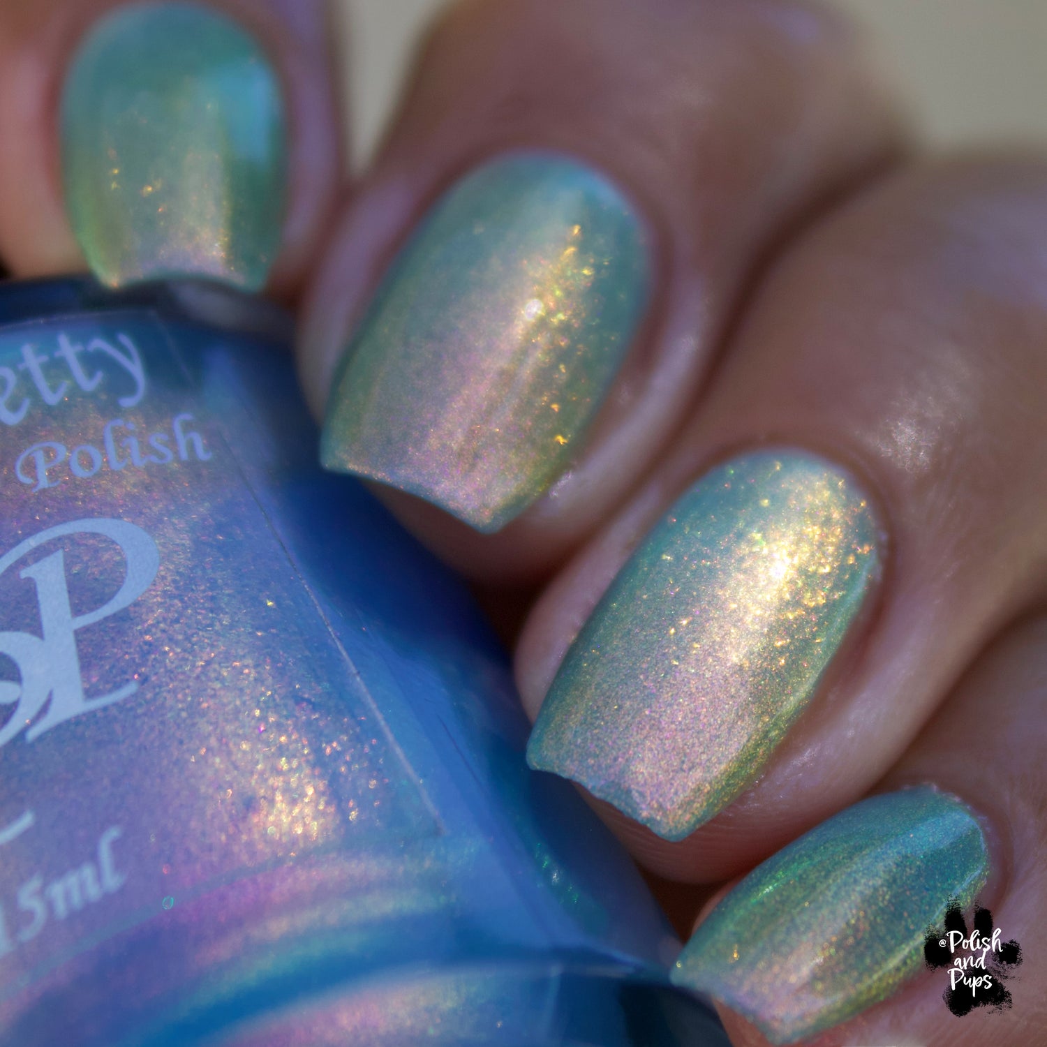 The Windy City is a light blue with pink to orange to yellow to green shimmer