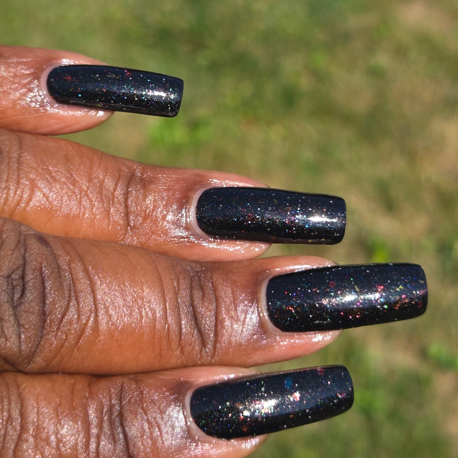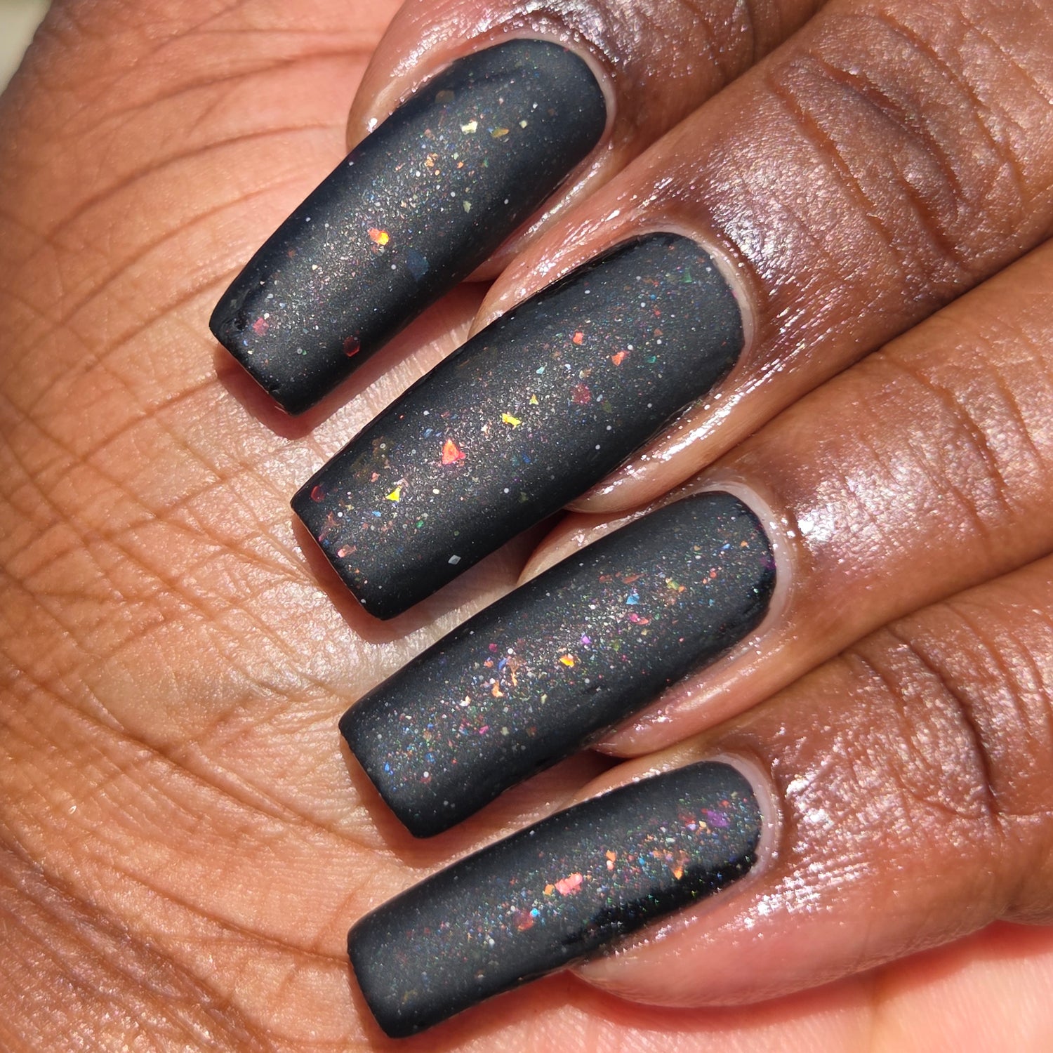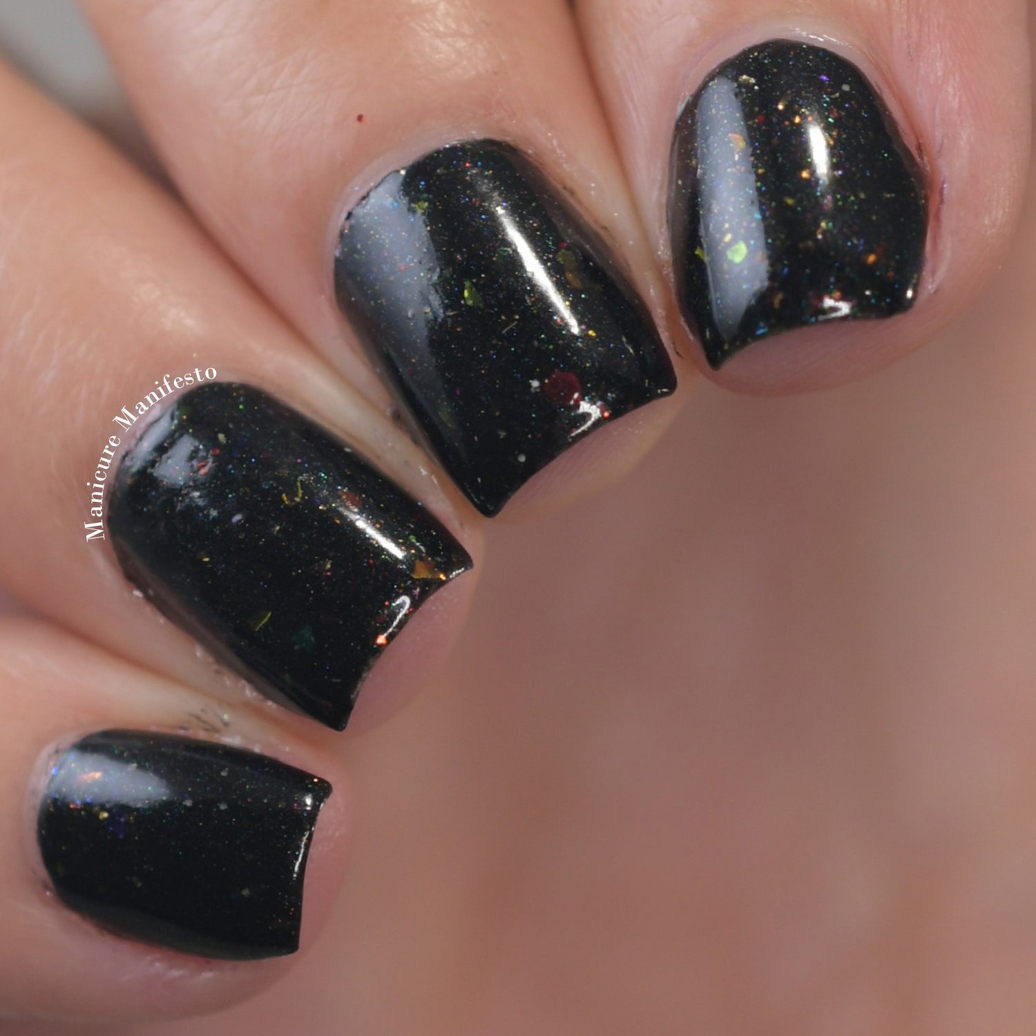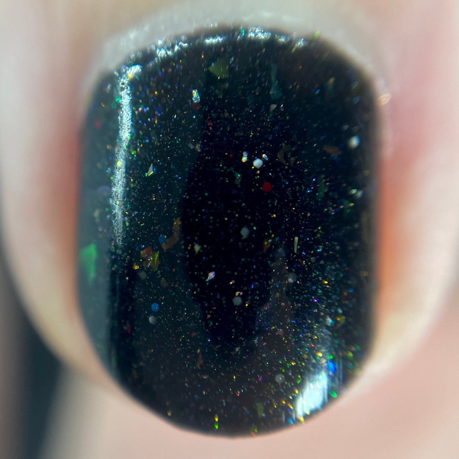 Witches Blood is a black polish with assorted sparkling micro flakes in every colour.