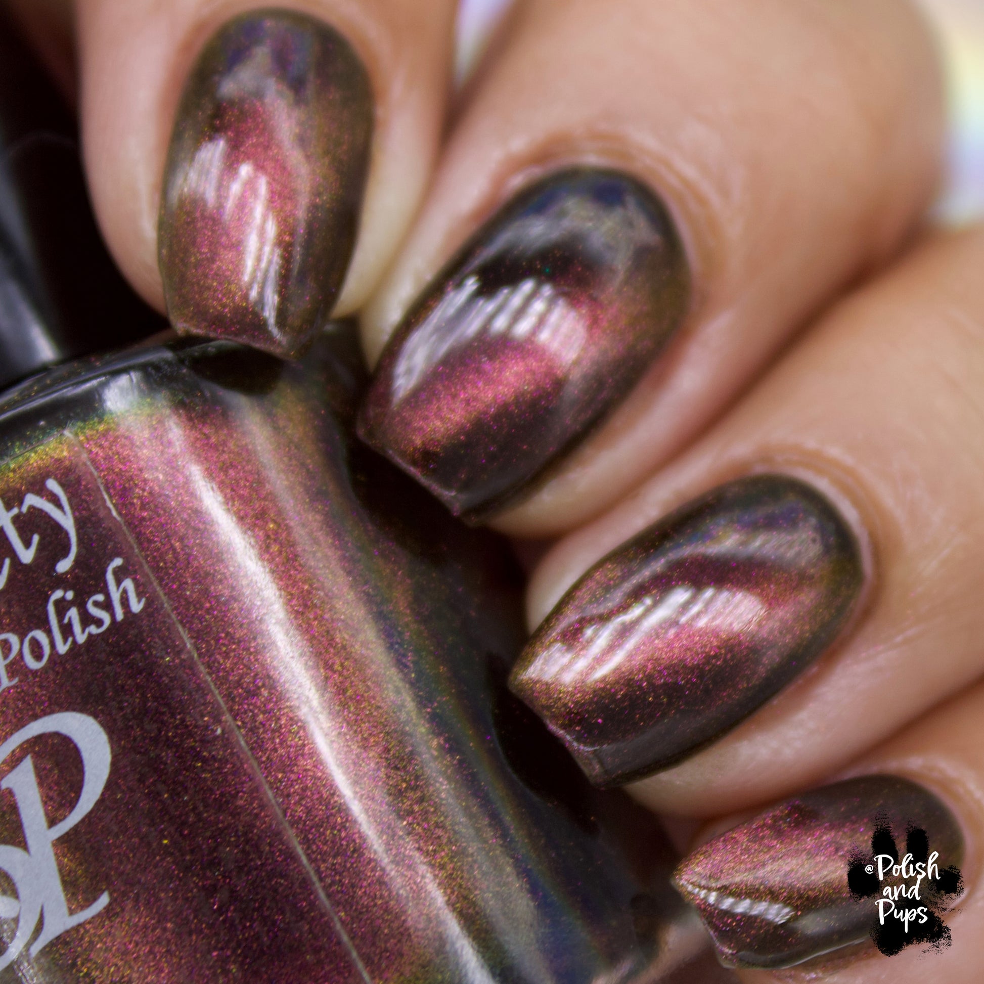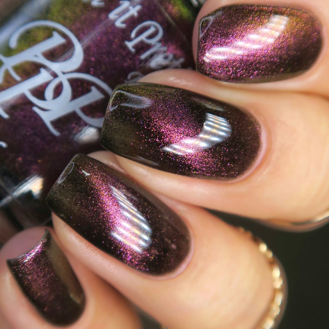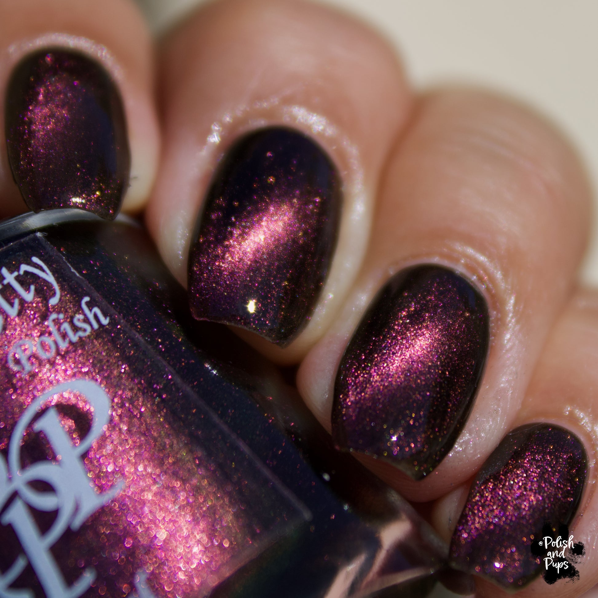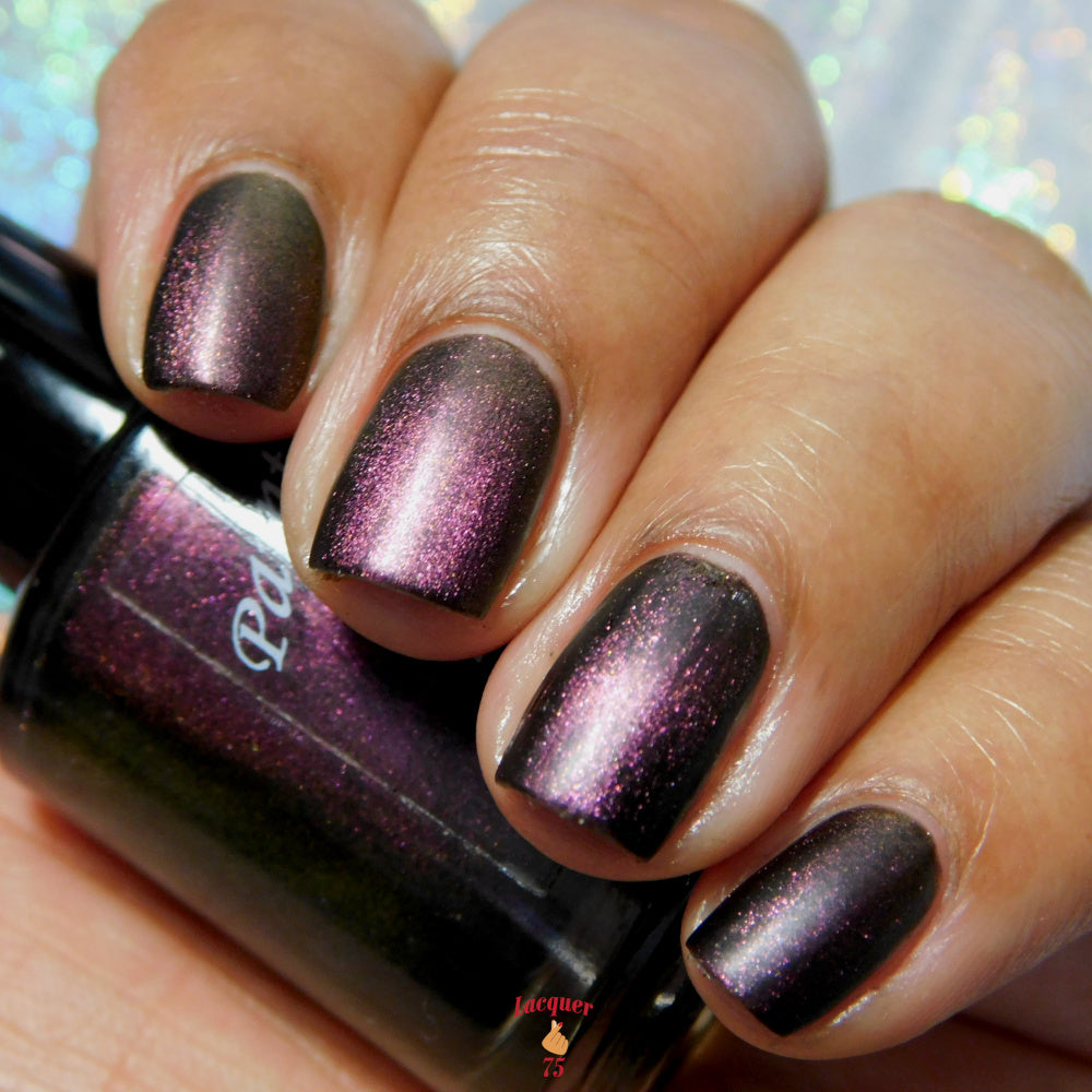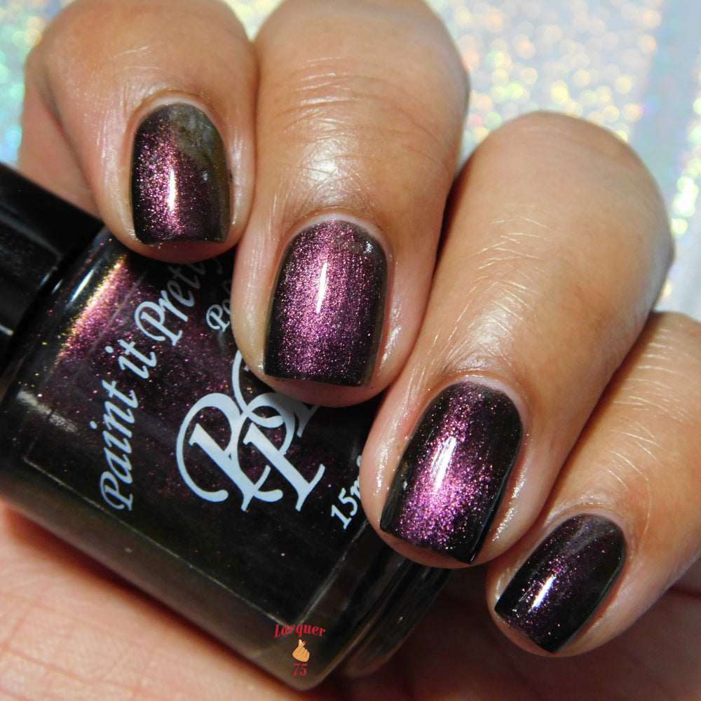 A Red Giant is a purple to gold to green magnetic polish in a black base.