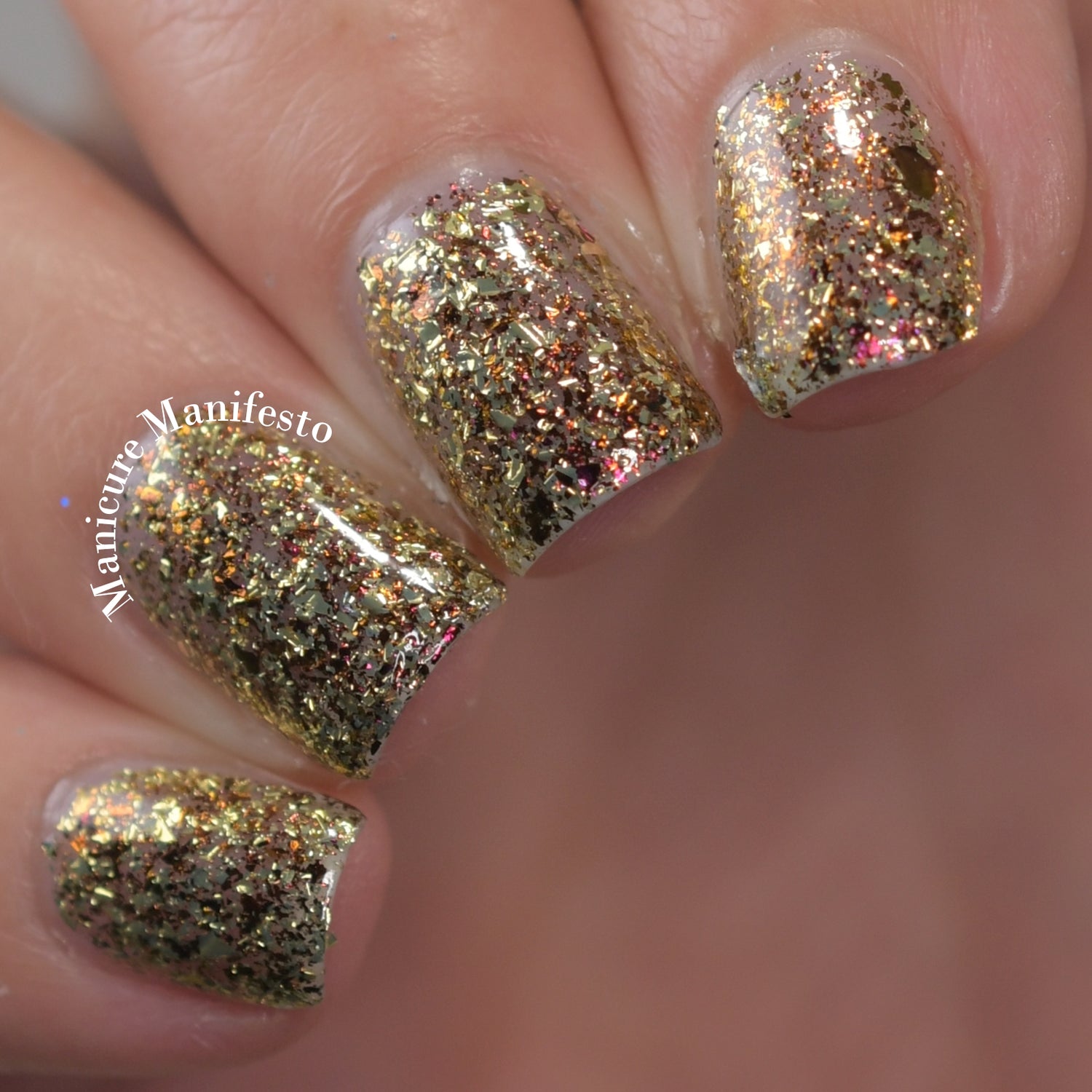 Blame It On The Elf is a clear based flake bomb with red, bronze chameleon flakes and metallic gold flakes