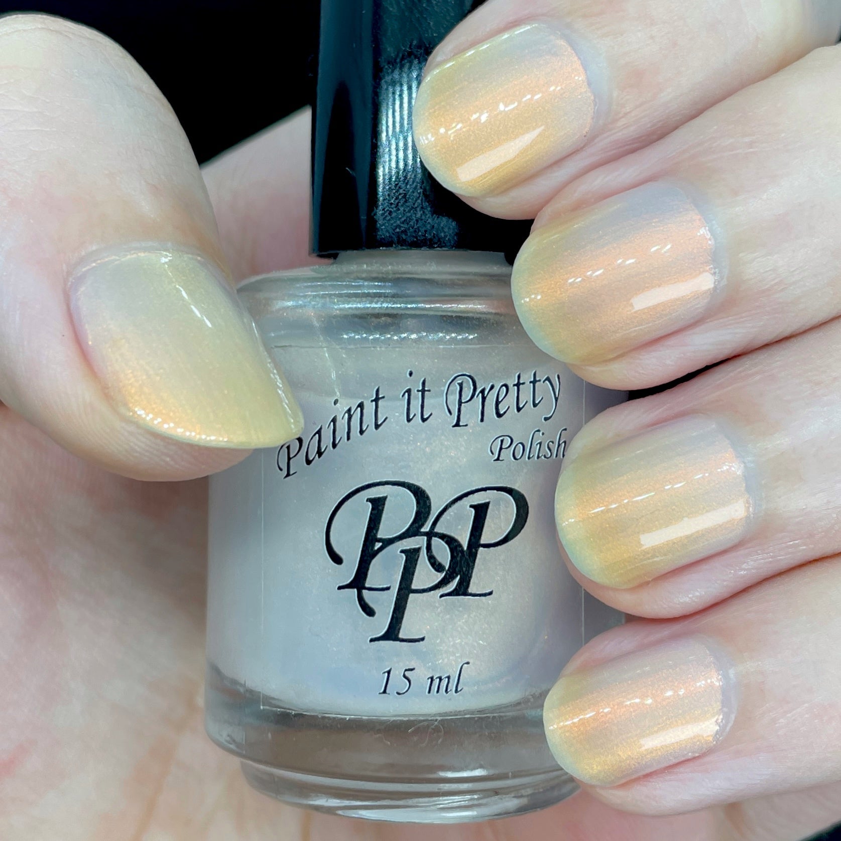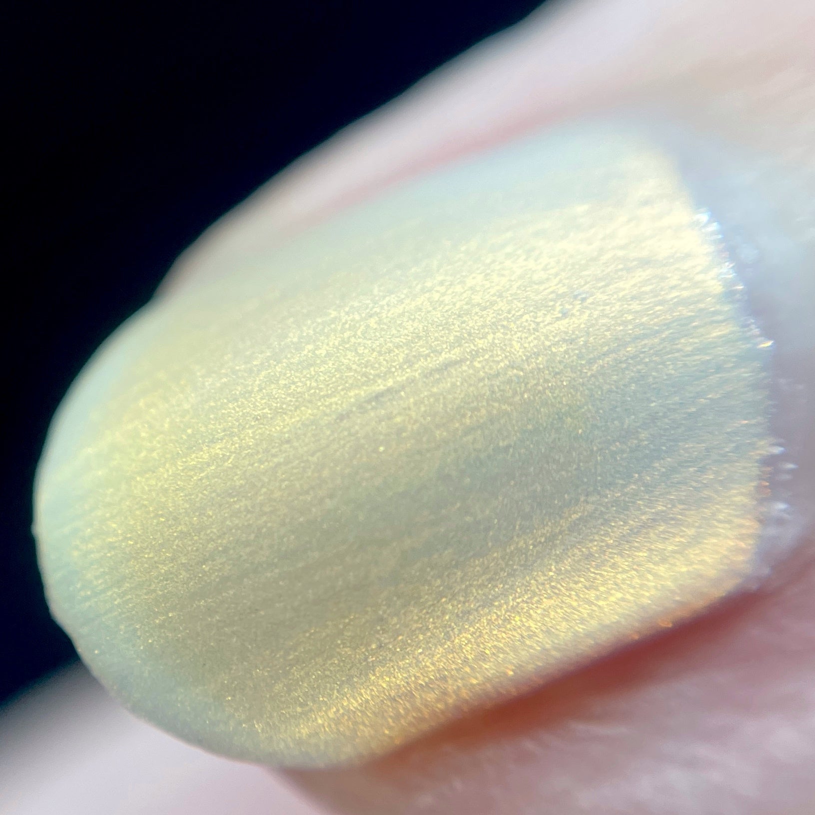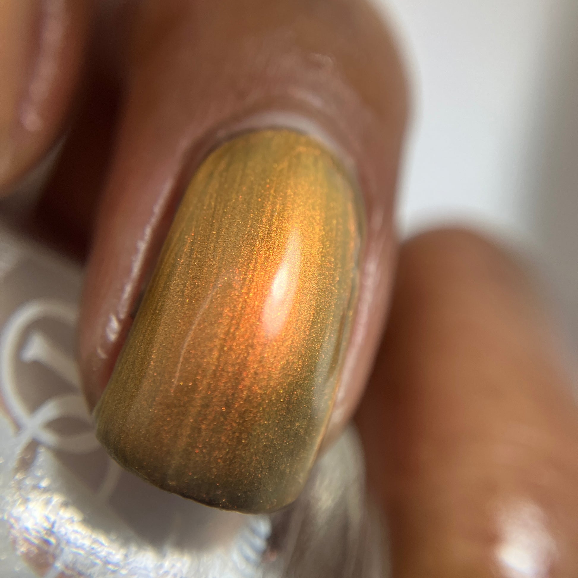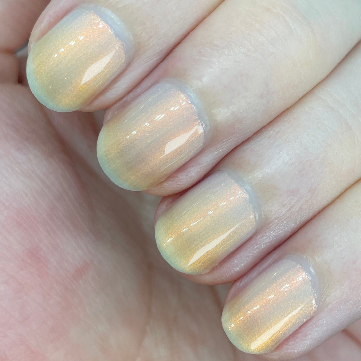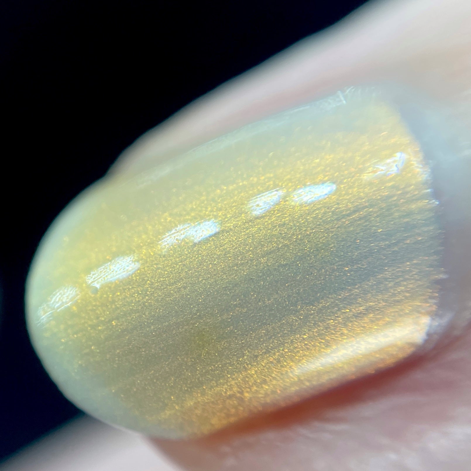 Harmony is beautiful orange/yellow shifting topper. Wear it on it's own for a soft milky shimmer effect or over darker shades to make the shifts pop.