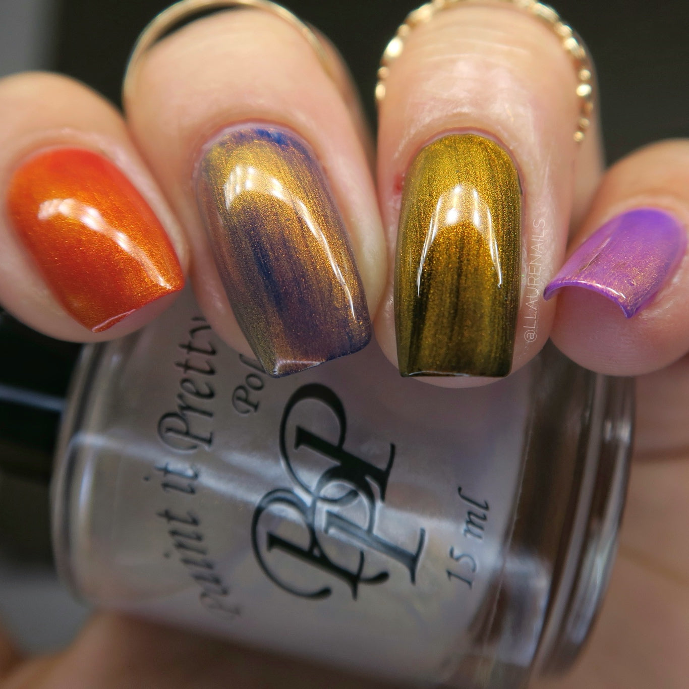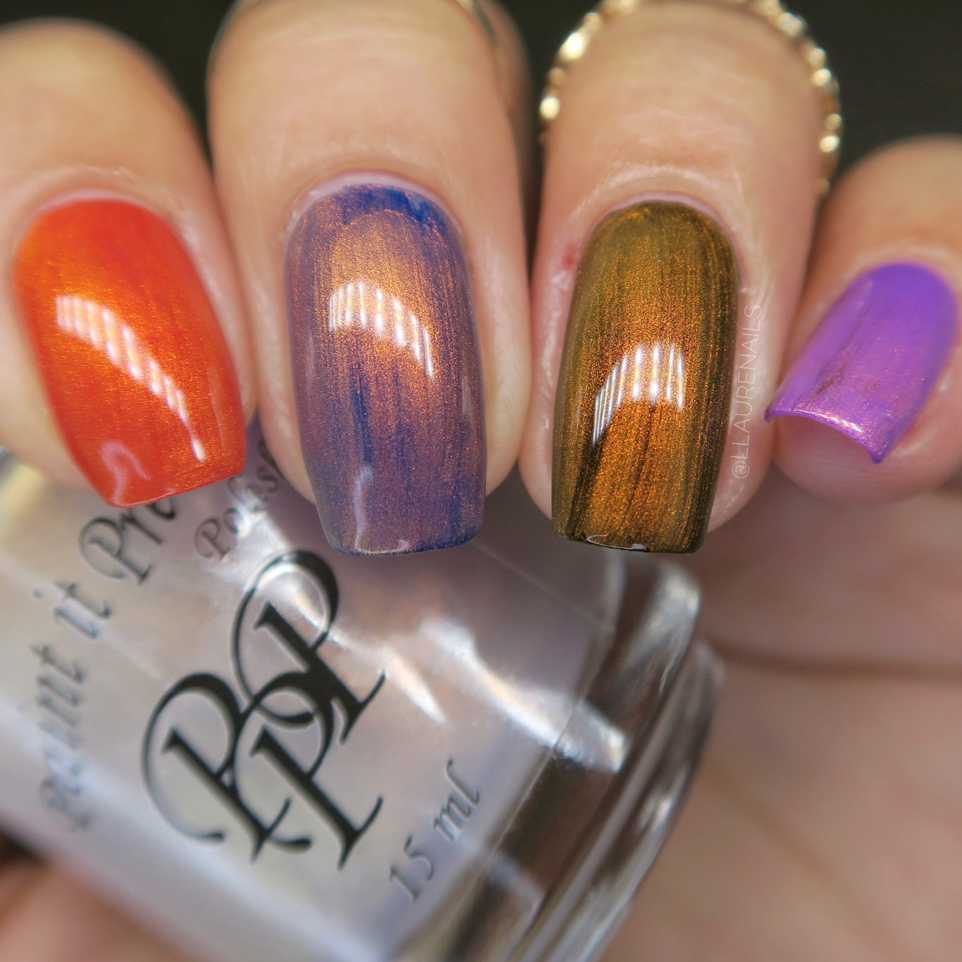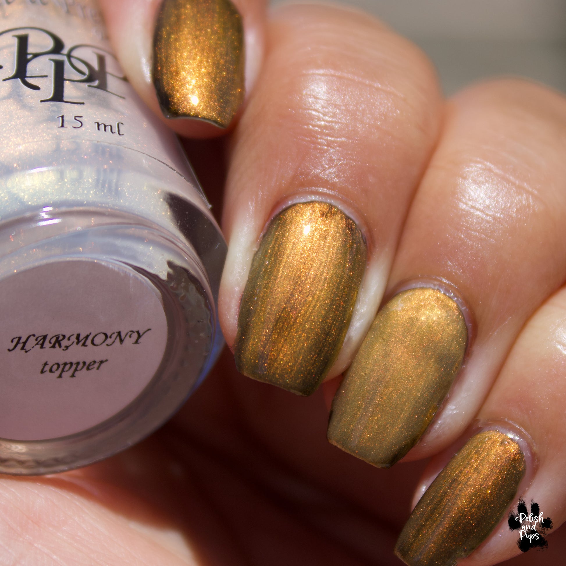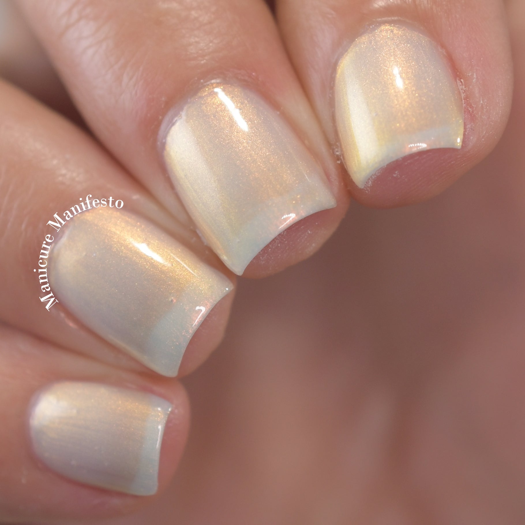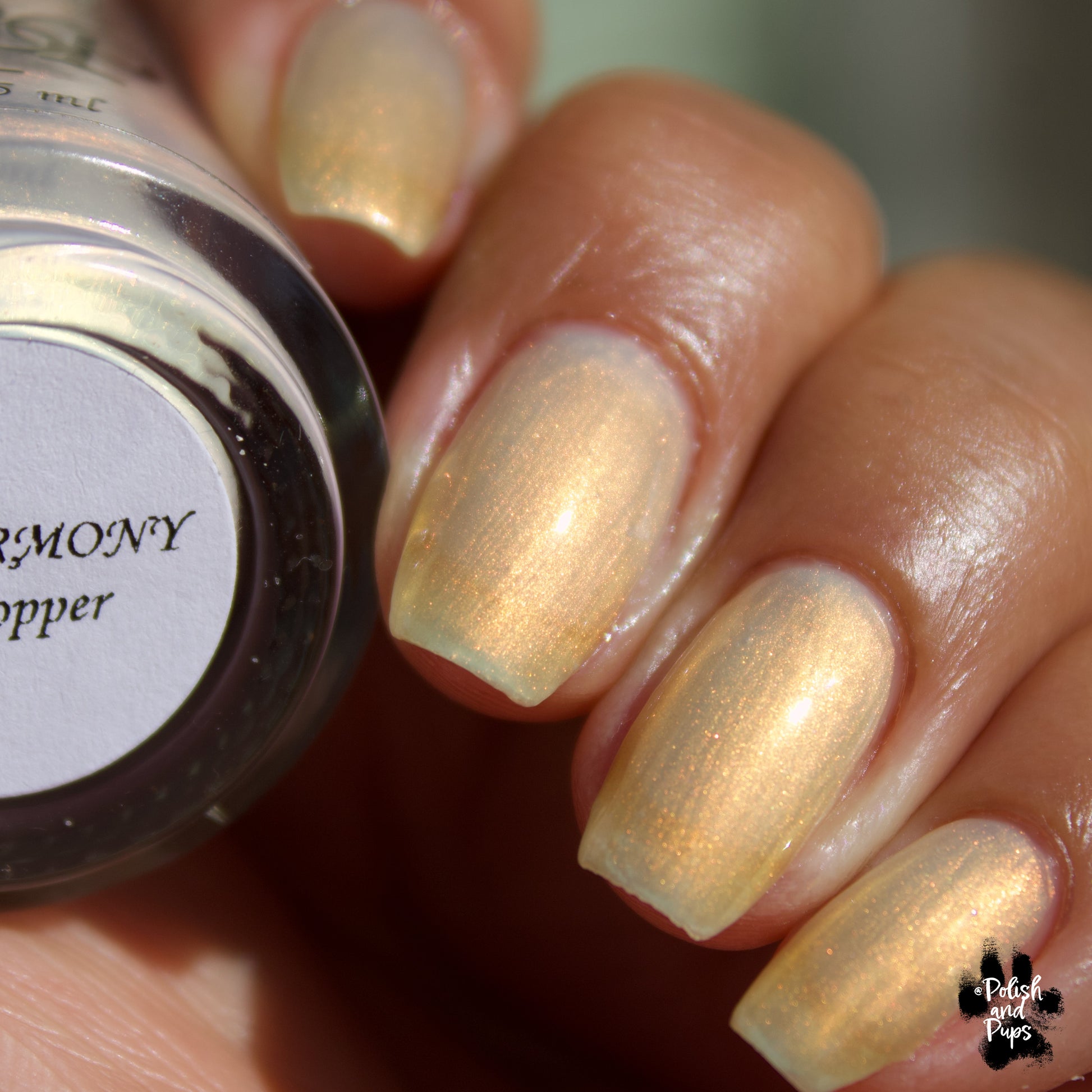 Harmony is beautiful orange/yellow shifting topper. Wear it on it's own for a soft milky shimmer effect or over darker shades to make the shifts pop.