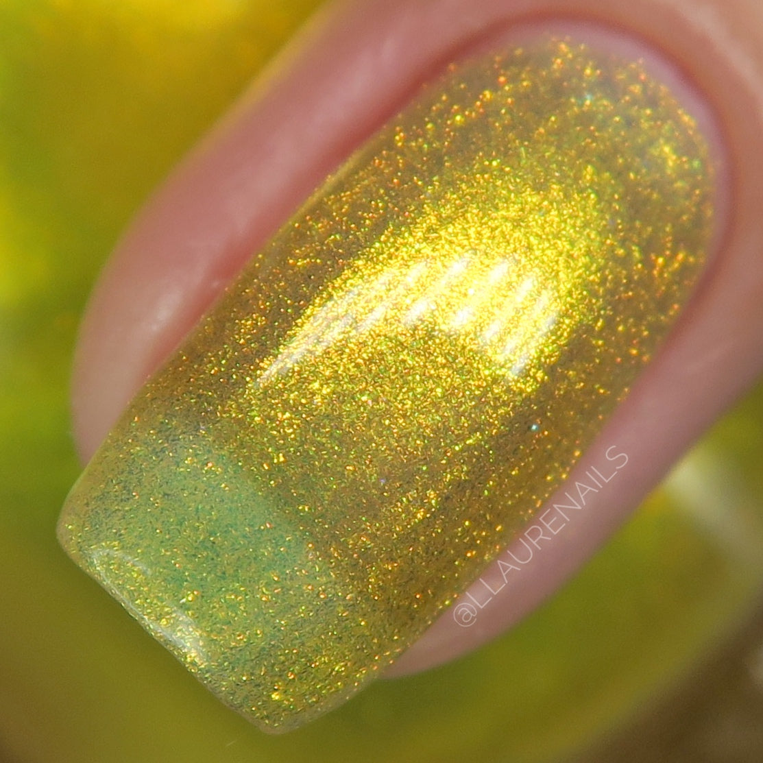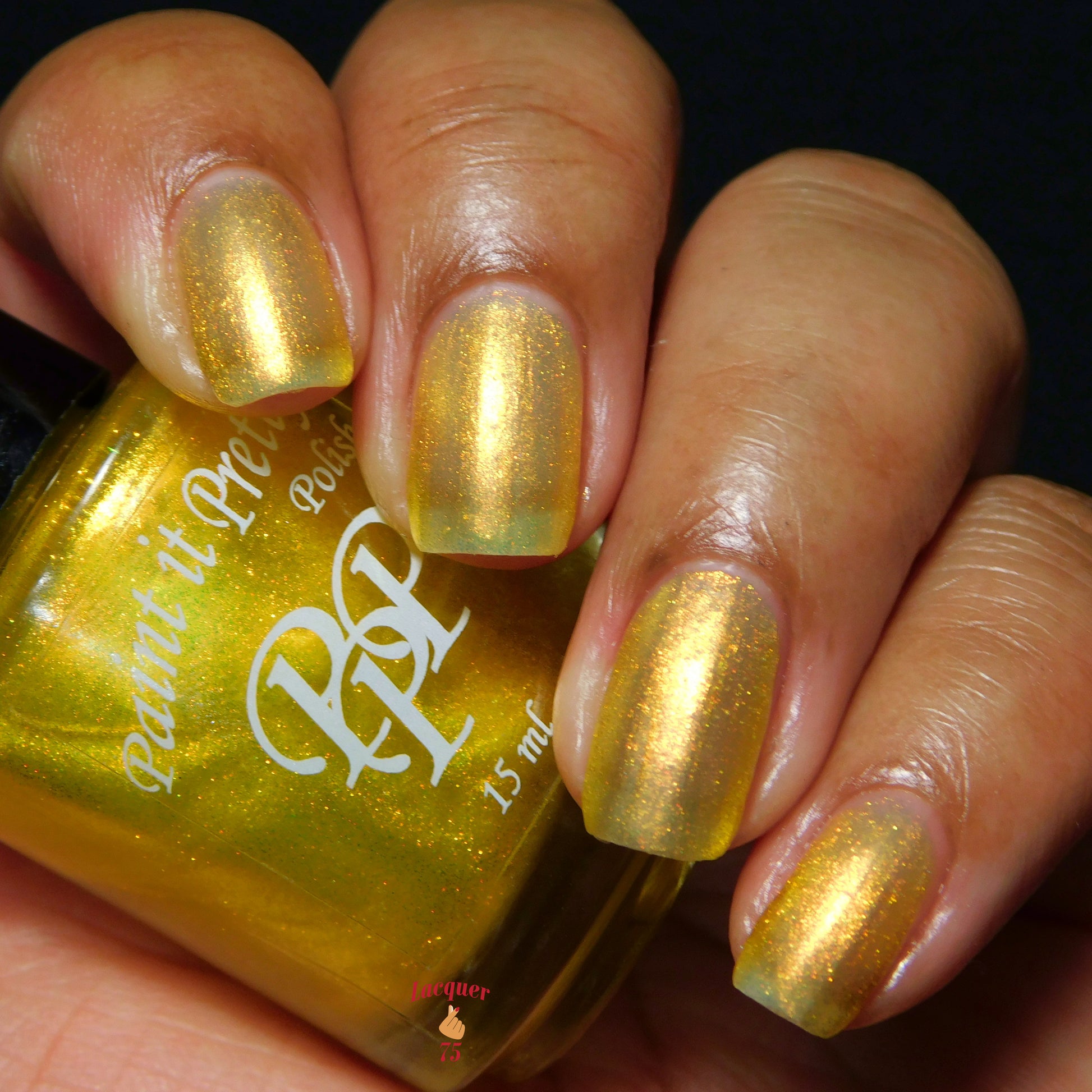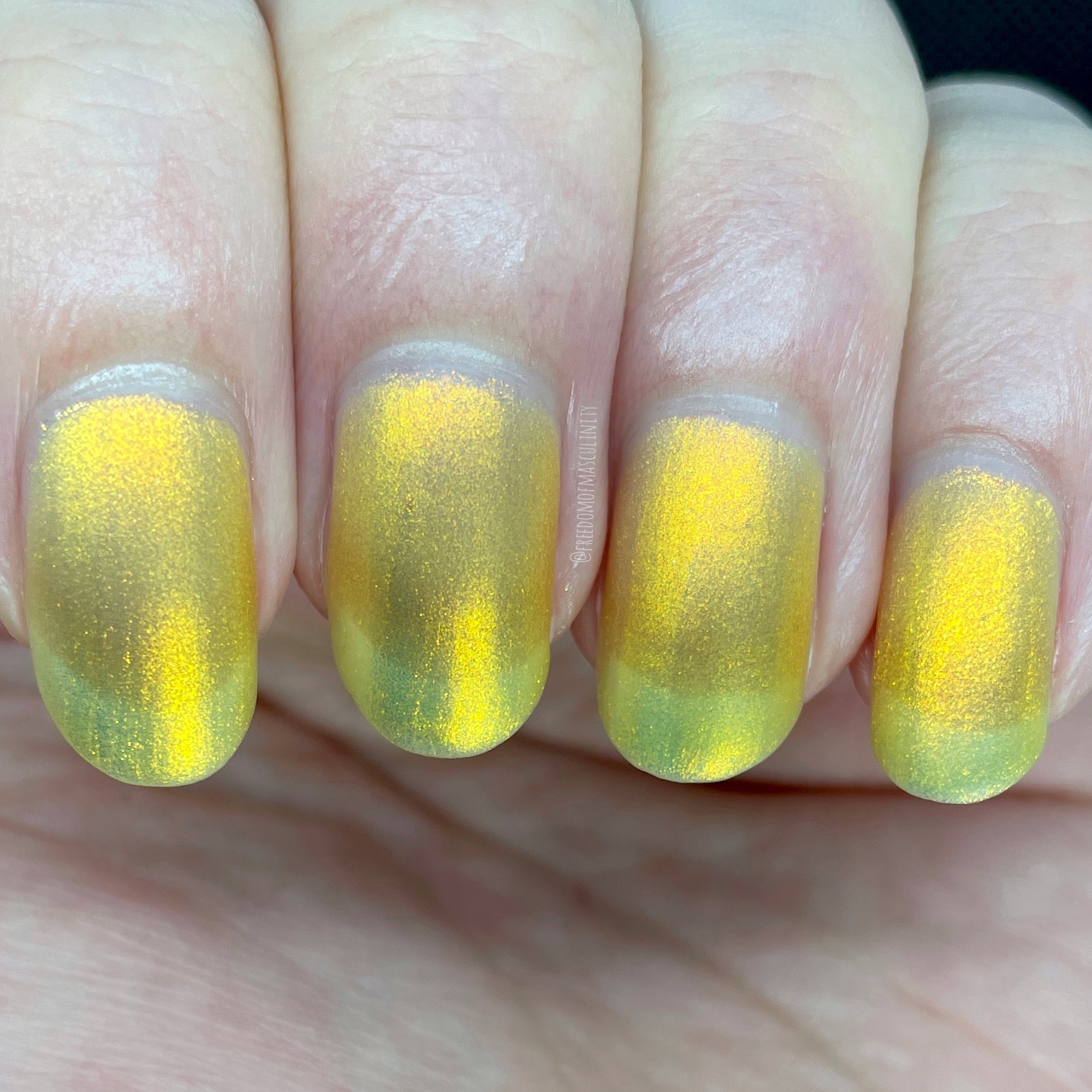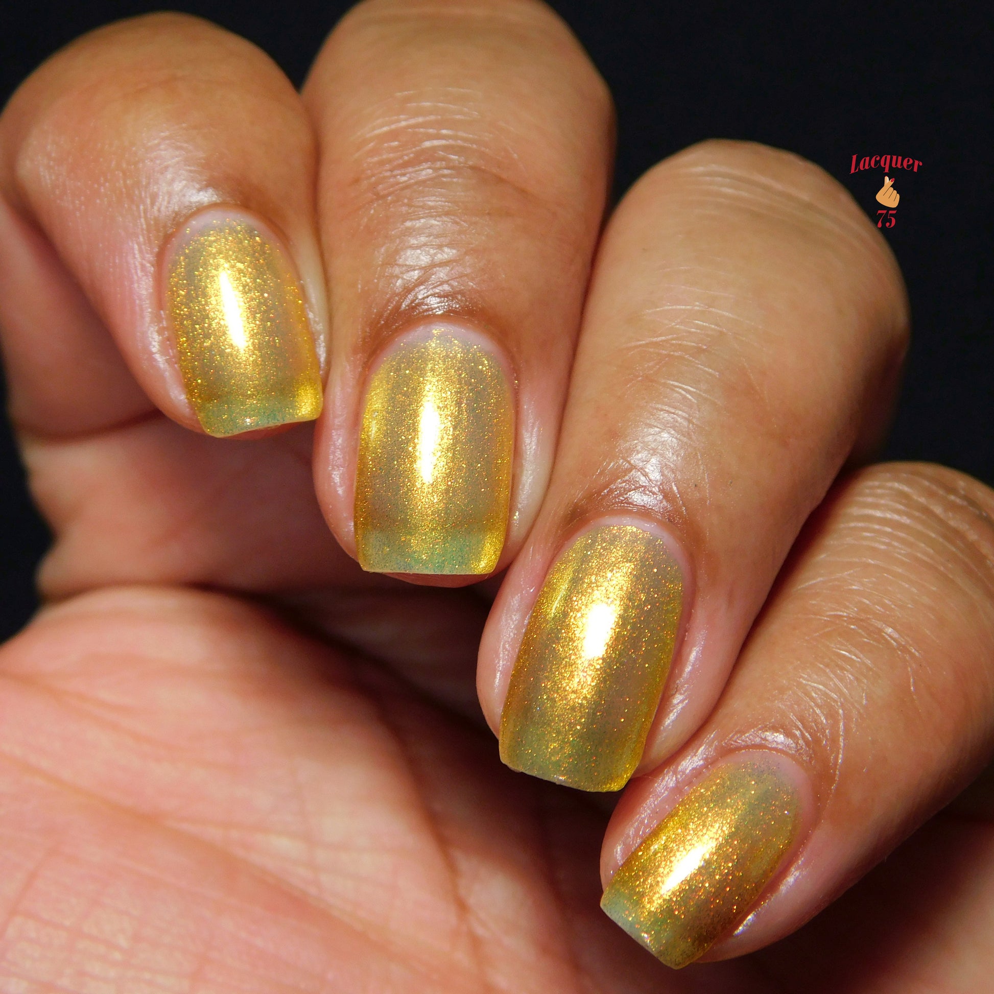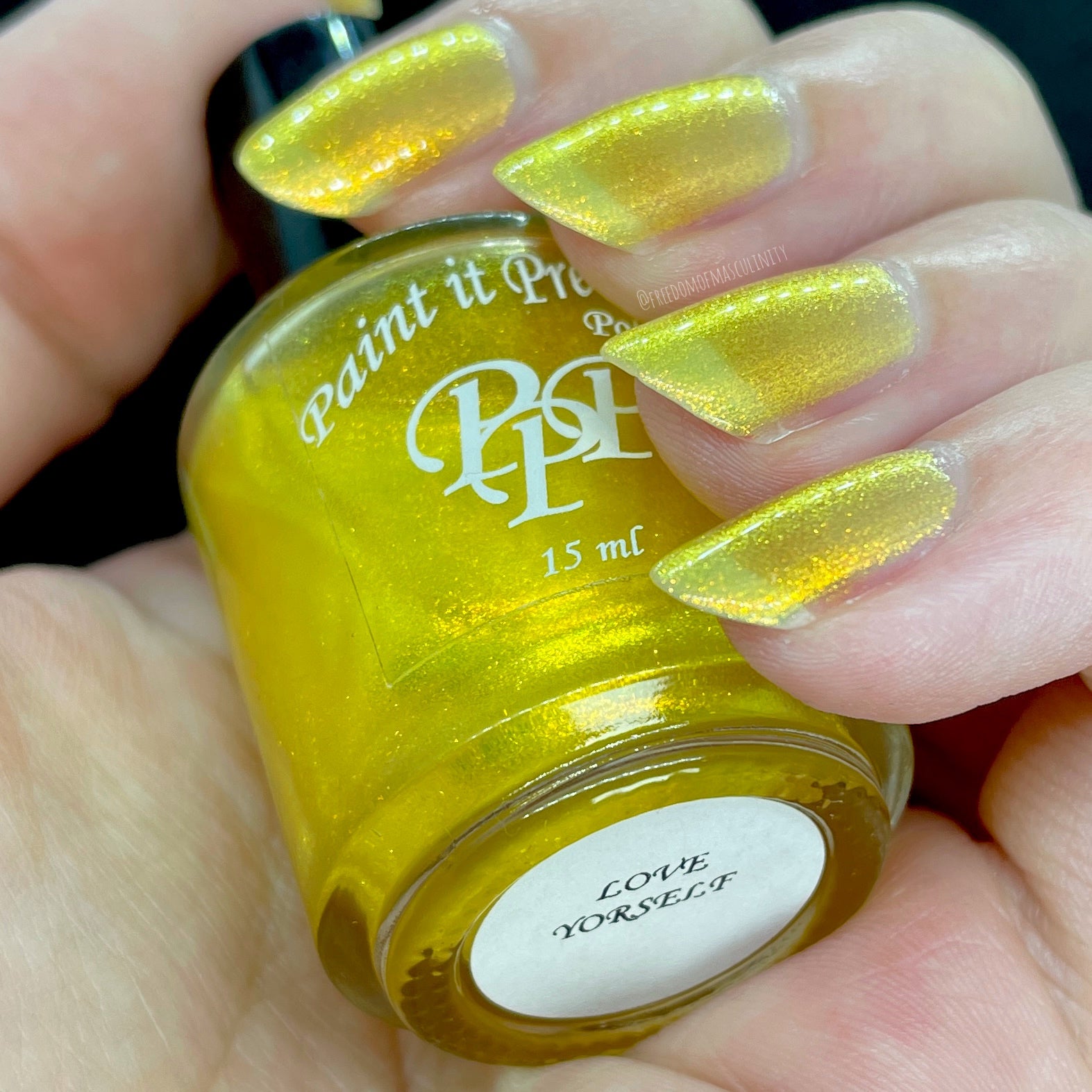 Love Yourself is a yellow base nail polish with a golden aurora shimmer
