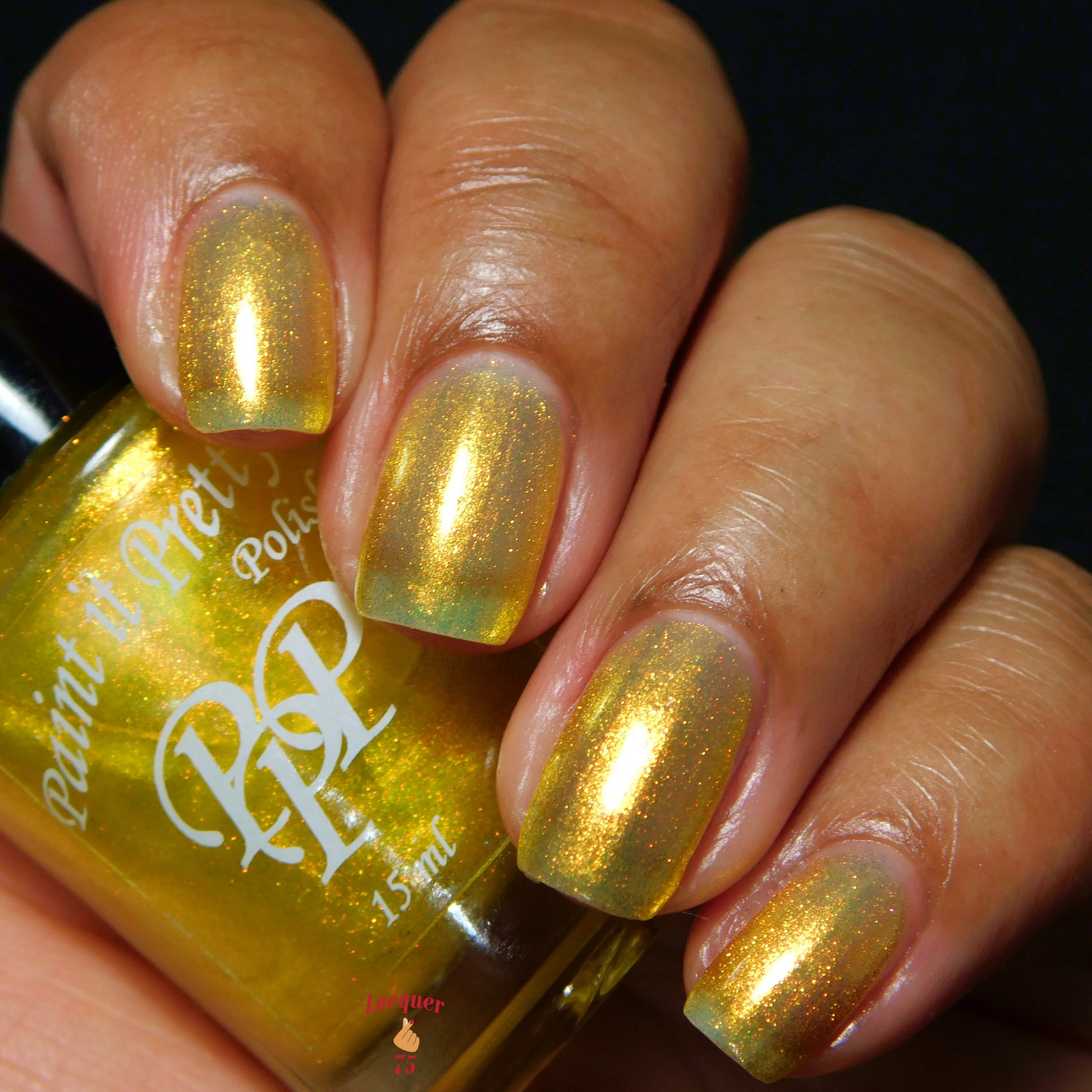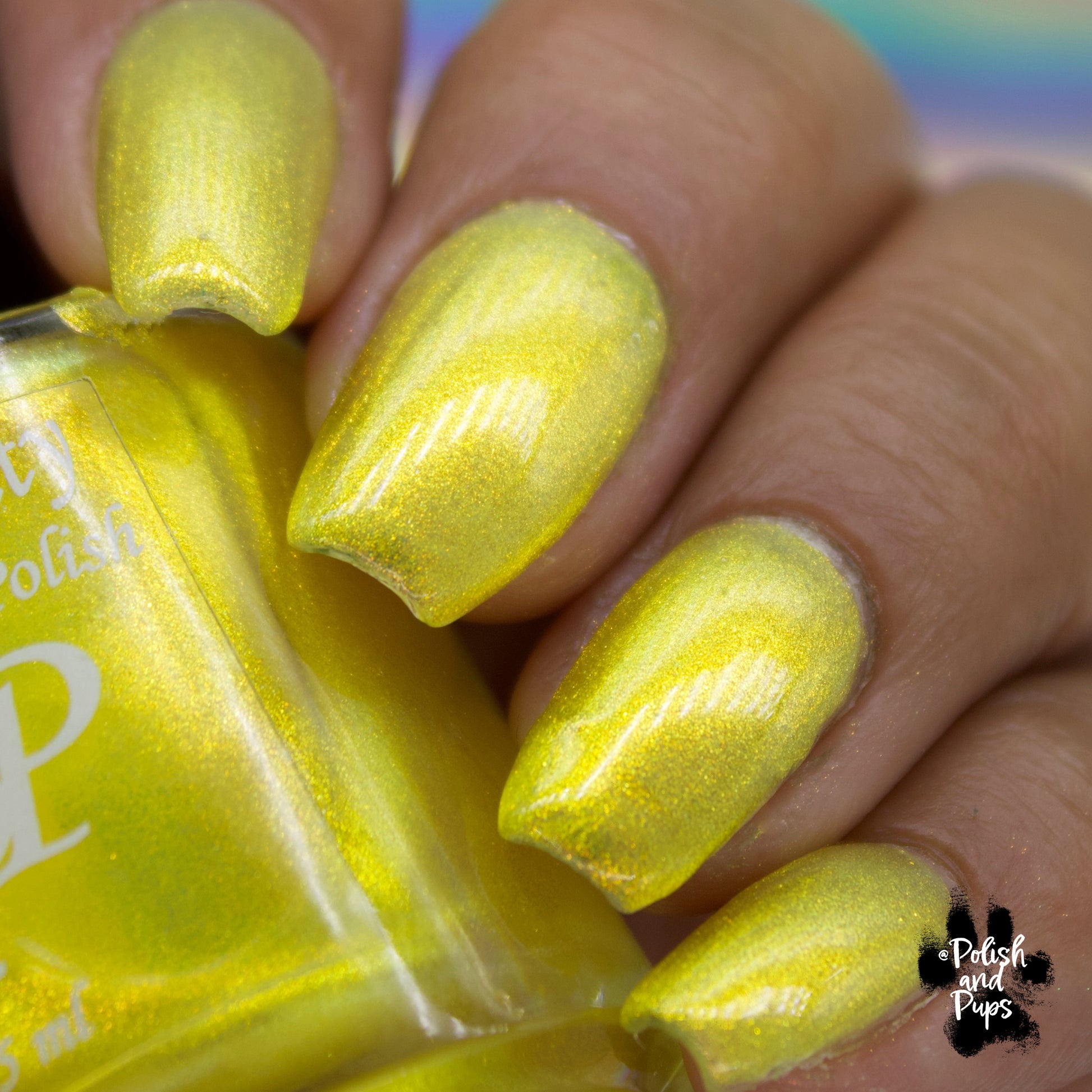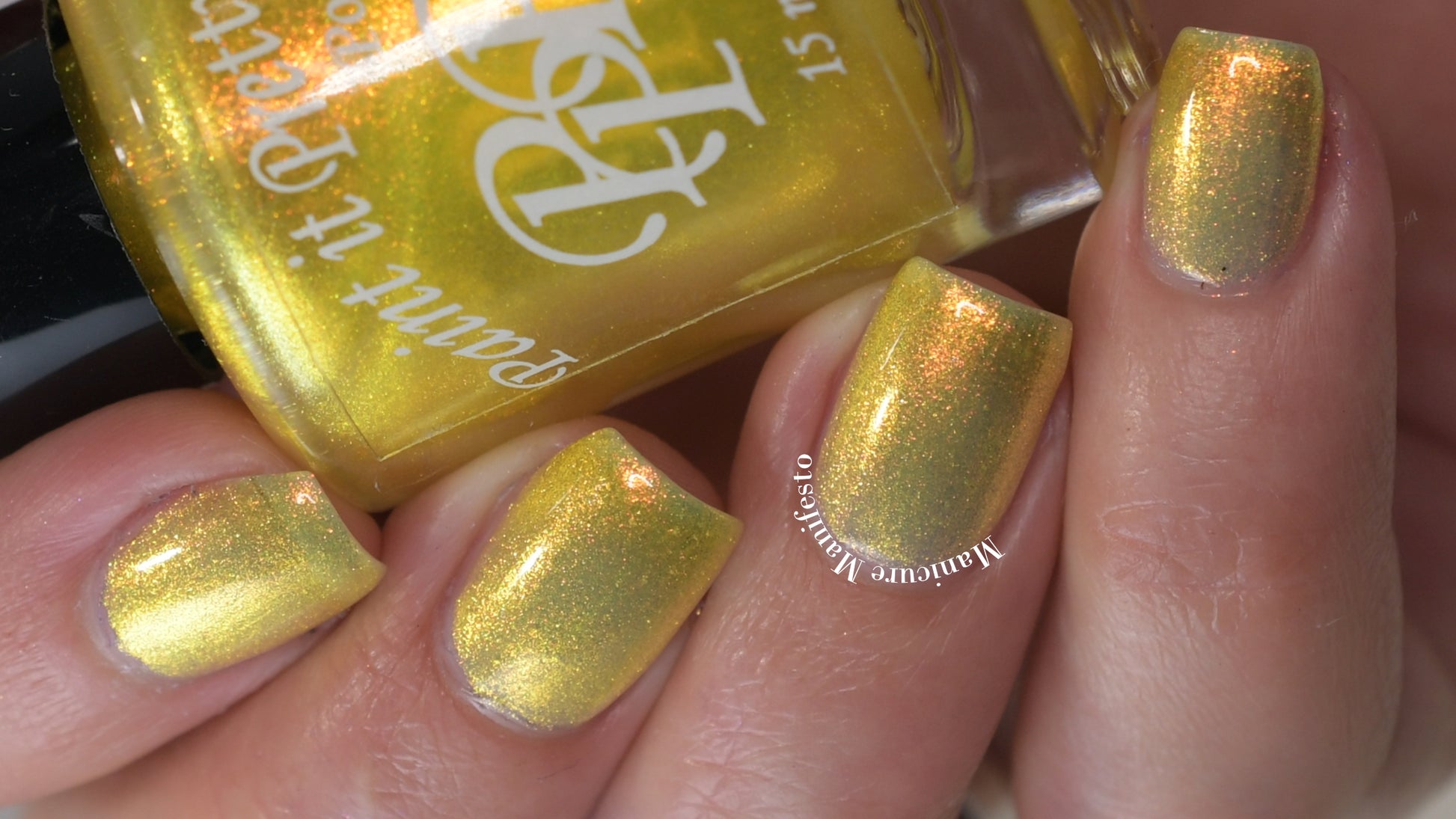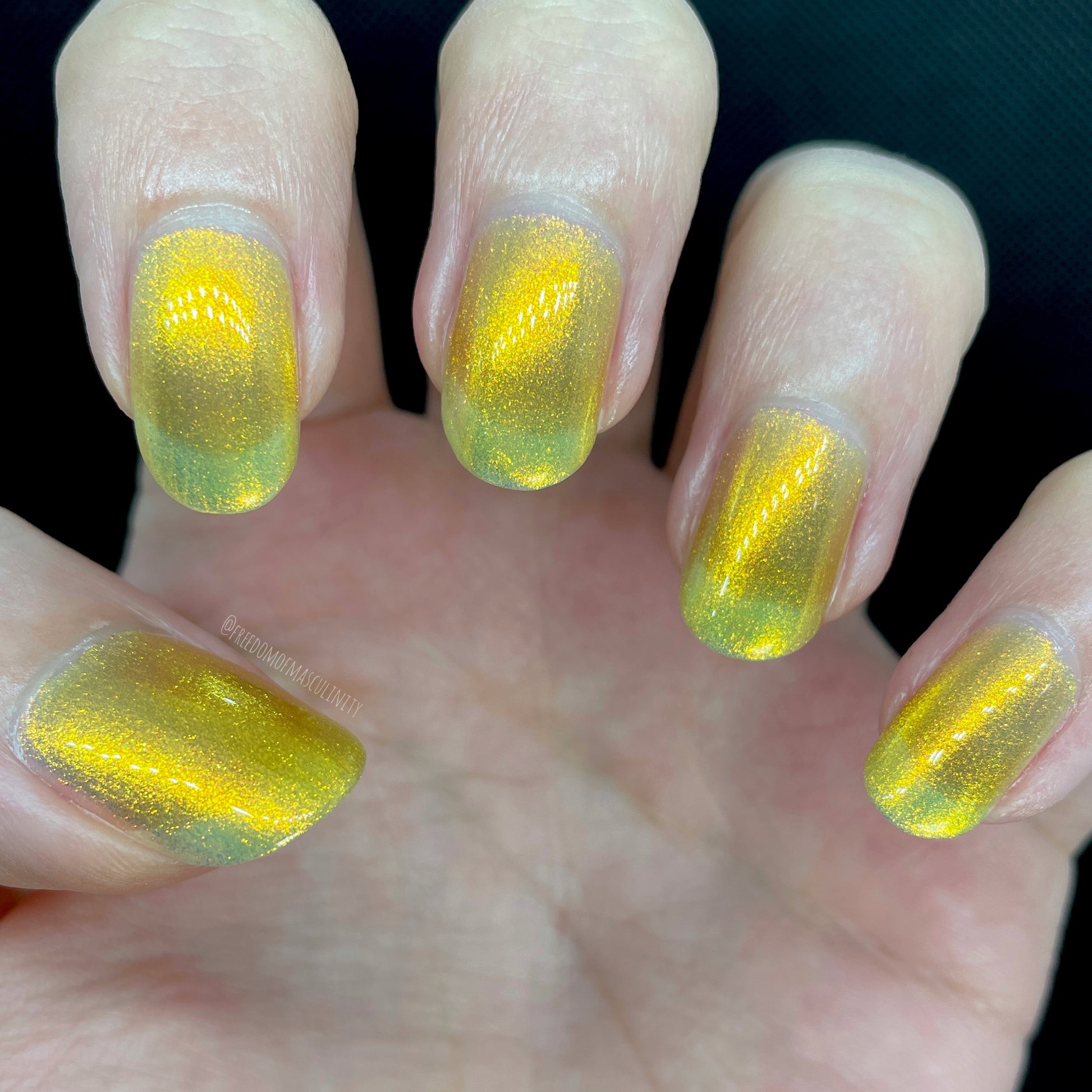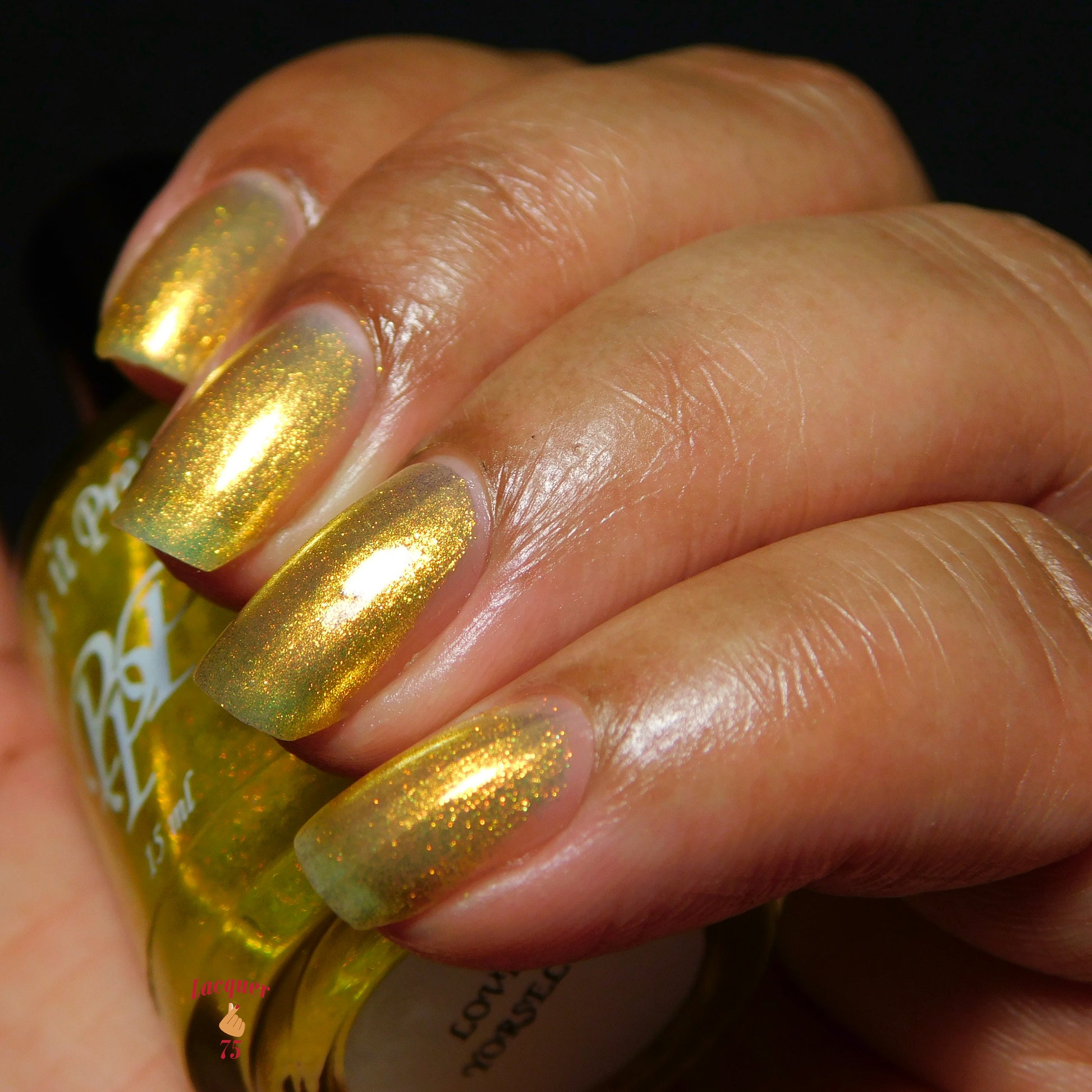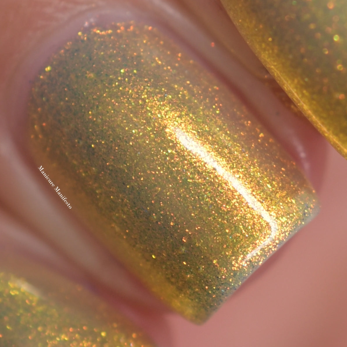 Love Yourself is a yellow base nail polish with a golden aurora shimmer