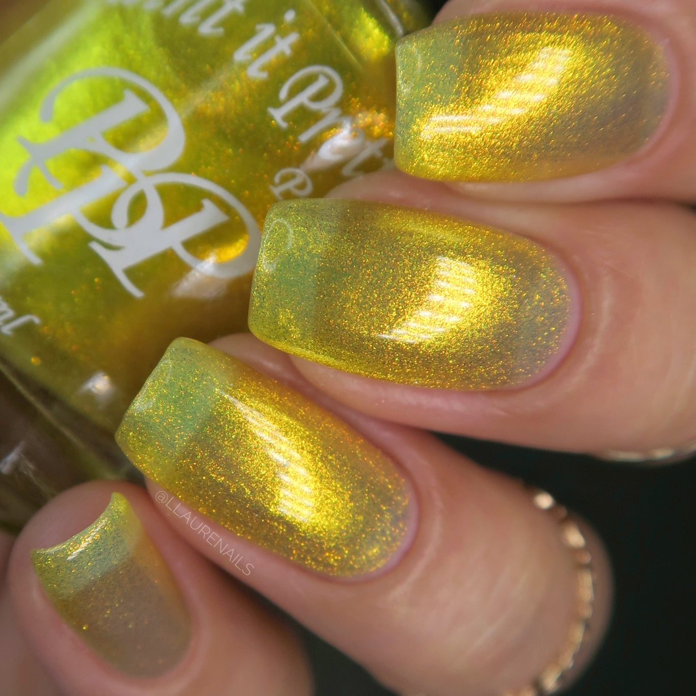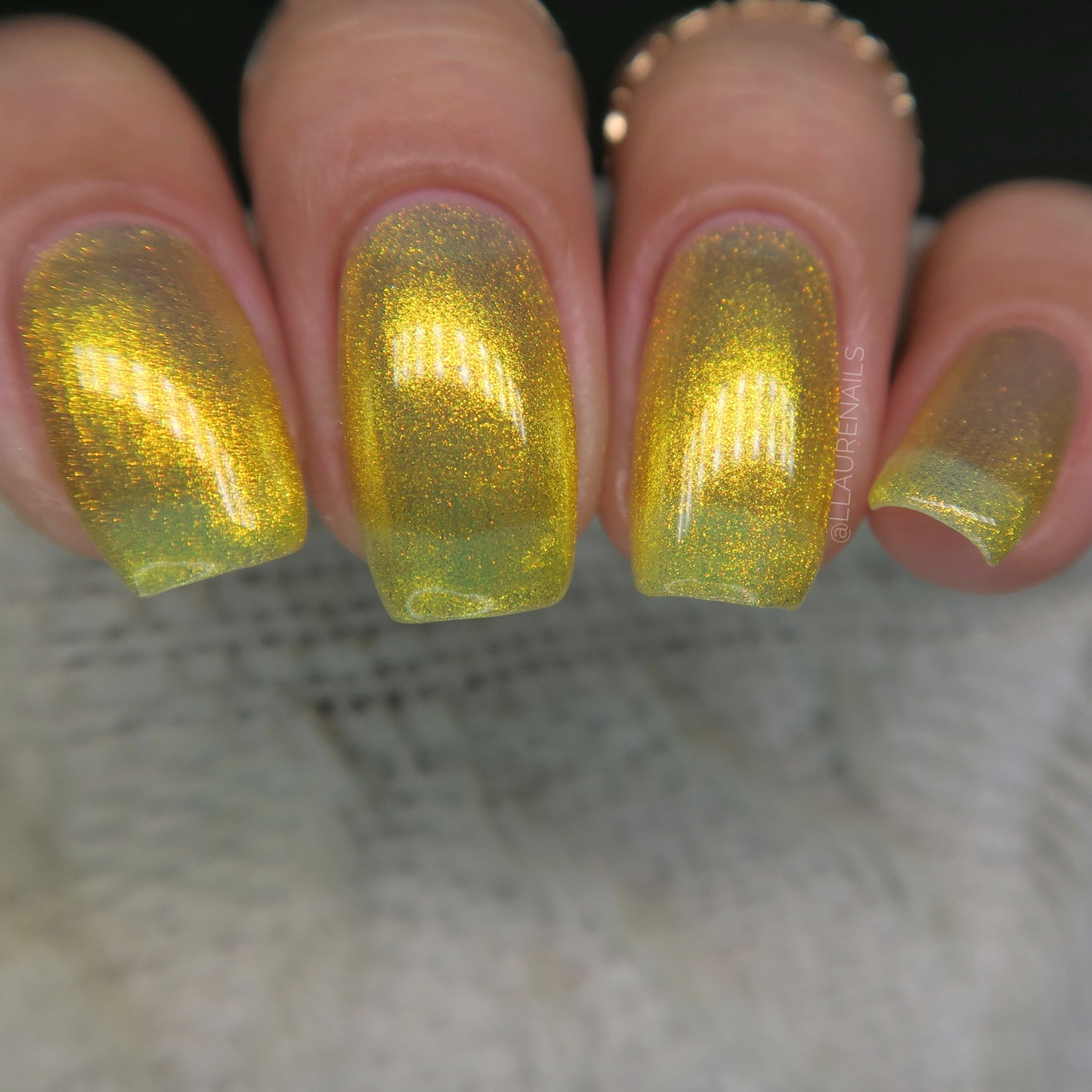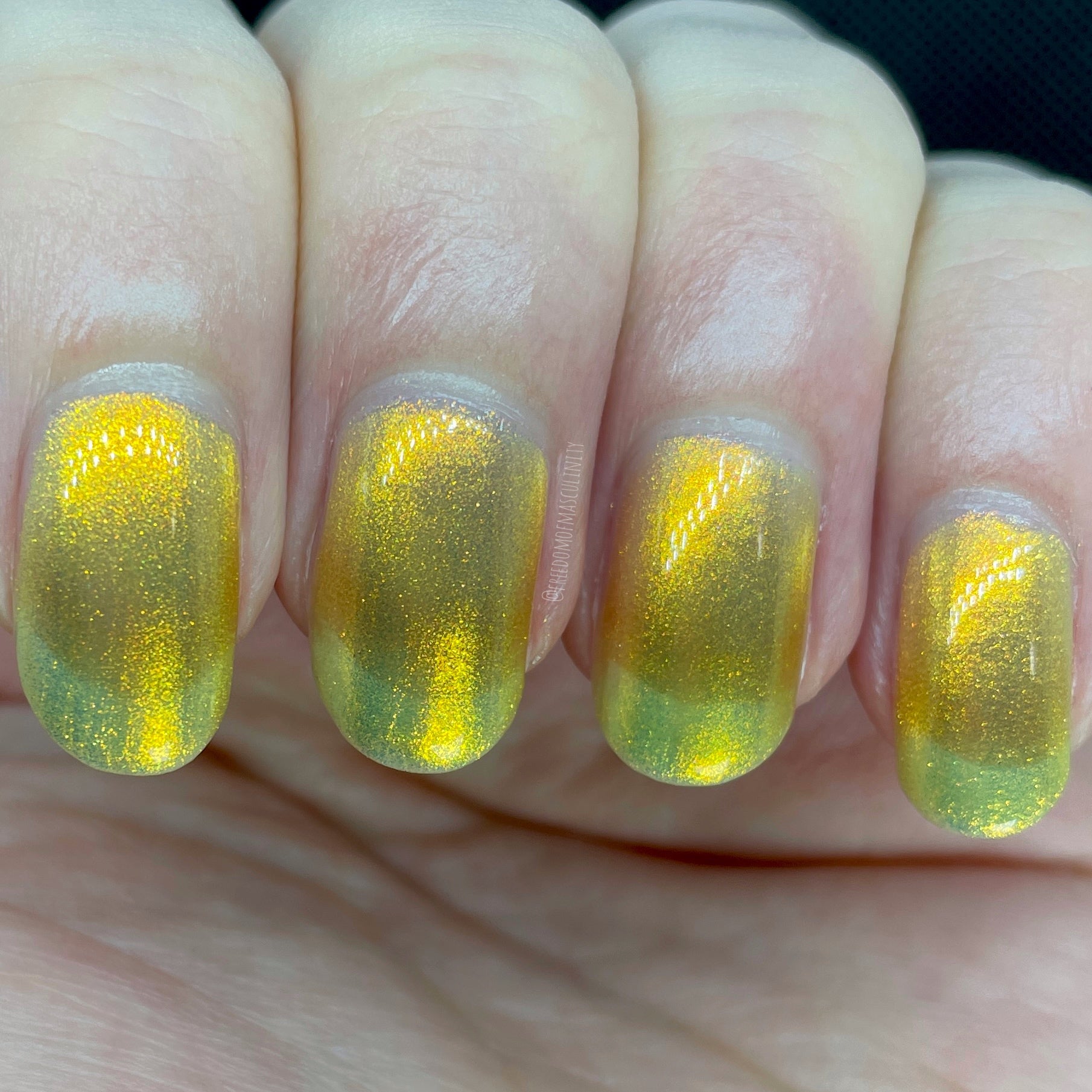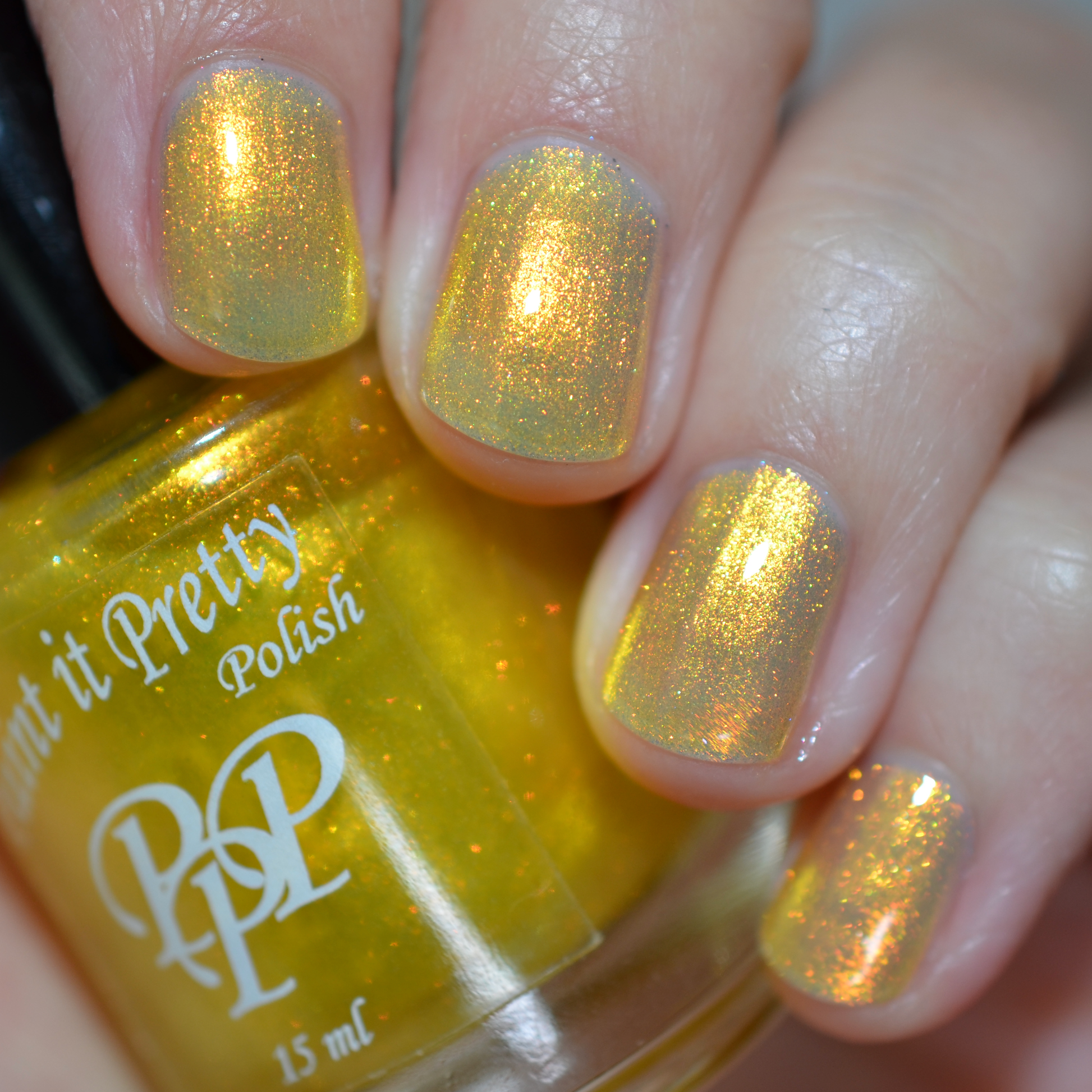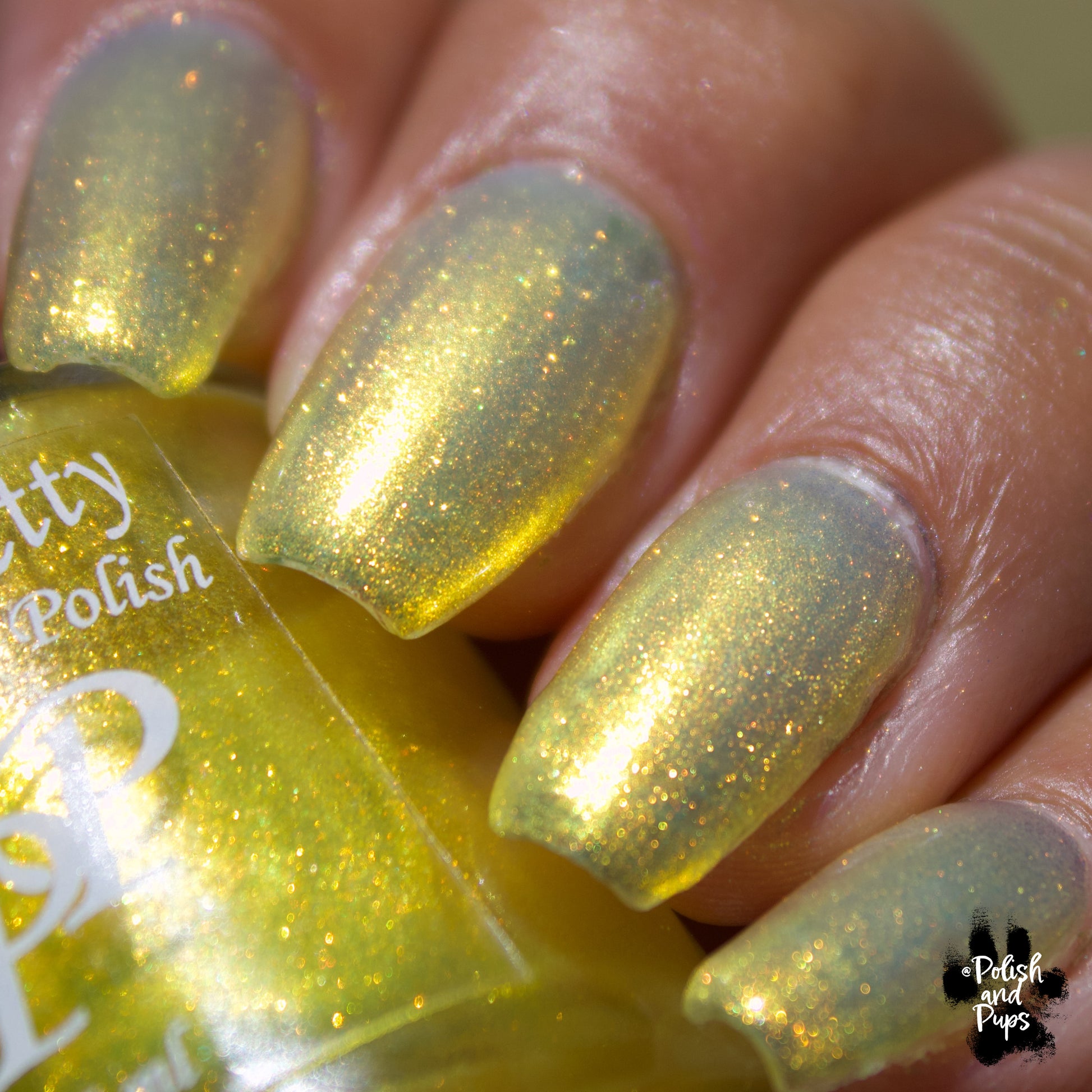 Love Yourself is a yellow base nail polish with a golden aurora shimmer