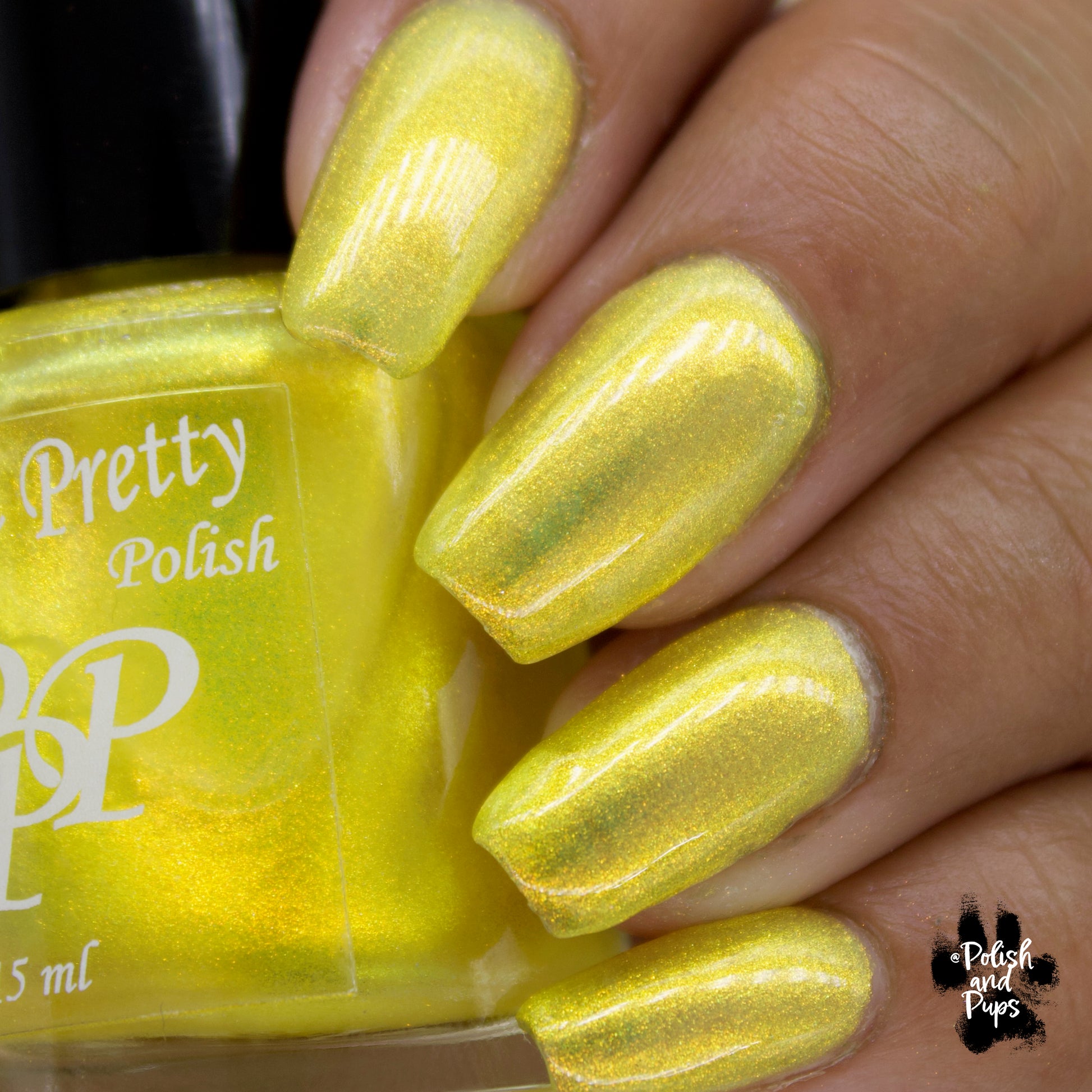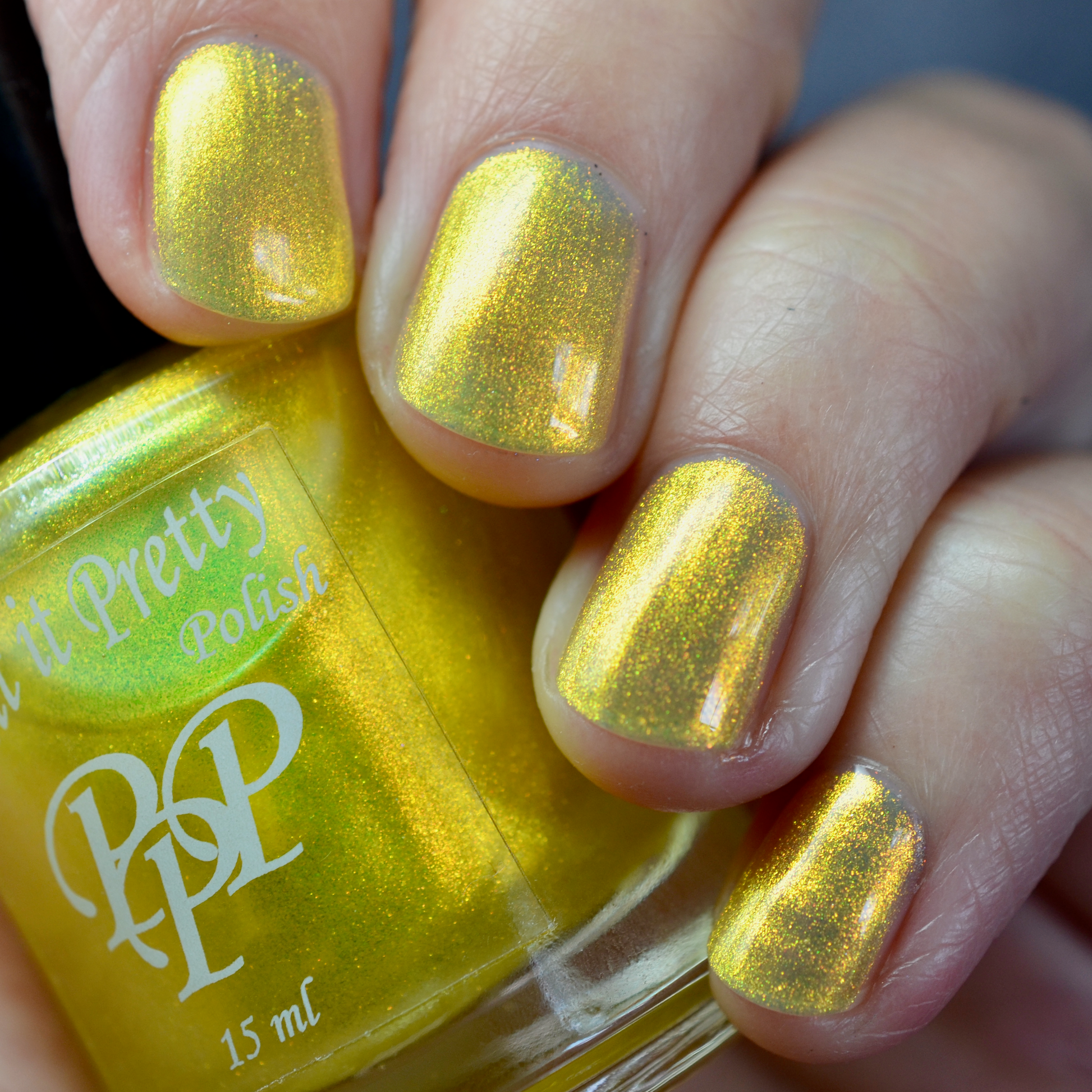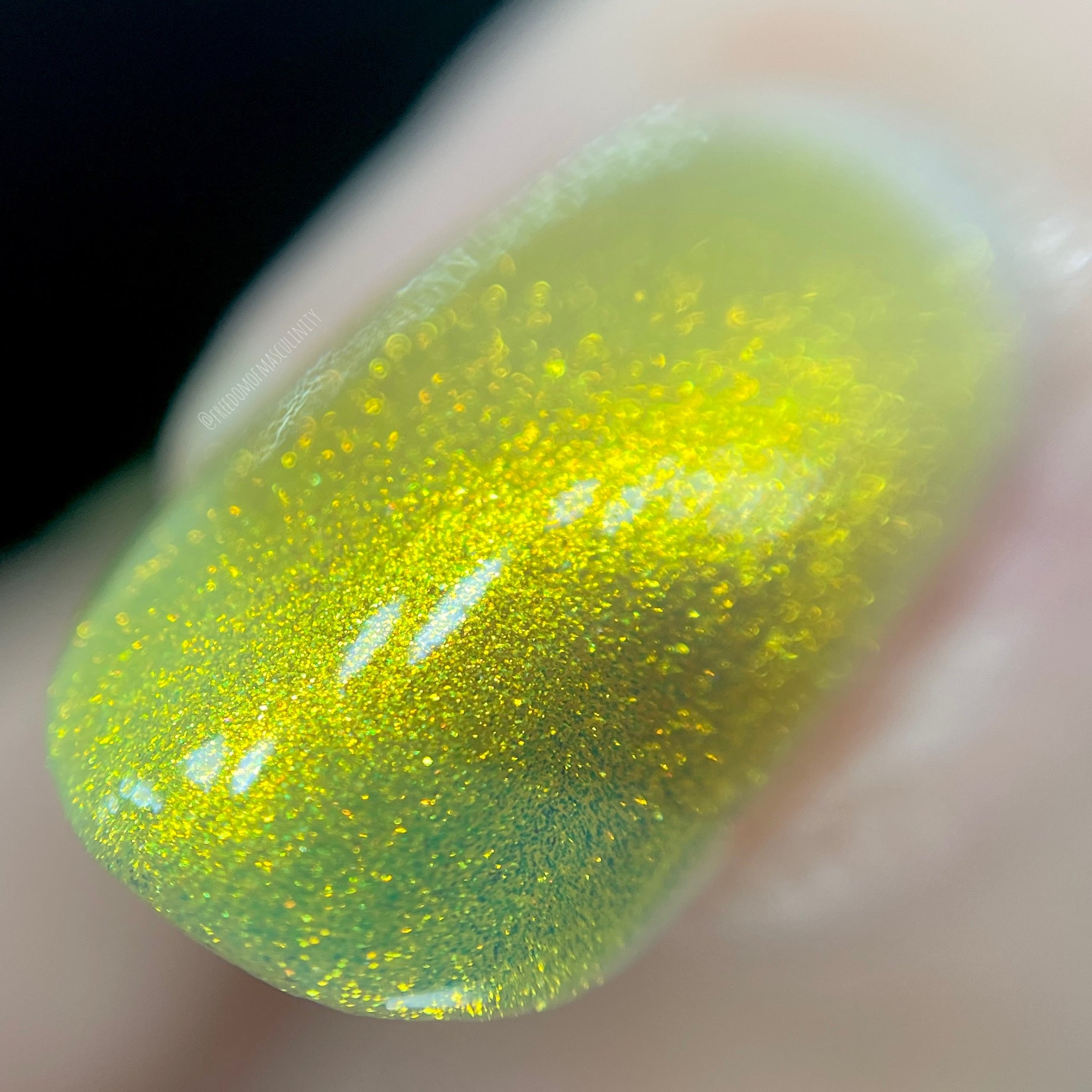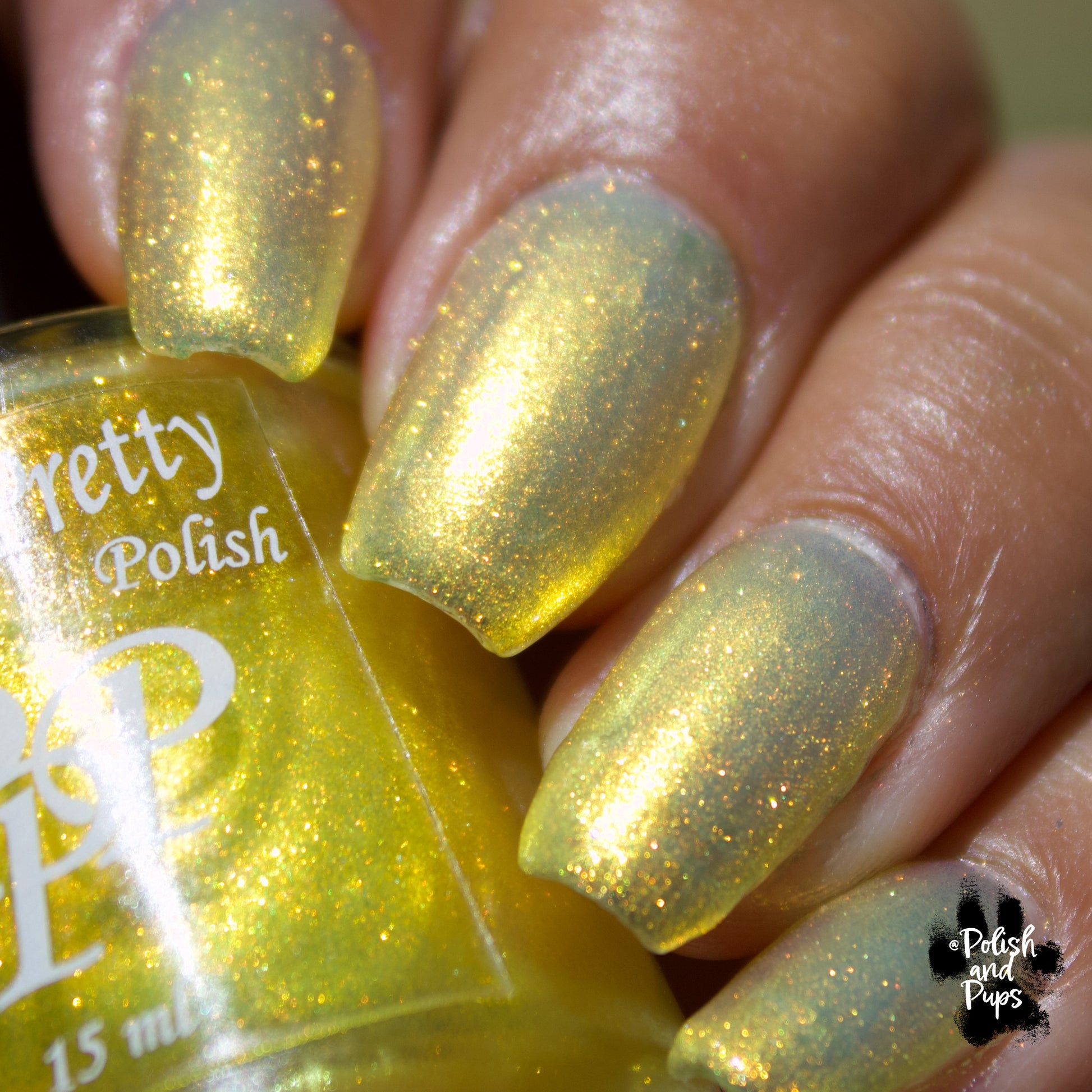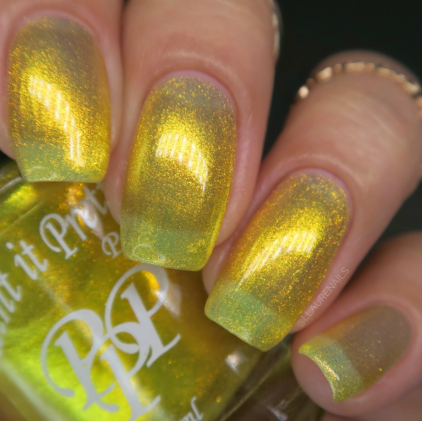 Love Yourself is a yellow base nail polish with a golden aurora shimmer