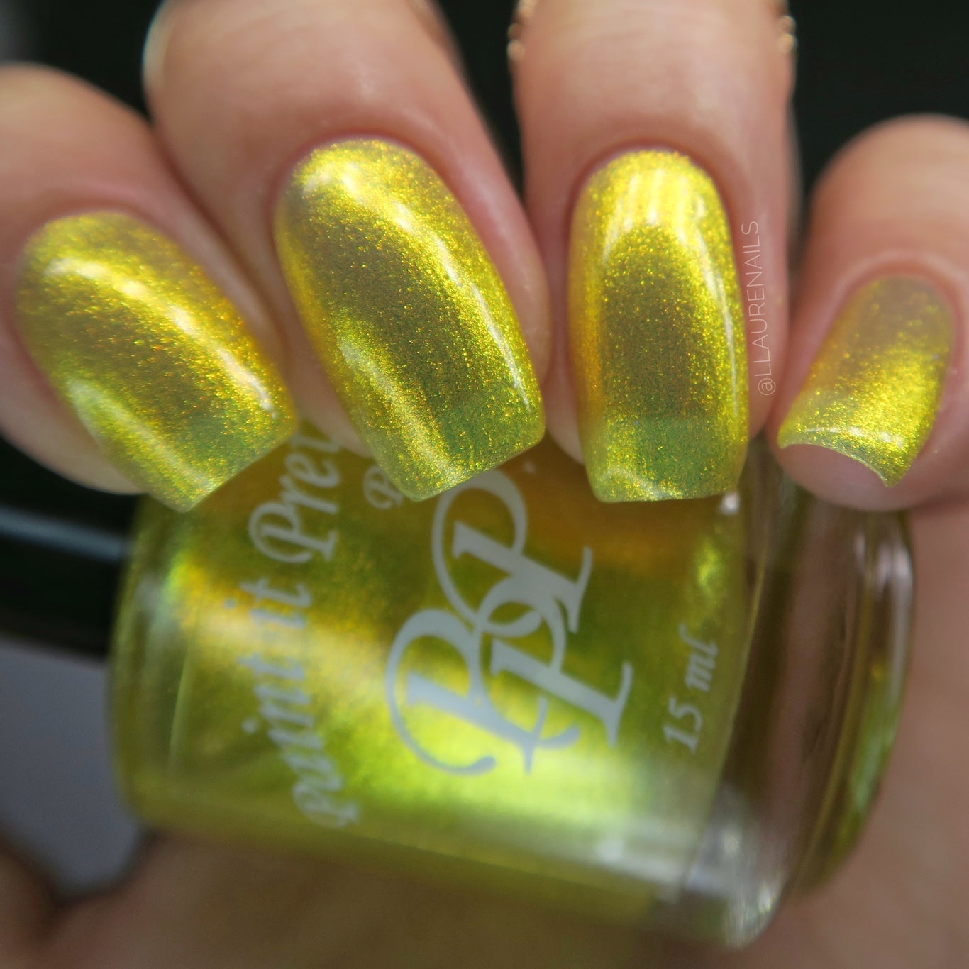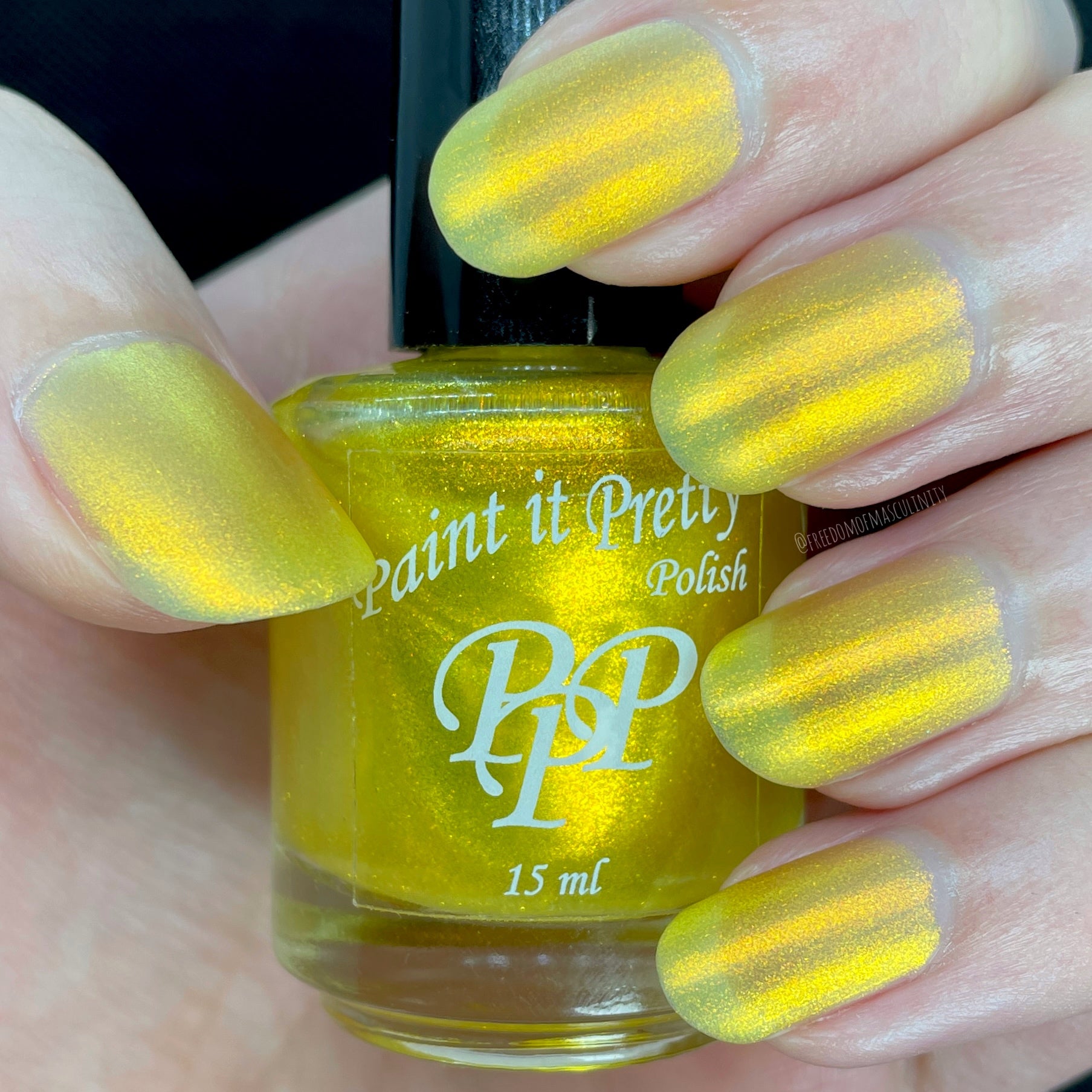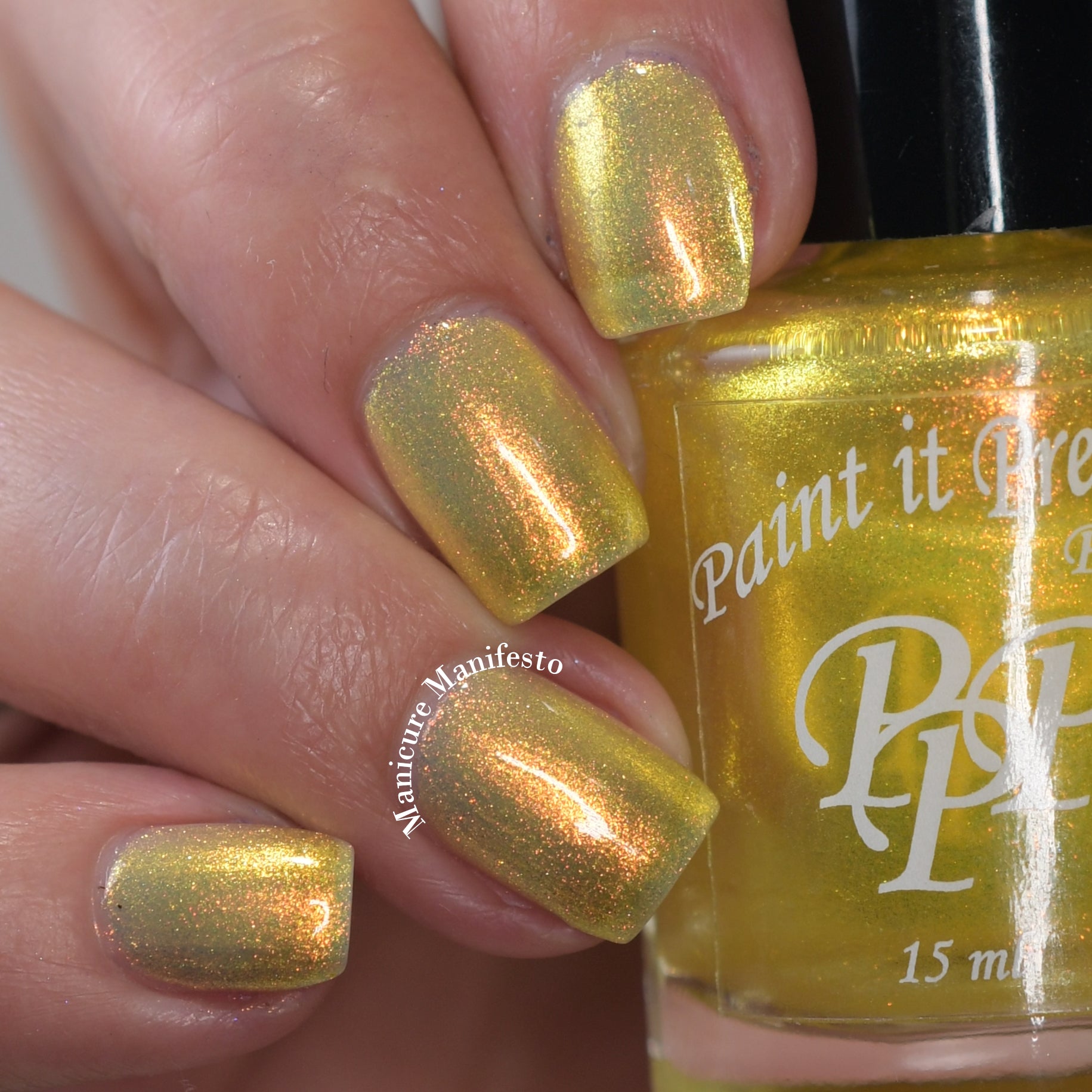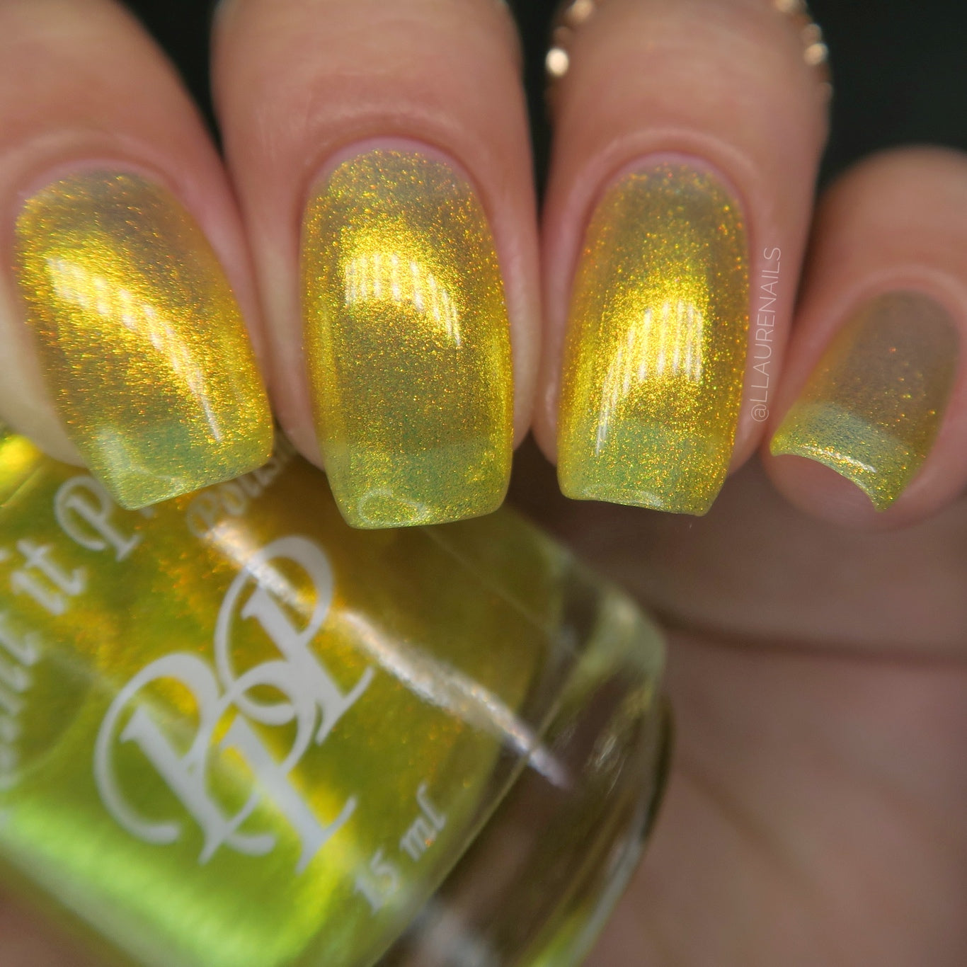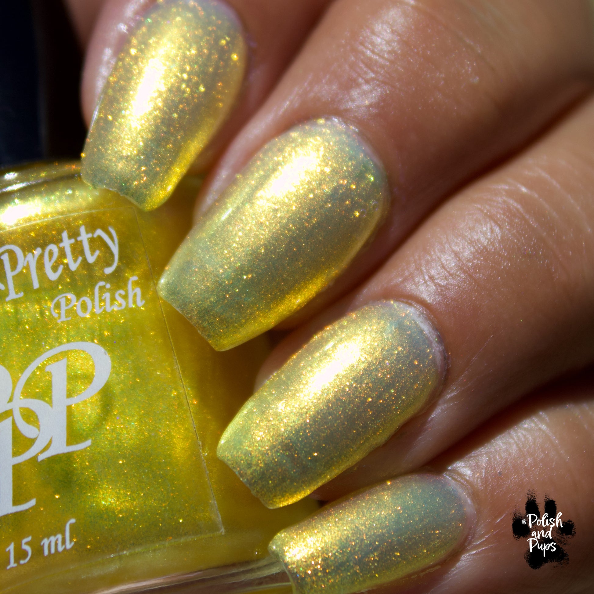 Love Yourself is a yellow base nail polish with a golden aurora shimmer