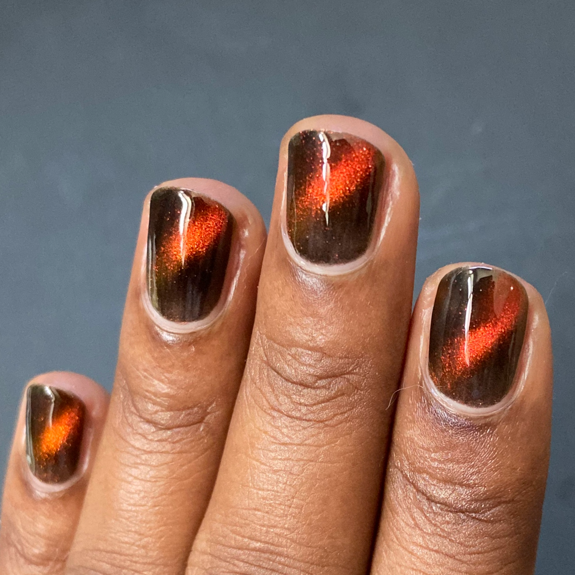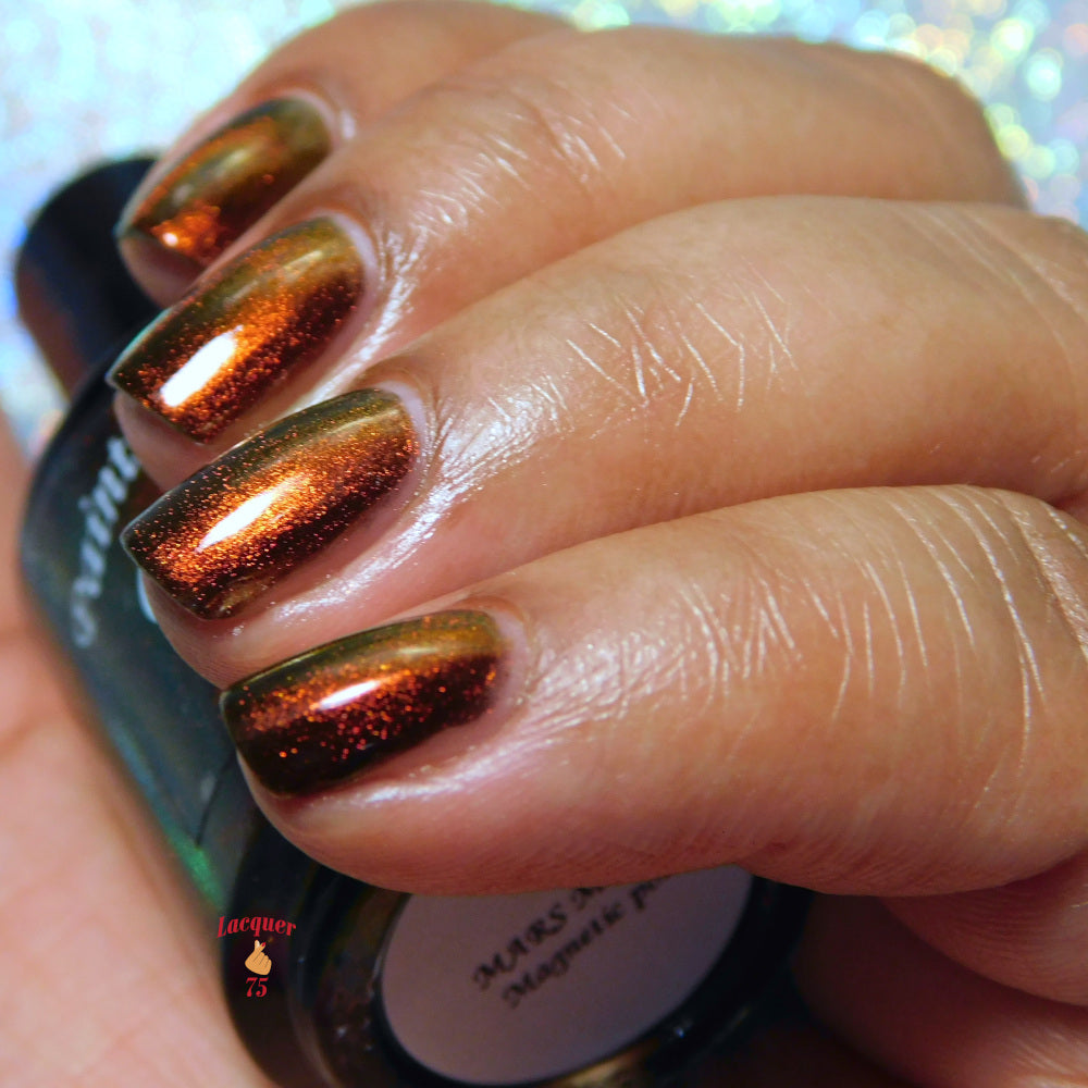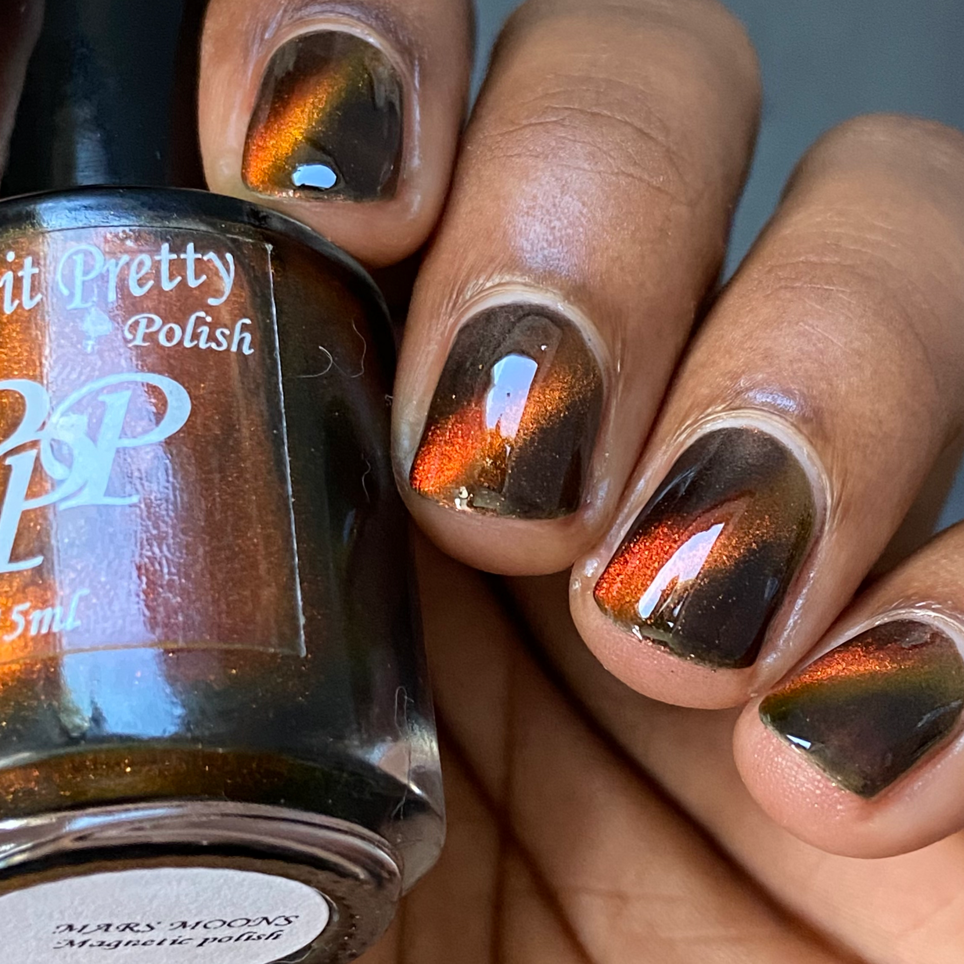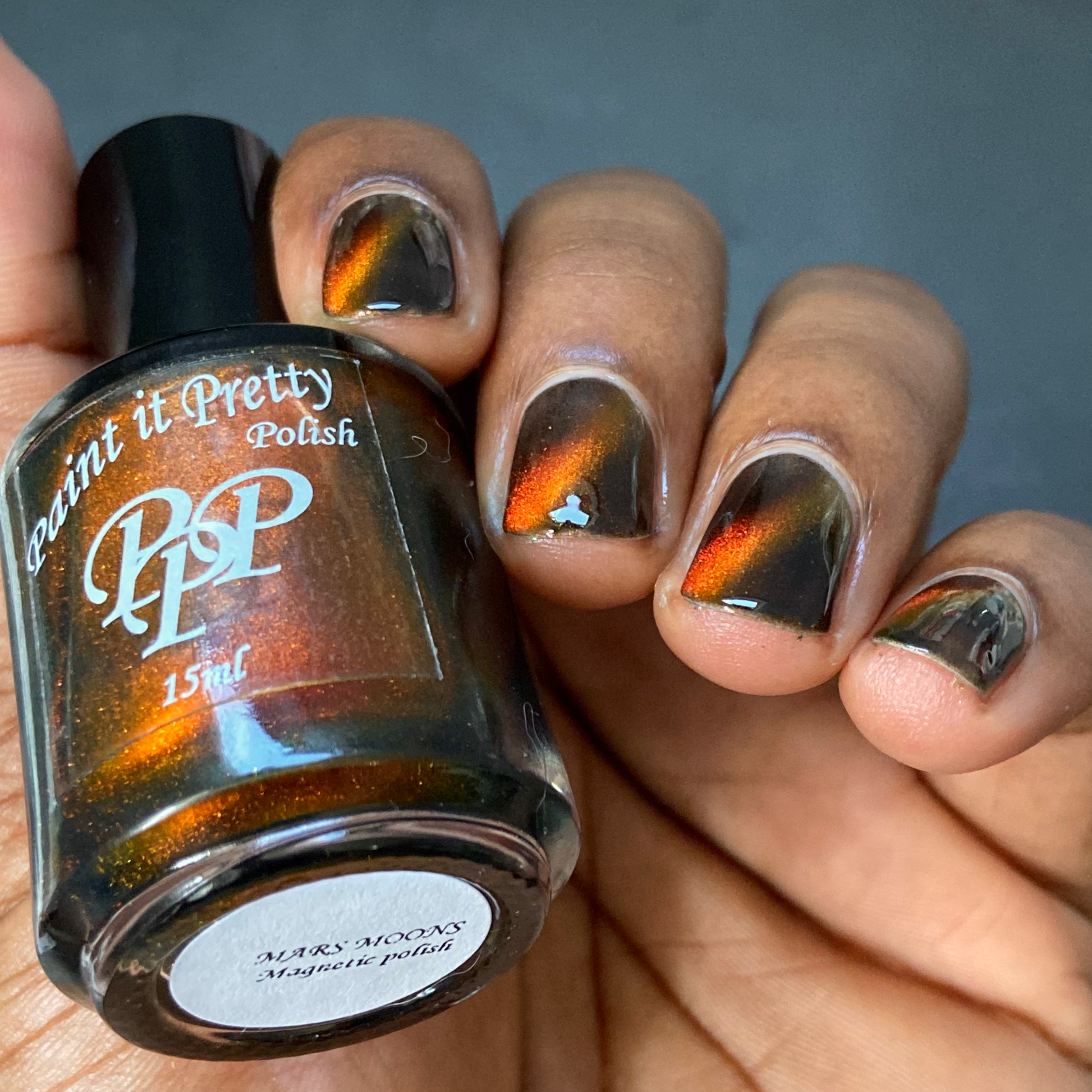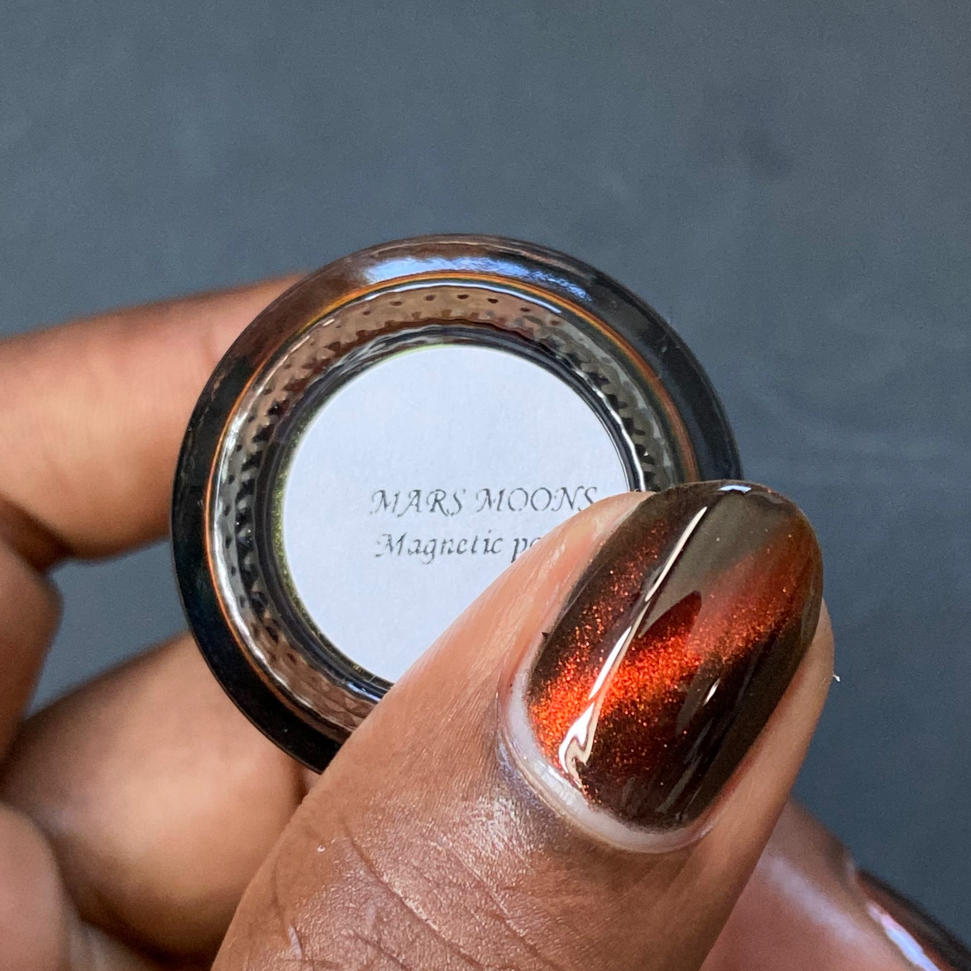 Mars Moons is an orange to red to copper magnetic polish with a black base.