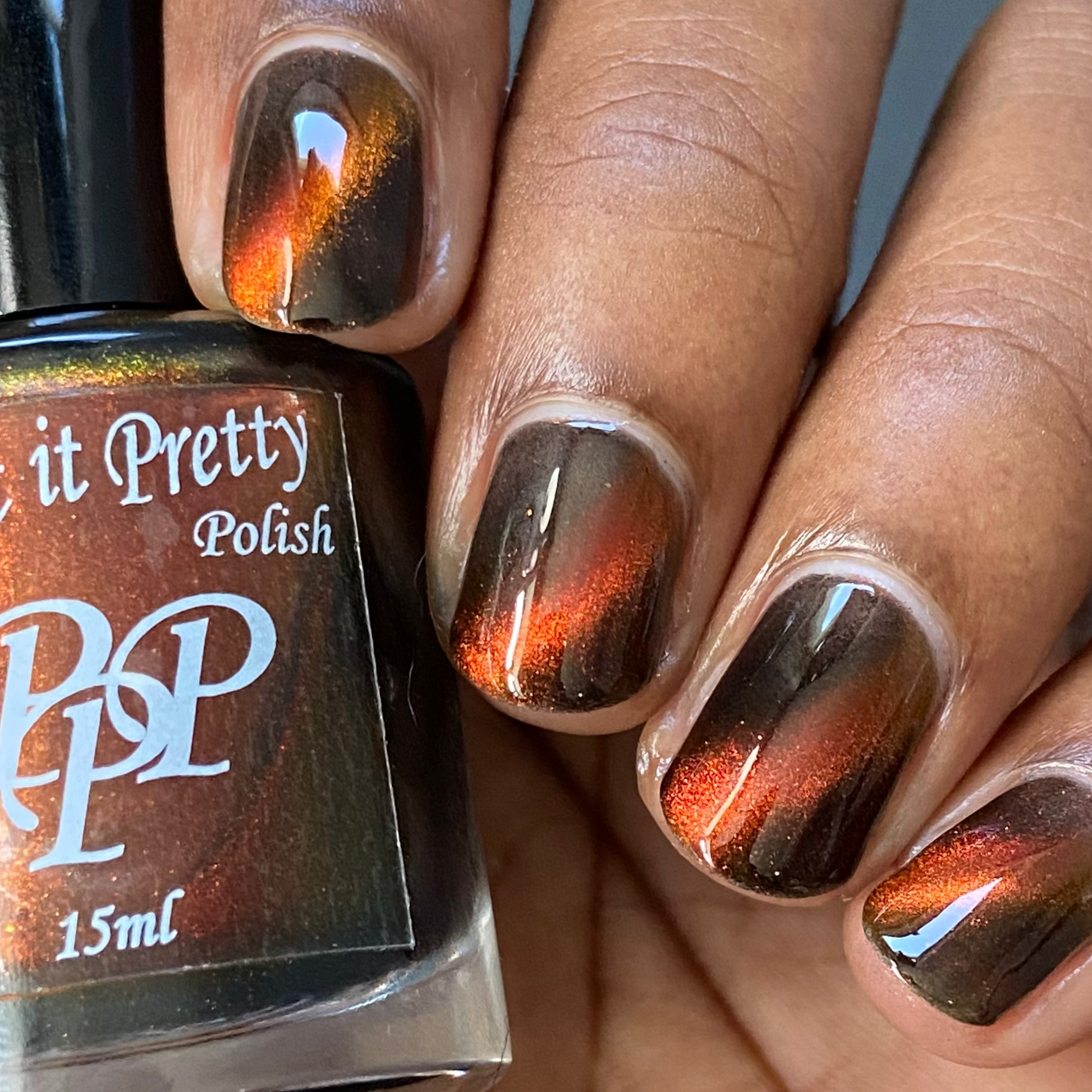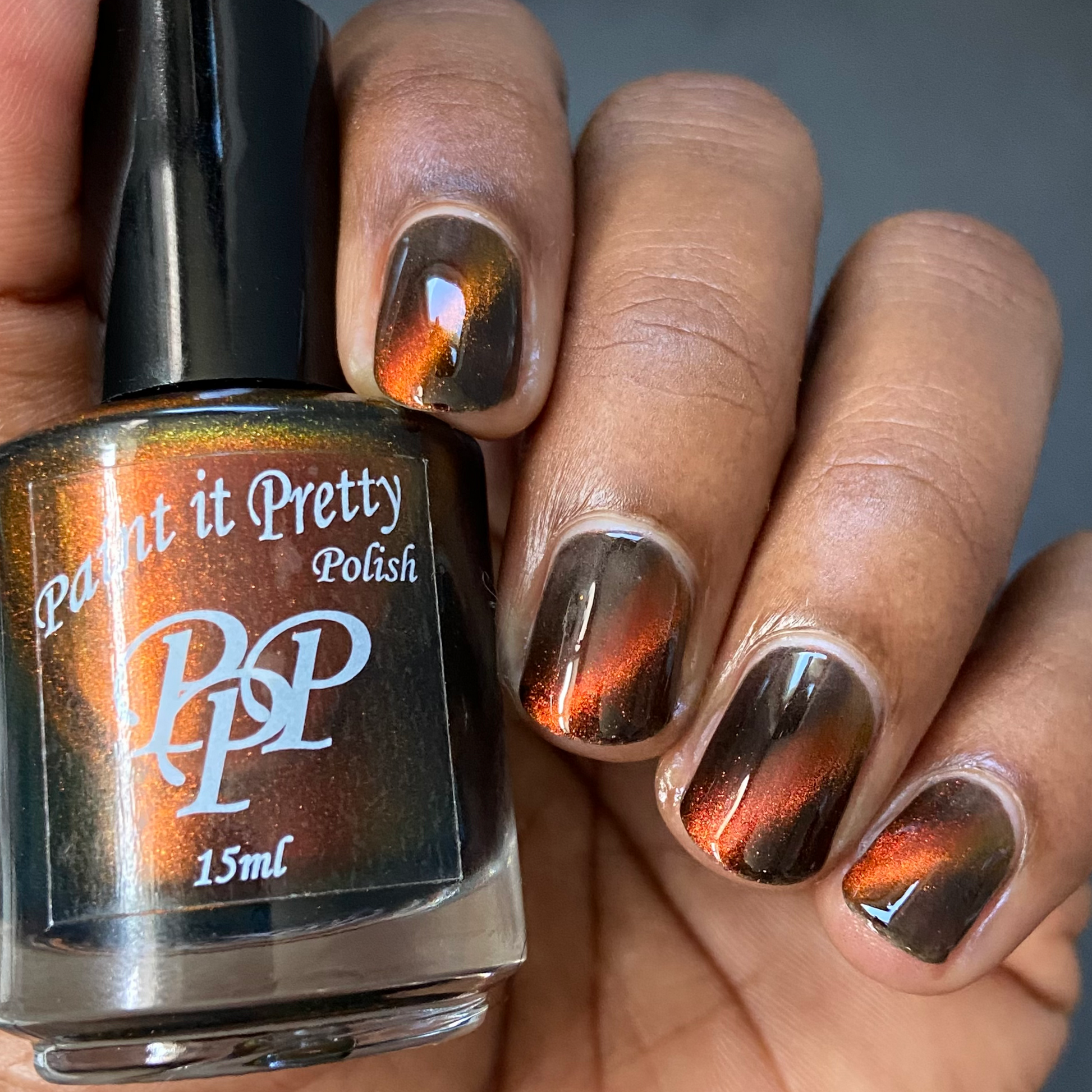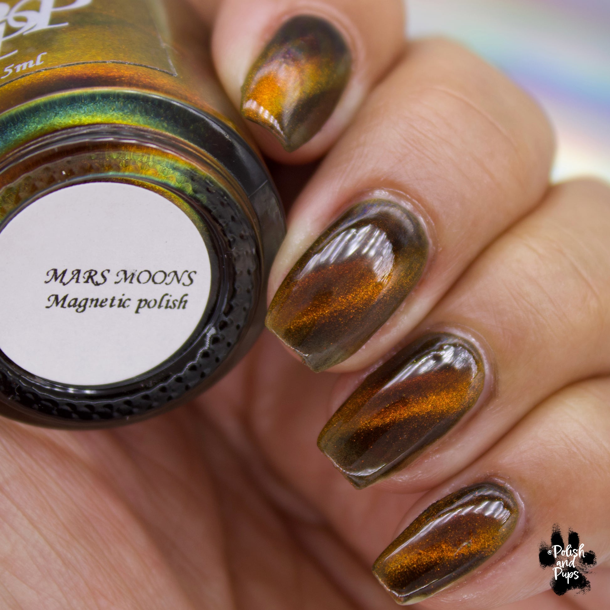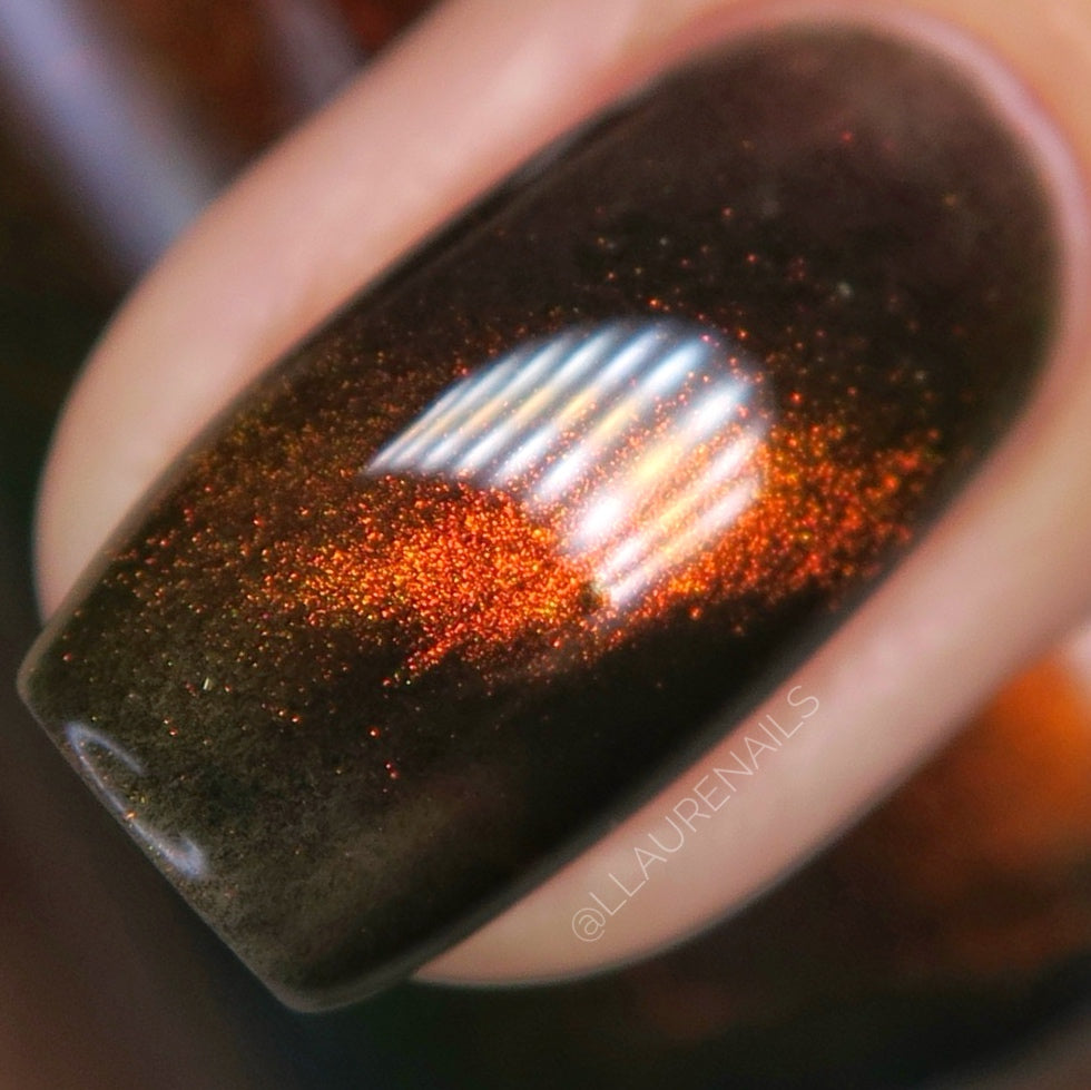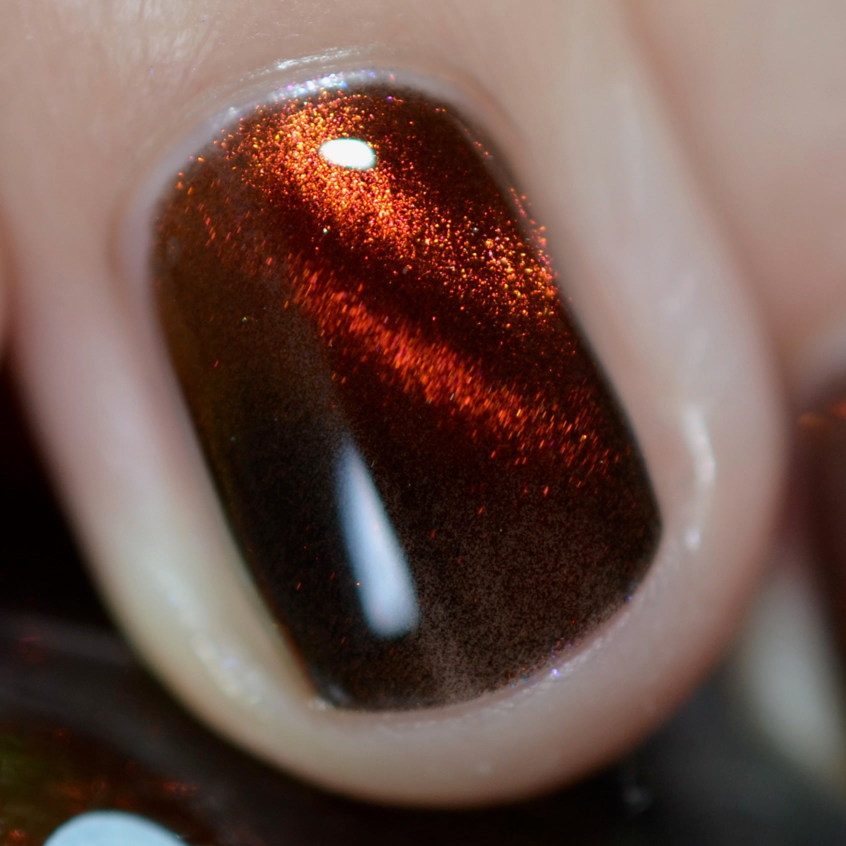Mars Moons is an orange to red to copper magnetic polish with a black base.