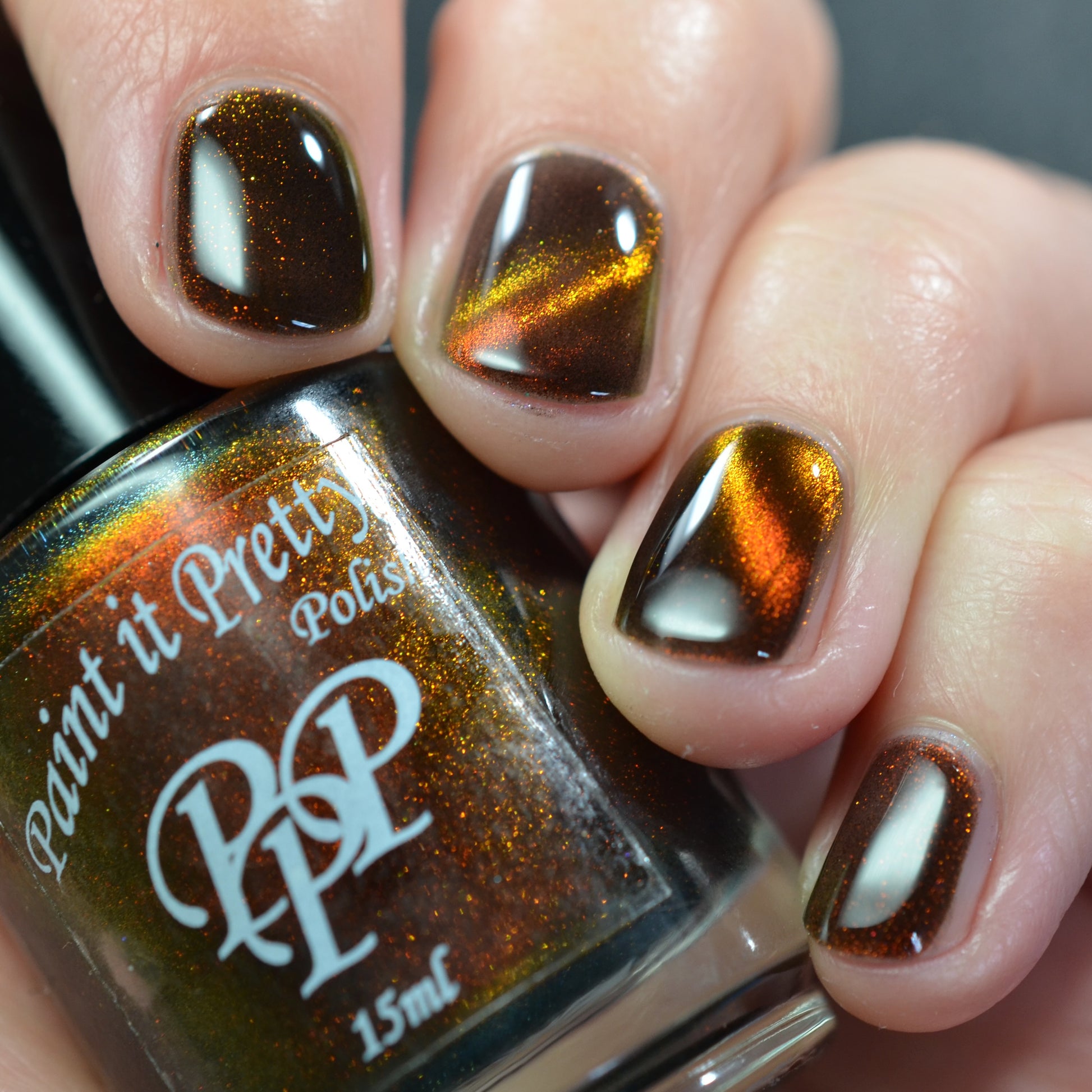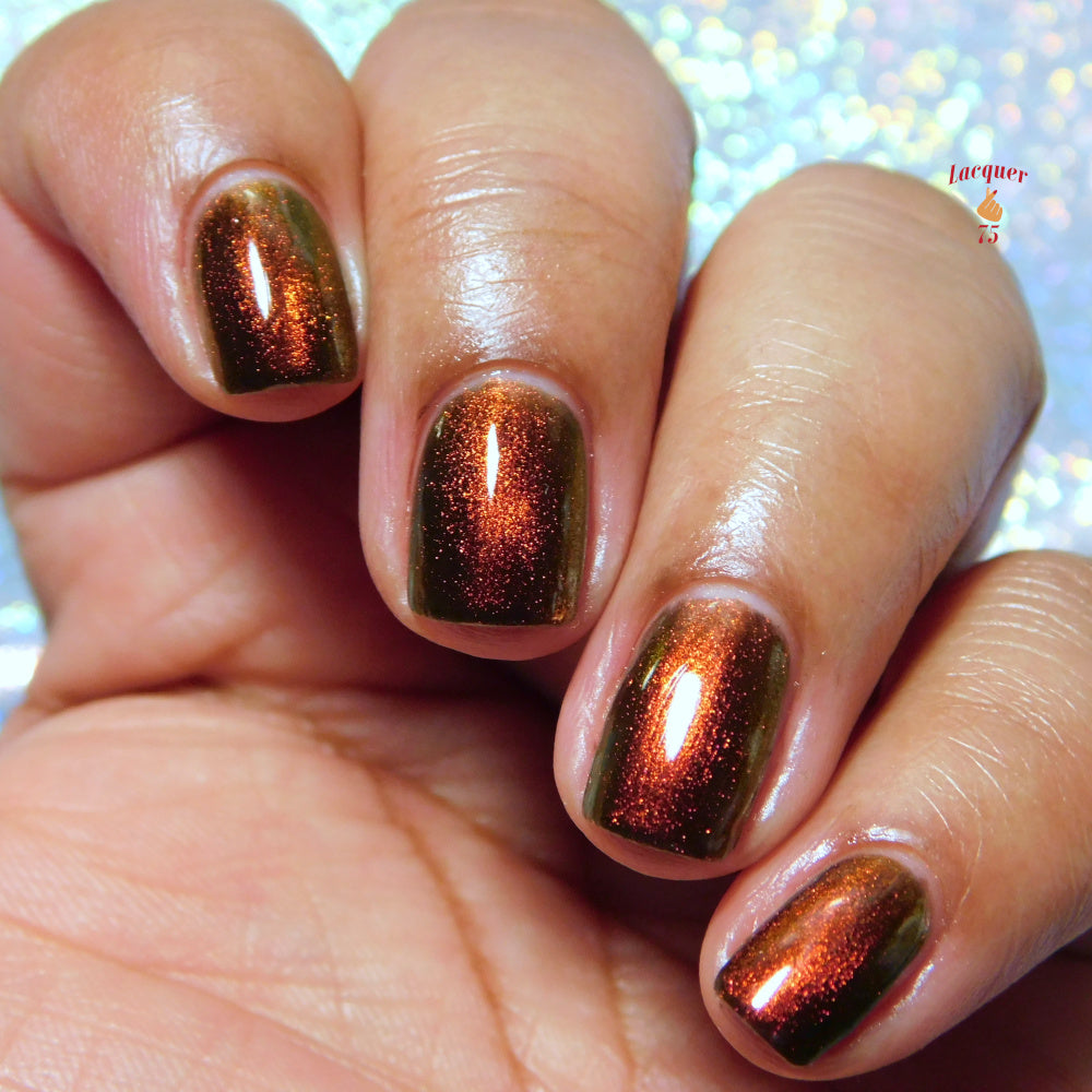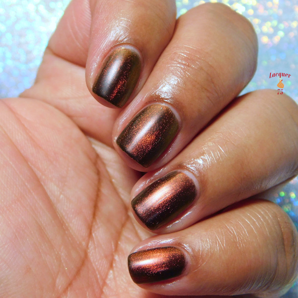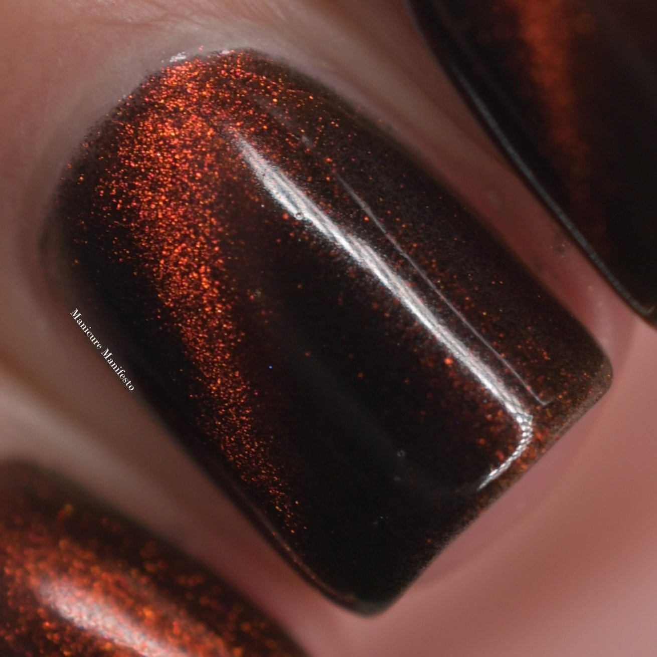 Mars Moons is an orange to red to copper magnetic polish with a black base.