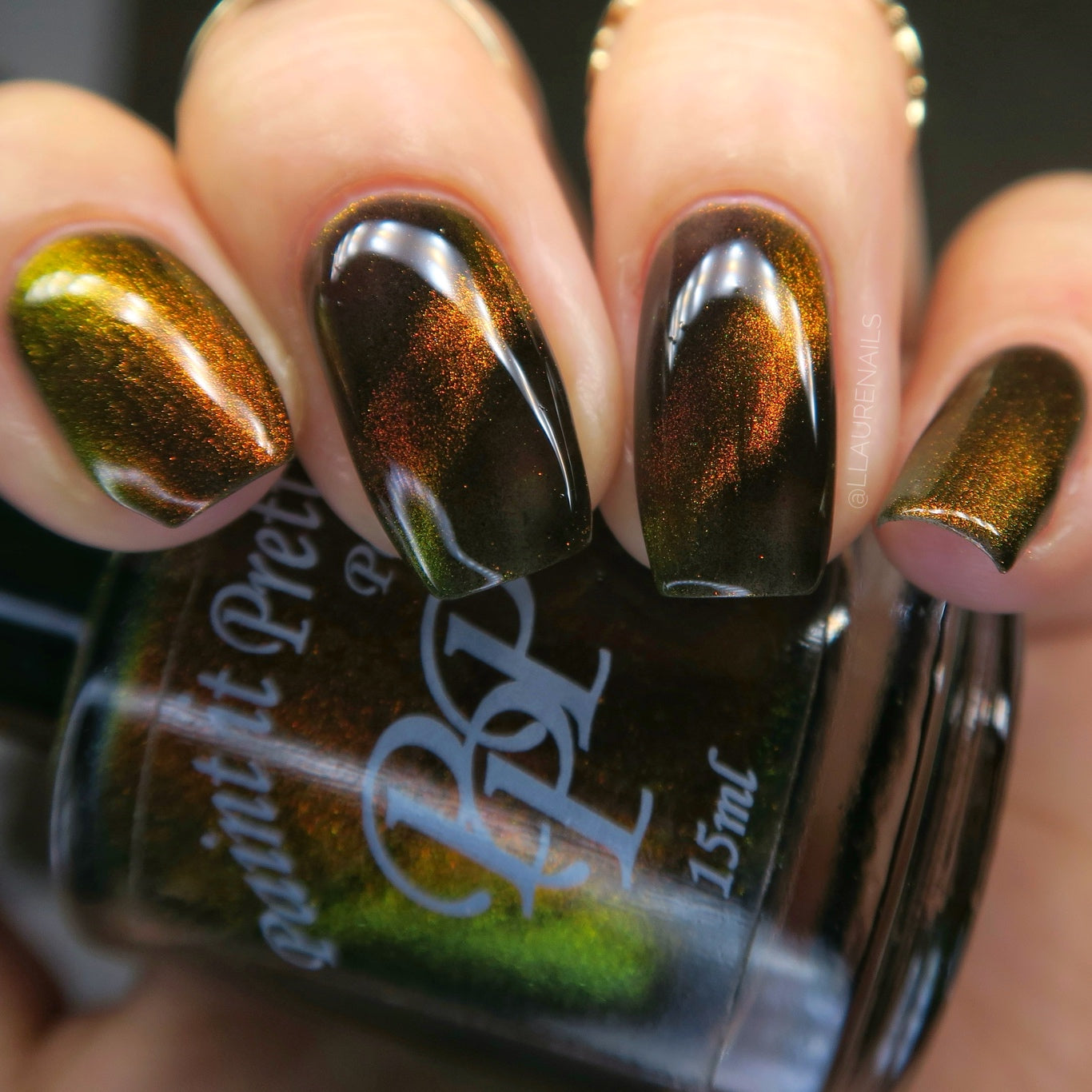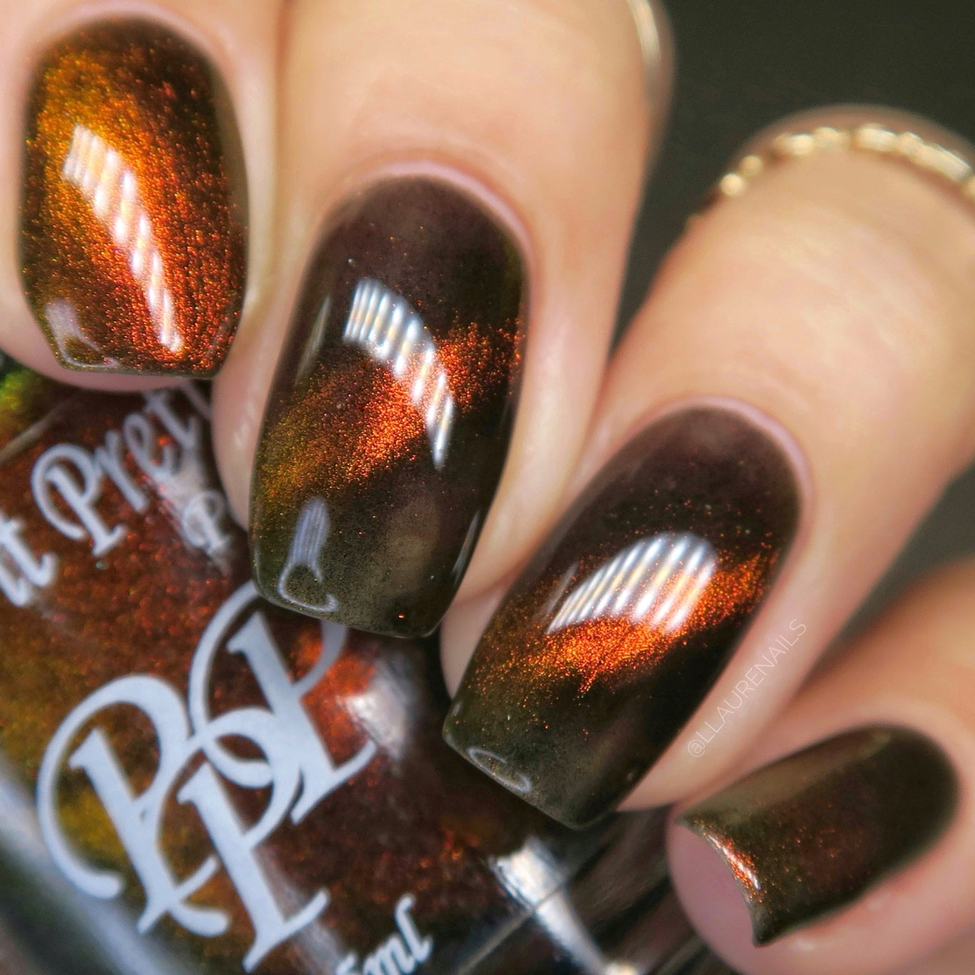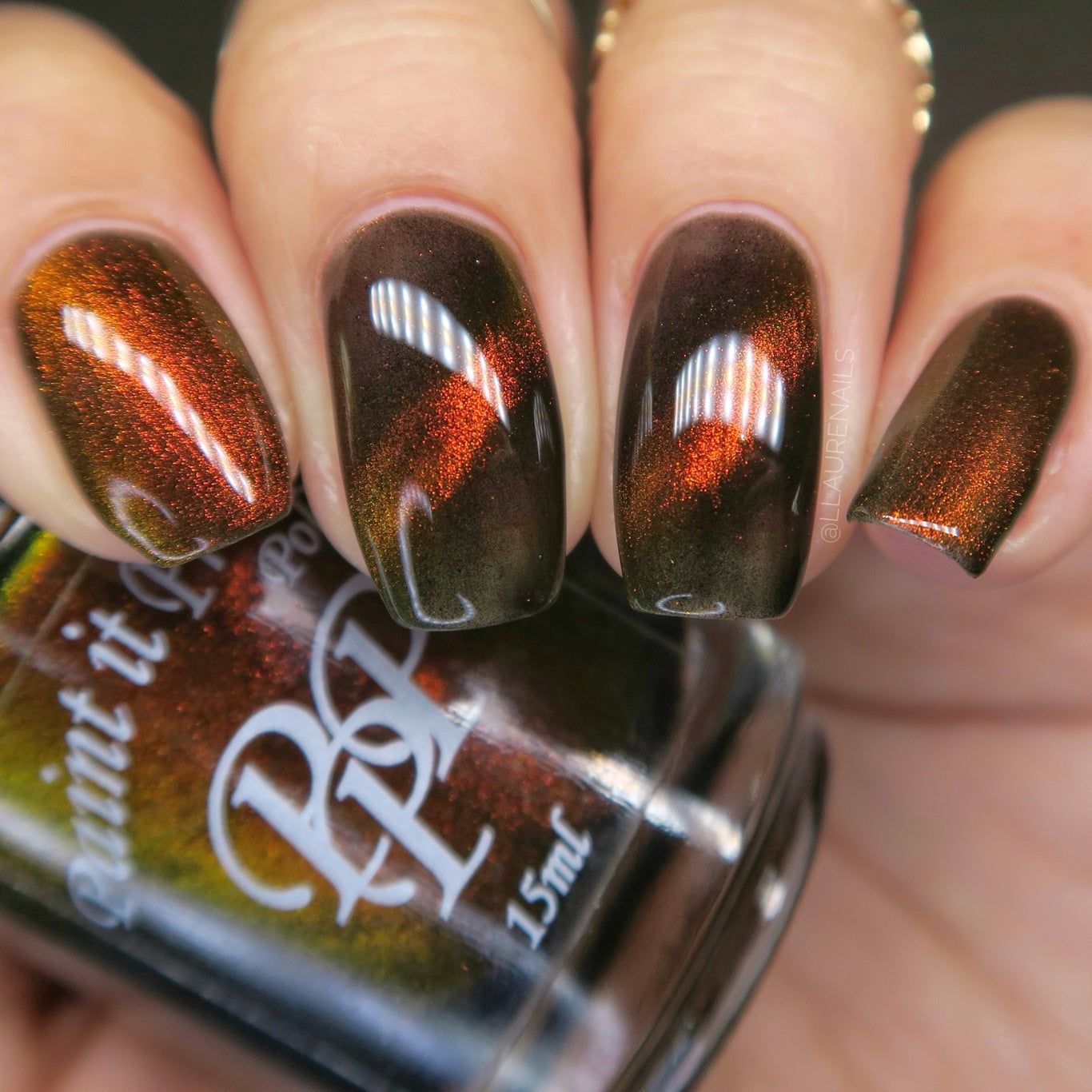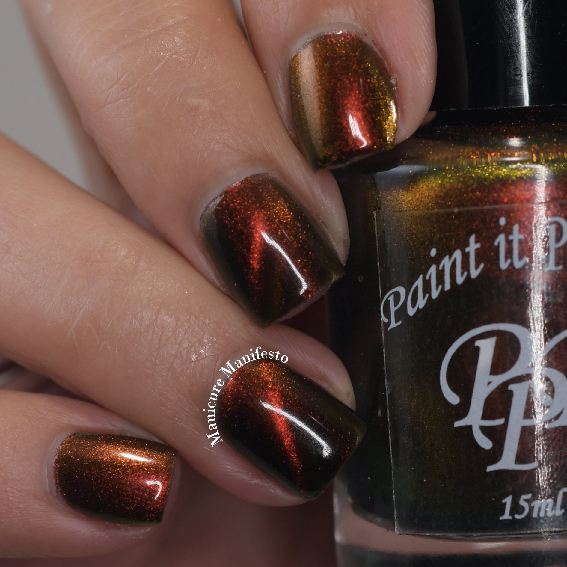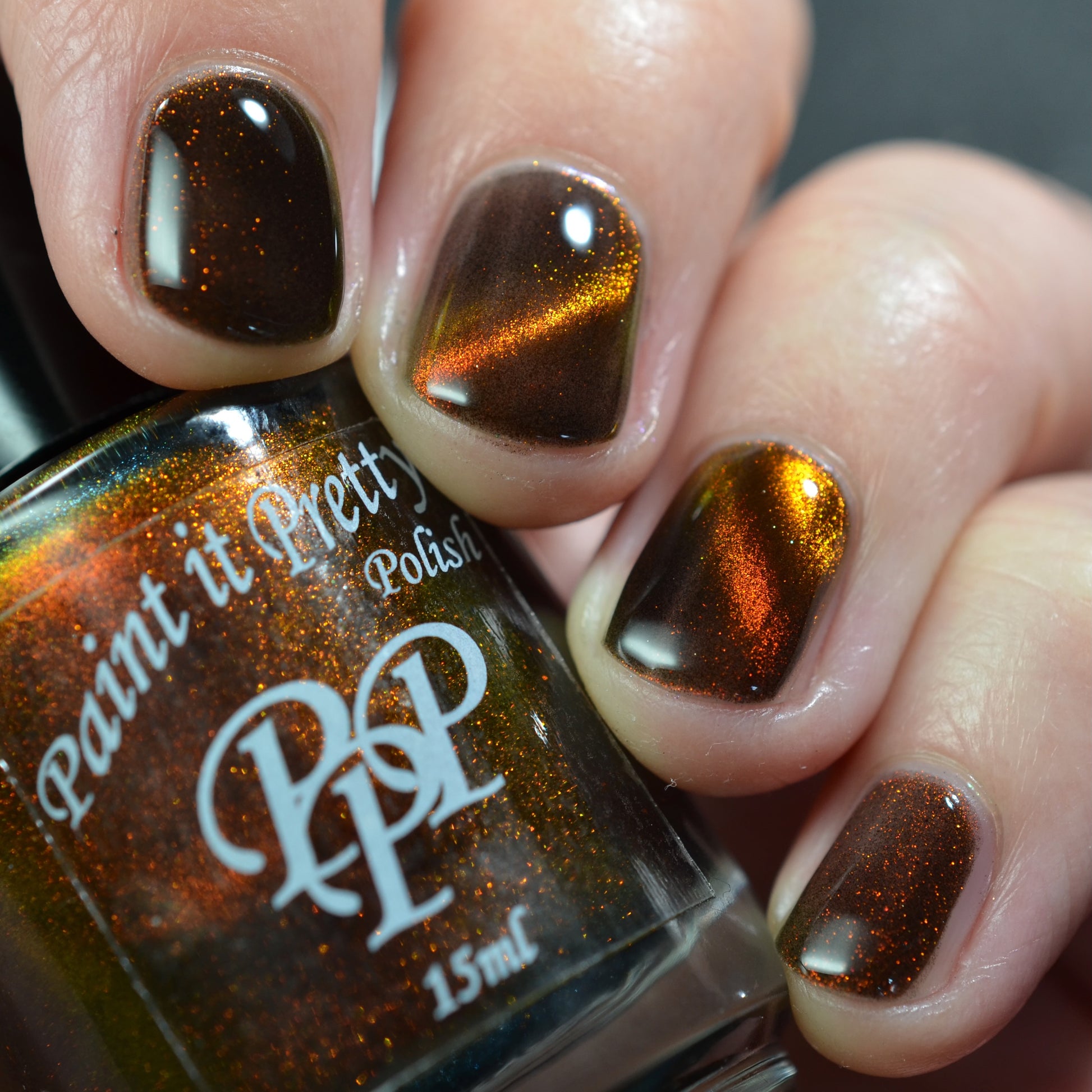 Mars Moons is an orange to red to copper magnetic polish with a black base.