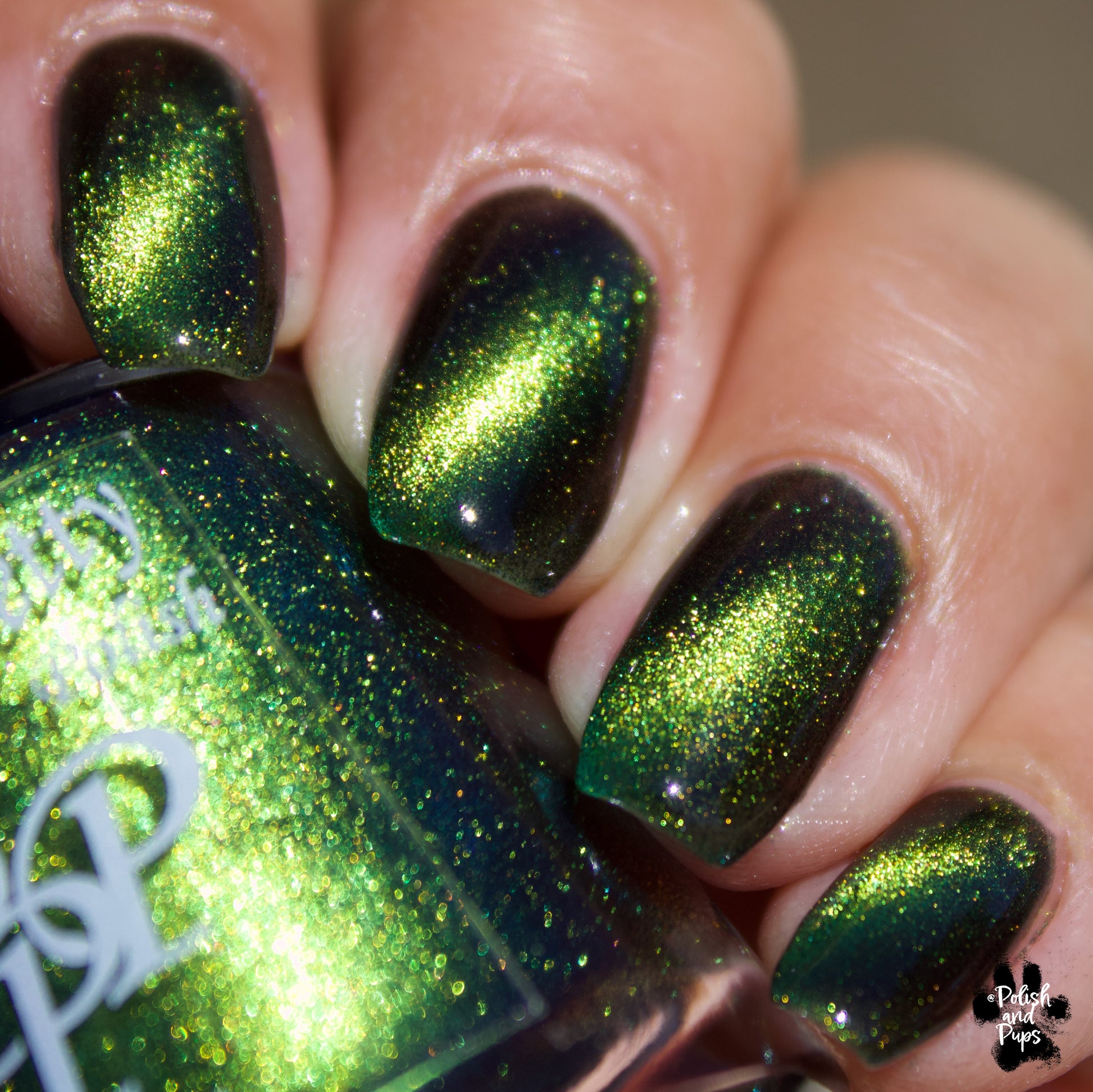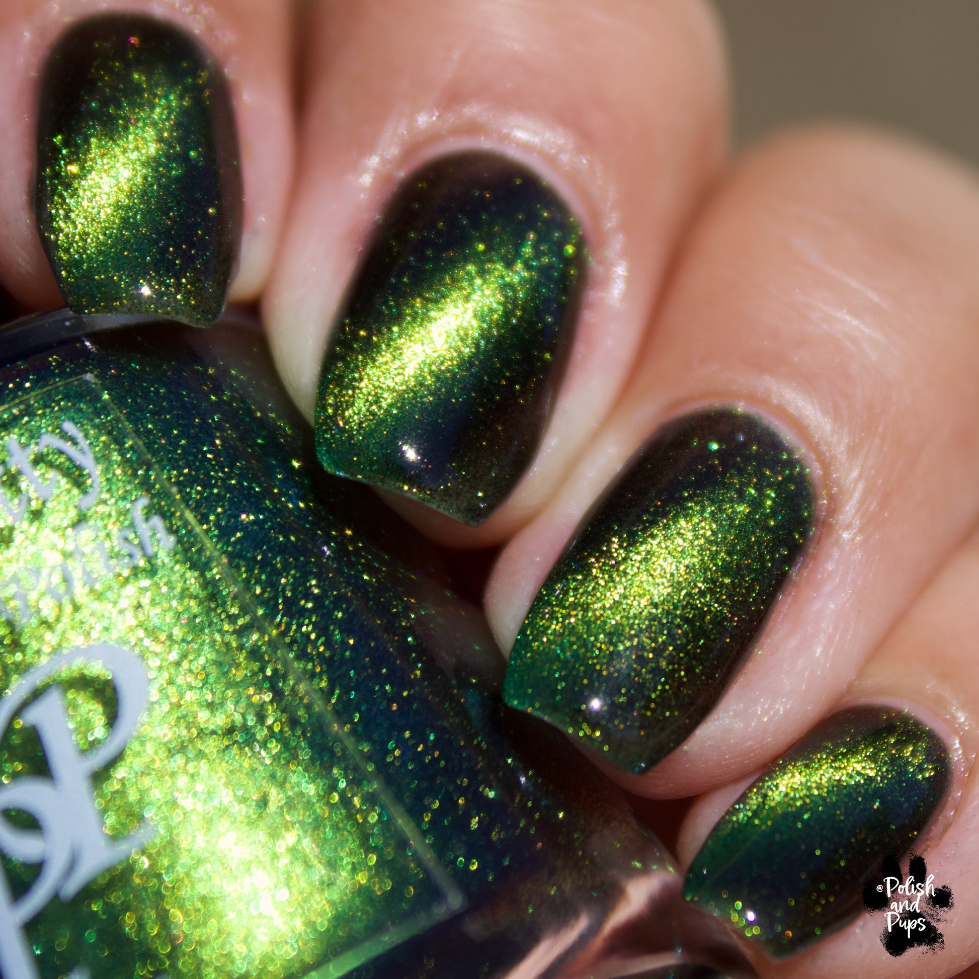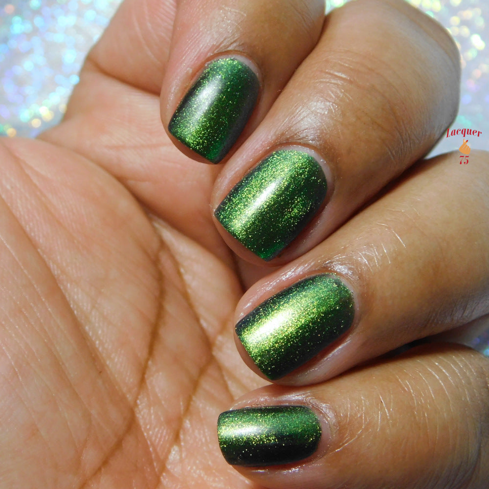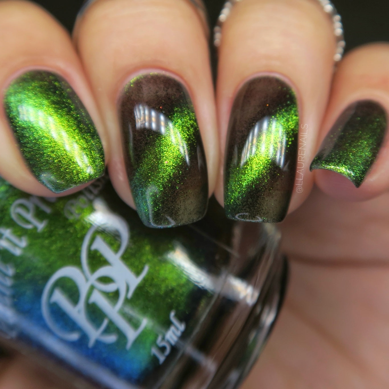 Moonquakes is a green to yellow to blue magnetic polish in a black base.