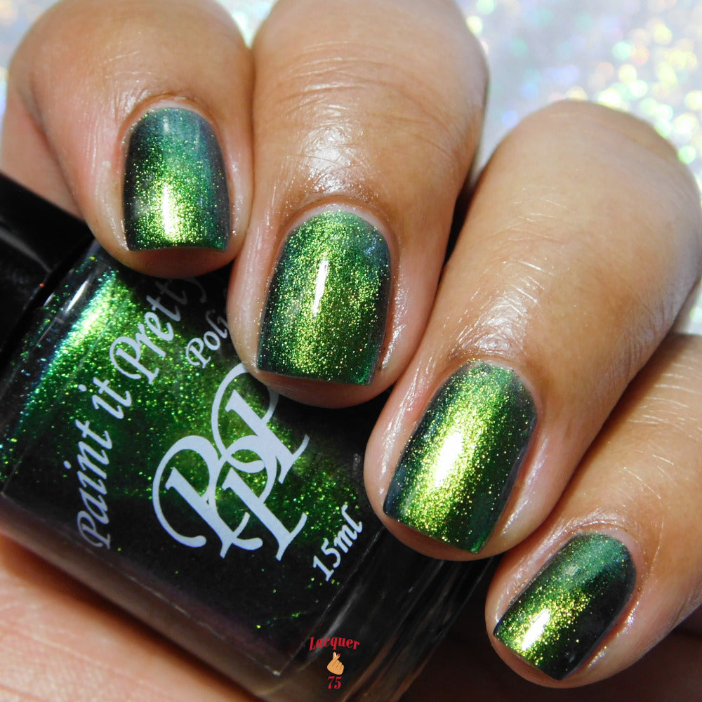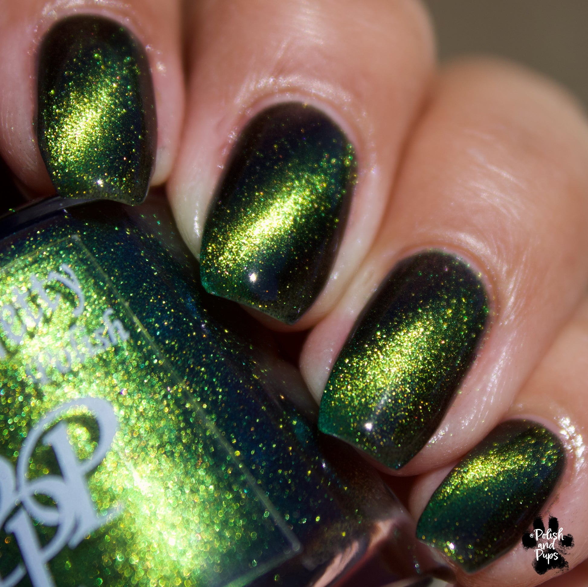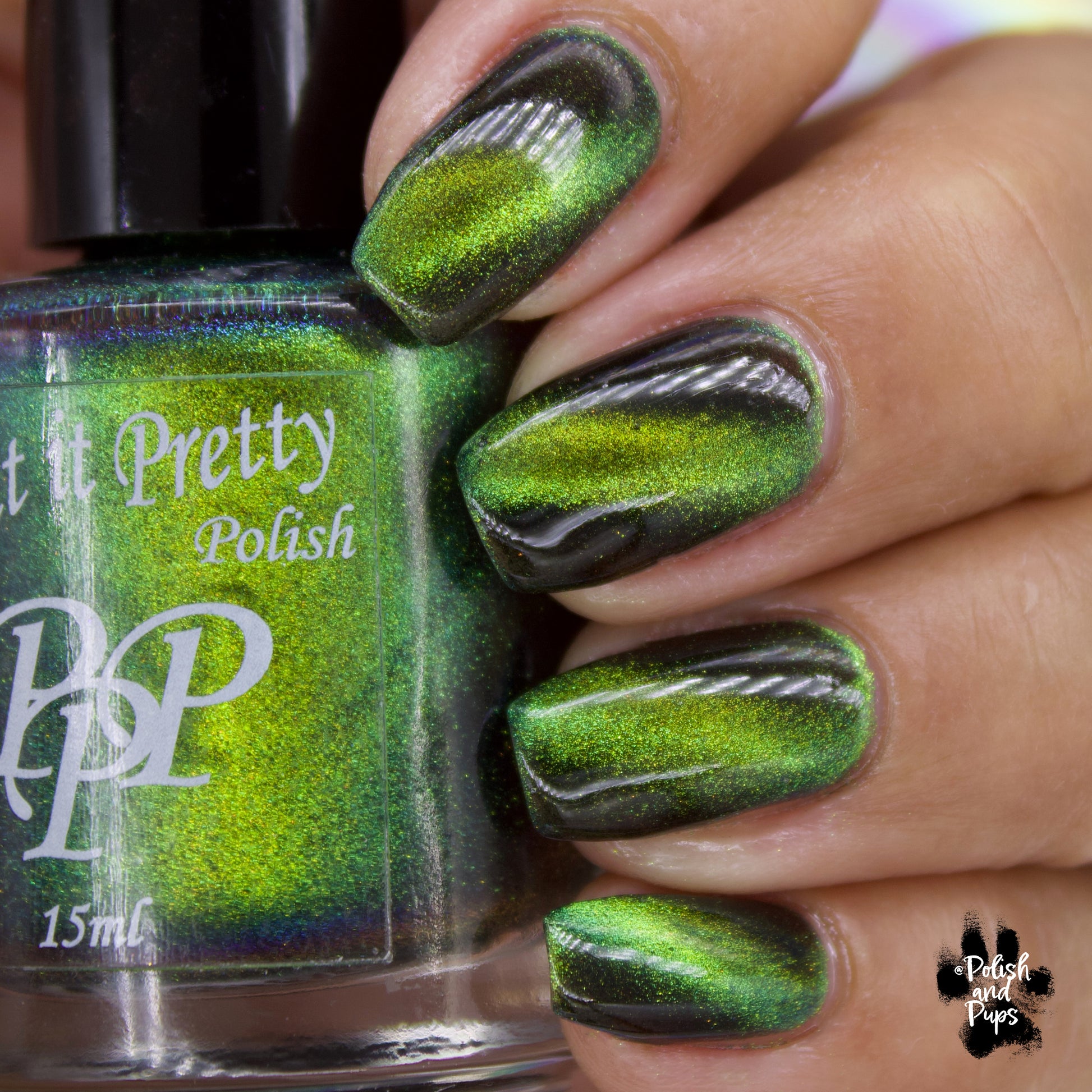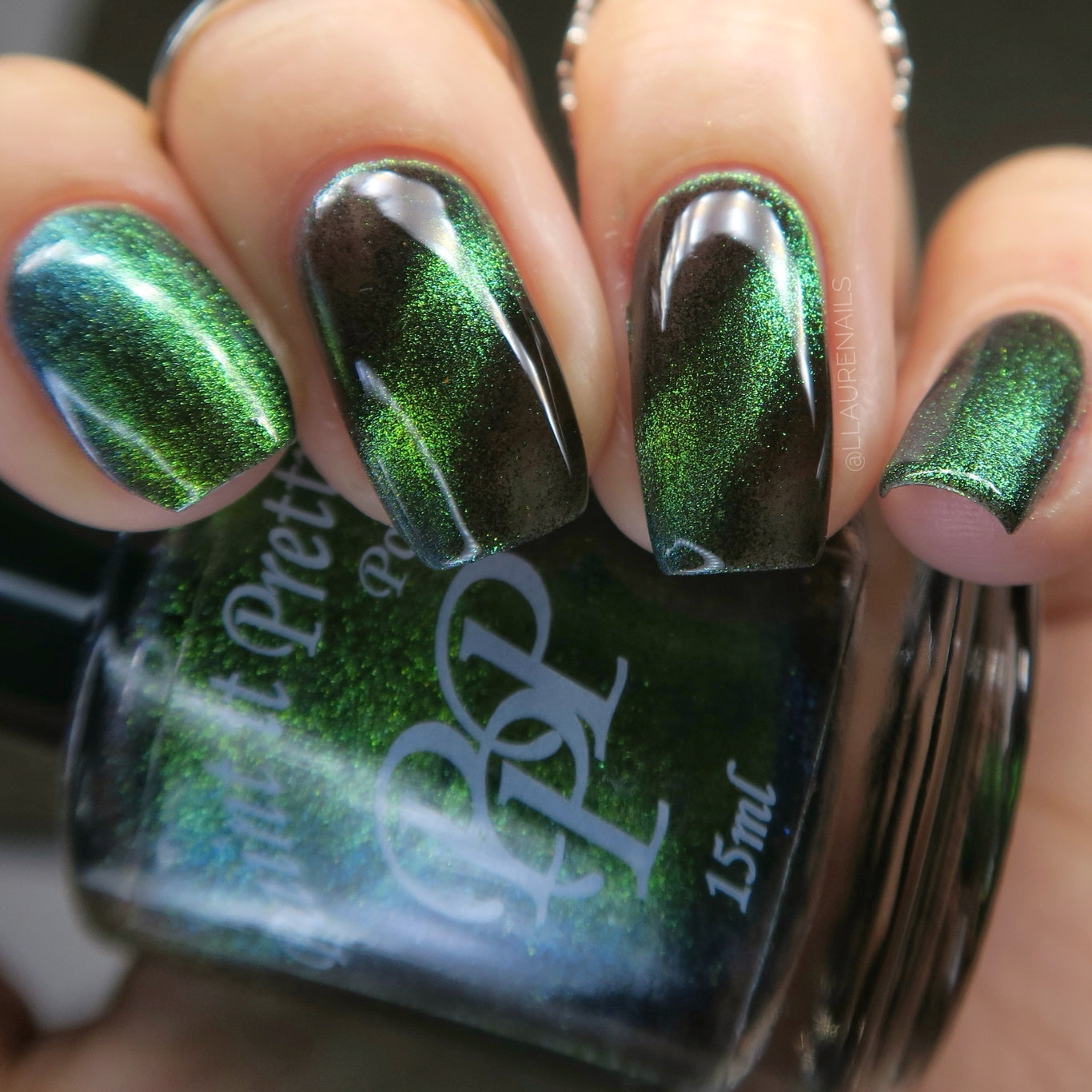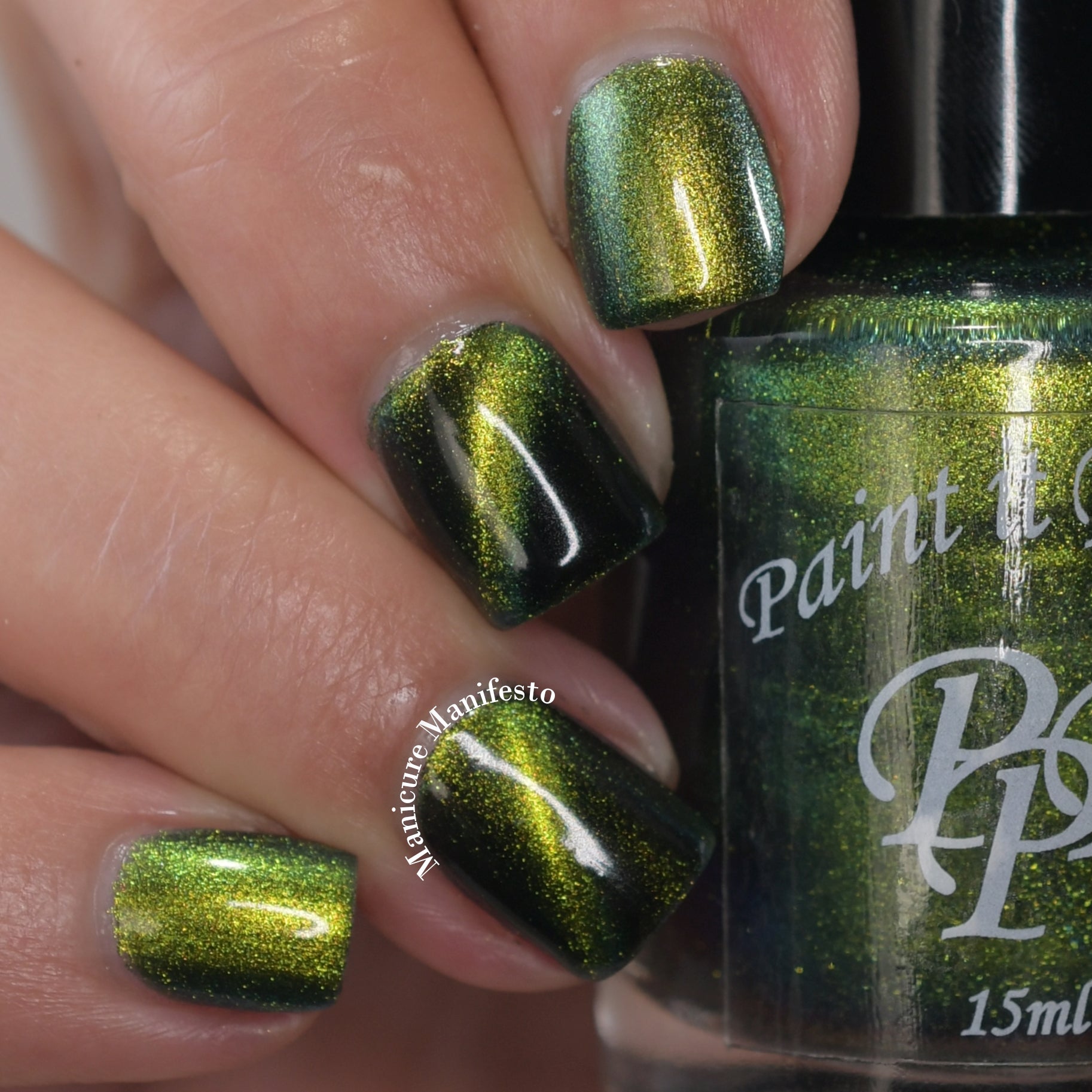 Moonquakes is a green to yellow to blue magnetic polish in a black base.