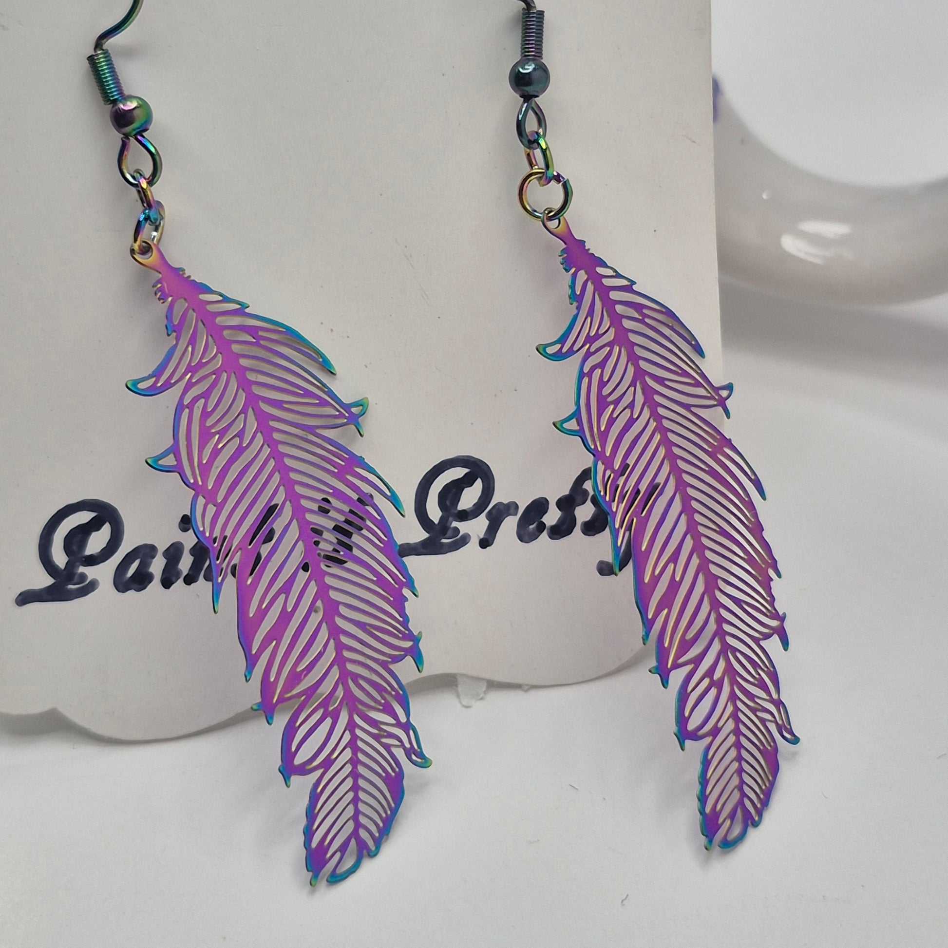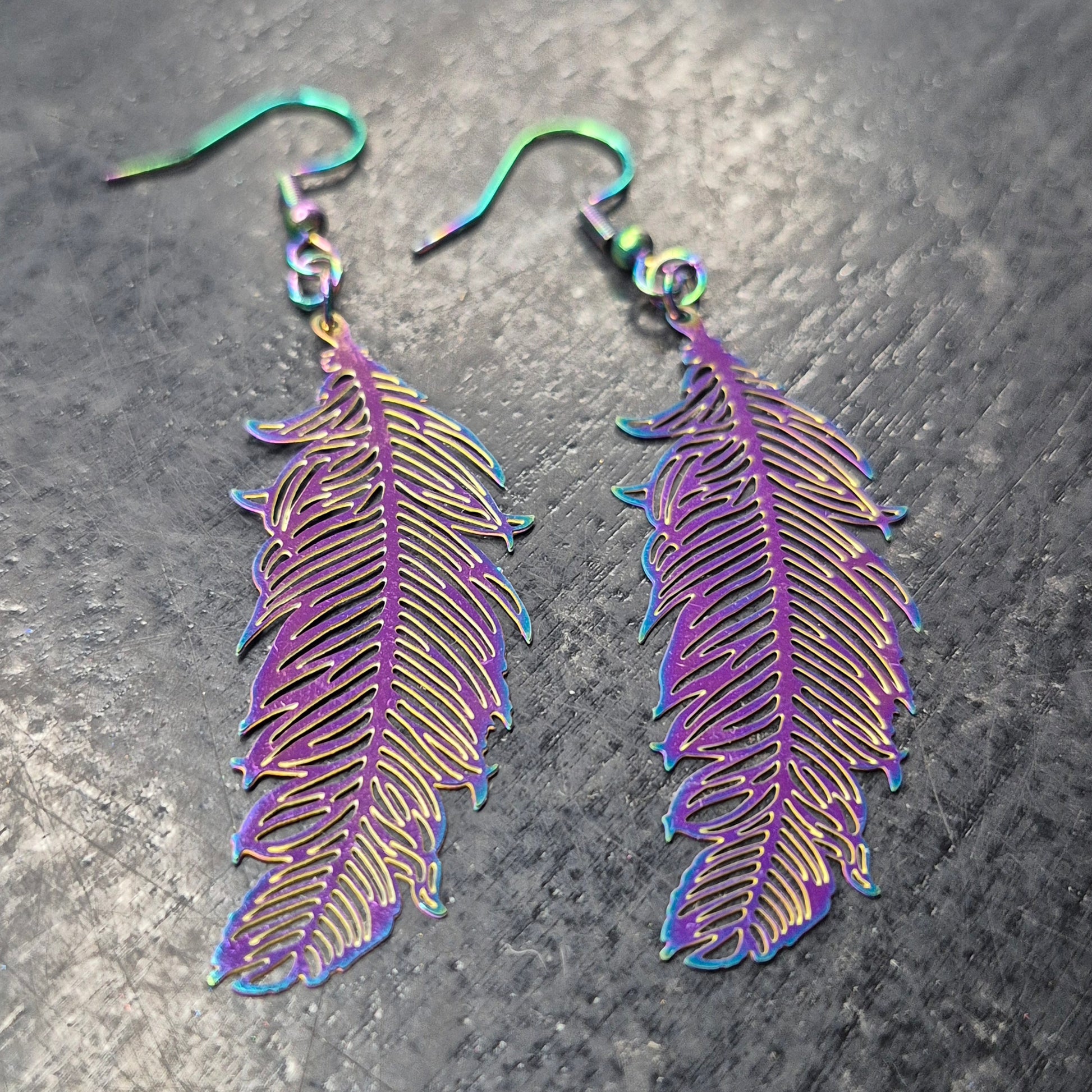 Handmade feather earrings. Hand woven one ring at a time, this jewelry is sure to turn heads!